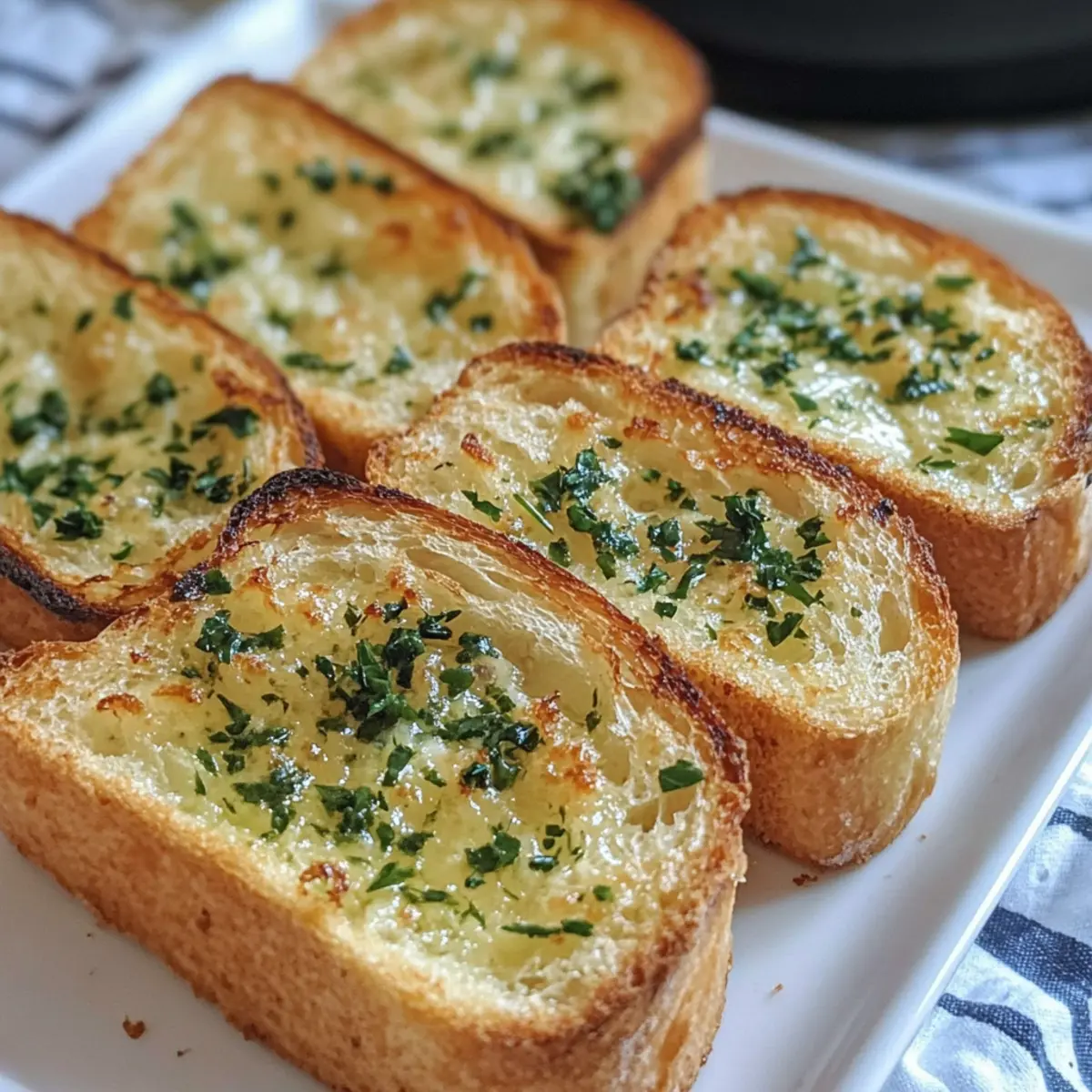 The aroma of baking bread can transport you to a cozy kitchen, where warm, buttery notes of garlic fill the air. This is exactly the experience I delight in while whipping up my Quick & Crispy Air Fryer Garlic Bread. In just six minutes, you can achieve that perfect combination of a crunchy exterior and a soft, flavorful center that pairs beautifully with any meal—from pasta to soup. Not only is this recipe incredibly quick to make, but it’s also a versatile crowd-pleaser that can easily be dressed up or down. Whether you’re making the classic version or indulging in a cheesy twist, you’ll be amazed at the simplicity and satisfaction of creating homemade garlic bread. Curious about how this recipe can transform your meals? Let’s dive in and elevate your dining experience! Why Is Air Fryer Garlic Bread a Must-Try? Quick Preparation: This recipe is a time-saver, ready in just six minutes! Perfect for those busy weeknights when you want to add a gourmet touch without the fuss. Crispy Perfection: The air fryer delivers an irresistible crunch on the outside while keeping the inside soft and buttery, making it a delightful experience for the senses. Versatile Enjoyment: Dress it up! Whether you prefer traditional garlic bread or a rich garlic cheese bread variation, this recipe suits everyone’s taste. Healthier Option: Cooking in the air fryer means less oil, giving you that satisfying crunch without the guilt, allowing you to enjoy delicious homemade bread often. Perfect Pairing Power: Serve it alongside your favorite pasta dish, comforting soup, or even as a snack with coffee! It’s the perfect sidekick for any meal. This recipe isn’t just for the garlic bread lovers; it’s a delightful addition to any dining experience! If you want to extend your culinary creativity, check out my Garlic Parmesan Focaccia or consider pairing it with some Air Fryer Pizza for a complete feast! Air Fryer Garlic Bread Ingredients • Get ready for a crispy delight! For the Bread Ciabatta, Italian loaf, or French baguette – Choose stale bread for a crispier texture that holds up beautifully in the air fryer. For the Garlic Butter Butter – Room temperature for easy spreading; it enhances richness and helps achieve that golden brown finish. Garlic (minced) – Fresh minced garlic adds that signature flavor that makes air fryer garlic bread irresistible. Freshly chopped parsley – This adds a bright, fresh taste and a pop of color to your garlic bread. Optional for Garlic Cheese Bread Cheese – Any melting cheese, such as mozzarella or cheddar, can create a divine garlic cheese bread variation; sprinkle it on top for that gooey goodness. Step‑by‑Step Instructions for Air Fryer Garlic Bread Step 1: Preheat the Air Fryer Begin by preheating your air fryer to 190°C (380°F). This step is crucial for achieving that delightful crispy texture that makes air fryer garlic bread so irresistible. While the air fryer heats up, you can gather your ingredients and prepare the garlic butter mixture, ensuring a smooth cooking process. Step 2: Prepare the Garlic Butter Mixture In a mixing bowl, combine room temperature butter with minced garlic and freshly chopped parsley. If you’re making garlic cheese bread, feel free to add your chosen melting cheese at this stage. Mix thoroughly until the ingredients are well blended into a fragrant, creamy mixture that will be the star of your air fryer garlic bread. Step 3: Spread the Garlic Butter Mixture Take your ciabatta, Italian loaf, or French baguette and slice it evenly into pieces that will easily fit into the air fryer basket. Generously spread the garlic butter mixture onto each slice of bread, coating them thoroughly. This ensures every bite of your air fryer garlic bread is packed with that delicious, buttery garlic flavor. Step 4: Arrange the Bread in the Air Fryer Carefully place the prepared bread slices in the air fryer basket, arranging them in a single layer for even cooking. Avoid overcrowding to allow for proper air circulation, which helps achieve a perfect crisp. This setup is essential for getting that golden brown color that is both appetizing and mouthwatering. Step 5: Cook the Garlic Bread Cook the air fryer garlic bread for about 6 minutes, keeping an eye on it as it cooks. You want to see a golden brown, crispy exterior forming on the bread. Halfway through the cooking time, check on your garlic bread and add any additional cheese if desired, giving it a chance to melt perfectly. Step 6: Check for Doneness and Serve After 6 minutes, open the air fryer to check for doneness. The garlic bread should be golden and crisp. If you prefer it a bit crispier, let it cook for an additional minute or so. Once done, carefully remove the hot garlic bread from the air fryer and serve it immediately, enjoying the warmth and aroma of your homemade delight. What to Serve with Air Fryer Garlic Bread? The warmth and aroma of freshly made garlic bread creates an inviting ambiance, perfectly complementing your favorite meals. Creamy Tomato Soup: Its rich, velvety texture pairs incredibly well, allowing you to dip and savor each crunchy bite of garlic bread. Classic Spaghetti: Balanced flavors of garlic and herbs make this dish a go-to, adding an Italian flair that enhances your dining experience. Caesar Salad: The crisp freshness of romaine and creamy dressing contrasts beautifully with the warm, buttery garlic bread, bringing a delightful crunch to your meal. Herbed Olive Oil Dip: A simple blend of olive oil and fresh herbs elevates your garlic bread, inviting an interactive dining experience with each dip. Grilled Chicken: The juicy, savory flavors of grilled chicken harmonize with the garlic bread’s richness, creating a satisfying and delicious plate. Sparkling Lemonade: The refreshing zest of this drink cuts through the richness of the garlic bread, providing a palate-cleansing effect to enhance your meal. Chocolate Mousse: For dessert, this light an