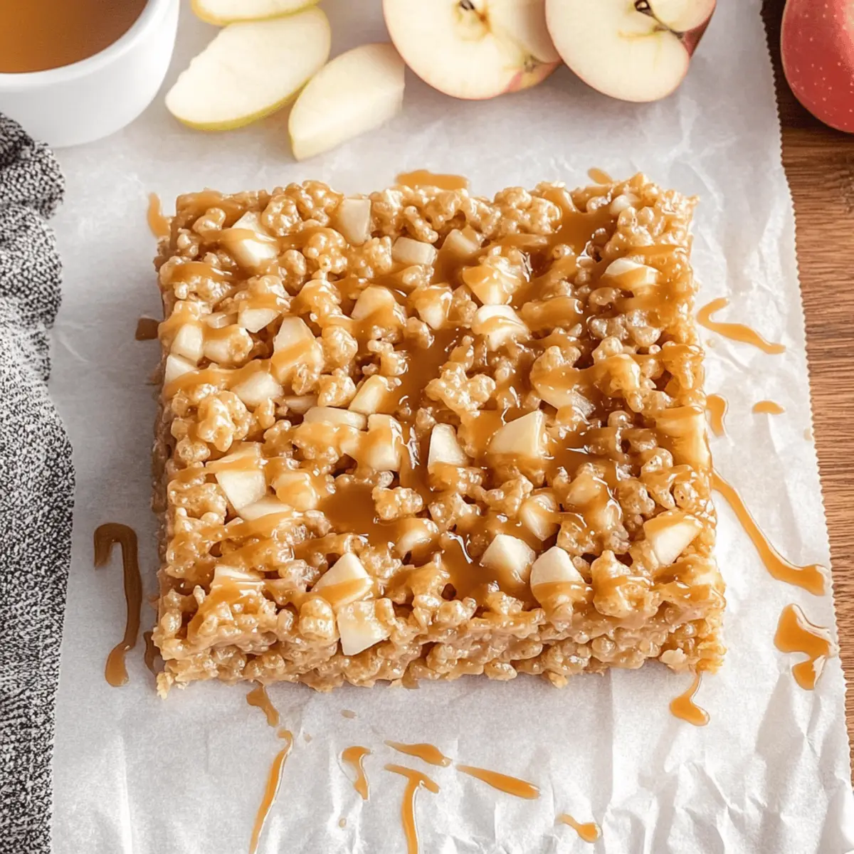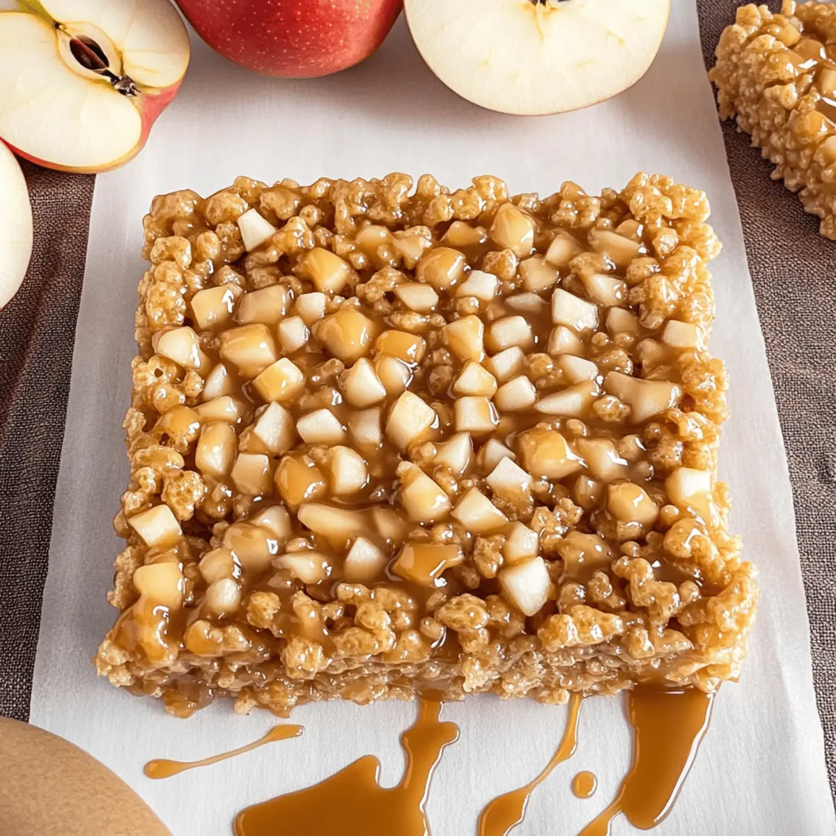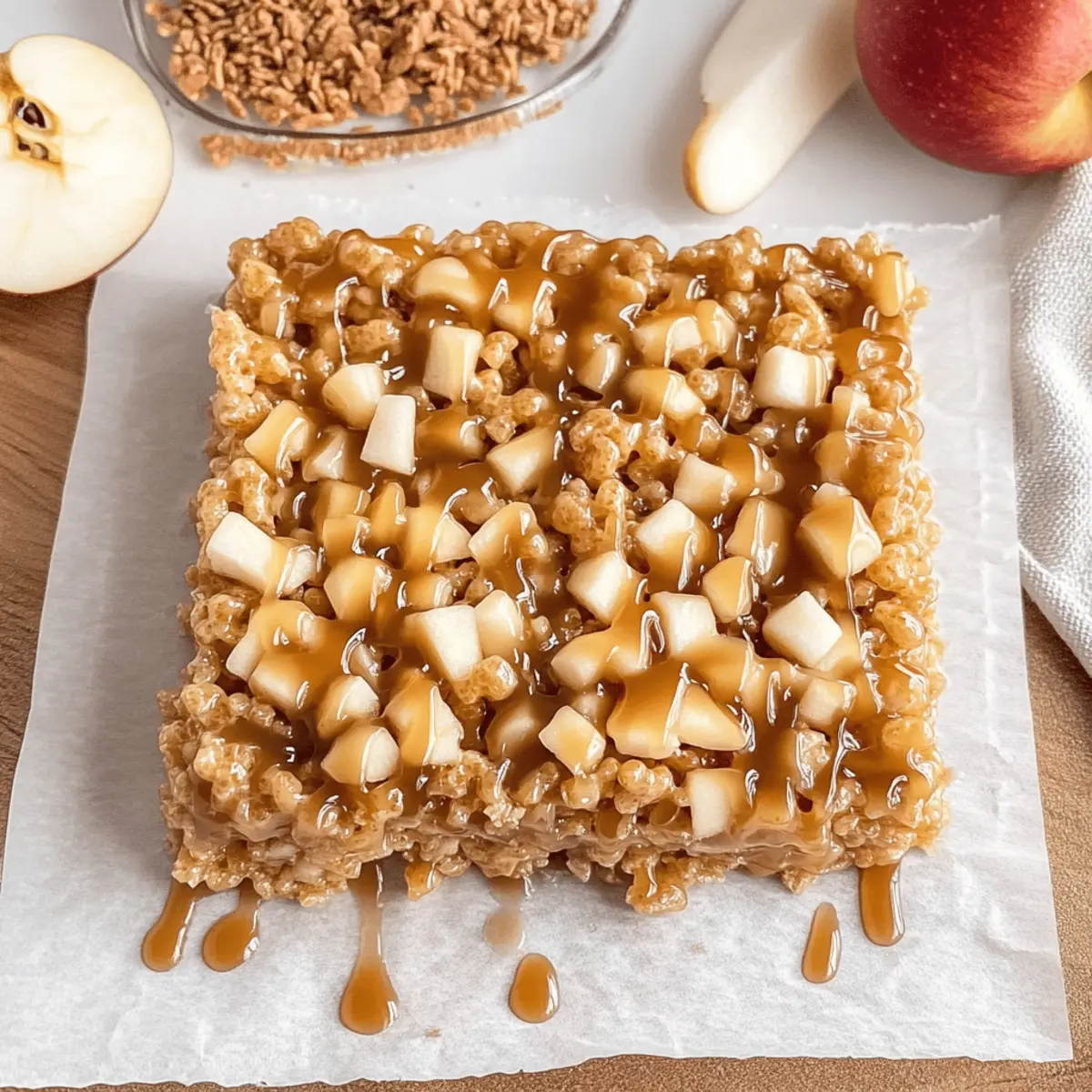 As the crisp autumn air brushes against my cheeks, a familiar scent wafts through the kitchen, mingling warm memories with the promise of new creations. I’ve taken two beloved treats—apple pie and Rice Krispie treats—and brought them together in a playful, no-bake recipe that celebrates the cozy flavors of fall. These Apple Pie Rice Krispie Treats are not only quick to whip up but also a gluten-free option that everyone will rave about. Perfect for sharing with family and friends, they deliver a delightful crunch and gooey sweetness reminiscent of the traditional pie we all know and love. What better way to indulge in the season’s bounty than with these easy and scrumptious treats? Are you ready to dive into this delicious twist on a classic? Why Try Apple Pie Rice Krispie Treats? Unique Flavor Fusion: Imagine the comforting essence of apple pie wrapped in a no-bake treat! These Apple Pie Rice Krispie Treats blend nostalgia with seasonal flavors, making them a standout dessert. Quick & Easy: With just a few simple steps, you’ll have a delicious, crowd-pleasing snack ready in no time, perfect for last-minute gatherings. Customizable: Feel free to mix in your favorite nuts or dried fruits, or even a touch of peanut butter for a twist! Gluten-Free Option: Use gluten-free Rice Krispies for an inclusive treat everyone can enjoy. Perfect for Fall Gatherings: Share these delightful treats at holiday gatherings, potlucks, or cozy family nights, and watch them disappear! If you love this kind of flavor, check out my Honey Butter Rice for another unique twist! Apple Pie Rice Krispie Treats Ingredients For the Base Rice Krispies – A crunchy base that offers the perfect structure; look for gluten-free options if needed. Marshmallows – Essential for binding the treat; using fresh marshmallows ensures the ideal texture. Butter – Adds richness and aids in melting the marshmallows; vegan butter can be used as a dairy-free alternative. For the Flavor Apple Pie Spice – Captures that classic fall flavor; substitute with cinnamon if you don’t have apple pie spice. Chopped Apples – Fresh or dried apples introduce fruity notes; make sure to peel and dice them for even distribution. For the Extra Touch Caramel Sauce – Drizzle over the top for an added layer of sweetness and flavor; a homemade version can enrich the taste. These Apple Pie Rice Krispie Treats bring the taste of the season into each delightful bite, making them perfect for any fall occasion! Step‑by‑Step Instructions for Apple Pie Rice Krispie Treats Step 1: Prepare Ingredients Begin by gathering all your ingredients for the Apple Pie Rice Krispie Treats. Measure out your Rice Krispies, marshmallows, butter, and apple pie spice. Ensure your apples are peeled and chopped into small, even pieces for uniform flavor. Grab a large saucepan, a mixing bowl, and a greased 9×13-inch pan to make the process smooth and efficient. Step 2: Melt Mixture In your large saucepan, melt 4 tablespoons of butter over low heat, stirring consistently to prevent burning. Once the butter has melted, add in about 10 ounces of marshmallows, stirring until they are completely melted and the mixture is smooth and glossy, which should take around 5-7 minutes. This creamy base is essential for binding the Apple Pie Rice Krispie Treats together. Step 3: Combine Ingredients After removing the melted mixture from heat, quickly stir in 1 teaspoon of apple pie spice and your chopped apples, ensuring they’re evenly distributed. Gradually fold in 6 cups of Rice Krispies, making sure each rice krispie is coated with the melted marshmallow mixture. The mixture should start to come together, looking sticky and holding its shape—this means you’re on the right track! Step 4: Form Treats Pour your mixture into the greased 9×13-inch pan. Use a spatula or a piece of wax paper to press down firmly on the mixture, creating an even layer throughout. Be gentle but assertive to ensure it all sticks together without crumbling. Drizzle caramel sauce over the top for an extra sweet touch, creating a beautiful finish for your Apple Pie Rice Krispie Treats. Step 5: Cool and Set Allow the treats to cool at room temperature for about 30-45 minutes or until they are set enough to cut. You’ll know they’re ready when they feel firm to the touch and hold their shape. Once set, cut into squares or rectangles using a sharp knife, ready to be devoured! For the best texture, keep these treats stored at room temperature. How to Store and Freeze Apple Pie Rice Krispie Treats Room Temperature: Store Apple Pie Rice Krispie Treats in an airtight container at room temperature for up to 3 days for the best flavor and texture. Refrigerator: If you need to keep them longer, you can refrigerate them, but this may cause the marshmallows to harden; consume within a week. Freezer: For longer storage, wrap treats tightly in plastic wrap and place in a freezer-safe container. They can be frozen for up to 2 months; thaw at room temperature before enjoying. Reheating: If desired, you can gently warm individual squares in the microwave for about 10 seconds to restore their gooey texture. Apple Pie Rice Krispie Treats Variations Feel free to get creative with these treats and make them your own with delightful twists! Dairy-Free: Substitute butter with vegan butter for a creamy texture without the dairy. Nutty Crunch: Add chopped pecans or walnuts into the mixture for extra crunch and flavor. Spicy Kick: Mix in a pinch of cayenne pepper for a surprising heat that complements the sweetness. Caramel Apple Swirl: Drizzle additional caramel sauce into the mixture before pressing into the pan for pockets of gooey goodness. Fruit Medley: Swap apples for a mix of dried fruits like cranberries or cherries to create a fun and fruity flavor. Chocolate Drizzle: Melt dark chocolate and drizzle over the top before cutting for an indulgent touch of richness. Rice Alternative: Use quinoa puffs instead of 