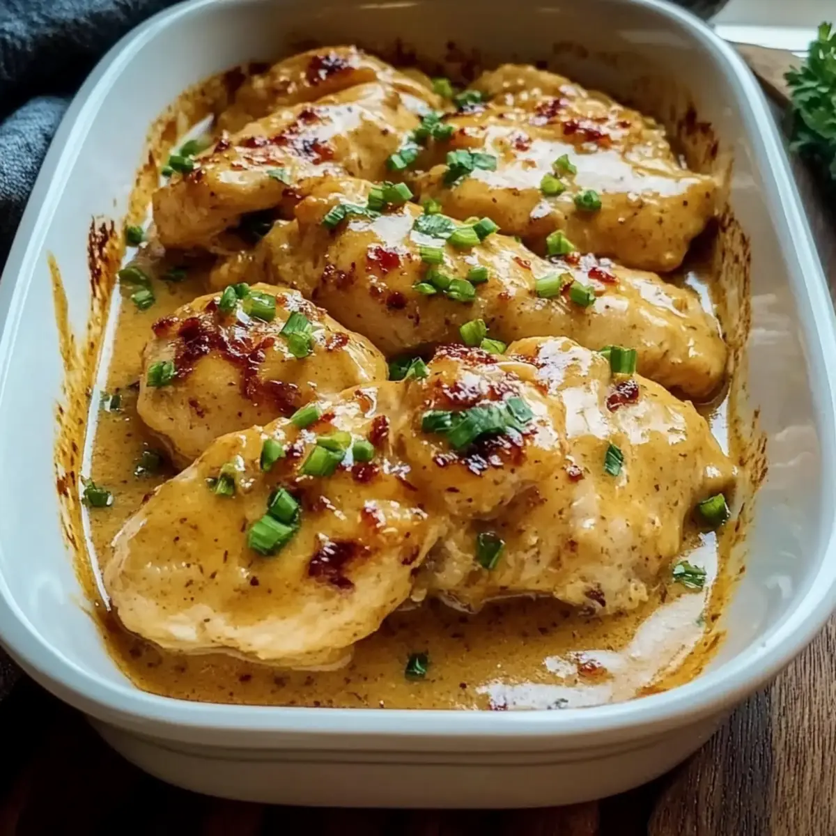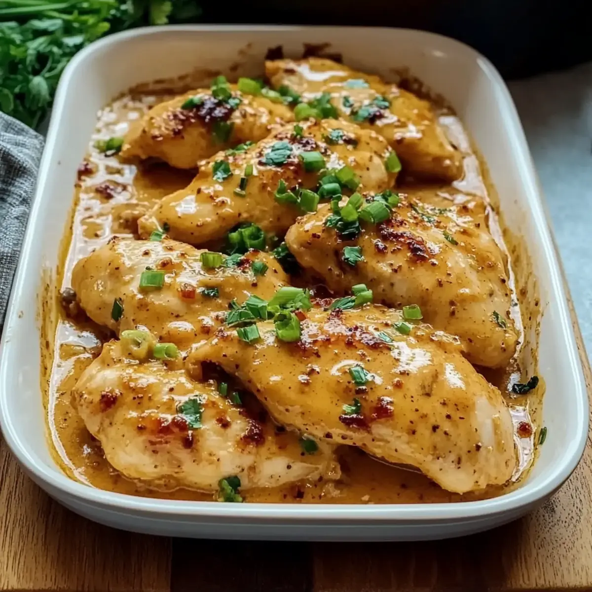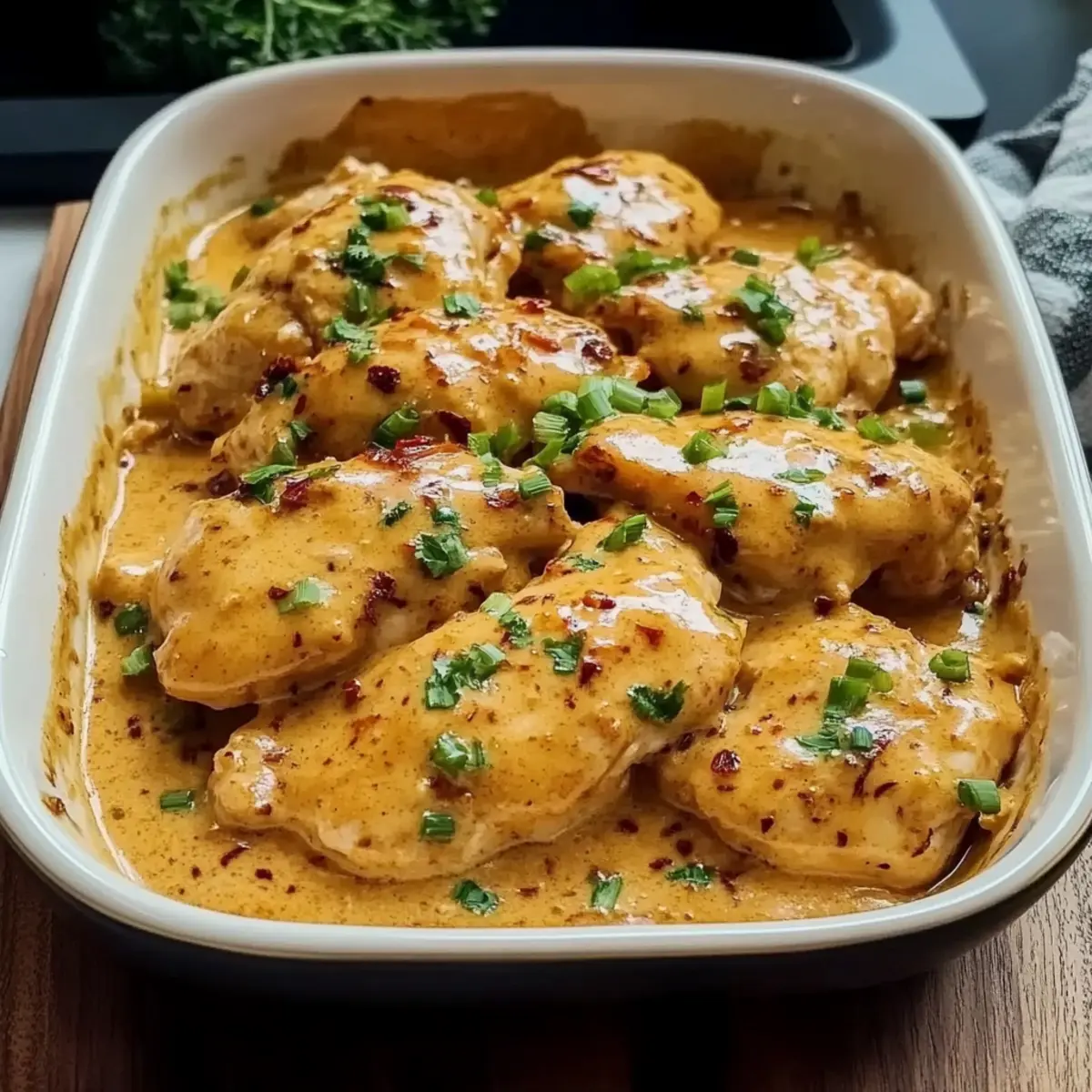 “Just last week, as I sifted through my pantry searching for inspiration, I stumbled upon a jar of sweet chili sauce. That moment sparked my creation of the Bang Bang Chicken Bake—a dish that combines creamy richness and the perfect kick of spice for a truly delightful weeknight meal. With juicy chicken enveloped in a zesty sauce, this recipe transforms simple ingredients into an impressive dinner without the fuss of takeout. Whether you’re in a rush or looking to please guests, this quick recipe offers a versatile base that can easily adapt to different chicken types or even be whipped up with rotisserie chicken. Ready to experience restaurant-style flavors right at your home table? Let’s dive into this flavorful adventure!” Why is this Bang Bang Chicken Bake a favorite? Simplicity at Its Best: This recipe is straightforward and perfect for busy weeknights, requiring minimal prep and just one baking dish. Creamy, Flavor-Packed Sauce: The harmonious blend of sweet chili sauce and sriracha adds a mouthwatering punch that elevates your simple chicken to gourmet status. Versatile Ingredient Options: Easily swap chicken breasts for thighs or even rotisserie chicken, ensuring deliciousness no matter your choice! Crowd-Pleasing Appeal: With its irresistible creamy coating and comforting flavors, this dish is sure to impress family and friends alike. Serve it over jasmine rice or in lettuce wraps for delightful options. Leftover Magic: Enjoy a quick reheat and savor the same rich flavors the next day—making it perfect for meal prepping without compromising on taste! Bang Bang Chicken Bake Ingredients For the Chicken • Chicken Breasts – Juicy and protein-packed; boneless and skinless ensure even cooking. Substitute with thighs for a richer flavor! For the Creamy Sauce • Mayonnaise – The creamy backbone providing richness and tang; can be swapped for vegan mayo or Greek yogurt. • Sweet Chili Sauce – Adds that signature sweet-heat combo that makes Bang Bang Chicken Bake so irresistible. • Sriracha – Introduces heat; adjust according to your spice preference for the perfect kick. • Honey – Balances heat with mellow sweetness, enhancing the overall flavor profile. • Garlic Powder – Boosts the savory depth of the sauce, making every bite delightful. For Seasoning and Garnish • Salt & Black Pepper – Essential for seasoning the chicken; don’t skip this step! • Chopped Green Onions – Adds a fresh bite and vibrant color for garnish. • Red Pepper Flakes (optional) – For those who like an extra spicy kick. Step‑by‑Step Instructions for Bang Bang Chicken Bake Step 1: Preheat and Prepare Begin by preheating your oven to 375°F (190°C) while you prepare a baking dish by lightly greasing it with cooking spray or oil. This ensures that your Bang Bang Chicken Bake won’t stick and will cook evenly, leading to a beautifully golden-brown finish. Step 2: Season the Chicken Pat the boneless, skinless chicken breasts dry with paper towels to remove any moisture that might prevent browning. Generously season both sides of the chicken with salt and black pepper, ensuring each piece is flavored well. This step is crucial for keeping the chicken juicy and enhancing the overall taste of the dish. Step 3: Make the Creamy Sauce In a mixing bowl, combine mayonnaise, sweet chili sauce, Sriracha, honey, and garlic powder. Whisk these ingredients together until the mixture is completely smooth and well-blended. This creamy bang bang sauce will envelop the chicken, delivering that signature sweet and spicy flavor with every bite. Step 4: Coat the Chicken Place the seasoned chicken breasts into the prepared baking dish, ensuring they are spaced out for even cooking. Pour the prepared creamy sauce over the chicken, making sure to coat each piece thoroughly. Use a spatula or spoon to evenly distribute the sauce, ensuring the chicken is rich in flavor throughout the baking process. Step 5: Bake the Chicken Slide the baking dish into the preheated oven and bake uncovered for 25 to 30 minutes. Keep an eye on the chicken, and it should reach an internal temperature of 165°F (74°C) when fully cooked. The sauce will bubble and begin to caramelize, creating a mouthwatering appearance that promises deliciousness. Step 6: Broil for Caramelization (Optional) For an extra touch of flavor and texture, switch your oven to the broil setting after the baking time. Broil the Bang Bang Chicken Bake for an additional 2 to 3 minutes until the sauce starts to bubble and lightly char on the edges. This step adds a delightful crispness to the sauce that enhances the overall dish. Step 7: Rest and Garnish Once baked, remove the dish from the oven and let it rest for about 5 minutes. This allows the juices to redistribute within the chicken. As a final touch, sprinkle chopped green onions and optional red pepper flakes over the top for an added punch of freshness and color before serving your scrumptious Bang Bang Chicken Bake. How to Store and Freeze Bang Bang Chicken Bake Fridge: Store leftovers in an airtight container for up to 4 days. Ensure it cools before sealing to maintain texture and flavor. Freezer: Freeze portions in resealable freezer bags for up to 2 months. Lay bags flat in the freezer for easy storage and quick thawing. Reheating: To enjoy your Bang Bang Chicken Bake again, reheat in the microwave or oven until heated through. For the best results, cover with foil to prevent drying out. Bang Bang Chicken Bake Variations Feel free to get creative and make this dish your own with these fun twists and substitutions! Rotisserie Chicken: Use cooked rotisserie chicken to save time; just reduce baking time to 15-20 minutes. Cauliflower Rice: For a low-carb option, serve the chicken over cauliflower rice or in lettuce wraps for a fresh crunch. Shrimp: Swap out chicken for shrimp for a delightful seafood twist; just reduce the baking time to 10-15 minutes. Extra Veggies: Mix in colorful bell