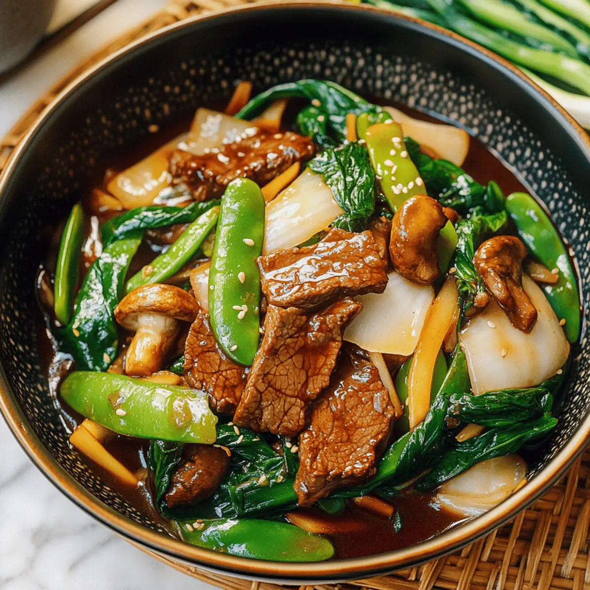 As the sizzling sound of meat hitting a hot wok fills the kitchen, I’m reminded of cozy weeknight dinners spent with family. This Quick and Easy Beef Stir-fry with Vegetables is my go-to dish when time is short but comfort food cravings strike. In just 40 minutes, you can whip up this vibrant meal that’s not only customizable to include your favorite vegetables but also packed with nutrition. Plus, it’s a fantastic way to steer clear of fast food while enjoying the bold flavors of homemade Chinese cuisine. Your tastebuds will thank you, and your busy schedule will too! Are you ready to elevate your dinner game with this delicious stir-fry? Why is this Beef Stir-fry special? Speedy Cooking: This dish takes just 30 minutes to prepare, making it perfect for busy weeknights or when you’re craving homemade food without the hassle. Customizable Goodness: You can easily switch out vegetables or proteins, so it adapts effortlessly to your tastes. Think vibrant bell peppers, hearty broccoli, or even tofu for a vegetarian option! Bold Flavors: A harmonious blend of soy sauces, garlic, and ginger creates a rich, savory flavor that’s hard to resist. Healthy Choice: Packed with nutrients from fresh vegetables, this stir-fry is a guilt-free way to enjoy takeout flavors. Crowd-Pleaser: Whether it’s a family dinner or entertaining friends, this Beef Stir-fry will impress everyone at the table, just like my Ground Beef Enchiladas. Comfort Food Reinvented: Say goodbye to takeout and hello to a fresher, healthier alternative that’s ready in no time! Dive into this succulent dish today! Beef Stir-fry with Vegetables Ingredients Here’s everything you need for a delicious Beef Stir-fry! For the Beef Flank Steak – Use flank, beef chuck (tenderize), or sirloin for the best texture. Cornstarch – Essential for tenderizing the beef during marination. Baking Soda – A little goes a long way; ¼ teaspoon enhances tenderness. Neutral Oil – Opt for vegetable, canola, or avocado oil for high-heat frying. For the Vegetables Bok Choy – A crunchy, nutritious choice; substitute with spinach or kale if desired. Bunashimeji Mushrooms – Adds umami flavor; feel free to swap with shiitake or your favorite mushrooms. Snap Peas – Sweet and crisp; snow peas are a great alternative. For the Sauce Shaoxing Wine – Enhances the dish’s flavor; dry sherry can be used if you’re out. Soy Sauces (Light & Dark) – Provide depth and color; use gluten-free tamari for a gluten-free option. Oyster Sauce – Rich flavor that balances the dish well; for vegan, try mushroom oyster sauce. Sesame Oil – Adds aromatic flavor; remember, a little goes a long way. For the Aromatics Garlic – Fresh garlic enhances the dish’s complexity for a burst of flavor. Ginger – Fresh is preferred, adding warmth and spice to the stir-fry. Now you’re all set to create a satisfying and flavorful Beef Stir-fry with Vegetables that will impress your loved ones! Step‑by‑Step Instructions for Beef Stir-fry with Vegetables Step 1: Marinate Beef In a mixing bowl, combine sliced flank steak, cornstarch, baking soda, a drizzle of neutral oil, and a splash of water. Mix thoroughly to coat the beef evenly, then cover and let it marinate for at least 30 minutes at room temperature, or store it in the refrigerator overnight for maximum tenderness and flavor. Step 2: Prep Vegetables While the beef marinates, wash and chop the bok choy into bite-sized pieces, slice the bunashimeji mushrooms, and trim the snap peas. Arrange all the vegetables on a plate, keeping them separate for easy access during cooking. This prep step is crucial for a smooth and efficient stir-fry process. Step 3: Make Sauce In a small bowl, whisk together warm water, light soy sauce, dark soy sauce, oyster sauce, sesame oil, and a touch of sugar. Stir until well combined, ensuring that the sugar dissolves completely. This savory sauce will bring the Beef Stir-fry with Vegetables to life, so have it ready to go! Step 4: Heat Wok Place your carbon steel wok over high heat and allow it to preheat until it’s lightly smoking, which should take about 3–5 minutes. A properly heated wok is essential for achieving that signature “wok hei” flavor, so resist the urge to add the ingredients until the wok is hot enough. Step 5: Sear Beef Add 2 tablespoons of neutral oil to the hot wok, swirling it to coat the surface. Spread the marinated beef in an even layer and let it sear without stirring for about 30 seconds. Flip the beef pieces and sear the other side for another 30 seconds until they develop a nice brown color. Step 6: Remove Beef Once the beef is beautifully seared, carefully remove the pieces from the wok and set them aside on a plate to rest. This step prevents overcooking the beef and keeps it tender and juicy for your Beef Stir-fry with Vegetables. Step 7: Cook Vegetables In the same hot wok, add a bit more oil if necessary, then toss in the minced garlic and ginger. Stir-fry for about 15 seconds until fragrant. Next, add the bunashimeji mushrooms and continue stirring for another 15 seconds to lightly cook them, allowing their flavors to bloom. Step 8: Add Vegetables Quickly incorporate the snap peas and bok choy into the wok, tossing everything together. Stir-fry for about 20 seconds, just until the bok choy wilts slightly but still retains its vibrant green color and crunch. This balance is vital for a delicious Beef Stir-fry. Step 9: Combine Pour the prepared sauce into the wok with the vegetables. Add the previously set-aside beef back into the wok, and mix everything until well coated. Allow the mixture to cook together for a minute, ensuring the flavors meld beautifully in each bite of your Beef Stir-fry with Vegetables. Step 10: Thicken Sauce For a luscious finish, prepare a cornstarch slurry by mixing cornstarch with a small amount of water. While stirring the stir-fry, drizzle in this slurry and cook for 20 seconds until the sauce thickens and be