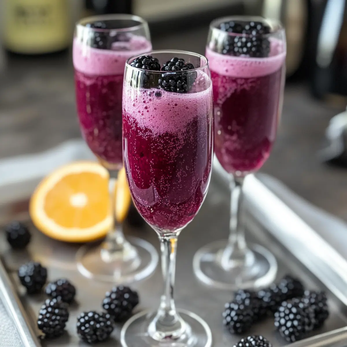 6. Serve the Blackberry Mimosas immediately while fresh and bubbly.