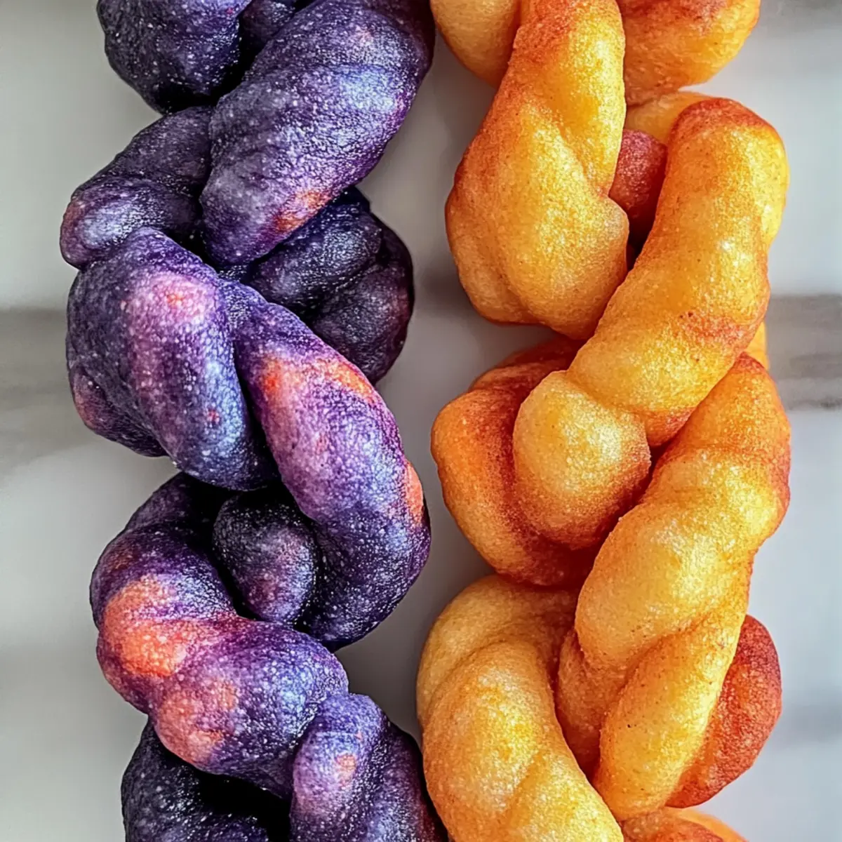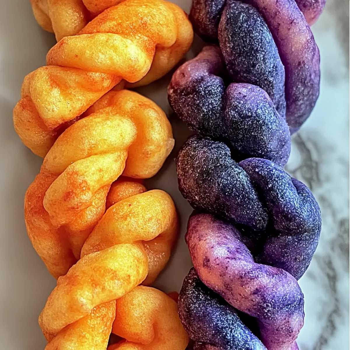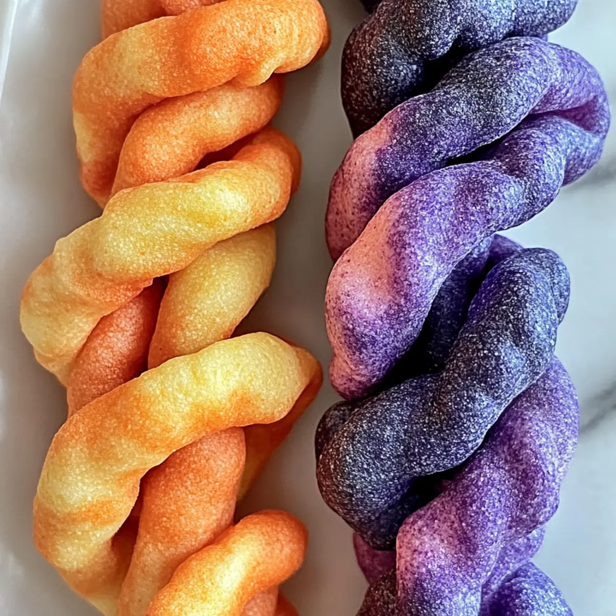 Every time I whip up a batch of these Colorful Blueberry & Carrot Twists for Dogs, I’m reminded of the joy on my pup’s face as they sniff out the healthy goodness. These vibrant treats are not just a feast for the eyes—they’re loaded with essential nutrients thanks to the wholesome ingredients like blueberries and carrots. Preparing these homemade goodies is incredibly easy, making it an absolute win-win for both you and your four-legged friend. Plus, they’re perfect for special occasions or just a delightful snack on a regular day. Ready to impress your furry companion with this simple yet nutritious recipe? Keep reading to discover how to bring a burst of color and flavor into their treat jar! Why Do Dogs Love These Treats? Nutritious Ingredients: These Blueberry & Carrot Twists are packed with essential vitamins from fresh blueberries and carrots, making every bite not just tasty but healthy for your pup. Vivid Colors: The vibrant hues make these treats irresistible and give your pet a visually appealing snack they’ve never seen before! Easy to Make: You’ll enjoy the simplicity of creating these at home with just a few wholesome ingredients, perfect for any skill level. Unique Flavor Combo: The blend of sweet carrots and tangy blueberries creates a delicious contrast that will have your fur baby begging for more. Customizable Fun: Feel free to experiment by adding dog-safe spices or substituting ingredients to personalize these treats for your pup’s taste. Crowd-Pleaser: Whether it’s a special occasion or just a regular day, these treats are sure to win your dog’s heart and keep their tails wagging! Blueberry & Carrot Twists Ingredients For the Dough • Oat Flour – This forms the base of your treats; whole wheat flour also works well for added nutrition. • Carrots – These not only bring sweetness but also gorgeous color; be sure to cook them until soft for easy mashing. • Blueberries – For that fruity burst of flavor and antioxidants; fresh or frozen, just thaw and puree them. • Egg – This helps bind everything together; for a vegan option, use flaxseed meal and water instead. • Water – Adjusts the dough consistency; add as needed to achieve a workable texture. Optional Flavor Enhancements • Ginger – A great addition for digestive benefits; just a pinch goes a long way! • Turmeric – Adds a warm color and anti-inflammatory properties; perfect for an extra health boost. Step‑by‑Step Instructions for Blueberry & Carrot Twists Step 1: Cook and Prepare Carrots Start by chopping your carrots into small pieces and boiling them in a pot of water for about 10–15 minutes until they are soft. Drain the carrots and let them cool slightly before mashing or pureeing them to achieve a smooth consistency. This vibrant orange base is essential for creating the colorful Blueberry & Carrot Twists that your dog will love. Step 2: Thaw and Puree Blueberries If you’re using frozen blueberries, take them out and allow them to thaw for a few minutes. Once softened, place them in a blender or food processor, and puree until smooth. This fruity blend will add both flavor and nutrients to the Blueberry & Carrot Twists, ensuring your pup has a delightful treat packed with goodness. Step 3: Mix the Carrot Dough In a mixing bowl, combine ½ cup of oat flour with the carrot puree and half of the egg, whisking until everything is well incorporated. Make sure the mixture is cohesive without being too sticky; if it feels dry, a bit of water can be added to adjust the consistency. This carrot dough will form the base for one of your colorful twists. Step 4: Create the Blueberry Dough In a separate bowl, combine ½ cup of oat flour with the prepared blueberry puree and the remaining half of the egg. Stir until you achieve a smooth and cohesive dough. This will be the second layer for your Blueberry & Carrot Twists, adding a sweet and tangy flavor that your furry friend won’t be able to resist. Step 5: Roll Out the Dough Once both doughs are ready, take a clean surface and sprinkle some oat flour to prevent sticking. Roll out each colored dough into long strips approximately 6 inches long and about a ¼ inch thick. Ensure both strips are of uniform thickness for even baking, which will give your Blueberry & Carrot Twists a beautiful appearance and delightful texture. Step 6: Twist the Two Doughs Together Take one orange carrot strip and one purple blueberry strip, aligning them side by side. Gently twist them together, ensuring to press the ends firmly to seal the two colors in place. This visual element not only makes the treats appealing but offers a fun, colorful chew that dogs adore. Step 7: Prepare to Bake Preheat your oven to 350°F (175°C) and line a baking sheet with parchment paper to prevent sticking. Arrange your twisted shapes on the baking sheet, leaving some space between each piece. This will allow them to bake evenly, resulting in those irresistible Blueberry & Carrot Twists for your dog. Step 8: Bake the Twists Place the baking sheet in the preheated oven and let the treats bake for 25–30 minutes. Keep an eye on them; they should become firm and turn slightly golden on the edges. This baking process locks in flavors and creates a crunchy exterior that complements the chewy inside of the Blueberry & Carrot Twists. Step 9: Cool and Store Once baked, remove the treats from the oven and let them cool completely on a wire rack. This essential step makes sure the treats are safe for your dog to enjoy. Once cooled, store the Blueberry & Carrot Twists in an airtight container at room temperature for up to a week, or freeze them for longer enjoyment. What to Serve with Blueberry & Carrot Twists for Dogs? Complement your furry friend’s treat time with delightful accompaniments that enhance the joy of these colorful snacks. Crunchy Veggie Sticks: Carrot or cucumber sticks make for a perfect fresh snack, adding a satisfying crunch and extra nutrients to y