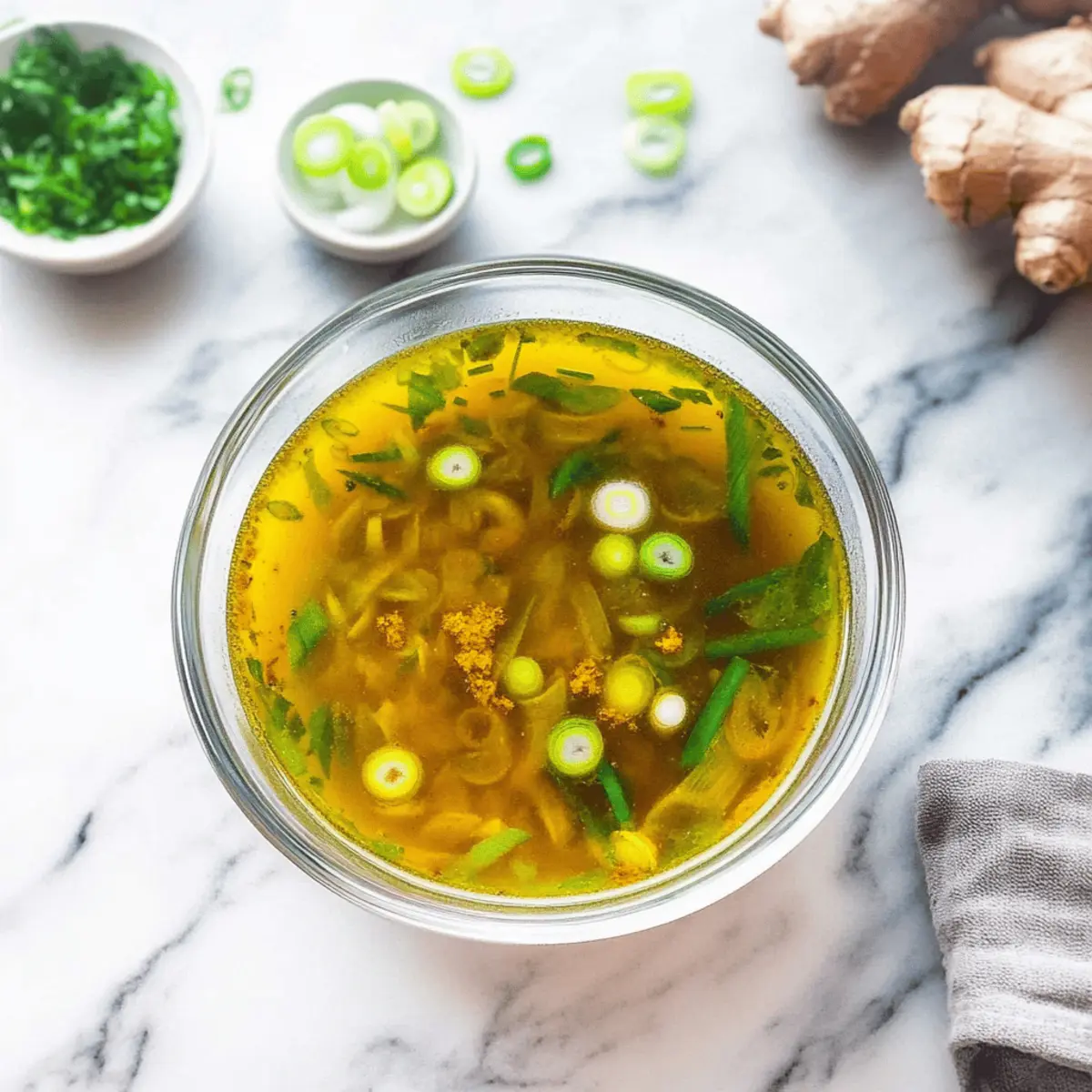 As the weather turns crisp and the days grow shorter, I’m always on the lookout for ways to shelter my family and myself from the seasonal sniffles. That’s where my 10-Minute Immune Boosting Broth comes in—a warm, soothing elixir that packs a punch of wellness. With its blend of garlic, ginger, and miso, this quick and nourishing broth not only elevates your comfort food game but also gently supports your immune system. Perfect for those busy days when comfort is key but time is short, it’s both dairy-free and gluten-free. Whether sipped on its own or used as a base for heartier soups, this easy recipe becomes your go-to for a cozy, healthful meal. Ready to discover a new favorite in your kitchen? Let’s dive in! Why is This Broth a Must-Try? Simplicity: This broth comes together in just 10 minutes, making it a perfect option for busy weeknights when you crave something nourishing but don’t have much time. Immunity Boost: Packed with garlic, ginger, and turmeric, it’s an excellent way to support your immune system, especially during cold seasons. Versatile Base: Use it on its own as a warm drink or as a flavorful base for stews and soups—endless possibilities await! Healthy Comfort: Enjoy this dairy-free and gluten-free elixir without any guilt, knowing it’s a healthful addition to your meal rotation. With this quick and tasty recipe, you’re on your way to cozying up with a bowl of wellness boost. Want more ways to enjoy wholesome dishes? Check out our guide on quick and healthy meals to keep your kitchen adventures exciting! Boosting Broth Ingredients For the Broth • Water – The foundation of your broth, providing hydration and a warm base. • Gluten-Free Mellow White Miso – Adds savory depth and beneficial probiotics; chickpea miso can be used for a soy-free option. • Garlic – Offers potent anti-viral properties and enhances flavor; grate it for maximum benefits. • Ginger – Provides warmth and natural anti-inflammatory effects; freshly grated ginger is preferred for flavor. • Scallion – Contributes a mild onion flavor; slice thinly for better incorporation into the broth. • Horseradish Root – Introduces a spicy kick and vitamin C; if not available, cayenne pepper can substitute. • Avocado Oil or Coconut Oil – Adds richness and aids in flavor balance; you can choose any neutral oil. • Raw Apple Cider Vinegar – Brightens up the broth and boosts digestion; opt for one that contains “the mother.” • Ground Turmeric – A powerful anti-inflammatory spice that provides color and health benefits. • Salt – Enhances flavors; adjust to your taste preferences. This Boosting Broth packs a punch of flavors and nutrients, making it the perfect quick meal for those chilly days! Step‑by‑Step Instructions for 10-Minute Immune Boosting Broth Step 1: Prepare Ingredients Start by grating the garlic, ginger, and horseradish root—this will maximize their flavors and benefits for your 10-Minute Immune Boosting Broth. Next, thinly slice the scallion, ensuring you have all your ingredients ready for a smooth cooking process. With everything prepped, you’re set to bring this nourishing elixir to life! Step 2: Combine Base In a large pot, pour in 8 cups of water, which serves as the essential foundation of your broth. Place the pot on the stove over medium heat; this will help warm up the water before adding the flavorful ingredients. Keep an eye on the pot as the water heats up, looking for small bubbles to form before moving on to the next step. Step 3: Add Ingredients Once the water is warm, stir in your gluten-free mellow white miso, grated garlic, ginger, scallion, horseradish, and ground turmeric. Mix well until the miso dissolves completely, creating a beautiful golden hue. This will take about 2–3 minutes and fill your kitchen with inviting aromas that signal the delicious broth is coming together. Step 4: Bring to Heat Reduce the heat to low, allowing the mixture to gently warm without boiling. It’s important to avoid boiling to preserve the probiotics in the miso, which is key for the health benefits of this Boosting Broth. Allow this soothing blend to simmer for around 5 minutes, stirring occasionally, ensuring everything is well integrated. Step 5: Flavor Adjustment After heating, stir in your choice of avocado or coconut oil, followed by the raw apple cider vinegar. This adds richness and brightness to your broth. Season with salt to taste, adjusting the flavors to your preference. Take a moment to taste the broth, appreciating the balance of savory and nutritious elements that make this elixir a delight to sip or use as a base. Step 6: Serve Pour the comforting broth into mugs or bowls and savor it hot. It can also serve as a flavorful base for heartier soups or stews if you desire. Enjoy the warmth and health benefits packed inside this 10-Minute Immune Boosting Broth, perfect for cozy evenings or when you need an uplifting treat. Expert Tips for Boosting Broth Stay Low Heat: Keep the broth on low heat to avoid boiling the miso, preserving its probiotics and full health benefits. Grate for Flavor: Always grate garlic, ginger, and horseradish. This releases their full flavors and nutrients, enhancing the overall potency of your Boosting Broth. Taste Test: Don’t forget to taste your broth before serving! Adjust salt and acidity to find the perfect balance that suits your palate. Storage Know-How: Store any leftover broth in airtight containers in the fridge for up to 5 days or freeze for later use. This makes reheating a breeze! Spice It Up: Feel free to customize the spice levels! Add more horseradish or cayenne pepper to suit your heat preference, ensuring your broth is exactly how you like it. How to Store and Freeze Boosting Broth Fridge: Store your cool Boosting Broth in an airtight container for up to 5 days. This keeps the flavors intact and makes it ready for quick reheating. Freezer: For longer storage, freeze the brot