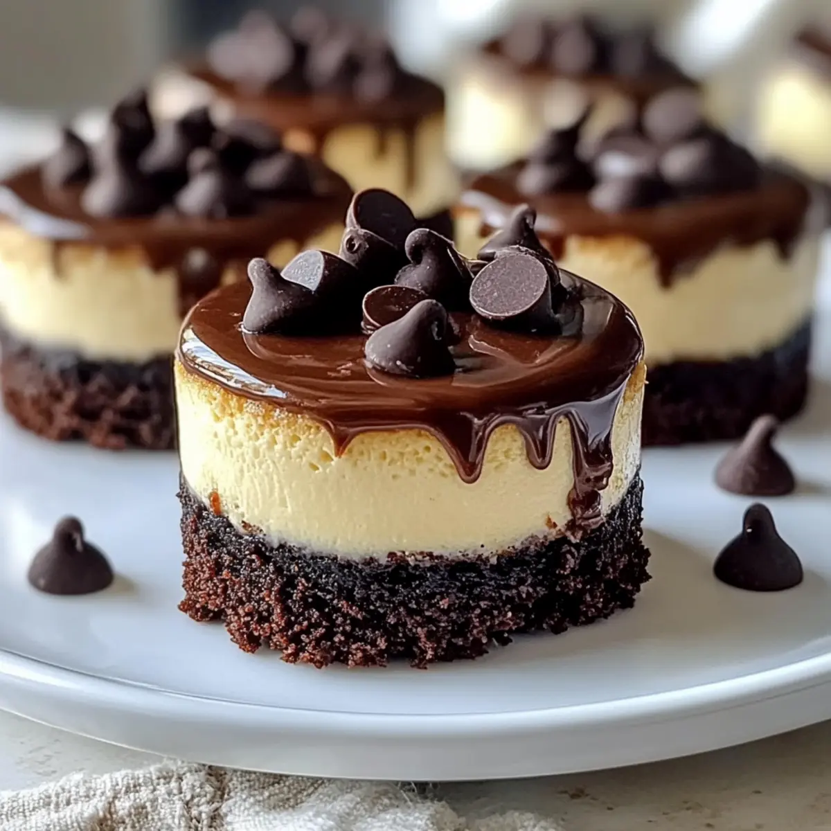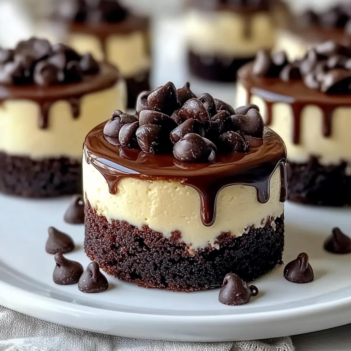 7. Drizzle ganache over cooled cheesecakes and sprinkle mini chocolate chips on top for added texture and appeal.