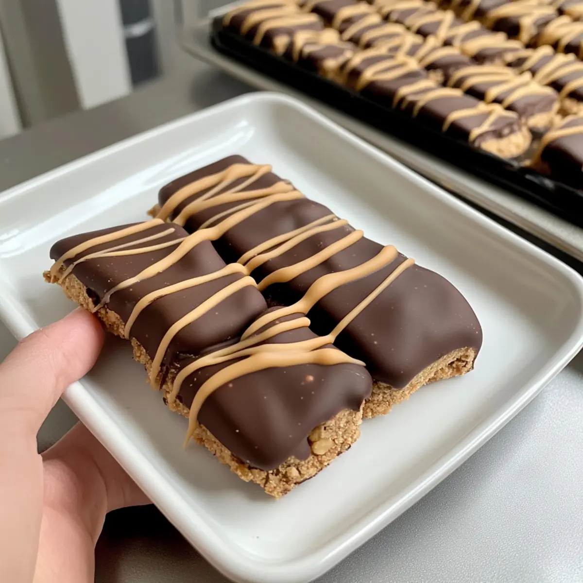 “Can you believe how easy it is to create a tasty dessert without turning on the oven?” That’s what I thought when I first whipped up these No Bake Buckeye Graham Crackers! Combining a crunchy graham cracker base with creamy peanut butter and a velvety chocolate coating, this recipe is a dream come true for anyone who craves the perfect balance of flavors and textures. Not only do these delightful treats come together in no time, but they also make for an incredibly satisfying snack or dessert for gatherings—no baking required! Picture impressing your friends and family with minimal effort while indulging in a treat that nods to the beloved classic buckeye candy. Curious how to make these easy and delicious snackers? Let’s dive into the recipe! Why are Buckeye Graham Crackers so amazing? Irresistible combination: The mixture of creamy peanut butter and rich chocolate is a match made in dessert heaven. No-bake convenience: In just a few minutes, you can whip up a delightful treat without even touching the oven. Perfectly customizable: Adjust flavors easily with substitutions, like swapping almond butter or using different chocolate types. Crowd-approved treat: These are sure to please everyone, making them a hit at parties or family gatherings. Versatile snacking: Enjoy them as a sweet snack or a dessert; they perfectly satisfy those cravings! For more tried-and-true no-bake recipes, check out our fantastic collection! Buckeye Graham Crackers Ingredients For the Base Graham Crackers – Essential for that crunchy foundation; opt for gluten-free versions if needed. Butter – Adds richness and helps bind everything together; substitute with coconut oil for a dairy-free option. For the Peanut Butter Filling Creamy Peanut Butter – The star ingredient that provides a luscious, creamy texture; crunchy peanut butter can be used for added crunch. Powdered Sugar – Sweetness is key here, and it stabilizes the filling; no substitutions recommended. Vanilla Extract – A little splash enhances the flavor; almond extract can provide a delightful twist. For the Chocolate Coating Semi-Sweet Chocolate Chips – Create a rich, velvety layer; dark chocolate chips can intensify the flavor beautifully. Vegetable Oil – Helps melt the chocolate smoothly; coconut oil offers a unique taste if you’re looking to switch things up. For the Drizzle Peanut Butter Chips – Perfect for topping with an extra layer of peanut butter goodness; caramel chips can create a sweet alternative. Step‑by‑Step Instructions for No Bake Buckeye Graham Crackers Step 1: Prepare the Base Begin by breaking graham crackers in half, then arrange them in a single layer on a lined baking sheet. This will serve as the sturdy base for your No Bake Buckeye Graham Crackers. Ensure they’re placed close together for easy assembly later. Step 2: Mix the Filling In a large mixing bowl, combine creamy peanut butter, softened butter, powdered sugar, and vanilla extract. Using an electric mixer, blend the ingredients at medium speed until the mixture is smooth and creamy, which should take about 2–3 minutes. This will create a deliciously rich filling to complement your graham crackers. Step 3: Assemble the Treats Scoop out about a tablespoon of the peanut butter mixture and form it into a ball. Gently flatten each ball and place it on top of the graham cracker halves. Repeat this process until all graham crackers are topped with the flavorful filling. Aim for an even layer to fully enjoy that creamy peanut butter bliss! Step 4: Melt the Chocolate In a microwave-safe bowl, combine semi-sweet chocolate chips with 3 tablespoons of vegetable oil. Microwave the mixture in 30-second intervals, stirring between each round, until completely melted and smooth, which should take about 1–2 minutes total. This glossy, velvety chocolate will beautifully coat your Buckeye Graham Crackers. Step 5: Coat the Cracker Base Using a fork, dip each filled graham cracker into the melted chocolate, ensuring it’s fully coated. Allow any excess chocolate to drip back into the bowl, then place the coated treat back onto the lined baking sheet. Make sure they’re evenly spaced, so the chocolate doesn’t stick together. Step 6: Drizzle with Peanut Butter For added flair, melt the peanut butter chips with 1 tablespoon of vegetable oil in the microwave. Once melted and smooth, use a small spoon or piping bag to drizzle the mixture over the chocolate-coated graham crackers. This additional layer creates a delightful presentation and an extra burst of peanut butter flavor! Step 7: Set and Serve Chill the assembled No Bake Buckeye Graham Crackers in the refrigerator for at least 30 minutes to let the chocolate set firmly. Once firm, they’re ready to be enjoyed as a sweet snack or dessert. Store any extras in an airtight container in the refrigerator for up to a week. Make Ahead Options These No Bake Buckeye Graham Crackers are perfect for busy home cooks who want to save time without sacrificing flavor! You can prepare the peanut butter filling and assemble the graham crackers up to 24 hours in advance. Simply mix the filling and spread it on the graham crackers, then store the assembled treats in an airtight container in the refrigerator. For the best results, melt the chocolate and coat the graham crackers just before serving to ensure that the chocolate remains crisp and luscious. This way, when it’s time to indulge, all you’ll need to do is coat and chill them for a delightful treat that’s just as delicious as if made fresh! Buckeye Graham Crackers Variations & Substitutions Feel free to get creative with these delicious Buckeye Graham Crackers and customize them to suit your taste! Almond Butter: Swap creamy peanut butter for almond butter for a unique nutty flavor. This subtle change adds a delightful twist to the classic recipe. Crunchy Texture: Use crunchy peanut butter instead of creamy for added texture. The extra crunch elevates each