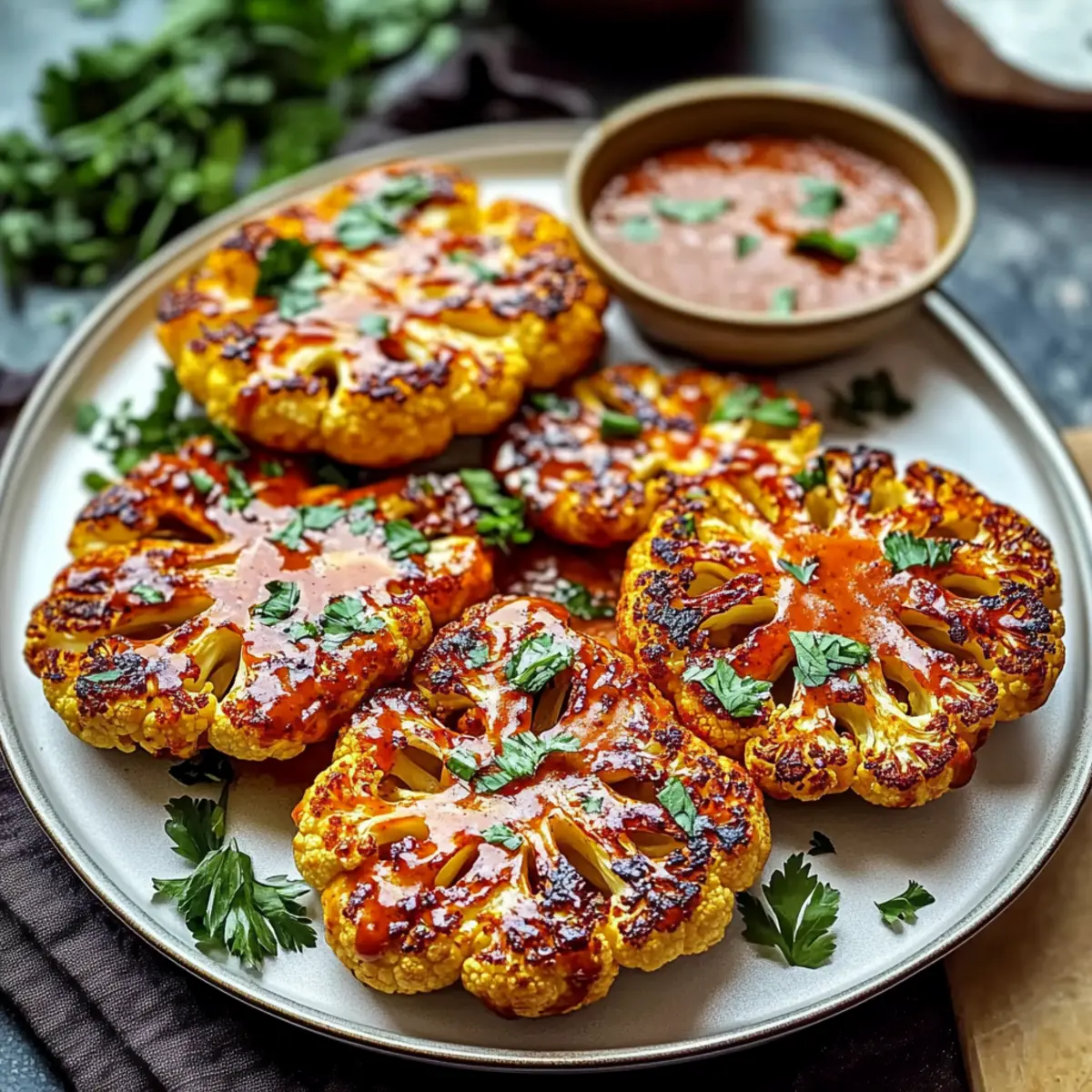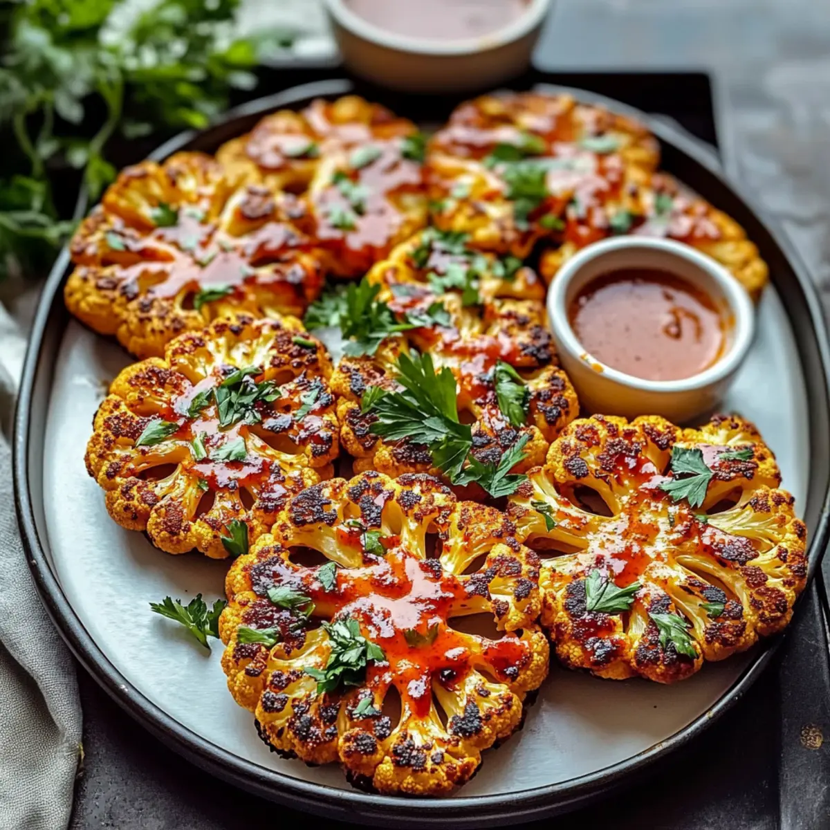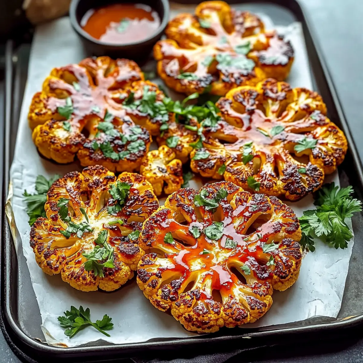 As I stood in my kitchen juggling spices and fresh produce, I knew there was a craving for something bold and exciting—something like Buffalo Cauliflower Steaks. This vegan twist on the classic game-day favorite transforms humble cauliflower into a crispy, tender centerpiece that will have everyone clamoring for seconds. Not only are these steaks packed with flavor, but they also offer a healthy, gluten-free, low-carb alternative to conventional wings. Perfect for a casual weeknight dinner or as a show-stopping dish at your next gathering, you’ll love how easy they are to whip up. What’s your favorite sauce to drizzle on top for that perfect finish? Why Choose Buffalo Cauliflower Steak? Bold Flavor: This recipe is bursting with rich buffalo flavor that will satisfy even the most devoted wing fans. Crispy Texture: Achieve a delightful crunch on the outside while keeping the inside tender and juicy—perfectly reminiscent of a steak! Versatile Serving: Pair with a zesty vegan ranch dressing or choose different dipping sauces like tahini for an exciting spin. Nutrient-Rich: Packed with vitamins and low in calories, this dish is not just tasty but also a healthy option for all your gatherings. Quick & Easy: Ready in under an hour, it’s a time-saving hero for busy weeknights or entertaining friends. Crowd-Pleaser: Whether at a game day party or a casual dinner, these cauliflower steaks will impress everyone at the table. For more bold flavors, check out my Buffalo Chicken Sliders for another crowd favorite! Buffalo Cauliflower Steak Ingredients • Here’s everything you need to create these delicious Buffalo Cauliflower Steaks. For the Steaks Cauliflower – A large, fresh head is best to create thick, satisfying steaks. Olive Oil – Adds moisture and enhances flavor; avocado oil works well too. Smoked Paprika – Provides a smoky depth; substitute with regular paprika for a milder taste. Garlic Powder – Elevates flavor; fresh garlic can be used for a more intense kick. Cayenne Pepper – Adds that signature heat; feel free to omit for a milder dish. Salt & Black Pepper – Essential for seasoning; sea salt offers added texture and flavor depth. For the Buffalo Sauce Buffalo Sauce – The star of the dish for an authentic spicy flavor; consider homemade for a personal touch. Vegan Butter – Adds richness to the sauce; coconut oil can be a great dairy-free alternative. Apple Cider Vinegar – Offers a tangy kick; lemon juice is a suitable substitute if needed. Maple Syrup (optional) – Balances the spice with sweetness; honey is perfect for non-vegan options. For Garnishing Fresh Parsley or Chives – Brightens your dish with color and freshness; a lovely finishing touch! Step‑by‑Step Instructions for Buffalo Cauliflower Steak Step 1: Preheat the Oven Begin by preheating your oven to 425°F (220°C). This temperature will ensure that your Buffalo Cauliflower Steaks roast to crispy perfection. While the oven is heating, grab your baking sheet and line it with parchment paper to prevent sticking and facilitate easy cleanup. Step 2: Prepare the Cauliflower Rinse the large head of cauliflower under cool water, removing any dirt. Carefully cut off the leaves and trim the stem while keeping the core intact. This will help the cauliflower hold together as you slice it. Aim for thick, even cuts to create hearty cauliflower steaks that will stand up to roasting. Step 3: Cut the Cauliflower Steaks Slice the cauliflower into 1 to 1½ inch thick steaks, yielding 2 to 3 full steaks along with some smaller florets. To avoid breaking the steaks, use a sharp knife and slice gently. Keep the leftover florets to roast alongside the steaks for an extra treat! Step 4: Prepare the Seasoning Mixture In a mixing bowl, combine olive oil, smoked paprika, garlic powder, cayenne pepper, salt, and black pepper. Stir the mixture well until it’s fully blended. The olive oil will not only flavor the cauliflower but also help achieve that golden-brown color during roasting, so be generous with the coating! Step 5: Coat the Cauliflower Steaks Using a brush or your hands, evenly coat both sides of the cauliflower steaks with the prepared seasoning mixture. Place the coated steaks on your prepared baking sheet, ensuring they have enough space between them for even roasting. This will give each Buffalo Cauliflower Steak that fabulous crispy exterior! Step 6: Roast the Cauliflower Place the baking sheet in the preheated oven and roast the cauliflower steaks for 20–25 minutes. Halfway through, carefully flip each steak to ensure they cook evenly. You’re looking for a beautiful golden brown on the edges and tenderness when pierced with a fork. Step 7: Prepare the Buffalo Sauce While the cauliflower roasts, start making the buffalo sauce. In a saucepan over low heat, mix the hot sauce, melted vegan butter, apple cider vinegar, and optional maple syrup. Stir continuously until well combined and heated through; this should only take a few minutes. Adjust the spice to your preference by adding more hot sauce or syrup for sweetness. Step 8: Apply Buffalo Sauce to Steaks Once the cauliflower steaks are roasted to perfection, remove them from the oven. Generously brush the buffalo sauce over each steak for that signature tangy kick. Return the cauliflower to the oven and bake for an additional 5–10 minutes, allowing the sauce to caramelize slightly for an added depth of flavor. Step 9: Garnish and Serve After the final baking, remove the Buffalo Cauliflower Steaks from the oven and let them cool for a moment. Garnish with freshly chopped parsley or chives for a vibrant touch. Serve them alongside your favorite dips, like vegan ranch dressing, and crunchy vegetable sticks for a delicious, healthy meal. Buffalo Cauliflower Steak Variations Feel free to personalize your Buffalo Cauliflower Steaks with these tasty twists, making each bite as exciting as the last! Spice Swap: Try adding cumin or chili powder to the s