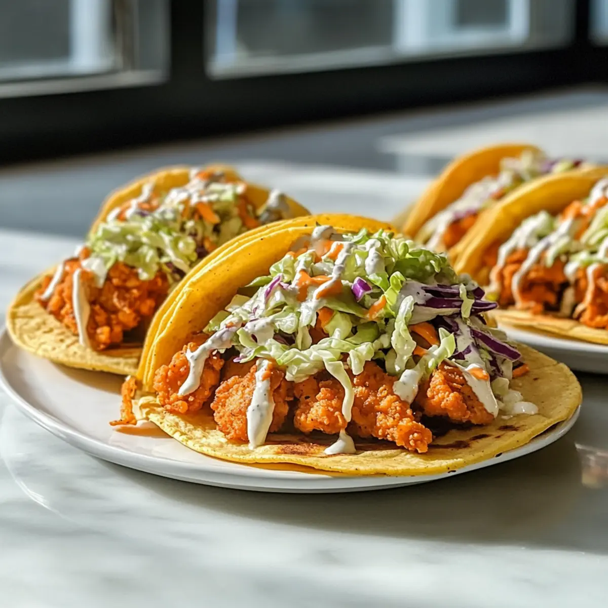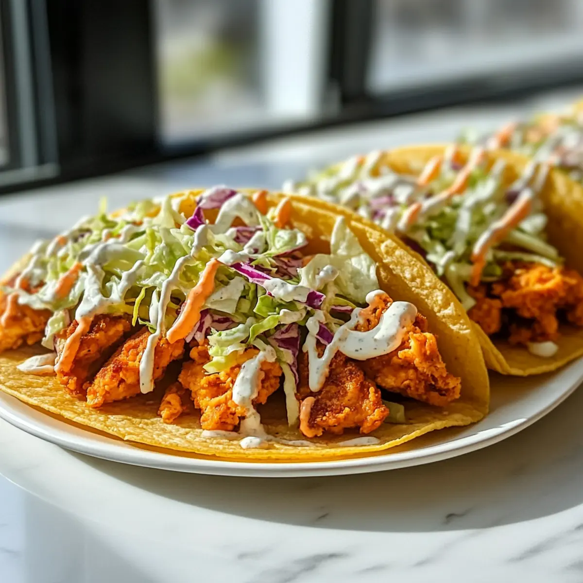 As the enticing aroma of spicy buffalo chicken filled the kitchen, I couldn’t help but feel a rush of excitement—it was time to spice up our weeknight dinners! Enter the Buffalo Chicken Smash Burger Tacos, a fusion that beautifully merges the heartiness of burgers with the fun, handheld nature of tacos. With just 25 minutes of prep and cook time, this recipe isn’t just quick; it’s also incredibly customizable to fit everyone’s tastes—whether you’re craving a low-carb option with lettuce wraps or a creamy twist with ranch slaw. Each bite delivers zesty flavors, making these tacos a savory indulgence without the guilt. Ready to elevate your dinner game and leave the fast-food behind? Let’s dive into the deliciousness! Why Are These Tacos a Must-Try? Speedy Preparation: In just 25 minutes, you can serve up a delicious meal, perfect for busy weeknights. Customizable Flavors: Tailor this recipe to your taste, whether opting for low-carb lettuce wraps or adding a spicy kick with jalapeños. Crowd-Pleasing Appeal: These Buffalo Chicken Smash Burger Tacos are sure to impress family and friends, making them a fantastic choice for gatherings. Juicy Texture: Enjoy the perfect combination of crispy chicken and cool, creamy ranch slaw in every bite. Lean Protein: Packed with ground chicken, these tacos offer a healthier alternative to typical fast food without sacrificing flavor. Elevate your dinner table with these unique tacos that combine classic flavors and modern twists! If you love spicy dishes, you might also enjoy Buffalo Chicken Sliders. Buffalo Chicken Smash Burger Tacos Ingredients For the Chicken Mixture Ground Chicken – Lean option for a lighter meal that’s high in protein. Buffalo Wing Sauce – Adds spiciness; swap with a milder sauce for less heat. Garlic Powder – Enhances savory flavor; fresh garlic can give a bolder taste. Onion Powder – Adds sweetness and depth; fresh onions could be used instead. Smoked Paprika – Introduces a smoky depth; regular paprika works as an alternative. Himalayan Salt – Enhances flavor; sea salt makes for a great substitute. Black Pepper – Adds heat and seasoning; feel free to use any ground pepper. For Assembly Tortillas (Corn or Flour) – Serves as a base; use lettuce wraps for a low-carb twist. Cooking Spray or Oil – Prevents sticking during cooking. For the Ranch Slaw Shredded Cabbage – Provides the perfect crunch and freshness. Grated Carrots – Adds vibrant color and natural sweetness to the slaw. Ranch Dressing – Offers a creamy topping; substitute with blue cheese or dairy-free options as needed. Dill Relish – Adds a tangy crunch; can be omitted for a simpler flavor profile. Get ready to whip up these Buffalo Chicken Smash Burger Tacos and savor every delicious bite! Step‑by‑Step Instructions for Buffalo Chicken Smash Burger Tacos Step 1: Prepare the Ranch Slaw In a bowl, combine shredded cabbage, grated carrots, ranch dressing, and dill relish. Toss everything together until well-coated, creating a fresh and crunchy slaw. Cover the bowl with plastic wrap and refrigerate for about 10 minutes to let the flavors meld and enhance the taste, making it a perfect topping for your Buffalo Chicken Smash Burger Tacos. Step 2: Mix Chicken Mixture In a separate bowl, combine ground chicken with buffalo wing sauce, garlic powder, onion powder, smoked paprika, Himalayan salt, and black pepper. Mix gently until just combined to maintain a light and tender texture in your patties. Be careful not to overmix, as this can make the chicken tough. Set aside while you heat the griddle. Step 3: Cook Chicken Patties Heat a griddle or large skillet over medium-high heat and lightly coat it with cooking spray or oil. Once hot, form the chicken mixture into loose balls, then smash each ball down onto the heated surface, creating flat patties. Cook them for about 3-4 minutes until golden-brown on the bottom and cooked through, flipping carefully for even browning. Step 4: Warm Tortillas While the chicken is cooking, lightly oil another skillet over low heat. Add the tortillas, warming each for about 30 seconds on each side until they are soft and pliable. Alternatively, you can warm them in the microwave in a damp paper towel for about 15-20 seconds. This step enhances the taco experience for your Buffalo Chicken Smash Burger Tacos. Step 5: Assemble Tacos Once the chicken patties are cooked and the tortillas are warmed, place one chicken patty on each tortilla. Top generously with the chilled ranch slaw and drizzle additional ranch dressing or buffalo sauce over the top to suit your taste. Feel free to be creative with your toppings for a delicious customization in your Buffalo Chicken Smash Burger Tacos. Step 6: Serve Warm Arrange the assembled tacos on a serving platter, ready to delight your family or guests. Enjoy them warm for the best flavor and texture combination, experiencing the spicy buffalo chicken and cool ranch slaw in every bite. Perfect for a fun weeknight dinner or a gathering, these Buffalo Chicken Smash Burger Tacos are sure to impress! How to Store and Freeze Buffalo Chicken Smash Burger Tacos Fridge: Store cooked chicken patties and ranch slaw separately in airtight containers for up to 3 days to maintain freshness and flavor. Freezer: Freeze chicken patties in a single layer on a baking sheet, then transfer to a zip-top bag for up to 3 months. Reheat thoroughly before serving. Reheating: To reheat, place the patties in a skillet over medium heat for about 5 minutes, or microwave on a plate covered with a damp paper towel for 1-2 minutes until warmed through. Storage Tip: Assemble tacos just before serving to keep tortillas crisp and slaw fresh. What to Serve with Buffalo Chicken Smash Burger Tacos? Elevate your taco night with these delicious side dishes and drinks that perfectly complement the zesty flavors of your tacos. Crispy Sweet Potato Fries: Their sweetness contrasts nicely with the spicy buffalo chic