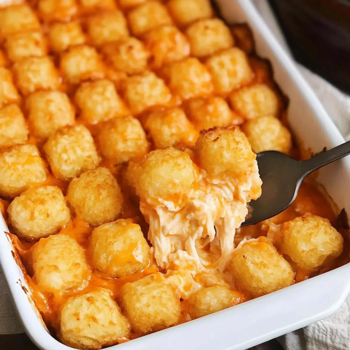 Hearty Comfort: With its creamy chicken base and crunchy tater tot topping, this dish is the epitome of comfort food, bringing warmth and satisfaction in every bite.