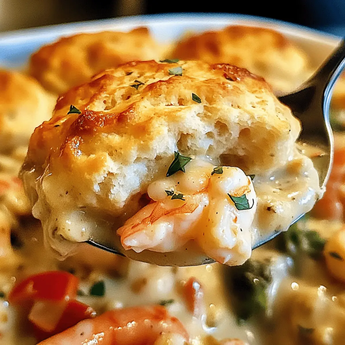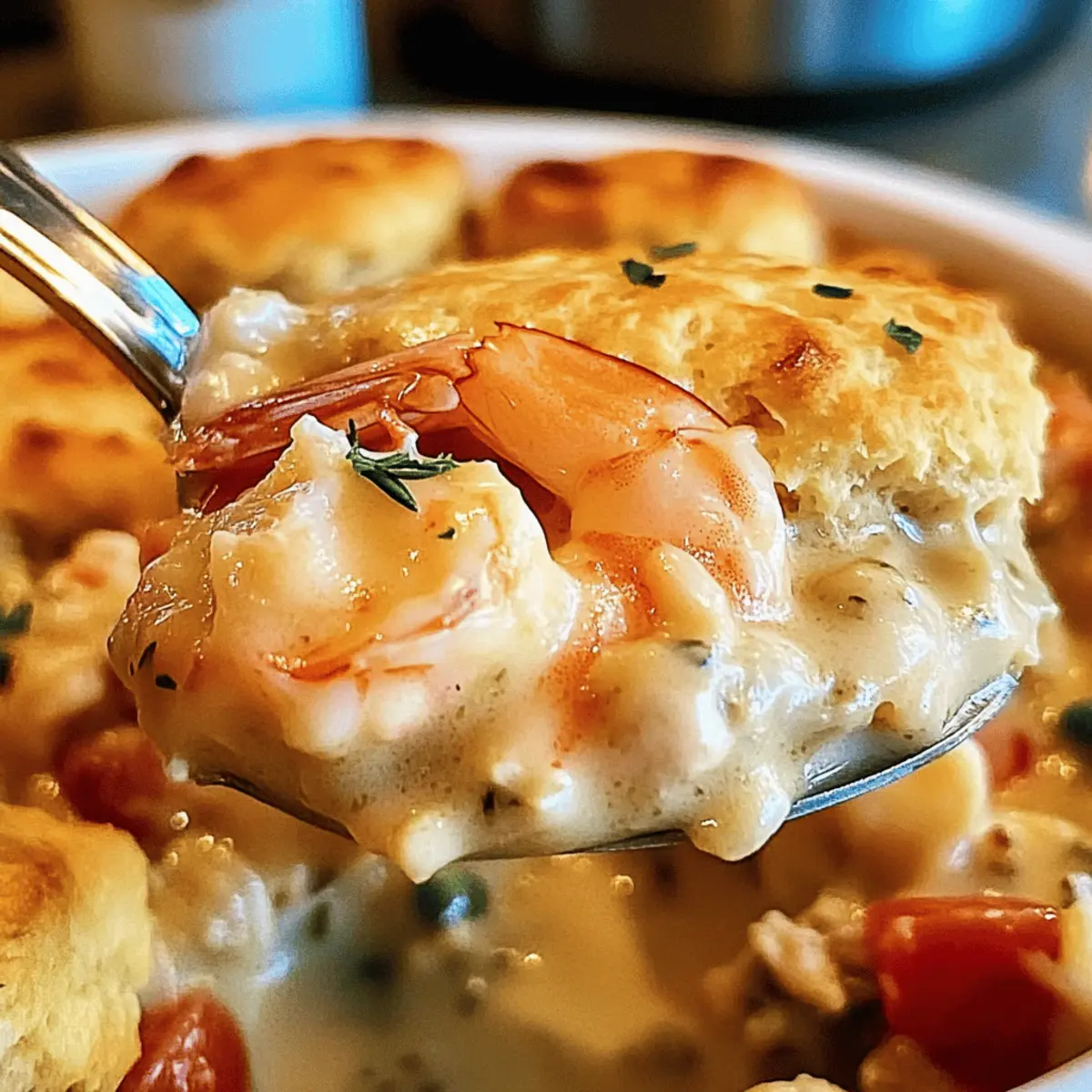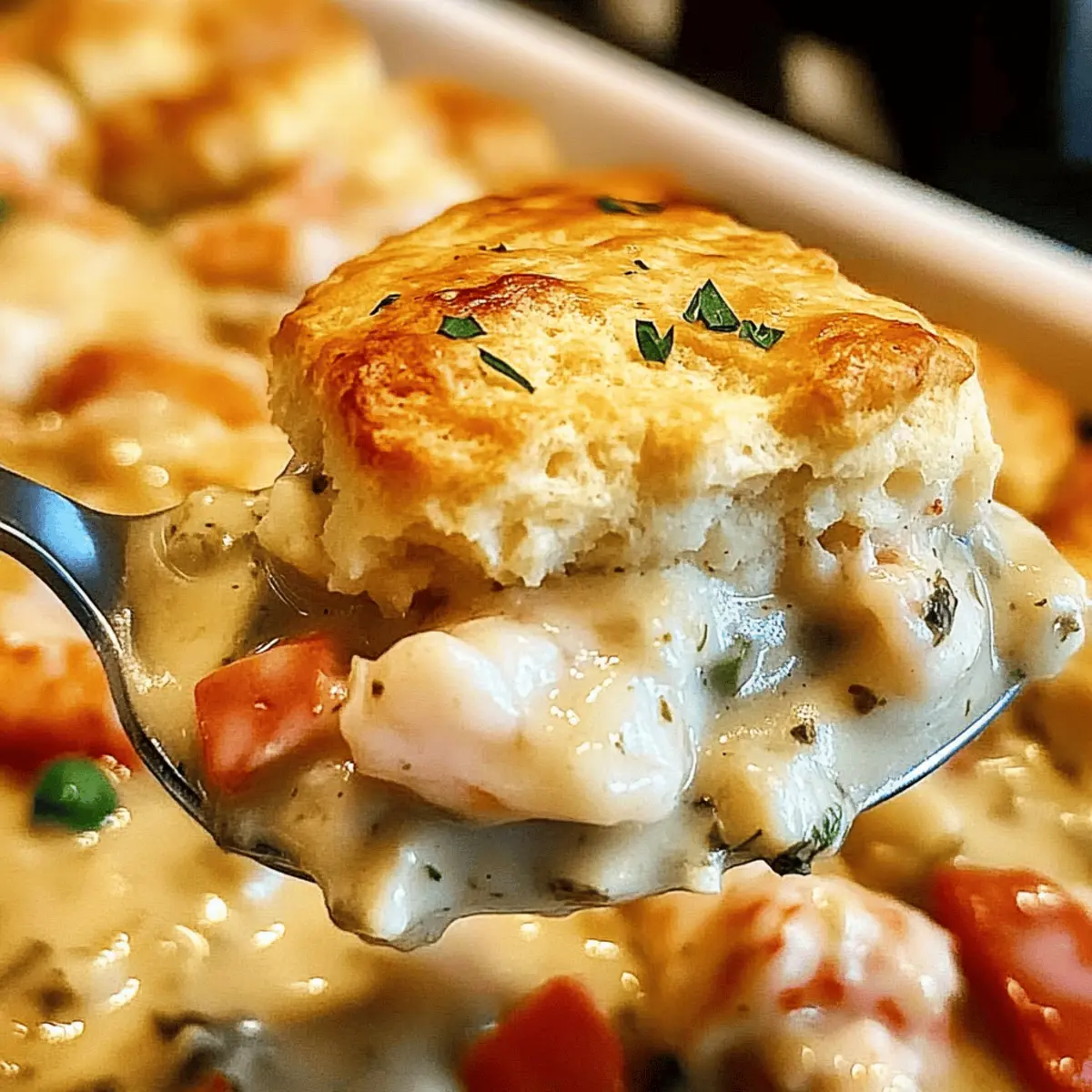 Every time I whip up this Cheddar Bay Biscuit Seafood Pot Pie, I’m greeted with an enchanting mix of savory scents that whisk me away to a cozy seaside diner. Juicy shrimp and sweet crab mingle in a creamy filling, all topped with the lightest, fluffiest cheddar biscuits you can dream of. This is comfort food redefined! Not only is it a joy to prepare, but it’s also a delightful crowd-pleaser that makes dinner feel like a special occasion. Plus, it’s a fantastic way to elevate that classic biscuit flavor into something truly unforgettable. Ready to dive into a warm bowl of happiness? Let’s get cooking! Why is this pot pie so special? Comforting and familiar, the Cheddar Bay Biscuit Seafood Pot Pie offers a warm embrace that will make everyone feel at home. Easily customizable, you can switch up the seafood or add your favorite veggies for a unique twist. Deliciously creamy, the filling boasts a rich flavor that rivals any restaurant dish. Perfect for gatherings, this pot pie is always a hit at family dinners and celebrations. Plus, with minimal prep and simple ingredients, it’s a breeze to whip up when you’re short on time. Pair it with a refreshing salad or some garlic bread for a complete meal, and you’re set for cozy nights in! Cheddar Bay Biscuit Seafood Pot Pie Ingredients For the Filling Shrimp – Use fresh or frozen, peeled and deveined shrimp for ease in preparation. Lump Crab Meat – Adds sweetness and a delicate texture; fresh or canned options work just fine. Frozen Mixed Vegetables – Offers color and nutrition; fresh vegetables can enhance the freshness of the dish. Butter – Perfect for sautéing and enriching the filling; substitute with olive oil for a lighter version. All-Purpose Flour – Thickens the creamy sauce; gluten-free flour can be a great alternative for those with dietary restrictions. Seafood Stock – The flavorful base for your sauce; chicken or vegetable broth could be suitable substitutes. Heavy Cream – Ensures a rich and creamy texture; opt for milk if you’re looking for a lighter sauce, but it may alter the creaminess. Garlic Powder – Imparts depth of flavor; fresh garlic can be substituted (1 clove = 1/8 tsp powder). Onion Powder – Adds a savory note; use fresh onion for a fresher kick (1/4 small onion = 1 tsp powder). Dried Thyme – Gives an herbal essence; fresh thyme can work (use three times the amount). Salt and Pepper – Essential for seasoning; adjust to your taste preference. For the Biscuit Topping Cheddar Bay Biscuit Mix – The perfect base for the flavorful biscuit topping; feel free to make your own biscuit mix for a personal touch. Shredded Cheddar Cheese – Enhances the biscuit topping flavor; a blend of cheeses can offer extra delight. Milk (for biscuits) – Helps to achieve the right dough consistency; consider non-dairy milk as a substitute. This Cheddar Bay Biscuit Seafood Pot Pie brings comfort and flavor together, creating a dish that’s perfect for cozy nights. Get ready to impress your family and friends with this delightful meal! Step‑by‑Step Instructions for Cheddar Bay Biscuit Seafood Pot Pie Step 1: Preheat Your Oven Begin by preheating your oven to 375°F (190°C). This ensures that your Cheddar Bay Biscuit Seafood Pot Pie bakes evenly, achieving that perfect golden topping. While the oven warms up, gather your ingredients and prepare your workspace for a smooth cooking experience. Step 2: Sauté the Shrimp In a large skillet over medium heat, melt some butter until bubbly. Add in the peeled and deveined shrimp, cooking them for about 3 to 4 minutes, or until they turn a lovely pink color. This step infuses the pot pie with a rich flavor while also ensuring your seafood is perfectly tender. Step 3: Combine the Seafood and Vegetables Once the shrimp are cooked, stir in the lump crab meat and frozen mixed vegetables, cooking for an additional 2 minutes. This adds delicious sweetness and vibrant color to your filling. After the vegetables start to soften, it’s time to incorporate the flour to evenly coat those succulent ingredients. Step 4: Create the Creamy Filling Gradually pour in the seafood stock and heavy cream while stirring continuously. Cook this mixture for about 5 minutes; it should start to simmer and thicken to a luscious consistency. The creamy base enhances the flavors of your Cheddar Bay Biscuit Seafood Pot Pie, bringing everything together beautifully. Step 5: Season the Filling Remove the skillet from heat and add garlic powder, onion powder, dried thyme, salt, and pepper to taste. Stir well to distribute the seasonings throughout the creamy filling, ensuring every bite of your pot pie is packed with flavor. Step 6: Transfer the Filling to Baking Dish Pour the creamy seafood filling into a greased 9×13-inch baking dish, spreading it evenly across the bottom. This layer will be the heart of your Cheddar Bay Biscuit Seafood Pot Pie, creating a warm, savory base topped with biscuit goodness. Step 7: Prepare the Biscuit Dough In a separate mixing bowl, combine the Cheddar Bay biscuit mix with shredded cheddar cheese and milk. Stir gently until just combined, being careful not to overwork the dough. A light touch will result in fluffy biscuits, perfect for topping off your pot pie. Step 8: Dollop the Biscuit Topping Spoon dollops of the biscuit mixture over the seafood filling in the baking dish. It’s okay if some of the filling peeks through; this will create a delightful texture when baked. Each dollop should be roughly the same size for even cooking and a beautiful presentation. Step 9: Bake to Perfection Place the baking dish in your preheated oven and bake for 25-30 minutes. Keep an eye on it; the topping should turn a gorgeous golden brown and the filling should be bubbling, indicating your Cheddar Bay Biscuit Seafood Pot Pie is ready to come out. Step 10: Cool and Serve After removing the pot pie from the oven, let it cool for about 15 minutes. This resting period allo