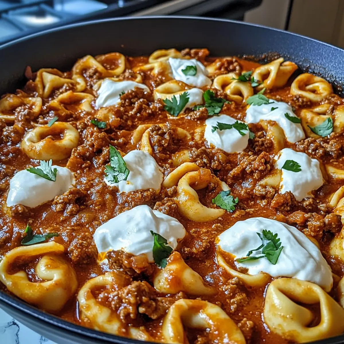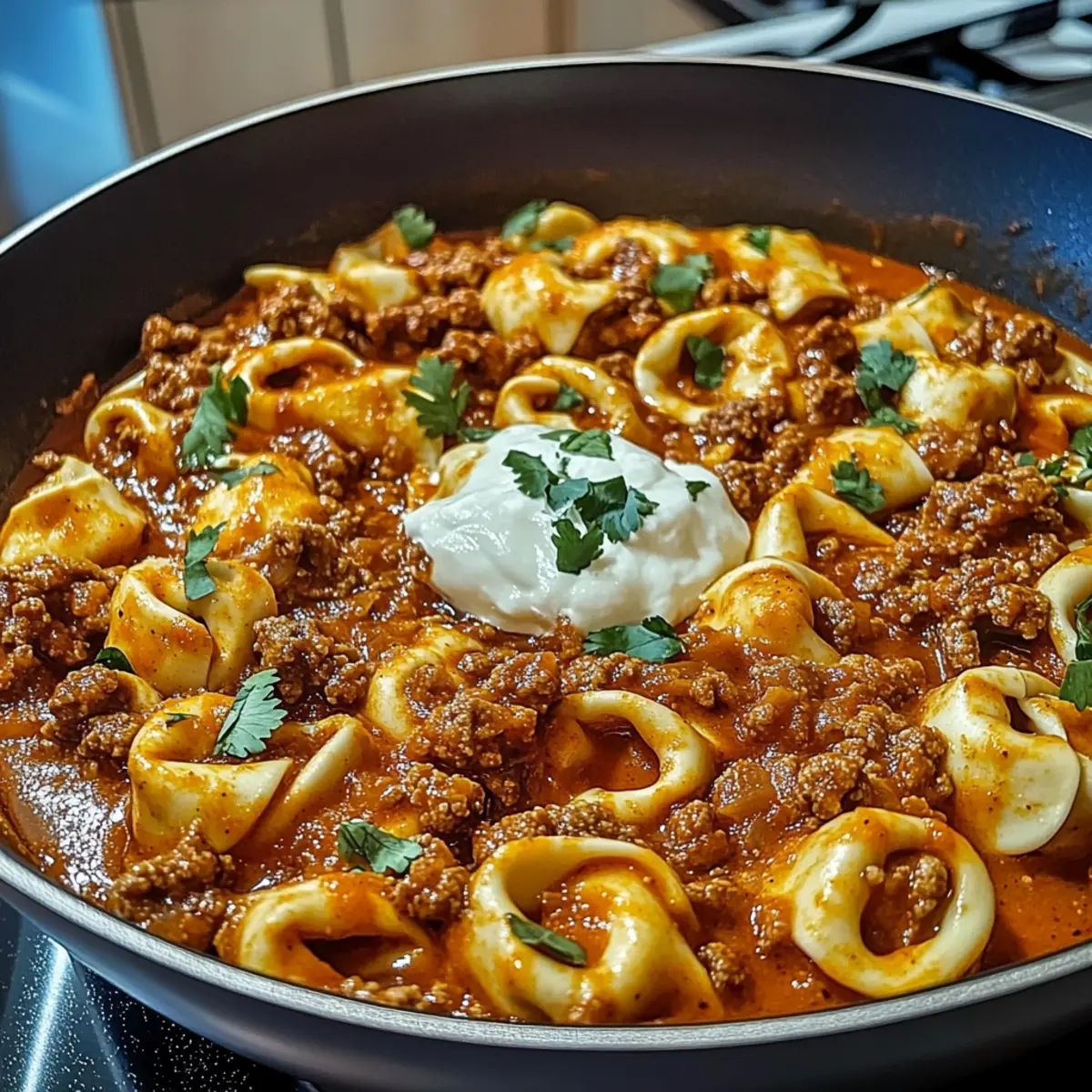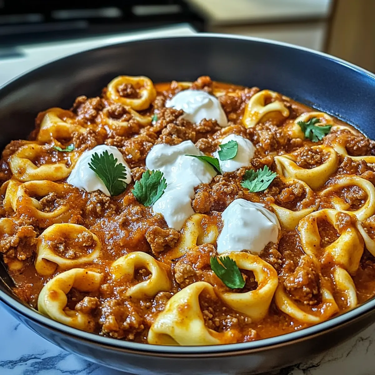“Can you believe we’re already back at the dinner table, looking for something comforting yet quick to whip up?” It’s a common challenge for many of us, and that’s where my Cheesy Beef Enchilada Tortellini comes into play. This recipe blends the savory goodness of beef with the creamy delight of cheese, all wrapped in tender tortellini, creating a dish that’s not only satisfying but also ready in under 35 minutes. Whether it’s a busy weeknight or a cozy weekend gathering, this quick and easy meal transforms dinner from a routine chore into a celebratory occasion. Plus, with the ability to use gluten-free tortellini, it caters to various dietary needs without sacrificing flavor. What’s your secret ingredient for turning simple meals into extraordinary experiences? Why is this recipe a must-try? Quickness: In just 35 minutes, you can enjoy a hearty, delicious meal that feels like a comforting hug from the inside. Flavor Fusion: The exciting blend of Mexican and Italian flavors creates a unique dining experience, setting your taste buds alight. Crowd-Pleaser: Perfect for weekdays or special gatherings, this dish’s comforting nature makes it an instant favorite among family and friends. Versatile: Enjoy it as is or customize with Garlic Butter Beef or spicy additions for extra kick. Diet-Friendly: With easy gluten-free options, this recipe caters to various dietary needs without compromising on taste or texture. Get ready to elevate your dinner game and enjoy the delightful flavors of Cheesy Beef Enchilada Tortellini! Cheesy Beef Enchilada Tortellini Ingredients For the Filling Ground Beef – A hearty base that provides essential protein; substitute with ground turkey or black beans for a lighter option. Onion – Adds a natural sweetness; yellow onion is ideal, but shallots can work in a pinch. Garlic – Fresh garlic enhances flavor beautifully; steer clear of pre-minced varieties for the best taste. Chili Powder – Packs a punch of spiciness; adjust the amount based on your heat preference. Ground Cumin – Offers an earthy depth; omit if you prefer a milder profile. Salt & Pepper – Basic seasonings necessary for flavoring; feel free to adjust to your liking. For the Sauce Red Enchilada Sauce – Brings moisture and a depth of flavor; choose between mild or spicy varieties to suit your taste. Cream Cheese – Creates a creamy, dreamy sauce; swap for Neufchâtel for a lighter alternative. For the Pasta Cheese Tortellini – The heart of the dish; select a gluten-free option to cater to dietary needs. Shredded Mozzarella Cheese – Provides a melty topping that adds a comforting finish; can be replaced with Monterey Jack or a vegan cheese if desired. Elevate your dining experience with these meticulously selected ingredients, ensuring that your Cheesy Beef Enchilada Tortellini is nothing short of delightful! Step‑by‑Step Instructions for Cheesy Beef Enchilada Tortellini Step 1: Heat the Skillet Begin by heating a large skillet over medium heat. Add a drizzle of olive oil to the pan to prevent sticking. Once the oil is shimmering, it’s time to sauté the onion, which will add a lovely sweetness to your Cheesy Beef Enchilada Tortellini. Step 2: Sauté Onions and Garlic Add the diced yellow onion to the skillet and sauté for about 3-4 minutes, stirring occasionally until translucent. Now, sprinkle in the minced garlic and continue to cook for another 30 seconds. Be careful not to burn the garlic, as it can turn bitter if overcooked. Step 3: Cook the Ground Beef Next, add the ground beef to the skillet, breaking it apart with a spatula. Season generously with salt, pepper, chili powder, and ground cumin. Cook for about 5-7 minutes or until the beef is browned and cooked through. Drain any excess fat to keep your dish from being greasy. Step 4: Add Enchilada Sauce With the beef browned, stir in the red enchilada sauce, making sure everything is well incorporated. Allow the mixture to simmer for about 3-5 minutes or until warmed through. This will enrich the flavors in your Cheesy Beef Enchilada Tortellini. Step 5: Incorporate Cream Cheese Now, add chunks of cream cheese to the skillet. Stir well until the cream cheese melts completely and forms a creamy sauce that envelops the beef. This step adds velvety richness to your hearty dish. Step 6: Fold in Tortellini Gently fold in the cheese tortellini, ensuring each piece is coated in that glorious cheesy beef mixture. Lower the heat to medium-low and cook for about 5-7 minutes, stirring occasionally until the tortellini is tender and heated through. Step 7: Add Mozzarella and Melt Sprinkle shredded mozzarella cheese generously over the top of your mixture. Cover the skillet with a lid and cook for an additional 2-3 minutes, or until the cheese melts beautifully. If you prefer a crispy top, briefly broil the dish in the oven for a delightful finish. Storage Tips for Cheesy Beef Enchilada Tortellini Fridge: Store any leftover Cheesy Beef Enchilada Tortellini in an airtight container in the refrigerator for up to 3 days. Reheat gently on the stovetop or microwave, adding a splash of water for moisture. Freezer: If you’d like to save some for later, freeze the tortellini in a freezer-safe container for up to 3 months. Thaw in the fridge overnight and reheat thoroughly before serving. Reheating: When reheating, warm the dish on low heat, stirring occasionally to ensure even heating and a deliciously creamy texture. Assembling Ahead: You can prepare the cheesy filling and sauce ahead of time and store them separately in the fridge. Cook the tortellini fresh just before serving to maintain texture and flavor. Make Ahead Options These Cheesy Beef Enchilada Tortellini are perfect for busy home cooks looking to save time during meal prep! You can prepare the beef mixture (steps 1-5) up to 24 hours in advance; simply refrigerate it in an airtight container to keep the flavors locked in. On the day you plan to serve, heat the mix