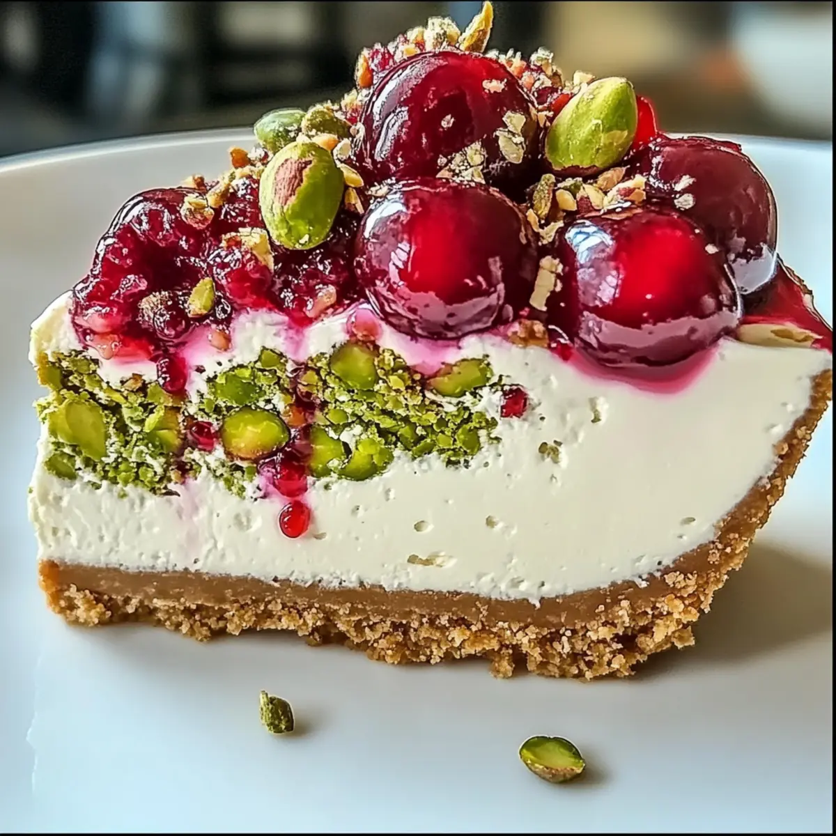 As the warm aroma of baking fills my kitchen, I can barely contain my excitement for this Cherry Pistachio Cheesecake. It’s not just your run-of-the-mill dessert; it’s a delightful fusion of creamy texture, nutty richness, and a vibrant topping that transforms any gathering into a special occasion. This show-stopping dessert is surprisingly easy to make, perfect for impressing friends and family or simply indulging in your own sweet cravings. With a buttery graham cracker crust and a luscious filling, even those with nut allergies can join in on the fun with adaptable substitutions. Are you ready to dive into this irresistible masterpiece? Let’s get started! Why is Cherry Pistachio Cheesecake a Must-Try? Simplicity: This Cherry Pistachio Cheesecake is incredibly easy to prepare, even for beginner bakers. Versatile: With options for nut-free and vegan variations, everyone can enjoy a slice. Show-Stopping: Its vibrant colors and luxurious texture make it a stunning centerpiece for any gathering. Irresistible Flavor: The delightful blend of nutty pistachios and sweet cherries creates a mouthwatering taste. Plus, if you’re a fan of cheesecakes, you’ll also love Vanilla Bean Cheesecake and Cherry Pie Bars for more delicious dessert ideas! Cherry Pistachio Cheesecake Ingredients • Discover everything you need to create this indulgent dessert! For the Crust Graham Cracker Crumbs – Provides the base for a sweet, buttery crust. Use digestive biscuits as a gluten-free alternative. Ground Pistachios – Adds a nutty flavor and texture to both crust and filling. Replace with ground almonds if nut-free is needed. Granulated Sugar – Sweetens the crust and filling. Coconut sugar can be used for a healthier option. Melted Butter – Binds crust ingredients together and adds richness. Substitute with coconut oil for a dairy-free version. For the Filling Cream Cheese – The creamy base of the cheesecake that gives its characteristic texture. Use plant-based cream cheese for a vegan version. Sour Cream – Adds tanginess and creaminess to the filling. Greek yogurt can be a substitute. Eggs – Provide structure and stability to the cheesecake. Use flax eggs for a vegan alternative. Pistachio Pudding Mix – Enhances the pistachio flavor while thickening the filling. Omit for a simpler flavor or use a non-instant blend for a DIY option. Vanilla Extract – Adds a deeper flavor profile. Almond extract can be substituted for a stronger nut flavor. For the Topping Cherry Pie Filling – Topping that brings sweetness and a pop of color. Fresh or frozen cherries can be used as an alternative. Step‑by‑Step Instructions for Cherry Pistachio Cheesecake Step 1: Preheat the Oven Begin by preheating your oven to 325°F (160°C). While it warms up, gather a 9-inch springform pan and grease it lightly to ensure easy removal later on. This will set the stage for your delicious Cherry Pistachio Cheesecake, creating the perfect environment for baking. Step 2: Make the Crust In a mixing bowl, combine the graham cracker crumbs, ground pistachios, sugar, and melted butter. Stir until well mixed, creating a sandy texture. Press this mixture firmly into the bottom of the prepared springform pan, forming an even layer. Bake for 8 minutes until slightly golden, then let it cool completely. Step 3: Prepare the Filling In a large mixing bowl, beat the cream cheese and granulated sugar using an electric mixer until smooth and creamy, about 2–3 minutes. Add the eggs one at a time, beating well after each addition. Then blend in the sour cream, pistachio pudding mix, and vanilla extract until just combined, being careful not to overmix for a perfect consistency. Step 4: Bake the Cheesecake Pour the cream cheese filling over the cooled crust, smoothing the top with a spatula. Place the springform pan in the preheated oven and bake for 45–50 minutes, or until the center is slightly jiggly. This gentle baking is crucial for the creamy texture that characterizes your Cherry Pistachio Cheesecake. Step 5: Cool Gradually Once baked, turn off the oven and leave the cheesecake inside with the door slightly ajar for about 1 hour. This gradual cooling helps prevent cracking, ensuring your cheesecake has a smooth and lovely surface. You’ll want to see a slight firmness with minor jiggles in the center. Step 6: Chill Carefully remove the springform pan from the oven and let the cheesecake cool to room temperature. Once cooled, cover it tightly with plastic wrap and refrigerate for at least 4 hours, or overnight if possible, to achieve the best texture and flavor development. Step 7: Top and Serve Before serving, spread a generous layer of cherry pie filling over the chilled cheesecake, allowing its vibrancy to shine. For an extra touch, garnish with additional ground pistachios for a delightful crunch. Slice with a warm, damp knife for clean cuts and serve your Cherry Pistachio Cheesecake to friends and family for a truly indulgent treat. Expert Tips for Cherry Pistachio Cheesecake Room Temperature Cream Cheese: Ensure your cream cheese is at room temperature to avoid lumps in your filling for a smooth Cherry Pistachio Cheesecake. Mix Gently: When adding eggs, mix just until incorporated; overmixing can create cracks in your cheesecake’s surface. Cool Slowly: Allow the cheesecake to cool gradually in the oven after baking to prevent unexpected cracking. This step ensures a smooth top. Warm Knife Slices: For easy and clean slicing, use a warm, damp knife—this will keep the beautiful layers intact when serving. Storage Tips: To keep your Cherry Pistachio Cheesecake fresh, cover it tightly and refrigerate. It can also be made two days in advance for added convenience. Make Ahead Options These Cherry Pistachio Cheesecakes are a dream come true for busy home cooks! You can prepare the crust and filling up to 24 hours in advance; simply make the crust, let it cool, and then refrigerate it. For the filling, mix all ingredie