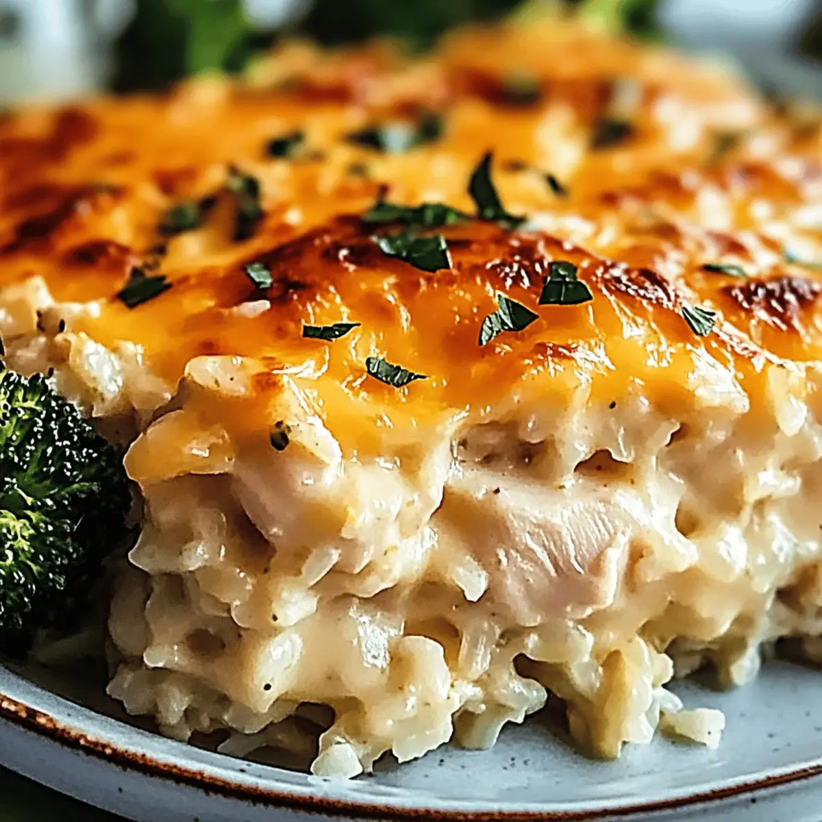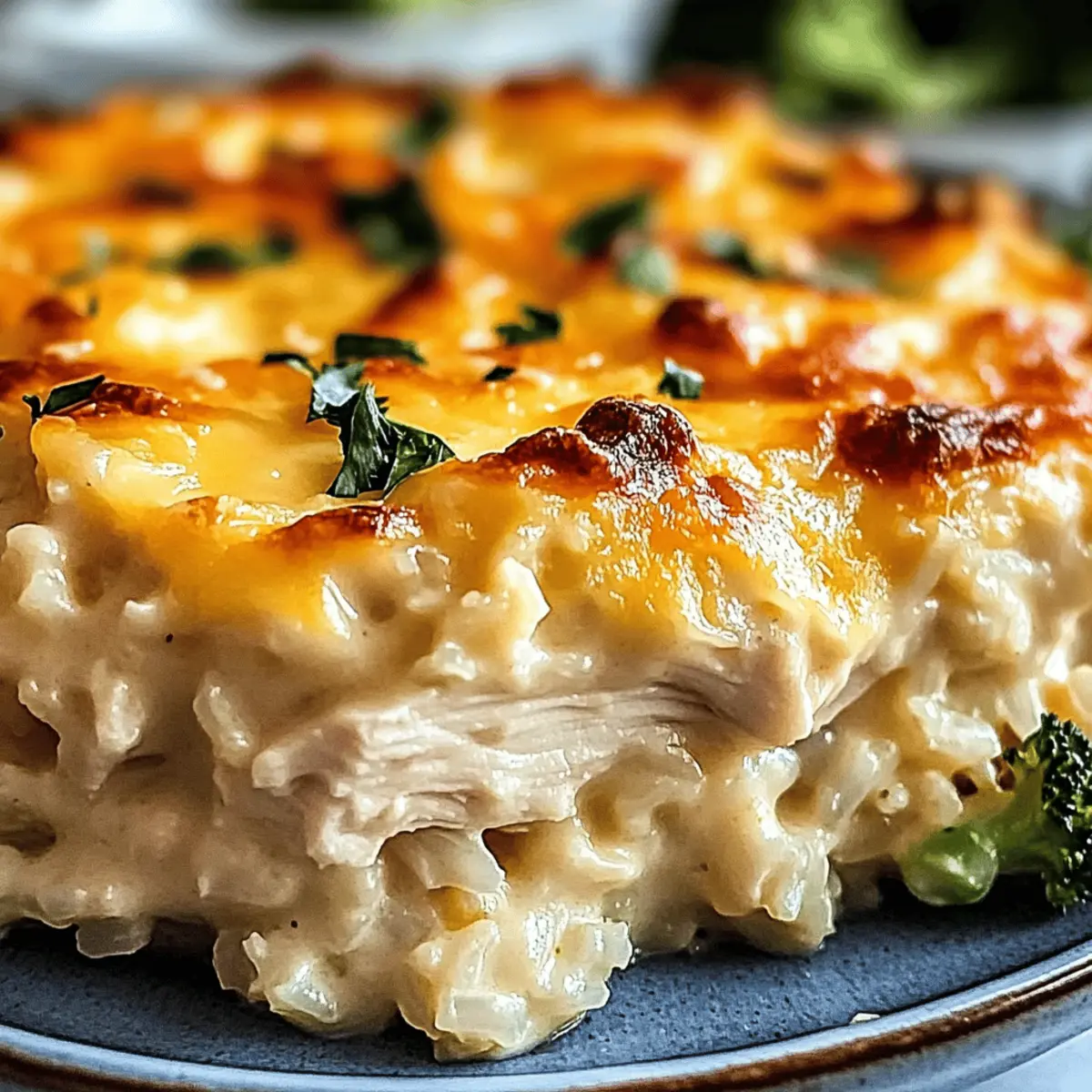 As I stood in my kitchen, the aroma of sautéed onions and garlic wafting through the air, I realized I had just crafted a meal that would light up any weeknight dinner—Healthy Chicken Cauliflower Rice Casserole. This dish is not just another casserole; it’s a low-carb, customizable delight that brings together tender chicken and vibrant veggies, all enveloped in creamy goodness. With prep so quick, you’ll free up time for what matters most, plus it’s a brilliant way to sneak in those essential greens without anyone noticing! So, whether you’re knee-deep in a busy week or planning a family feast, this cozy casserole will become your go-to. Curious about how to whip up this comforting dish that’s guaranteed to satisfy? Let’s dive in! Why Will You Love This Casserole? Comforting and Satisfying: This Healthy Chicken Cauliflower Rice Casserole is like a warm hug on a plate, blending creamy cheese and tender chicken in every bite. Low-Carb Delight: Enjoy the rich flavors without the carbs, making it perfect for keto and low-carb diets. Quick Prep: You can throw this dish together in no time—ideal for those hectic weeknights! Versatile: Feel free to customize with your favorite veggies or cheese; it’s a blank canvas for your culinary creativity. Adding some of your go-to veggies makes it even more nutritious and vibrant! Make-Ahead Friendly: Easily assemble it the night before and bake when you’re ready, making meal prep a breeze. Crowd-Pleaser: Serve to family or friends and watch everyone ask for seconds! Pair it with a fresh green salad or a side of steamed vegetables for a balanced meal. You’ll find this casserole will be a frequent request, much like our delicious Chicken Spaghetti Casserole and Corn Chicken Rice. Chicken Cauliflower Rice Casserole Ingredients For the Casserole • Cooked Chicken Breast – Provides lean protein; substitute with rotisserie chicken for convenience or chickpeas for a vegetarian version. • Cauliflower Rice – Acts as a low-carb base; use fresh or frozen, ensuring it’s thawed for the best texture. • Small Onion – Adds sweetness; choose yellow or white for a delightful flavor boost. • Garlic – Enhances the overall taste; fresh garlic gives a stronger punch, while garlic powder is a convenient alternative. • Broccoli Florets – Packs nutrients and crunch; swap with spinach or green beans for variety. • Shredded Carrots – Brings color and nutrition; bell peppers can be used as a sweeter substitute. • Plain Greek Yogurt or Sour Cream – Adds creaminess and tang; can be replaced with low-fat cream cheese for a thicker consistency. • Mozzarella, Cheddar, Parmesan – Helps create that gooey, cheesy goodness; feel free to experiment with Gruyère or feta for a different flavor profile. • Dried Thyme – Provides a lovely herbal aroma; fresh thyme can be a delightful substitute. • Smoked Paprika – Gives a subtle smoky depth; regular paprika works just as well if it’s what you have on hand. • Salt and Pepper – Essential flavor enhancers; adjust according to your taste preferences. • Olive Oil – For sautéing those delicious veggies; avocado oil is a suitable alternative if desired. For Garnish • Lemon Juice or Fresh Parsley – Optional finish that adds brightness and freshness to your casserole. This Chicken Cauliflower Rice Casserole is not just a meal; it’s a creation bursting with flavor and health benefits, perfect for cozy nights spent around the table with the ones you love. Step‑by‑Step Instructions for Healthy Chicken Cauliflower Rice Casserole Step 1: Preheat the Oven Begin by preheating your oven to 375°F (190°C). While the oven heats up, prepare a 9×13-inch casserole dish by greasing it lightly with olive oil or cooking spray. This will ensure your Healthy Chicken Cauliflower Rice Casserole bakes evenly and effortlessly releases once it’s done. Step 2: Sauté the Vegetables In a large skillet, heat 2 tablespoons of olive oil over medium heat. Add the chopped onion and sauté for 3-4 minutes until it softens and turns translucent. Following this, add minced garlic, broccoli florets, and shredded carrots; cook for an additional 5-6 minutes, stirring occasionally until the vegetables are crisp-tender and fragrant. Step 3: Combine Ingredients In a mixing bowl, combine the sautéed vegetables with 4 cups of cauliflower rice, 2 cups of cooked chicken, 1 cup of Greek yogurt or sour cream, and a mix of shredded mozzarella, cheddar, and Parmesan cheese. Season with dried thyme, smoked paprika, salt, and pepper. If the mixture appears too dry, add a splash of milk or broth to achieve a creamier consistency. Step 4: Transfer to Casserole Dish Carefully pour the mixture into the greased casserole dish, spreading it evenly with a spatula. To finish it off, sprinkle any remaining cheese on top for that delicious, melty layer. This is where the magic happens as it bakes into your Healthy Chicken Cauliflower Rice Casserole. Step 5: Bake the Casserole Place the casserole in your preheated oven and bake uncovered for 25-30 minutes, or until the edges are bubbly and the top is golden brown. Keep an eye on it—as soon as it looks deliciously bubbling and golden, it’s ready to come out, inviting everyone to the table. Step 6: Serve and Garnish Allow your casserole to cool for a few minutes before serving. This helps it set and makes for easier portions. For an added touch of freshness, garnish with a squeeze of lemon juice or a sprinkle of freshly chopped parsley. This final step enhances flavor and elevates your Healthy Chicken Cauliflower Rice Casserole beautifully. How to Store and Freeze Chicken Cauliflower Rice Casserole Fridge: Store your leftover Chicken Cauliflower Rice Casserole in an airtight container for up to 4 days to maintain freshness and flavor. Freezer: If you’d like to keep it longer, freeze the casserole for up to 3 months. Wrap in plastic wrap followed by aluminum foil to prev