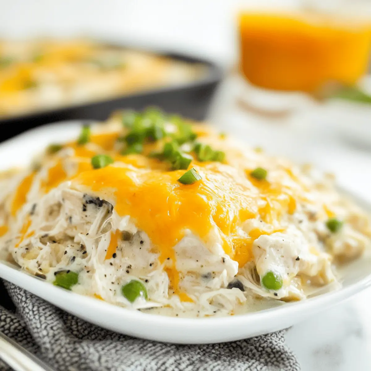 As I was flipping through my collection of family recipes, a delightful memory surfaced—a warm kitchen filled with the comforting aroma of Chicken Olivia casserole, a dish my loved ones always cherished. This creamy chicken casserole uses rotisserie chicken, transforming a few simple ingredients into a heartwarming dinner that’s perfect for any hectic weeknight. Not only is this recipe a true crowd-pleaser, but it also comes together in no time, allowing you to savor the process rather than rush through it. Each bite offers both creamy comfort and a delightful mix of flavors that will have everyone asking for seconds. Curious how you can bring this nostalgic dish to life in your own kitchen? Let’s dive into the details! Why is Chicken Olivia a Must-Try? Simplicity at its Best: You only need a few ingredients, making this dish easy for anyone, from busy parents to novice cooks. Crowd-Pleasing Flavor: The blend of rotisserie chicken, creamy sauce, and cheesy topping creates a dish that your whole family will love, even the picky eaters! Versatile Options: Feel free to customize with ingredients like Bang Bang Chicken for a twist, or mix in some frozen veggies for added nutrition. Quick Dinner Solution: Ready in under an hour, this recipe is perfect for those chaotic weeknights when you want a comforting meal without spending all evening in the kitchen. Nostalgic Comfort: This casserole is reminiscent of family gatherings, evoking warm memories with every bite, making it a wonderful addition to your meal rotation. Chicken Olivia Ingredients For the Casserole Base • Rotisserie Chicken – A convenient main protein; use a mix of white and dark meat for added flavor. • Sour Cream – Provides creaminess and a tangy kick; Greek yogurt can be swapped for a lighter option. • Cream of Chicken Soup – Rich and hearty base; substitute with cream of mushroom soup for a different taste. • Chopped Black Olives – Adds a briny touch; omit or replace with green olives if desired. • Green Chilies – Delivers a mild heat; adjust the amount based on your spice preference, or exclude for a milder flavor. • Chopped Green Onions – Freshness in every bite; chives can be used instead for a similar flavor. For the Topping • Grated Sharp Cheddar Cheese – Rich flavor and a bubbly crust; feel free to substitute with Monterey Jack or pepper jack for variety. For Serving • Cooked Rice – A comforting base to serve; pasta or quinoa are great alternatives if you’re looking for something different. • Salt and Pepper – Season to your taste; essential in enhancing the flavors of your Chicken Olivia casserole. This Chicken Olivia recipe delivers a warming hug in a bowl, perfect for sharing with loved ones around the dinner table. Step‑by‑Step Instructions for Chicken Olivia Step 1: Preheat the Oven Begin your delicious Chicken Olivia casserole by preheating your oven to 350°F (175°C). This ensures that your dish cooks evenly and reaches the perfect temperature. While the oven heats up, gather your ingredients and a 9×13-inch baking pan, preparing to create a warm and comforting meal. Step 2: Prepare the Chicken Carefully shred your rotisserie chicken, making sure to remove any skin and bones. Spread the tender chicken evenly in the bottom of the 9×13-inch baking pan. This hearty base will soak up the creamy sauce and provide a savory foundation for your Chicken Olivia casserole, making each bite satisfying. Step 3: Mix the Creamy Sauce In a large mixing bowl, combine the cream of chicken soup, sour cream, chopped black olives, green chilies, and chopped green onions. Use a spatula to stir the mixture until smooth and all ingredients are well incorporated. This creamy sauce serves as the heart of your Chicken Olivia, bursting with flavor that complements the chicken beautifully. Step 4: Combine Chicken and Sauce Pour the creamy sauce mixture evenly over the shredded chicken in the baking pan. Use a spatula to gently spread the sauce, ensuring every piece of chicken is well coated. This step is crucial, as it guarantees that every bite of Chicken Olivia is infused with the rich, creamy flavors. Step 5: Add the Cheesy Topping Generously sprinkle the grated cheddar cheese over the top of the casserole, covering it completely. The cheese will melt and create a bubbly crust as it bakes, adding a wonderful texture to your Chicken Olivia. If you prefer, feel free to mix in different cheeses for a personalized touch. Step 6: Bake with Foil Cover the baking pan tightly with aluminum foil to create a steaming environment for the Chicken Olivia casserole. Bake in your preheated oven for 30 minutes, allowing the flavors to meld together and the dish to heat thoroughly. The foil prevents the top from browning too early, ensuring a creamy interior. Step 7: Finish Baking Uncovered After 30 minutes, carefully remove the foil and continue baking the casserole for an additional 10 minutes. This allows the cheese to melt and bubble, transforming into a golden, delicious topping. Keep an eye on it during this stage to avoid over-browning. Step 8: Serve and Enjoy Once your Chicken Olivia casserole is finished baking, remove it from the oven and let it cool for a few minutes. Serve it hot over a bed of cooked rice, pasta, or quinoa, depending on your preference. This comforting dish is perfect for sharing with family and friends, making every gathering more special. What to Serve with Creamy Chicken Olivia Casserole? Elevate your cozy family dinner with perfect pairings that beautifully complement the creamy bliss of this delightful casserole. Garlic Bread: A warm, crusty loaf spread with garlic butter adds a satisfying crunch and rich flavor that balances the creamy chicken. Caesar Salad: Crisp romaine tossed with tangy dressing and crunchy croutons offers a refreshing contrast to the richness of the casserole. Steamed Vegetables: Brightly colored steamed broccoli or green beans provide freshness and t