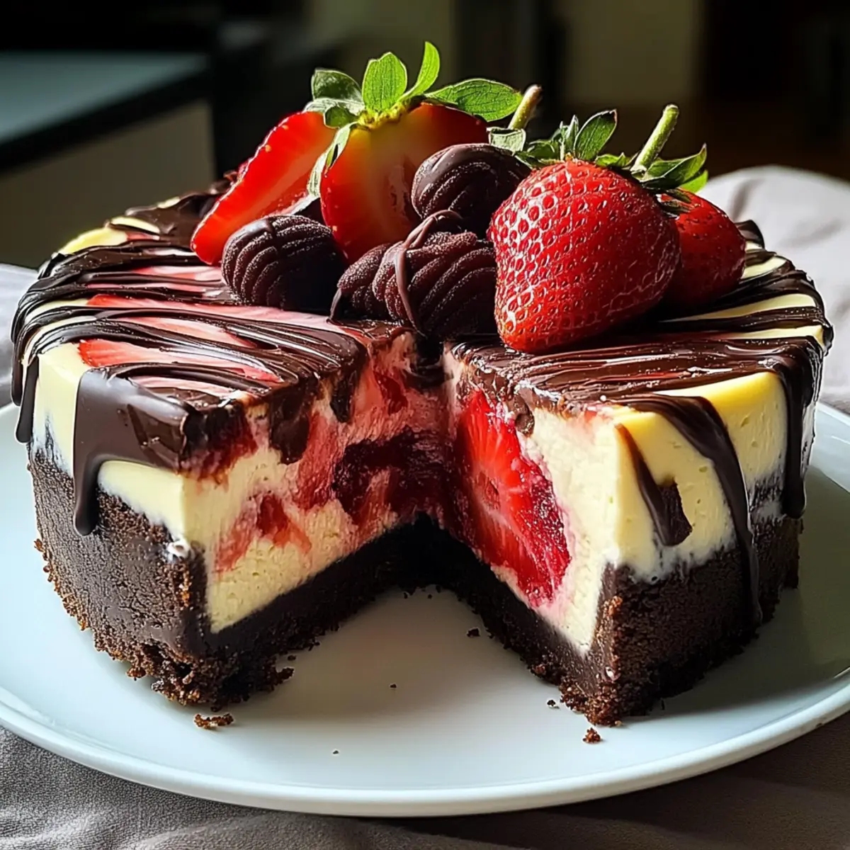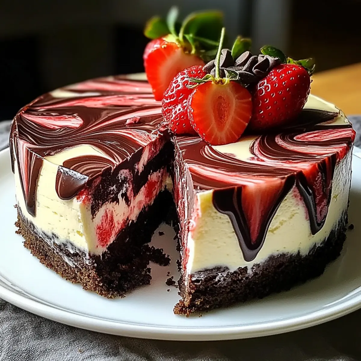 There’s something magical about dessert that can whisk you away from the everyday hustle—just like a slice of Chocolate Strawberry Swirl Cheesecake! This delightful treat combines the rich, creamy decadence of chocolate cheesecake with the vibrant brightness of fresh strawberries, creating a stunning marbled dessert that’s as much a feast for the eyes as it is for the taste buds. With quick preparation and options for dairy-free and gluten-free versions, it’s the perfect solution for any gathering or celebration. Imagine serving this beautiful cheesecake at your next dinner party, where everyone will either be enchanted by its elegance or simply unable to resist a second slice. Ready to take your cheesecake game to new heights? Let’s dive into this recipe and create some sweet magic together! Why is This Cheesecake So Irresistible? Decadent Creaminess: Each slice of this Chocolate Strawberry Swirl Cheesecake boasts a rich, velvety texture that melts in your mouth, leaving you craving more. Visually Stunning: The beautiful marbling of chocolate and strawberry puree not only makes it a showstopper but also tempts the taste buds with its vibrant colors. Versatile Options: With possibilities for dairy-free, gluten-free, and keto adaptations, this cheesecake caters to various dietary needs without compromising on flavor. Effortlessly Impressive: Perfect for gatherings, its elegant presentation will have guests raving, while you enjoy the crowd’s admiring looks as the host with the most. Simple Preparation: No complicated techniques here! The straightforward process means you can whip up this cheesecake on a whim, just like our popular Decadent Caramel Swirl Brownies. Make-Ahead Friendly: Prepare it the day before your event and let it chill overnight for the best flavor and texture, letting you focus on other aspects of your gathering. Chocolate Strawberry Swirl Cheesecake Ingredients For the Crust • Chocolate Cookie Crumbs – Provides the crust’s base; use gluten-free chocolate sandwich cookies for a gluten-free option. • Melted Butter – Helps bind the crust ingredients together; can substitute with coconut oil for a dairy-free variant. • Granulated Sugar – Adds sweetness to both the crust and cheesecake filling; consider using a sugar substitute for a lower-calorie option. For the Filling • Cream Cheese – The main ingredient for the filling, creating a rich, creamy texture; substitute with cashew cream cheese for dairy-free options. • Eggs – Provides structure to the cheesecake; flaxseed meal can be used as an egg replacer for vegan adaptations. • Vanilla Extract – Enhances the flavor depth in the filling, making it more inviting. • Sour Cream – Adds creaminess and tang to the cheesecake; Greek yogurt can be used as a lighter alternative. • Chilled Melted Chocolate – Infuses rich chocolate flavor; any high-quality chocolate works well for the best taste. For the Strawberry Swirl • Fresh Strawberry Puree – Adds freshness and tartness; can reserve whole strawberries for a textured swirl. • Lemon Juice – Balances sweetness and brightens the strawberry puree. This delightful combination of ingredients will come together to create your showstopping Chocolate Strawberry Swirl Cheesecake! Step‑by‑Step Instructions for Chocolate Strawberry Swirl Cheesecake Step 1: Preheat the Oven Begin by preheating your oven to 350°F (175°C). This ensures that it’s hot enough to create the perfect baking environment for your Chocolate Strawberry Swirl Cheesecake. While the oven heats, prepare your crust ingredients so you’re ready to combine them. Step 2: Make the Crust In a mixing bowl, combine chocolate cookie crumbs, melted butter, and granulated sugar until well-mixed and crumbly. Press this mixture firmly into the bottom of a 9-inch springform pan to form an even layer. Bake in the preheated oven for 10 minutes, until set and fragrant, and then remove it to cool slightly. Step 3: Prepare the Filling In a large mixing bowl, beat room temperature cream cheese using an electric mixer until it’s smooth and creamy. Gradually add granulated sugar, mixing well after each addition. Next, add eggs one at a time, ensuring each egg is fully incorporated before adding the next. Follow with vanilla extract and sour cream, mixing until completely smooth. Step 4: Incorporate Melted Chocolate Once your filling is smooth, slowly stir in the chilled melted chocolate until fully combined, creating that luscious chocolate flavor in your cheesecake. Ensure there are no lumps, as a seamless mix will elevate your Chocolate Strawberry Swirl Cheesecake’s texture and taste. Step 5: Create Strawberry Swirl In a separate bowl, blend fresh strawberry puree with a squeeze of lemon juice and a touch of sugar. Mix until smooth, and don’t forget to taste; the balance of sweetness and tartness should tantalize your taste buds. This swirl will create beautiful, vibrant layers in your cheesecake. Step 6: Assemble the Cheesecake Once your crust has cooled, pour the rich chocolate filling over it, smoothing the top with a spatula. Dollop spoonfuls of strawberry puree over the filling and use a knife to gently swirl it through, creating a marbled effect. Be careful not to over-swirl; the goal is to achieve a beautiful pattern of chocolate and strawberry. Step 7: Bake the Cheesecake Transfer your assembled cheesecake to the preheated oven and bake for 50-60 minutes. The edges should be set, while the center remains slightly jiggly. This is crucial for a perfect texture in your Chocolate Strawberry Swirl Cheesecake, which will firm up as it cools. Step 8: Cool Gradually Once baked, turn off the oven and crack the door open, allowing your cheesecake to cool slowly for about 1 hour. This gentle cooling process helps prevent cracks. Afterward, let it cool to room temperature before refrigerating for at least 4 hours or overnight for optimal flavor infusion. Step 9: Serve the Cheeseca
