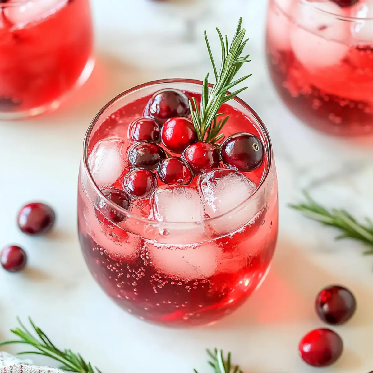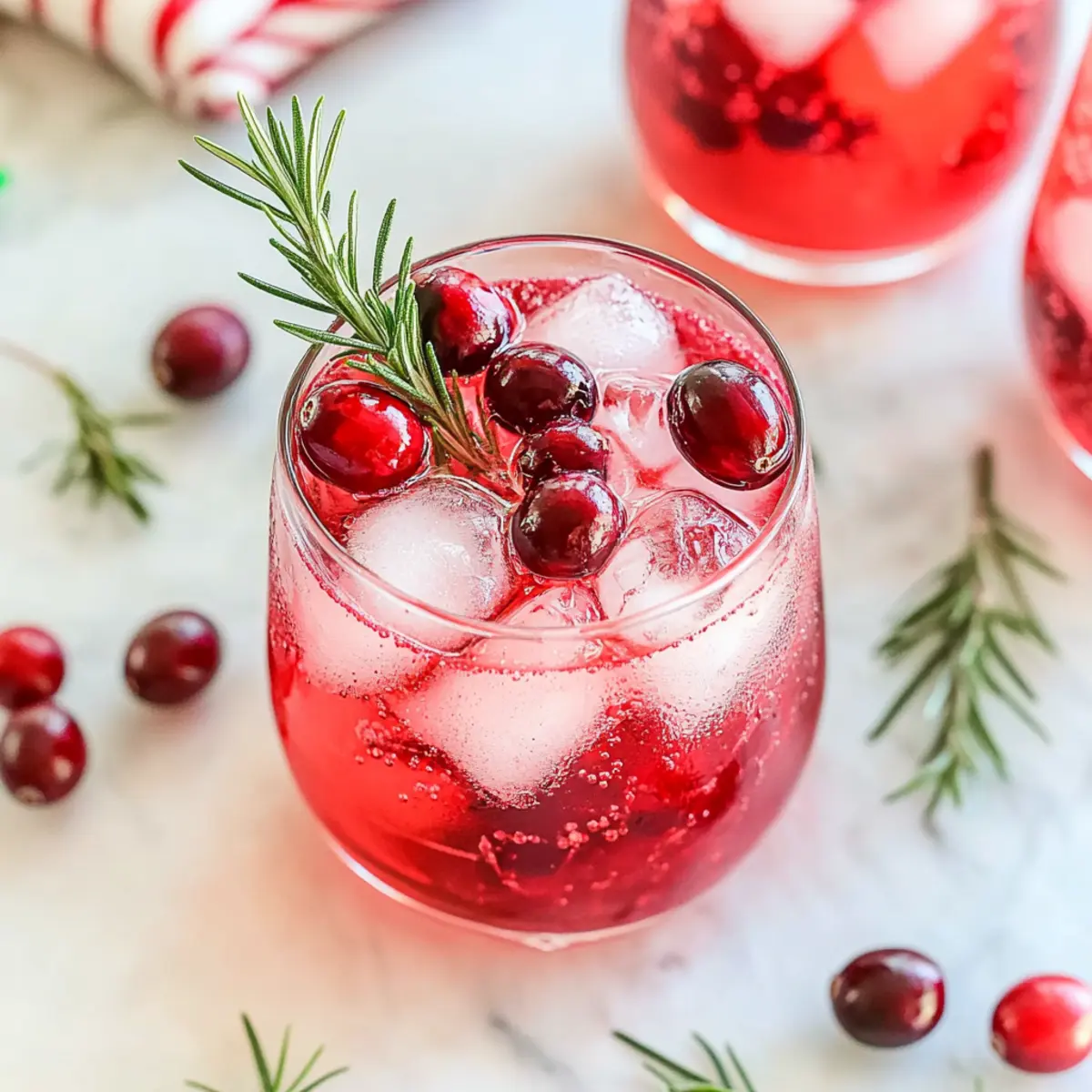 Amid the flurry of holiday preparations, there’s a joyful moment when you take the first sip of something refreshing. Enter the Christmas Cranberry Spritzer—this vibrant cocktail (or mocktail!) is your go-to drink for all your festive gatherings. With its effervescent sparkle and a balance of tart cranberry and fizzy delight, it serves as a perfect antidote to holiday stress while appealing to both cocktail lovers and non-drinkers alike. The beauty of this recipe lies in its versatility: you can easily customize it to suit any crowd, whether by swapping spirits or making it entirely alcohol-free. Ready to impress your guests and elevate your holiday celebrations? Let’s dive into how to craft this festive cranberry spritzer that will have everyone coming back for seconds! What’s your favorite twist on a classic cocktail? What makes this spritzer a must-try? Versatile Delight: This recipe offers both alcoholic and non-alcoholic versions, ensuring everyone can join in the festive fun. Simplicity: With just a few ingredients, whipping up this spritzer is as easy as it is enjoyable. Festive Appeal: The vibrant colors and garnishes make it a stunning centerpiece for any holiday gathering, fitting seamlessly into your festive decor. Flavor Balance: The mix of tart cranberry juice and fizzy sparkling water delivers a refreshing taste that is both invigorating and crowd-pleasing. Customizable Options: Feel free to switch out cranberry juice for pomegranate or tart cherry juice for a refreshing twist! For more tips on creating delicious holiday drinks, check out our guide on creative holiday cocktails. Christmas Cranberry Spritzer Ingredients For the Cocktail • Vodka – The key spirit that brings a smooth kick; swap with gin for an herbal twist or white rum for extra sweetness. • Cranberry Juice – The tart and vibrant base of the spritzer; pomegranate juice works beautifully as a substitute for a similar tang. • Sparkling Water – This adds that essential fizz; alternatively, tonic water provides a bitter edge, while ginger ale will sweeten it up. • Ice Cubes – Vital for keeping your drink chilled and refreshing. For Garnish • Fresh Cranberries (optional) – Adds a festive flair and visual appeal. • Rosemary Sprig (optional) – A fragrant garnish that elevates the holiday aesthetic. Now you’re all set with the essential components to create your dazzling Christmas Cranberry Spritzer! Whether you’re hosting a holiday gathering or enjoying a cozy night in, this drink is sure to impress. Step‑by‑Step Instructions for Christmas Cranberry Spritzer Step 1: Chill the Glass Begin by filling a glass with ice cubes, ensuring it’s well-chilled for your Christmas Cranberry Spritzer. This step is crucial for keeping your drink refreshingly cool and enjoyable. Visualize the glass sparkling with icy cubes as you prepare to mix your festive cocktail. Step 2: Pour the Vodka Carefully measure out 1 ½ oz. of vodka and pour it directly over the ice in the glass. The vodka will settle at the bottom, creating a layered effect that adds elegance to your drink. While pouring, aim for a steady hand to create minimal splash, ensuring a neat appearance. Step 3: Add Cranberry Juice Next, measure and pour 3 oz. of cranberry juice over the vodka and ice. As you pour, notice how the rich red color infuses into the drink, creating a beautiful blend. This tart juice is the heart of the Christmas Cranberry Spritzer, delivering a burst of festive flavor. Step 4: Top with Sparkling Water Now, finish your spritzer by topping it off with 4-5 oz. of sparkling water. Pour gently to preserve the fizz and watch the bubbles rise, creating a delightful effervescence. The sparkling water adds a refreshing finish, balancing the tartness of the cranberry juice. Step 5: Garnish for Presentation For that extra festive touch, garnish your drink with a few fresh cranberries and a sprig of rosemary. The cranberries float beautifully, while the rosemary adds an aromatic element that enhances the holiday spirit of your Christmas Cranberry Spritzer. Enjoy the vibrant colors! Step 6: Serve Immediately Serve your Christmas Cranberry Spritzer right away to enjoy the fizz at its peak. The instant you pour, your guests will be captivated by the sparkling appearance and inviting aroma. Encourage everyone to raise a glass and toast to the festive season! Christmas Cranberry Spritzer Variations Feel free to play around with this delightful recipe to suit your taste and occasion! Alcohol-Free: Replace vodka with apple cider vinegar or half the amount of white grape juice for a refreshing mocktail version. It maintains the vibrant flavor while offering a lighter option. Herbal Twist: Swap vodka for gin to add a botanical note that beautifully complements the cranberry’s tartness. The herbal undertones will surprise and delight your guests! Tropical Vibe: Use white rum in place of vodka for a sweeter, island-inspired flavor. It adds a luscious note that feels like a mini-vacation during your festive gatherings. Berry Bliss: Instead of cranberry juice, try pomegranate or tart cherry juice for a different yet equally vibrant twist. This change will elevate the drink’s flavor profile while still keeping it festive! Spicy Kick: Add a splash of ginger ale for a spicy note alongside the sparkling water. The ginger flavors introduce an unexpected warmth that pairs nicely with holiday sweets. Flavored Sparkling Water: Use a flavored sparkling water like lemon or berry for an added zest. This twist not only enhances the drink but also makes it visually stunning and refreshing. Chill with Cranberries: Freeze fresh cranberries into ice cubes to keep your spritzer chilled while looking festive. As the ice melts, it subtly enhances the drink with fruity flavor. Citrus Burst: Squeeze some fresh lime or orange juice into your spritzer for a zesty twist. The citrus brightness will add a refreshing kick that balances the tart cranberry 