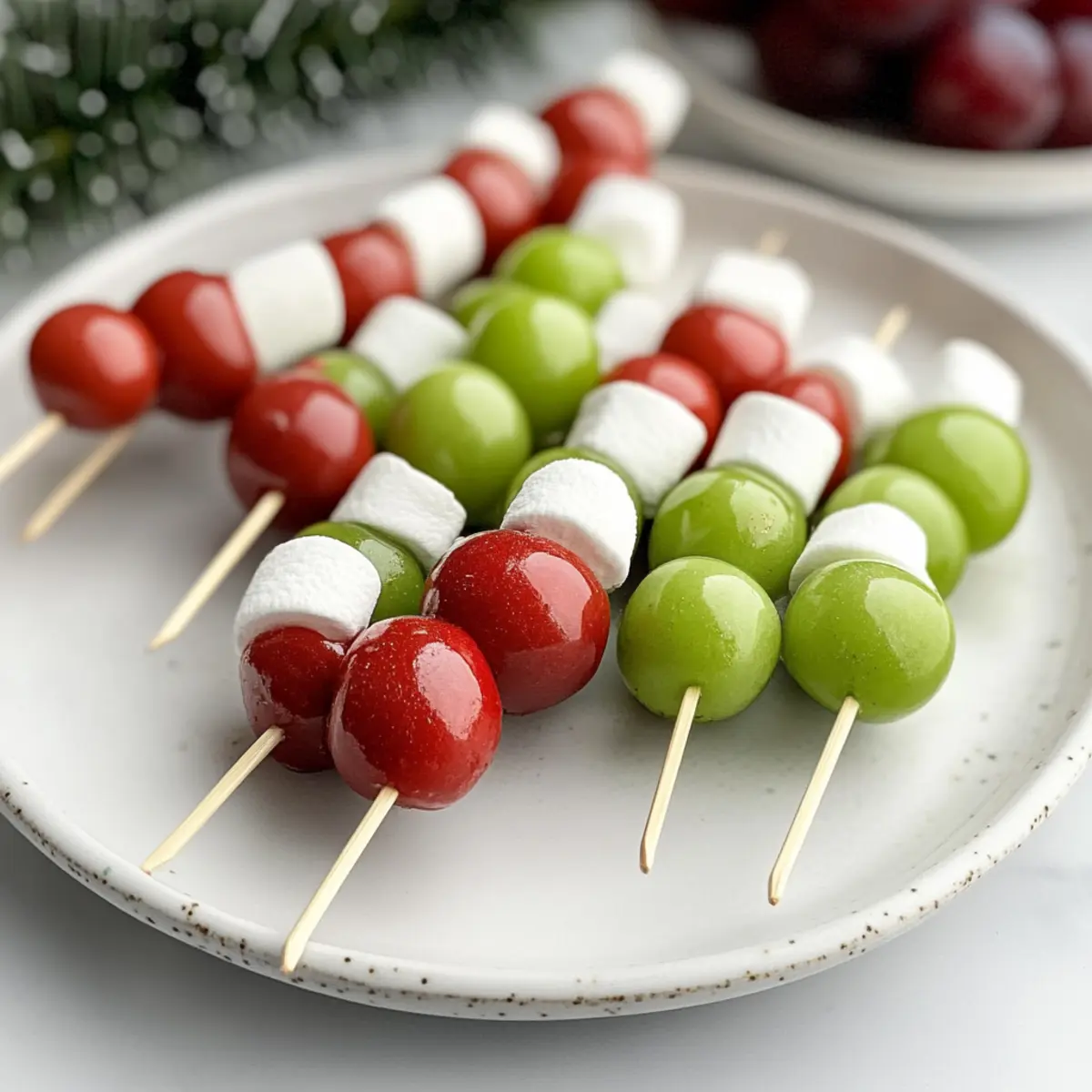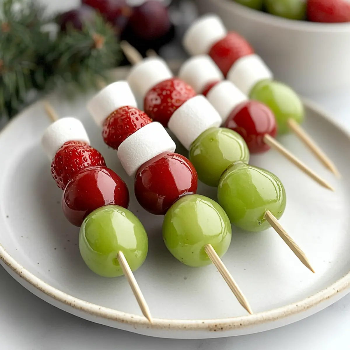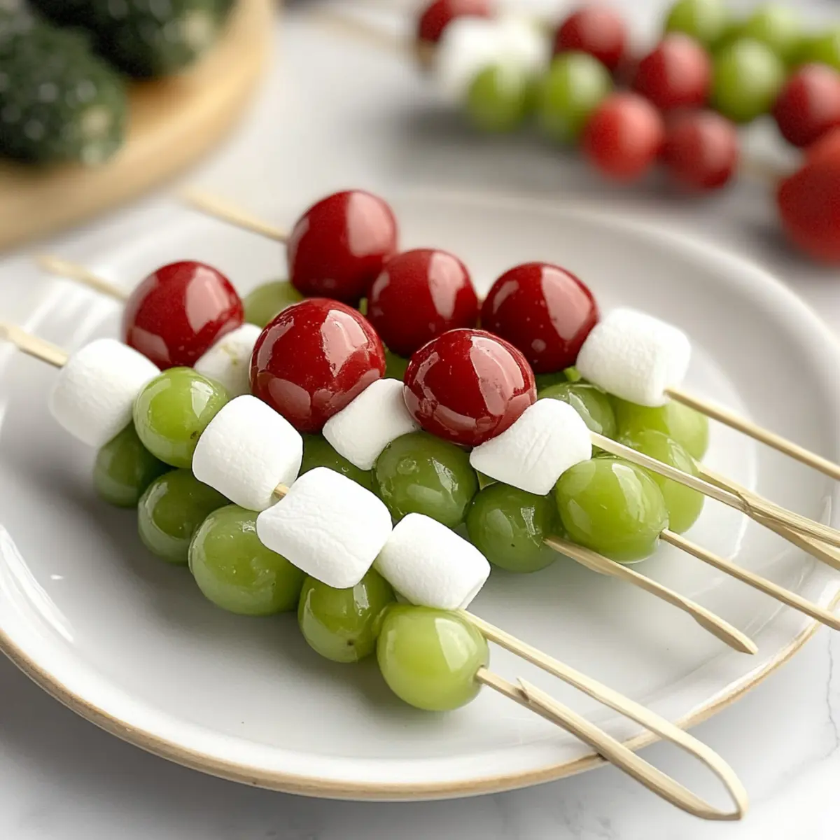 As I stood amidst a flurry of holiday cheer, the aroma of fresh fruits and melted chocolate filled the air, making it impossible to resist. Enter my Healthy Christmas Fruit Skewers, a delightful way to bring a touch of festivity to any gathering. These colorful treats combine juicy strawberries, sweet grapes, and fluffy marshmallows, drizzled with creamy white chocolate and topped with a sprinkle of coconut. Not only are they visually stunning, but they also provide a healthier alternative to the usual holiday sweets, making the perfect kid-friendly snack. Quick to assemble, these skewers invite little hands into the kitchen for some holiday fun. Ready to jazz up your dessert table with a bright burst of color and happiness? Let’s dive into the recipe! Why Choose Christmas Fruit Skewers? Festive Fun: These skewers bring a joyful vibrancy to your holiday table, enchanting kids and adults alike! Easy Assembly: With simple steps, even your little ones can join in, making it a wonderful activity for family bonding. Healthy Twist: Packed with fresh fruits, they offer a guilt-free indulgence that balances out richer holiday desserts. Customizable Treats: Switch up ingredient combinations or toppings for a unique experience each time—try different fruits or drizzles! Crowd-Pleaser: Bright, colorful, and delicious, they disappear quickly at parties, ensuring you’ll be the star of any gathering! For more delightful ideas, check out these healthy holiday snacks that will leave everyone craving more! Christmas Fruit Skewers Ingredients These ingredients will help you create the most delightful Christmas fruit skewers! For the Skewers Strawberries – Bright, firm strawberries bring sweetness and vibrant color; rinse just before use to maintain freshness. Grapes – Juicy grapes form a refreshing base; opt for red or green for a colorful contrast. Large Marshmallows – Serve as tasty separators between the fruits; cutting them into thirds adds fun layers. Mini Marshmallows – Add whimsical flair on top of the strawberries, making every skewer a treat! For the Drizzle and Toppings White Chocolate – Provides a rich sweetness when drizzled; swap for dark chocolate for a more intense flavor. Coconut Flakes – Use for garnishing to add texture and a tropical touch; optional, but delightful! With these ingredients, your Christmas fruit skewers will not only be a stunning centerpiece but also a hit among children and adults alike! Step‑by‑Step Instructions for Healthy Christmas Fruit Skewers Step 1: Prepare the Skewers Begin by taking your wooden or metal skewers, aiming for about 6 inches in length. Thread a grape onto each skewer, ensuring you leave some space at the bottom for easier handling. Aim for a bright, juicy grape, as these will serve as the base for your Christmas fruit skewers, adding both sweetness and color. Step 2: Cut the Marshmallows Using kitchen scissors, cut large marshmallows into thirds. Carefully slide one piece of marshmallow onto the skewer below the grape. The marshmallow acts as a delightful separator, helping to create layers that enhance both the presentation and the taste of your festive creation. Repeat for each skewer to ensure enough delightful texture. Step 3: Add the Strawberries Remove the green tops from your firm, bright strawberries and thread them onto the skewer, broad side facing down. This positioning not only provides stability but also showcases the vibrant red color beautifully. Ensure there’s a good grip on the skewer, as this will be the star ingredient of your Christmas fruit skewers. Step 4: Top with Mini Marshmallows Finish off each skewer by placing a mini marshmallow atop the strawberry. This whimsical addition adds an extra touch of sweetness and charm, making your healthy Christmas fruit skewers even more appealing to children and adults alike. Step 5: Decorate (Optional) If you’d like to get creative, set up edible markers or frosting to decorate the marshmallows for a festive touch. Allow the decorated skewers to rest for 5-10 minutes before serving, so the marshmallows can settle and hold the designs better. This step can be especially fun for kids! Step 6: Serve and Enjoy Place your colorful Christmas fruit skewers on a serving platter to showcase their festive appeal. You can enjoy them fresh immediately, or keep them chilled in the refrigerator until ready to serve. If stored, allow them to sit out for about 15 minutes before serving to return to an optimal texture. How to Store and Freeze Christmas Fruit Skewers Fridge: Store assembled Christmas fruit skewers in a single layer in an airtight container. They can last up to 3 days while maintaining their freshness and flavor. Freezer: Freezing is not recommended for the complete skewers due to the texture changes in fruit and marshmallows. However, you can freeze individual fruits like grapes for later use. Preparation Ahead: Prepare the fruit up to 2 days in advance, keeping it refrigerated until you are ready to assemble the skewers for the best texture and flavor. Reheating: These skewers are best enjoyed cold. If they are out of the fridge, let them sit at room temperature for about 15 minutes before serving for optimal taste. What to Serve with Healthy Christmas Fruit Skewers? These festive fruit skewers can brighten up the table and pair beautifully with a range of delicious sides and treats. Yogurt Dip: A creamy yogurt dip adds a tangy contrast that complements the sweetness of the fruits beautifully. Homemade Cookies: Traditional Christmas cookies invite a nostalgic touch, creating a delightful assortment that guests will love. Savory Cheese Platter: The richness of cheese varieties balances the sweetness, offering a delightful contrast on your holiday table. Sparkling Water: Refreshing and light, fizzy drinks enhance the festive feel while cleansing the palate between sweet bites. Chocolate-Dipped Pretzels: The salty crunch of these treats pairs perfectly with the fru