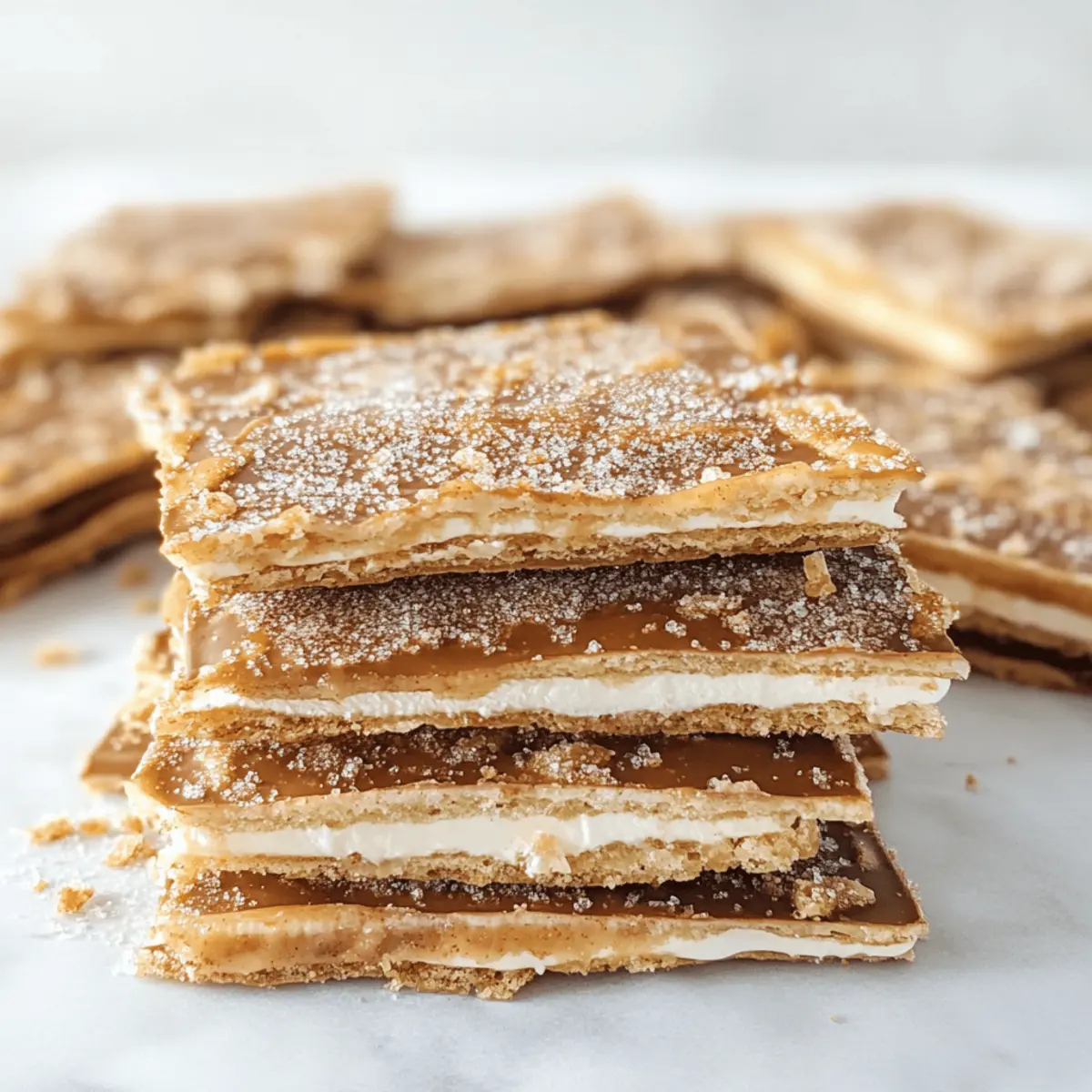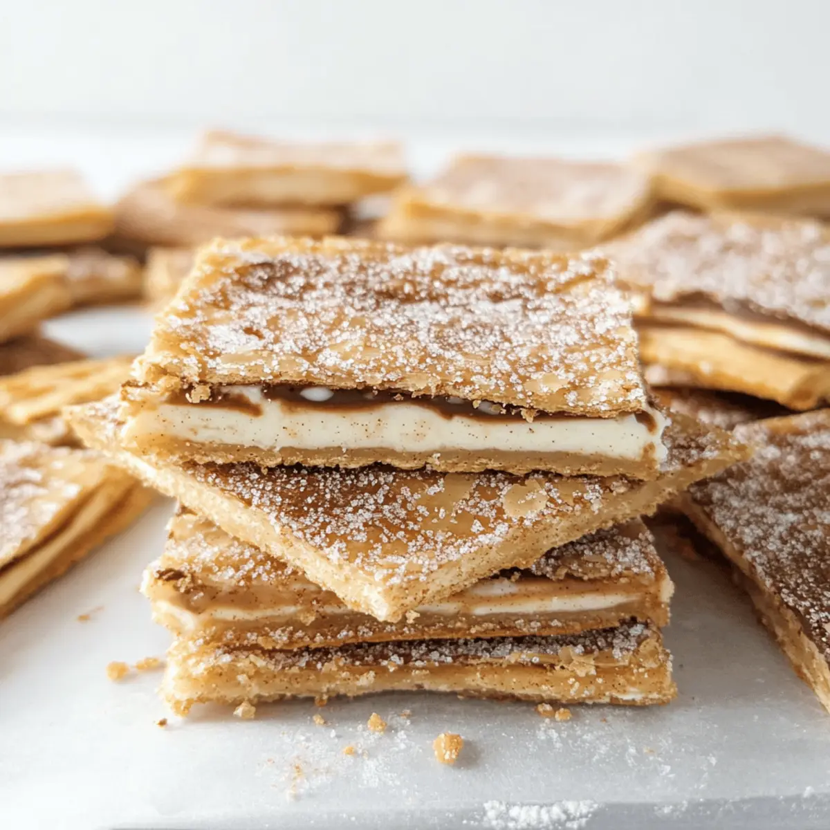 With the first crack of a Saltine cracker under my fingertips, I knew I was about to create something extraordinary. This Churro Saltine Toffee is my secret weapon for satisfying late-night cravings or impressing guests at gatherings. In just a handful of minutes, you’ll transform simple ingredients into a sweet and salty sensation, layering crisp crackers with a buttery caramel topping and a generous sprinkle of cinnamon sugar. This addictive dessert treat delivers a delightful crunch that melts in your mouth, making it an irresistible crowd-pleaser. Plus, it’s vegetarian and quick to whip up, perfect for those moments when you need a sweet fix without all the fuss. Are you ready to dive into this delicious fusion and make your kitchen smell heavenly? Let’s get started! Why is Churro Saltine Toffee a must-try? Irresistible combination: Sweet and salty flavors blend perfectly, making every bite unforgettable. Quick and easy: You can prepare this delicious treat in under 30 minutes, making it a hassle-free option for any occasion. Versatile indulgence: Ideal for parties, movie nights, or simply as a midnight snack—you’ll find excuses to make it often! Crowd-pleaser: Friends and family will rave about this unique dessert, and it’s perfect for sharing. Check out the variation ideas for even more fun! Unique twist: This delightful treat offers a nostalgic flavor reminiscent of churros, taking your tastebuds on a delightful journey. Churro Saltine Toffee Ingredients Get ready to create a sweet delight with these essential ingredients! For the Base Saltine Crackers – A crispy foundation for your toffee; buttery crackers can enrich the flavor. For the Toffee Salted Butter – Gives a rich and creamy toffee sauce; unsalted butter is an excellent substitute for controlled saltiness. Brown Sugar – Adds depth and richness; coconut sugar is a wonderful, less processed swap. For the Topping Granulated Sugar – Sweetens the cinnamon mixture for a delightful sprinkle; mix with brown sugar for extra flavor. Cinnamon – Provides that signature churro-like taste; pumpkin spice makes for a cozy seasonal twist. For the Chocolate Layer Ghirardelli White Chocolate Chips – Adds creamy sweetness to the topping; dark chocolate chips can intensify the experience. Step‑by‑Step Instructions for Churro Saltine Toffee Step 1: Preheat and Prepare Begin by preheating your oven to 400°F (200°C). While the oven heats up, grab a 10 x 15-inch baking sheet and line it with aluminum foil, making sure to leave some overhang for easy removal later. Lightly grease the foil with non-stick spray to prevent sticking, creating a perfect base for your Churro Saltine Toffee. Step 2: Mix Sugar and Cinnamon In a small bowl, whisk together granulated sugar and ground cinnamon until combined. This aromatic mixture will become the delightful topping for your Churro Saltine Toffee. Set the bowl aside, as you’ll use it later to sprinkle over the melted chocolate, adding that signature churro flavor to your treat. Step 3: Arrange the Crackers Carefully arrange 40 Saltine crackers in a single layer across your prepared baking sheet. Make sure they fit snugly but don’t overlap too much, as this helps create an even toffee layer. This step is essential for establishing the crisp base for your Churro Saltine Toffee, ready to hold all that delicious goodness. Step 4: Create the Toffee In a saucepan over medium heat, combine salted butter and brown sugar. Continuously stir the mixture until it comes to a boil. Once boiling, keep stirring for an additional 5 minutes until the mixture is thick and bubbly. This caramel-like concoction will create the rich topping for your Churro Saltine Toffee, so keep a close eye to avoid burning! Step 5: Pour the Hot Mixture Immediately pour the hot butter and sugar mixture evenly over the arranged Saltine crackers. Use a spatula to ensure every cracker is well-coated, which will create that delicious toffee effect. The heat from the mixture will begin to soak into the crackers, setting a flavorful foundation for your dessert. Step 6: Bake the Toffee Place the baking sheet in the preheated oven and bake for 5 minutes. Keep an eye on the toffee as it bubbles and starts to caramelize. You’ll know it’s ready when the mixture is bubbling vigorously and nicely caramelized, creating a sweet, sticky layer over the crackers. Step 7: Add the Chocolate Chips Once baked, remove the sheet from the oven and gently push any overlapping crackers back into their place. Immediately sprinkle the Ghirardelli white chocolate chips evenly over the hot toffee. Allow the heat from the toffee to soften the chips, making it easier to spread them later. Step 8: Spread the Melted Chocolate After letting the chocolate chips sit for a few minutes, use a spatula to spread the softened chocolate evenly over the warm toffee layer. This luscious layer adds richness to the Churro Saltine Toffee, creating a harmonious blend of flavors that will delight your taste buds. Step 9: Sprinkle Cinnamon Sugar Evenly sprinkle the prepared cinnamon sugar mixture over the melted chocolate, ensuring every corner is covered. This final touch enhances the churro-like flavor and adds a delightful sweetness that perfectly contrasts with the salty crackers, elevating your Churro Saltine Toffee to new heights of deliciousness. Step 10: Cool and Cut Allow your Churro Saltine Toffee to cool at room temperature until it is completely set. For easier cutting, you can refrigerate it for about 30 minutes if desired. Once cooled, use a sharp knife to cut it into squares or simply break it into pieces for serving. Get ready for a crunchy, sweet escape! How to Store and Freeze Churro Saltine Toffee Room Temperature: Store your Churro Saltine Toffee in an airtight container at room temperature for up to 1 week for optimal freshness and flavor. Fridge: If you prefer a longer shelf life, place your toffee in the refrigerator, where it can last up