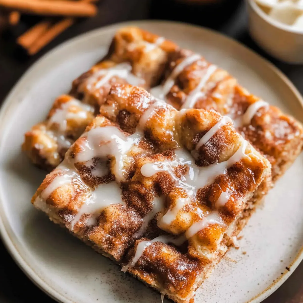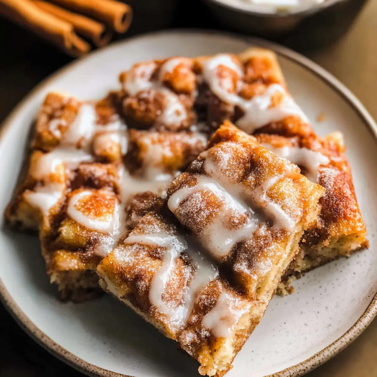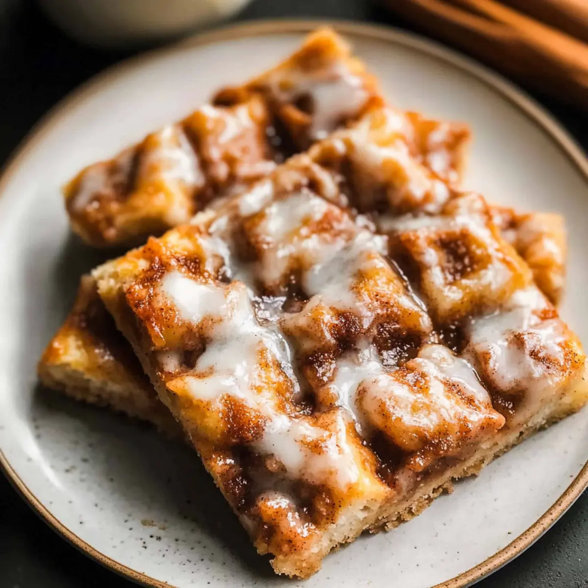 As I stood in my kitchen, the warm scent of cinnamon swirling around me, it suddenly hit me: this isn’t just any ordinary bread; it’s Cinnamon Focaccia. With its soft, airy texture and golden edges, this delightful recipe is a standout in the world of comfort food. Forget the fuss of rolling and shaping—this easy-to-make focaccia requires just a simple mix, a bit of patience for rising, and then it’s ready to bake. Perfectly suited for brunch or as a cozy dessert, each bite melts in your mouth, enrobed in buttery cinnamon-sugar goodness. Plus, it’s a glorious way to fill your home with that inviting aroma we all crave. Are you ready to experience baking bliss? Let’s dive into this warm, comforting creation together! Why Is Cinnamon Focaccia a Must-Try? Comforting, this recipe brings the warmth of home-baked treats right to your table, creating an irresistible aroma that will make your kitchen feel inviting. Effortless Preparation ensures that even novice bakers can whip this up without the stress of traditional recipes. Heavenly Flavor comes from the combination of melted butter and cinnamon-sugar, providing a delicious twist on classic bread. Versatile Serving Options allow it to shine at brunch or as a delightful dessert, paired with coffee or tea. Plus, if you love sweet breads, you may also enjoy my Cinnamon Sugar Cruffins or check out the amazing Cinnamon Focaccia Brown for more flavorful inspiration! Cinnamon Focaccia Ingredients • The perfect mix for this warm, sweet treat! For the Dough Warm Water – Activates yeast for a perfect rise; use at about 110°F. Active Dry Yeast – Provides leavening that makes this dough light and airy. White Granulated Sugar – Feeds the yeast and enhances the overall sweetness. Bread Flour – Creates structure and chewiness; substitute with all-purpose for a softer texture. Salt – Essential for flavor and strengthens the gluten structure. Olive Oil – Adds moisture and enhances the dough’s flavor. For the Topping Unsalted Butter (melted) – Enriches the dough and adds a delightful buttery flavor. Brown Butter – Introduces a nutty flavor and deep caramel notes to the topping. Light Brown Sugar – Sweetens the cinnamon topping and adds a touch of moisture. Cinnamon – Infuses warmth and sweetness into the topping for that classic flavor profile. For the Icing Powdered Sugar – The base for your drizzle, adding sweetness without grittiness. Vanilla Extract – Adds depth and richness to the icing flavor. Milk – Adjusts the icing consistency for an easy drizzle over your warm focaccia. Step‑by‑Step Instructions for Cinnamon Focaccia Step 1: Activate Yeast Start by combining 1 cup of warm water (about 110°F) and 1 tablespoon of sugar in a bowl. Gently sprinkle 2 teaspoons of active dry yeast over the top, allowing it to sit for 10-15 minutes. You’ll know it’s ready when the mixture becomes frothy, signaling that the yeast is active and eager to help your Cinnamon Focaccia rise perfectly. Step 2: Mix Dough In a large mixing bowl, whisk together 4 cups of bread flour and 1 teaspoon of salt until well-combined. Introduce the yeast mixture and 2 tablespoons of olive oil, stirring until a sticky dough forms. Don’t worry about perfect consistency; the dough should be wet and tacky, setting the stage for your soft and airy Cinnamon Focaccia. Step 3: First Rise Transfer the dough into a lightly greased bowl, covering it with plastic wrap or a clean kitchen towel. Place the bowl in the refrigerator and let it rise for a minimum of 12 hours. This slow rise will enhance the flavor and texture of your focaccia, making it fluffy and delicious when baked. Step 4: Second Rise After the first rise, preheat your oven to 400°F. Grease a 9×13-inch baking pan and gently deflate the chilled dough. Transfer it to the pan, then stretch and press it to fit. Cover the pan and let the dough rise in a warm area for 1.5 to 2 hours until puffed and soft, ensuring it’s ready for the oven. Step 5: Prepare Topping While waiting, prepare the cinnamon topping. In a small saucepan, melt 4 tablespoons of unsalted butter over low heat until it becomes browned and fragrant. Remove from heat, then mix in ½ cup of light brown sugar and 2 teaspoons of cinnamon until dissolved. This luscious topping will add that signature warmth and sweetness to your Cinnamon Focaccia. Step 6: Dimple Dough Once the dough has risen, preheat your oven if you haven’t already. Using your fingers, gently press dimples all over the surface of the dough, creating small pockets for the topping. Drizzle the cinnamon mixture evenly over the dough, ensuring each dimple gets a touch of that tasty goodness that makes Cinnamon Focaccia irresistible. Step 7: Bake Place your Cinnamon Focaccia into the preheated oven and bake for 20-25 minutes, watching closely for a golden-brown color. The focaccia should bounce back when lightly touched and will smell heavenly as it bakes, filling your kitchen with delicious aromas. Step 8: Icing Once baked, remove the focaccia from the oven and let it cool for about 10 minutes before transferring it to a wire rack. In a small bowl, mix 1 cup of powdered sugar with 2 tablespoons of milk and 1 teaspoon of vanilla extract. Drizzle the icing over the warm loaf, allowing it to soak in, enhancing your delightful Cinnamon Focaccia with a sweet finishing touch. What to Serve with Cinnamon Focaccia The perfect pairing can elevate the warm, comforting essence of your bake into a delightful feast. Creamy Mashed Potatoes: Their smooth texture complements the fluffy focaccia, creating a wonderful contrast. Picture a cozy brunch where rich buttery potatoes mingle with sweet cinnamon tones. Fresh Fruit Salad: Bright, juicy fruits add a refreshing brightness, balancing the warm sweetness of the focaccia. Mixing berries, melons, and citrus can create a beautiful, vibrant dish. Vanilla Ice Cream: A scoop of ice cream adds a delightful chill and creaminess, perf