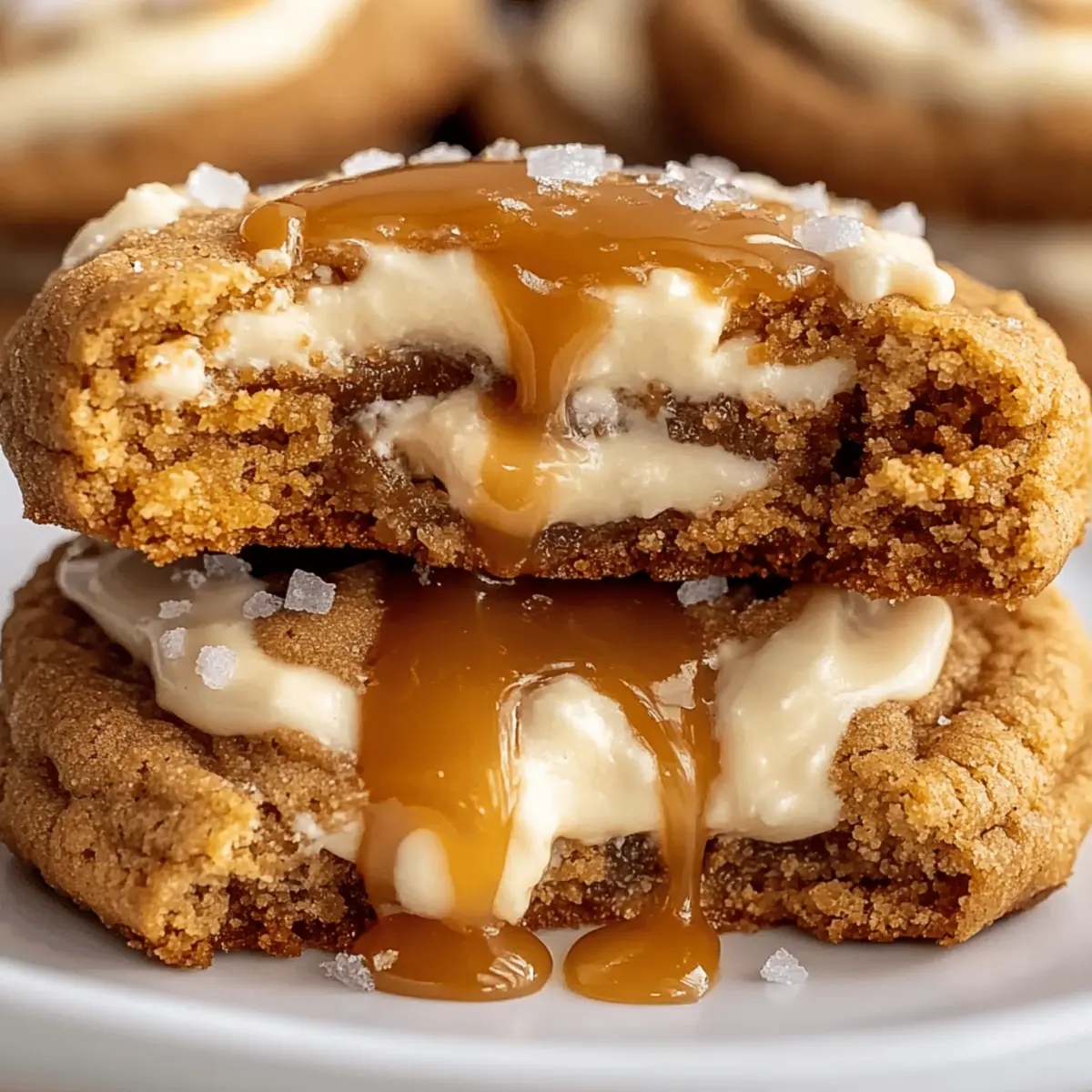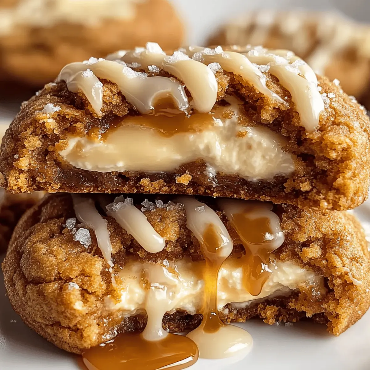As I wandered through a cozy bakery one rainy afternoon, the aroma of fresh cookies filled the air, pulling me into a delightful reverie. Quickly, I found myself craving something indulgent and memorable, leading me to recreate those tempting treats right in my own kitchen. Enter the Copycat Crumbl Salted Caramel Cheesecake Cookies—an oversized, gooey sensation that combines a buttery cookie base with a creamy, cheesecake-filled surprise. Not only are these cookies a showstopper for gatherings, but they’re also perfect for those everyday cravings when you need a sweet pick-me-up. With a drizzle of rich caramel and a sprinkle of flaky sea salt, each bite feels like a mini-celebration of flavors. Ready to make your own batch of homemade indulgence? Let’s dive into this delightful recipe! Why are these cookies so irresistible? Decadent Indulgence: Each bite of these Copycat Crumbl Salted Caramel Cheesecake Cookies brings a lavish mix of flavors that will have you swooning! Easy to Make: The straightforward steps let anyone, from novice bakers to seasoned pros, whip up a batch effortlessly. Customizable Goodness: Feel free to swap the caramel for chocolate or experiment with flavored cream cheese—your creativity knows no bounds! Perfect for Sharing: These oversized treats are a guaranteed crowd-pleaser, making them perfect for parties or gatherings. Versatile Storage: Bake in bulk and store them in the fridge for an instant sweet treat anytime you need a pick-me-up! Dive into more delightful ideas with our Decadent Caramel Swirl brownies or treat yourself to a slice of Vanilla Bean Cheesecake for a sweet night in! Copycat Crumbl Salted Caramel Cheesecake Cookies Ingredients For the Cookie Base Butter – Provides richness and moisture; substitute with margarine or non-dairy butter for dairy-free options. Brown Sugar – Adds depth of flavor and moisture; can replace half with white sugar for a lighter touch. Granulated Sugar – Sweetness and structure; consider a sugar substitute for a lower-calorie option. Eggs – Binds ingredients and contributes richness; can use flax eggs as a vegan alternative (1 tablespoon ground flaxseed + 2.5 tablespoons water per egg). Vanilla Extract – Enhances flavor; using pure vanilla extract is recommended for the best taste. All-Purpose Flour – Provides structure; for gluten-free, opt for a 1:1 gluten-free flour blend. Baking Soda – Acts as a leavening agent, helping cookies rise; no substitutions recommended. Baking Powder – Works with baking soda for optimal texture; ensure it’s fresh for best results. Salt – Balances sweetness perfectly; sea salt is recommended for a finishing touch. For the Cheesecake Filling Cream Cheese – Delivers a creamy cheesecake filling; full-fat is ideal for richness, but low-fat is a lighter option. Powdered Sugar – Sweetens the cheesecake filling, ensuring a smooth texture; homemade powdered sugar works too. For the Topping Graham Cracker Crumbs – Provides a nice crunch; crushed gluten-free crackers can be a suitable alternative. Caramel Sauce – Adds a rich topping; homemade is preferred, but store-bought works just fine! Each ingredient plays a crucial role in achieving the gooey decadence of these Copycat Crumbl Salted Caramel Cheesecake Cookies, making them a sweet indulgence you won’t want to resist! Step‑by‑Step Instructions for Copycat Crumbl Salted Caramel Cheesecake Cookies Step 1: Prepare Cheesecake Filling In a mixing bowl, combine the cream cheese, powdered sugar, and vanilla extract until the mixture is smooth and creamy. Using a cookie scoop, portion out the filling and place each ball on a parchment-lined plate. Transfer the plate to the freezer and chill for at least 30 minutes, until the filling is firm and easy to handle. Step 2: Make Cookie Dough Preheat your oven to 350°F (175°C) and line a baking sheet with parchment paper. In a large bowl, cream together the softened butter, brown sugar, and granulated sugar until light and fluffy—about 3-5 minutes. Then, add in the eggs and vanilla extract, mixing until well combined to create a rich and creamy cookie dough. Step 3: Combine Dry Ingredients In a separate bowl, whisk together the all-purpose flour, baking soda, baking powder, and salt. Gradually mix the dry ingredients into the wet ingredients, stirring until a cohesive dough forms. Be careful not to overmix; you want the dough to be soft and slightly sticky for your Copycat Crumbl Salted Caramel Cheesecake Cookies. Step 4: Assemble Cookies Remove the cheesecake filling from the freezer. Take a generous portion of the cookie dough and flatten it in your hand, then wrap it around each cheesecake ball completely, ensuring no filling is exposed. Roll the dough gently into a ball and place it on the prepared baking sheet, leaving space between each cookie for expansion during baking. Step 5: Bake Bake the cookies in your preheated oven for 12-15 minutes or until the edges are lightly golden but the centers remain soft. Take care not to overbake; the cookies should have a slight jiggle in the center when you take them out, indicating a gooey texture that’s characteristic of the Copycat Crumbl Salted Caramel Cheesecake Cookies. Step 6: Add Toppings Immediately after removing the cookies from the oven, sprinkle graham cracker crumbs on top while they are still warm. Drizzle rich caramel sauce over each cookie and finish with a light sprinkle of flaky sea salt to enhance the flavors. Allow the cookies to cool on the baking sheet for about 10 minutes before transferring them to a wire rack to cool completely. Copycat Crumbl Salted Caramel Cheesecake Cookies Variations Feel free to get creative and put your own spin on these decadent cookies! Dairy-Free: Substitute the cream cheese with a non-dairy alternative for a delicious dairy-free option that everyone will love. You won’t even miss the original creamy filling when you add rich, plant-based cream cheese to the mix! Chocol