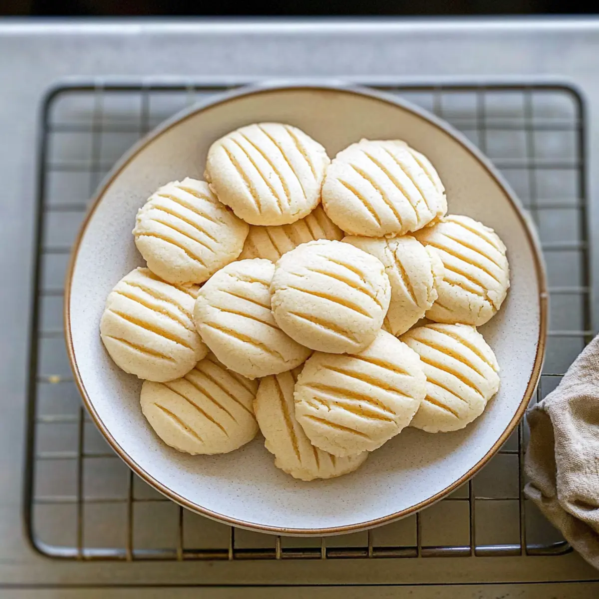 The aroma of freshly baked cookies has a magical way of taking you back to simpler moments, doesn’t it? Today, I’m excited to share a recipe for Melt-in-Your-Mouth Cornstarch Cookies, also known as “Sequilhos.” With just four simple ingredients, these cookies are not only incredibly easy to make, but they also cater to those looking for a delightful gluten-free and egg-free treat. Their unique texture offers a soft, crumbly center with a delicate crunch on the outside, making them perfect for any occasion. Whether you’re unwinding after a long day or surprising friends with a homemade gift, these cornstarch cookies will truly satisfy your sweet tooth. Intrigued? Let’s get started on this delightful baking journey together! Why are Cornstarch Cookies So Irresistible? Simplicity at Its Finest: With just four ingredients, you’ll have a delightful treat ready in no time. Melt-in-Your-Mouth Texture: These cookies boast a unique, crumbly texture that melts on your tongue, making each bite a heavenly experience. Versatile Flavor Options: Feel free to swap vanilla extract for almond or even add chocolate chips to elevate your cookie game—there’s endless potential! Guilt-Free Indulgence: Each cookie is only about 45 calories, making them a treat you can enjoy without any of the guilt. Perfect for All Occasions: Whether paired with a warm cup of tea or served at a festive gathering, these cookies will undoubtedly impress your guests. Try them alongside some of our favorite desserts like Lava Brownie Cookies or Vanilla Waffle Cookies for a delightful spread! Cornstarch Cookies Ingredients For the Cookie Dough Unsalted Butter – Provides richness and flavor; make sure it’s at room temperature for easy mixing. Sweet Condensed Milk – Adds moisture and sweetness; avoid substituting with evaporated milk. Cornstarch – The star ingredient that creates the melt-in-your-mouth texture; don’t swap it for other starches. Vanilla Extract – Enhances the cookie’s flavor; choose high-quality for the best results. Feel the excitement building as you gather these simple ingredients for your cornstarch cookies! Step‑by‑Step Instructions for Melt-in-Your-Mouth Cornstarch Cookies Step 1: Cream the Ingredients In a mixing bowl, combine the room temperature unsalted butter, sweet condensed milk, and vanilla extract. Using an electric mixer or a whisk, blend the ingredients on medium speed until smooth. Allow some small lumps of butter to remain for texture. This will take about 2-3 minutes, and the mixture should be creamy and well-integrated before moving to the next step. Step 2: Add the Cornstarch Gradually sift in the cornstarch, mixing with a spatula until the dough becomes too thick to stir with a spoon. At this point, switch to using your hands, gently kneading until a soft and smooth dough forms. This might take about 2-3 minutes as you want the dough to be pliable, not sticky. If it feels sticky, add a bit more cornstarch, a tablespoon at a time. Step 3: Shape the Dough Divide the dough in half and roll each half into a log about the thickness of your index finger. Once shaped into logs, slice them into ¼” thick pieces. Roll each piece into a ball and place them on a parchment-lined baking sheet, giving each cookie enough space. Aim for uniform shapes to ensure even baking, and take care to avoid pressing them flat at this stage. Step 4: Prepare for Baking Using a fork, gently flatten each ball of dough to create a slight indentation. This will help with even baking and give your cookies a lovely texture. Cover the baking sheet with plastic wrap and refrigerate the cookies for about 30 minutes. Chilling the dough prevents spreading during baking, ensuring that your cornstarch cookies maintain their shape and melt-in-your-mouth quality. Step 5: Preheat the Oven While the dough chills, preheat your oven to 350°F (175°C). This is the perfect temperature for baking cornstarch cookies to achieve that lightly golden bottom while keeping the tops soft and delicate. Make sure your baking sheets are ready, as you’ll need them shortly once the dough has cooled. Step 6: Bake the Cookies Remove the chilled cookies from the refrigerator and place them in the preheated oven. Bake for about 10-12 minutes, or until the bottoms are just lightly golden. Keep an eye on them, as overbaking can lead to dryness; you’re looking for a soft center with a slight crunch on the edges. Step 7: Cool and Transfer After baking, let the cookies cool on the baking sheet for about 5 minutes. This allows them to set and become easier to handle. Once slightly cooled, carefully transfer the cookies to a wire rack to cool completely. This step is important to maintain their melt-in-your-mouth texture, making your cornstarch cookies delightful in every bite! How to Store and Freeze Cornstarch Cookies Room Temperature: Store your cooled cornstarch cookies in an airtight container at room temperature for up to a week. Keep them out of direct sunlight to maintain freshness. Fridge: If you prefer, you can refrigerate the cookies in an airtight container for up to 10 days. This will slightly firm up their texture while preserving their delightful flavor. Freezer: For longer storage, shape your cornstarch cookies, place them on a baking sheet, and freeze for 30 minutes. Then transfer them to airtight bags or containers, where they can be stored for up to 3 months. Reheating: To enjoy frozen cookies, simply thaw them at room temperature or warm them in the oven at 300°F (150°C) for 5-7 minutes. This will restore their delightful melt-in-your-mouth quality. What to Serve with Melt-in-Your-Mouth Cornstarch Cookies? Indulge in a symphony of flavors that will elevate your delightful cookies into a full meal experience. Creamy Vanilla Ice Cream: The cool, creamy texture of vanilla ice cream perfectly contrasts the cookies’ crumbly bite, creating a heavenly combination. Try drizzling some chocolate sauce over it for 