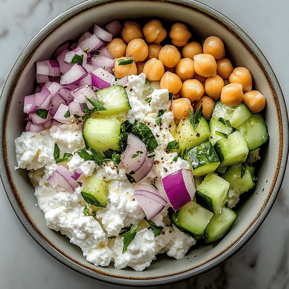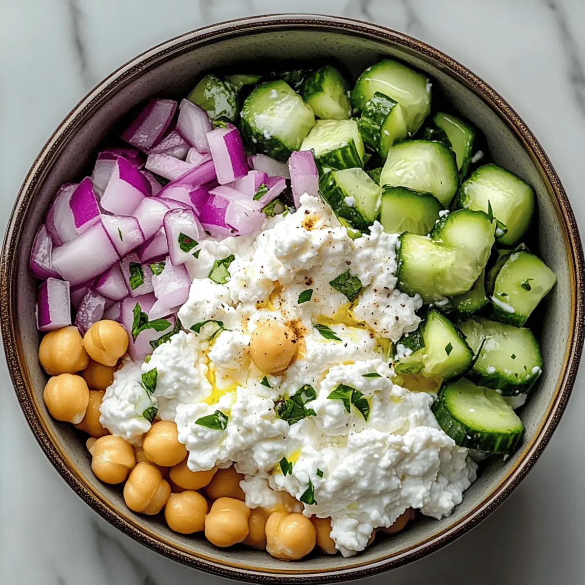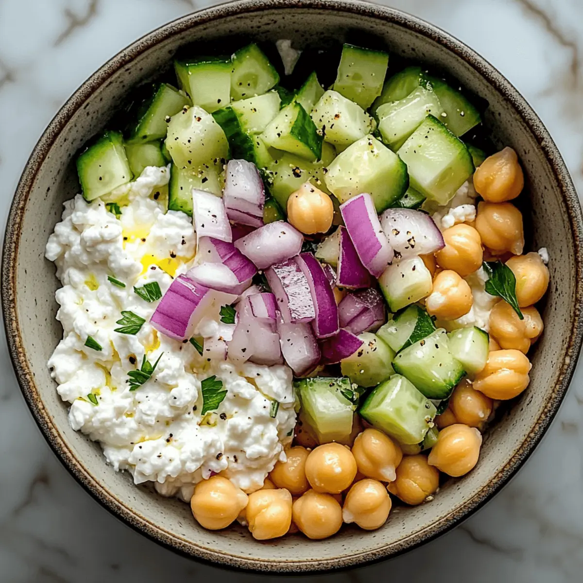 As I tossed the vibrant ingredients into a bowl, the colors practically danced in celebration. This Cottage Cheese and Chickpea Salad is more than just a quick and easy meal; it’s a delightful escape from the mundane, packed with protein and versatile enough to accommodate any of your favorite veggies. Imagine creamy cottage cheese mingling with hearty chickpeas, crisp cucumbers, and that zing of red onion—it’s a refreshing dish that’s as satisfying as it is nutritious. Perfect for busy weekdays or a chilled summer lunch, you can whip it up in under 15 minutes. Plus, you can easily customize it to suit your cravings or pantry staples. Curious about how to make this appetizing salad your own? Let’s dive in! Why is this salad a crowd-pleaser? Versatile Nutrition: This Cottage Cheese and Chickpea Salad is a fantastic base that allows you to mix in whatever vegetables or herbs you prefer, making it adaptable to your taste or dietary needs. Quick Prep: In just under 15 minutes, you can whip up a healthy meal that doesn’t compromise on flavor, perfect for busy chefs or anyone looking to escape fast food. Protein-Packed Delight: With the protein power of chickpeas and cottage cheese, this salad will keep you feeling full and satisfied. Fresh and Flavorful: The combination of creamy cottage cheese, crunchy cucumbers, and tangy red onion brings a refreshing taste that’s perfect for warm days, similar to a light version of an Onion Broccoli Cheese Casserole. Make Ahead Convenience: Store it in the fridge for up to two days, making it an excellent choice for meal prep. Enjoy it as a side dish, a main course, or even at picnics! Cottage Cheese and Chickpea Salad Ingredients For the Salad • Cottage Cheese – Provides creaminess and is packed with protein, so choose low-fat or full-fat based on your preference. • Chickpeas – Adds heartiness and plant-based protein; both canned and cooked from dry will work beautifully. • Cucumbers – Contributes a refreshing crunch; opt for English cucumbers for sweetness or Persian cucumbers for an extra crispness. • Red Onion – Delivers a zesty bite and lovely color; alternatively, you can use shallots or green onions for a milder flavor. For the Vinaigrette • Olive Oil – Use this as a base to add healthy fats and richness to the salad. • Vinegar of Choice – This brightens the flavor; experiment with balsamic or apple cider vinegar for a unique twist on your Cottage Cheese and Chickpea Salad. Optional Add-Ins • Fresh Herbs – Add parsley or dill to elevate the flavors and introduce a fresh twist. • Additional Vegetables – Introduce bell peppers or cherry tomatoes for a pop of color and flavor. • Nuts or Seeds – Incorporate sunflower or pumpkin seeds for added texture and nutrition. • Cheese – Crumbled feta can introduce a delightful salty kick or choose a different cheese for an added layer of creaminess. Step‑by‑Step Instructions for Cottage Cheese and Chickpea Salad Step 1: Prepare the Ingredients Begin by gathering all your ingredients for the Cottage Cheese and Chickpea Salad. Rinse and drain the canned chickpeas, ensuring they are well-drained to avoid excess moisture. Chop the cucumbers into bite-sized pieces and finely dice the red onion. Having everything prepped and ready will make combining them much easier and more enjoyable. Step 2: Mix the Salad Base In a large mixing bowl, combine the prepared cottage cheese, drained chickpeas, diced cucumbers, and chopped red onion. Gently stir the ingredients together using a spatula or spoon until everything is evenly distributed. The creamy cottage cheese will create a lovely texture that envelops the crunch of the vegetables, making the salad look vibrant and inviting. Step 3: Whisk the Vinaigrette In a separate small bowl, whisk together 2 tablespoons of olive oil and 1 tablespoon of your chosen vinegar until fully combined. This vinaigrette will add a bright finishing touch to your Cottage Cheese and Chickpea Salad. You should notice a slight emulsification; the dressing should be smooth and slightly glossy. Step 4: Combine Salad and Dressing Pour the prepared vinaigrette over the salad mixture in the large bowl. Using a spoon or spatula, gently toss the salad to ensure all ingredients are coated evenly with the dressing. You’ll want to see every piece glistening, which helps enhance the delightful flavors and textures you’ve created. Step 5: Let it Rest Allow the Cottage Cheese and Chickpea Salad to sit for about 5 minutes before serving. This short resting time lets the flavors meld beautifully, enhancing the overall taste of the dish. You’ll notice the salad becoming even more appealing as the vibrant colors come together. Step 6: Serve and Enjoy Transfer the salad to a serving bowl or individual plates. Consider garnishing with fresh herbs like parsley or dill for an added pop of color and flavor. It’s best served chilled, making it a refreshing option for a light lunch or picnic, ready to be savored by family and friends. What to Serve with Cottage Cheese and Chickpea Salad Elevate your dining experience with delightful pairings that complement this protein-packed salad perfectly. Grilled Lemon Chicken: Juicy and zesty, grilled chicken adds a hearty contrast to the creamy salad and infuses a fresh citrus note. Herb-Infused Quinoa: Nutty quinoa tossed with fresh herbs provides chewy texture that harmonizes wonderfully with the salad’s creaminess. Avocado Toast: Creamy avocado on toasted bread offers a fulfilling crunch, enhancing the meal’s overall richness while contributing a dose of healthy fats. Crispy Pita Chips: These crunchy delights add a satisfying texture and are perfect for scooping up the salad for a fun, shareable snack. Roasted Vegetables: A mix of roasted bell peppers, carrots, and zucchini brings warmth and sweetness that contrasts beautifully with the chilly salad. Chilled White Wine: A glass of crisp Sauvignon Blanc compleme