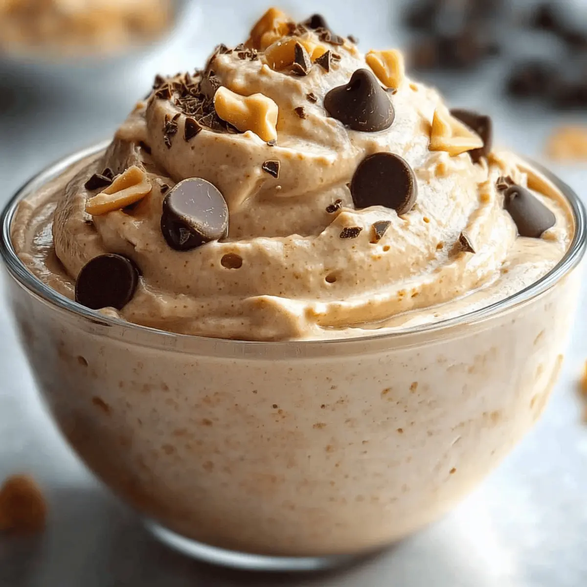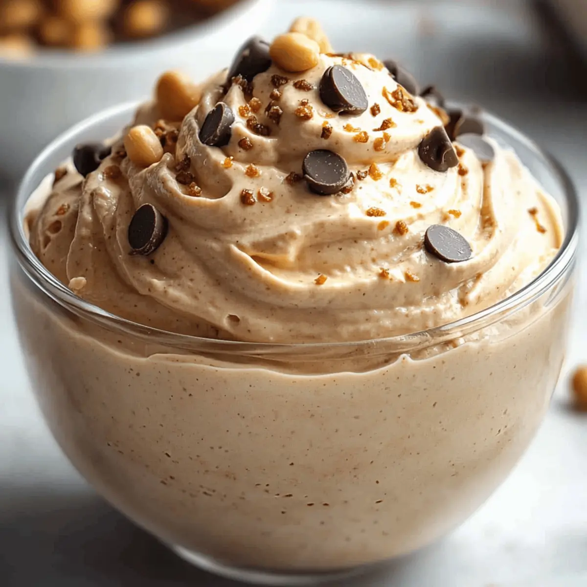 In just five quick minutes, I stumbled upon a delightful creamy concoction that has revolutionized my dessert game: Cottage Cheese Peanut Butter Mousse. If you think indulgent desserts have to be loaded with calories, this recipe will pleasantly surprise you. It’s not only protein-packed and guilt-free, but it also satisfies those nutty cravings like no other, all while being a no-bake wonder. This is perfect for any time of day, from a quick snack to a post-workout treat. Can you believe something so rich and delicious can come together so effortlessly? Let’s dive into this simple yet satisfying recipe that will surely have you reaching for seconds! Why Choose Cottage Cheese Peanut Butter Mousse? Quick delight in just 5 minutes: This mousse is a total game-changer for busy days, offering a creamy treat without the lengthy prep time. Protein-packed and guilt-free: With full-fat cottage cheese and natural peanut butter, you indulge in flavors without the calorie overload. Versatile for any time: Whether as a snack, breakfast, or post-workout boost, this mousse fits seamlessly into your lifestyle. No-bake simplicity: Say goodbye to complicated recipes—just blend, chill, and enjoy! Pair it with fresh fruit or a sprinkle of chocolate for extra flair, and for more delicious no-bake ideas, don’t miss out on our Garlic Butter Shrimp or Cottage Cheese Cloud recipes. Cottage Cheese Peanut Butter Mousse Ingredients Unlock the secrets to this creamy delight! For the Mousse Full-fat cottage cheese – Creates a creamy base packed with protein; low-fat may alter the texture slightly. Creamy natural peanut butter (sugar-free) – Infuses rich nutty flavor; almond butter makes a great alternative for a different twist. Honey or maple syrup – Sweetens the mousse to perfection; other sweeteners like monk fruit or agave nectar can substitute easily. Vanilla extract – Enhances the overall flavor profile; while optional, it’s highly recommended for depth. Salt (optional) – Balances out the sweetness and brings out the flavors; feel free to omit if looking to reduce sodium. Milk (if needed) – Adjusts the texture to your desired creaminess; start with 1 tablespoon of your favorite type. Enjoy making your Cottage Cheese Peanut Butter Mousse! Step‑by‑Step Instructions for Cottage Cheese Peanut Butter Mousse Step 1: Strain the Cottage Cheese Begin by straining 1 cup of full-fat cottage cheese for 1-2 minutes to eliminate excess liquid. This step ensures a thick, creamy base for your Cottage Cheese Peanut Butter Mousse. Use a fine mesh sieve or cheesecloth over a bowl to catch the liquid. Once done, the cottage cheese should appear thick and luxurious, ready to blend. Step 2: Gather Your Equipment Prepare a clean food processor or high-speed blender, ensuring the blade is securely in place. This equipment will help achieve the smooth, velvety texture of the mousse. Set it on your kitchen counter, and get ready for the magic of blending that will come together in just a few minutes. Step 3: Add Ingredients to the Blender In your blender, combine the strained cottage cheese with creamy natural peanut butter, your choice of sweetener (honey or maple syrup), vanilla extract, and optional salt. Distribute them evenly around the blade to ensure even mixing. This is where the flavors will meld beautifully, creating a decadent mousse. Step 4: Blend Until Smooth Blend on high for 45-60 seconds until the mixture reaches a completely smooth consistency. Halfway through, pause to scrape down the sides with a spatula, ensuring none of the ingredients are left unblended. The mousse should have a silky appearance, rich with the scent of peanut butter, inviting you to the next step. Step 5: Adjust the Texture After blending, check the texture of your Cottage Cheese Peanut Butter Mousse. If it appears too thick, fear not! Gradually add 1-2 tablespoons of milk, blending again until it reaches your preferred consistency. The final product should be creamy and easy to scoop, so enjoy the process of adjusting! Step 6: Chill the Mousse Transfer the mousse into a bowl and cover it with plastic wrap. Place it in the refrigerator for 15-20 minutes, allowing it to set and enhance the flavors. Chilling also helps the mousse achieve the perfect consistency, making each spoonful even more enjoyable when served. Step 7: Portion for Serving Once chilled, portion the Cottage Cheese Peanut Butter Mousse into 2-4 small bowls or jars, with about ¼–½ cup per serving. The mousse should look enticing and ready to indulge in. Each portion will deliver a creamy, satisfying treat, perfect for any time of day. Step 8: Add Optional Toppings Serve your Cottage Cheese Peanut Butter Mousse chilled, topped with optional enhancements like chopped peanuts or dark chocolate chips for added texture and flavor. These toppings not only enhance the appearance but also elevate the taste experience, making your dessert as delightful visually as it is on the palate. Helpful Tricks for Cottage Cheese Peanut Butter Mousse Choose Full-Fat: For the creamiest texture, go for full-fat cottage cheese. Low-fat alternatives can lead to a grainy mousse. Blend Thoroughly: Ensure you blend the mousse until completely smooth—scraping down the sides halfway helps incorporate all ingredients fully. Adjusting Thickness: Add milk gradually when adjusting the texture. Too much at once can turn your luscious mousse into a runny mess. Chill Time Matters: Don’t skip the chilling step! Letting it set for 15-20 minutes in the fridge enhances the flavor and allows the mousse to firm up beautifully. Flavor Variations: Feel free to experiment! Adding cocoa powder or blending in fruits like bananas can create delightful new versions of this Cottage Cheese Peanut Butter Mousse. Make Ahead Options These Cottage Cheese Peanut Butter Mousse are perfect for busy home cooks looking to save time during the week! You can prepare the entire mousse up to 24 hours in advance; 