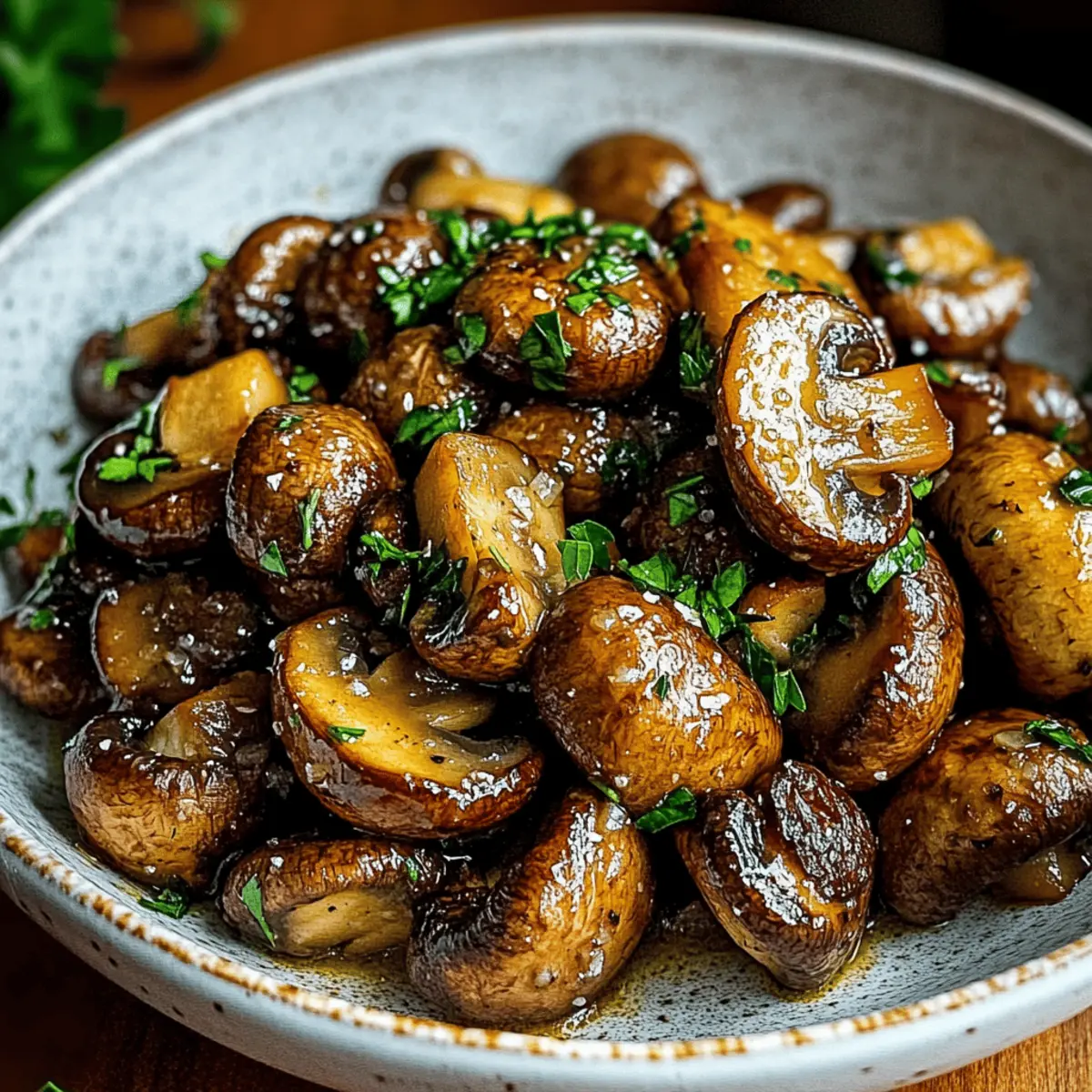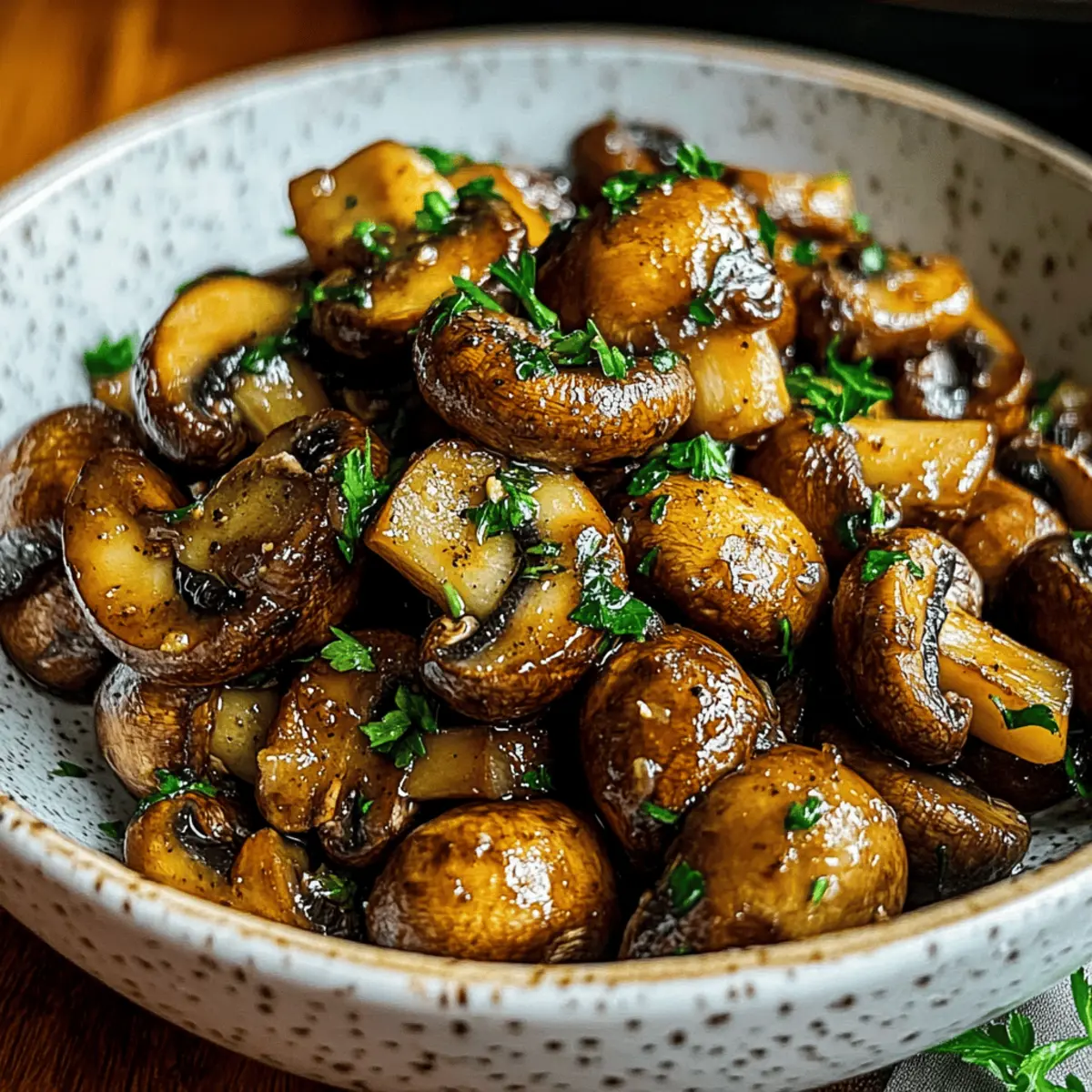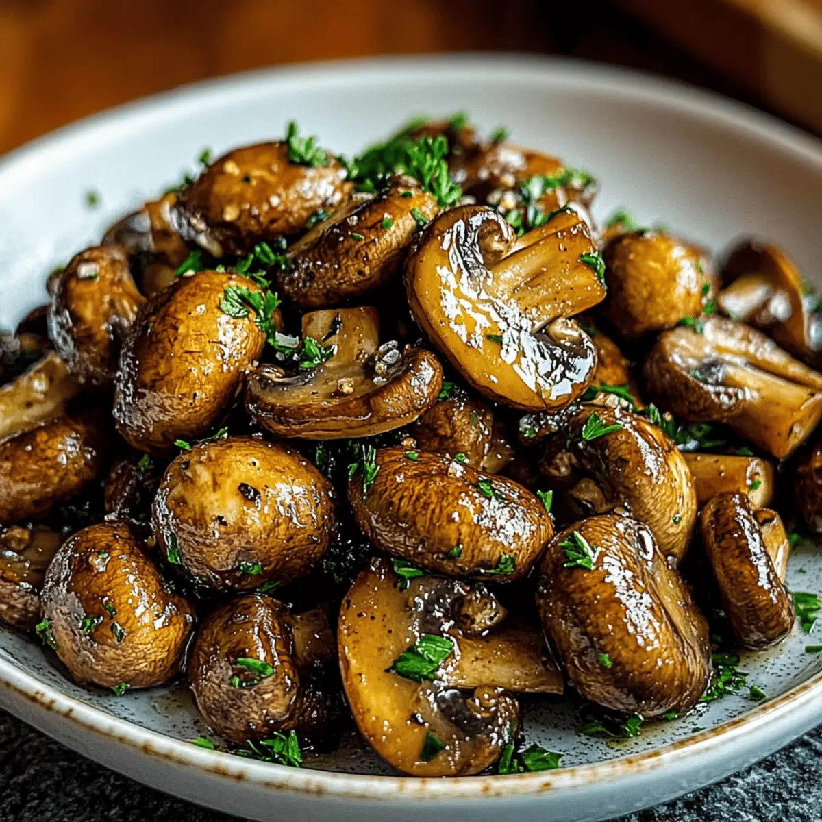 As I stood by the stove, the intoxicating aroma of sizzling garlic filled the air—the kind that makes your stomach growl and your heart feel at home. Today, I’m sharing my rendition of Sautéed Cowboy Mushrooms, a dish that makes my taste buds dance with joy. These tender baby bella mushrooms, elegantly sautéed in rich garlic butter, are perfectly seasoned with Worcestershire and soy sauce, making them a savory delight. The best part? This quick side dish takes mere minutes to whip up, whether you’re pairing them with grilled steaks or toasting them on crusty bread. Plus, they’re adaptable for gluten-free diets, so everyone can indulge in this rustic, hearty treat. Are you ready to explore the satisfying depths of flavor that these Cowboy Mushrooms bring to the table? Why Are Cowboy Mushrooms Irresistible? Bold, Buttery Flavor: These Cowboy Mushrooms are enveloped in a rich garlic butter sauce that transforms simple ingredients into a flavor powerhouse. Quick and Easy: With just a few steps, you can have a delicious side dish ready in under 15 minutes—perfect for busy weeknights. Versatile Delight: Whether served alongside grilled meats or as a topping on crusty sourdough, these mushrooms fit seamlessly into any meal. Crowd-Pleasing Comfort: With their savory depth and meaty texture, they are sure to impress your family and friends—who could resist? Gluten-Free Option: Easily adapt this recipe for gluten-free diets, allowing everyone to savor the unique flavors without worry—check out my guide on gluten-free cooking tips. Get ready to enjoy a comforting dish that is perfect for any occasion! Cowboy Mushrooms Ingredients For the Mushrooms • Baby Bella Mushrooms – Their hearty texture and deeper flavor make them ideal for soaking up the bold sauce; you can substitute with white button mushrooms if necessary. • Butter – Adds richness to the dish and forms the base of the garlic butter sauce. • Garlic – Freshly minced garlic brings essential aroma and flavor; use more if you crave a stronger garlic kick. • Worcestershire Sauce – Provides a smoky, savory punch that elevates the overall taste. • Soy Sauce – Deepens the umami flavor while balancing the richness of the butter; opt for gluten-free soy sauce if needed. • Black Pepper – Freshly cracked adds heat and complexity; feel free to adjust according to your taste. • Fresh Parsley – Adds beautiful color and brightness to the finished Cowboy Mushrooms. For Serving • Sourdough Bread – Toasted slices make a perfect base for these Cowboy Mushrooms, enhancing the rustic experience. • Grilled Meats – Pair these mushrooms with steak or chicken for a hearty side dish that complements grilled flavors. Get ready to delight your taste buds with these irresistible Cowboy Mushrooms, perfect for a quick yet satisfying meal! Step‑by‑Step Instructions for Cowboy Mushrooms Step 1: Prep the Mushrooms Start by wiping the baby bella mushrooms with a damp paper towel to remove any dirt, ensuring they’re clean but not submerged in water. Trim the stems if needed, but keep the mushrooms whole for a rustic look. This preparation step sets the base for your delicious Cowboy Mushrooms. Step 2: Melt Butter In a large skillet, place over medium heat, melt 3 tablespoons of butter until it bubbles gently, creating a fragrant base for your dish. This should take about 2-3 minutes. Watch for the butter to turn slightly golden—this adds to the rich, buttery flavor that your Cowboy Mushrooms will absorb beautifully. Step 3: Cook Garlic Add 3 cloves of freshly minced garlic to the melted butter and sauté for 30 seconds. Stir continuously, ensuring the garlic doesn’t brown, which could lead to bitterness. You’ll know it’s ready when the kitchen fills with its delightful aroma, enhancing the savory profile of the Cowboy Mushrooms. Step 4: Add Mushrooms Carefully stir in the prepared baby bella mushrooms, ensuring they are evenly coated in the garlic butter. Cook for 7-9 minutes, stirring occasionally until the mushrooms release their moisture and begin to brown. You’ll see them turn golden and shrink slightly, signaling they’re absorbing all those delicious flavors. Step 5: Add Sauces Once the mushrooms are beautifully browned, drizzle in 1 tablespoon each of Worcestershire and soy sauce. Add a liberal amount of freshly cracked black pepper to taste, mixing well to combine the flavors. This step deepens the umami essence of your Cowboy Mushrooms, making them irresistibly savory. Step 6: Simmer Allow the mixture to simmer for 2-3 minutes, stirring occasionally, until the sauce thickens and coats the mushrooms. The visual cue here is a rich, glossy glaze wrapping around each mushroom. Just before taking the skillet off the heat, stir in the freshly chopped parsley for a vibrant pop of color. Step 7: Serve Hot Serve the Cowboy Mushrooms hot right from the skillet, showcasing their luscious butter sauce. They pair wonderfully with grilled meats or atop toasted sourdough slices. This last step elevates your quick and satisfying dish, making it a delightful addition to your meal. How to Store and Freeze Cowboy Mushrooms Fridge: Store cooled Cowboy Mushrooms in an airtight container for up to 4 days to keep them fresh. Freezer: If you want to freeze the mushrooms, allow them to cool completely, then transfer to a freezer-safe bag. They can be frozen for up to 2 months; thaw overnight in the fridge before reheating. Reheating: When ready to enjoy your Cowboy Mushrooms again, gently reheat in a skillet with a splash of water or butter over low heat, stirring until warmed through. This will help maintain their delicious flavor and texture. Serving Tip: These mushrooms are best enjoyed fresh, but properly stored, they remain a delightful option for quick meals later in the week! Make Ahead Options These Cowboy Mushrooms are perfect for meal prep enthusiasts! You can wash and trim the mushrooms up to 24 hours in advance,