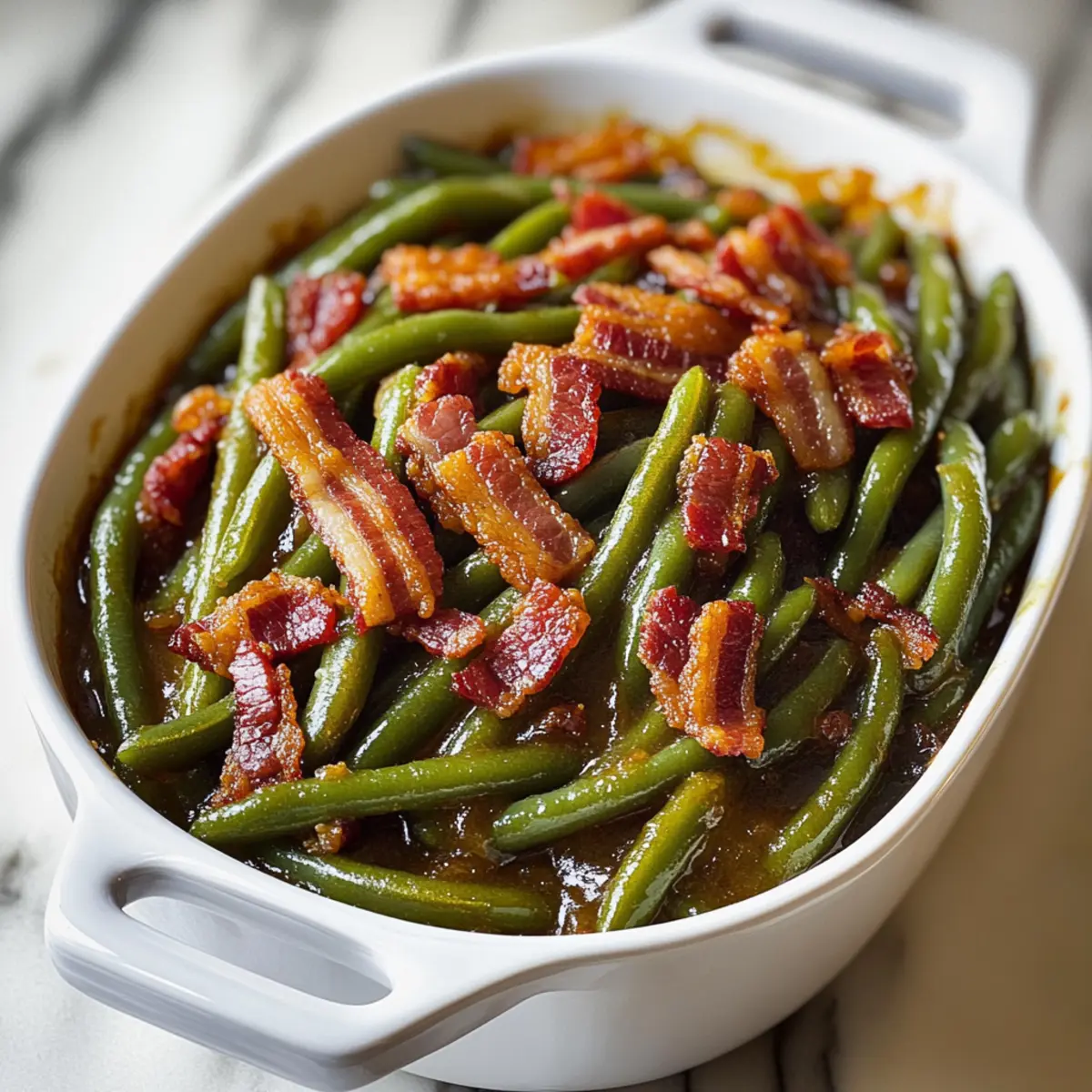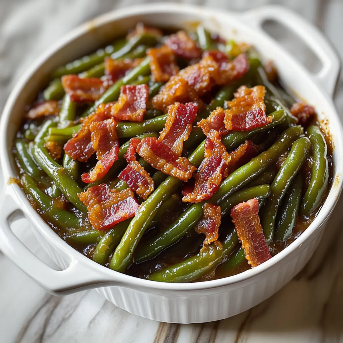 Every home cook has that one recipe that transforms a simple gathering into a memorable feast. For me, it’s definitely these Crack Green Beans. This vibrant dish takes ordinary green beans and elevates them to a whole new level, thanks to a luscious brown sugar glaze and crispy bacon that makes them utterly irresistible. Not only are they a crowd-pleaser, but they can be prepared ahead of time, allowing you to enjoy more time with your guests instead of being stuck in the kitchen. Whether you choose fresh or canned beans, this recipe is customizable to fit any occasion and palate. Are you ready to impress everyone at your next dinner with these addictive green beans? Let’s dive into the details! Why Are Crack Green Beans So Irresistible? Addictive Flavor: The combination of brown sugar and bacon creates an unmatched taste sensation that will leave everyone asking for seconds. Customizable Options: With variations like Spicy Maple or a Cheesy Twist, these beans can suit any preference. Make-Ahead Convenience: Prepare them ahead of time, letting you focus on enjoying your gathering rather than cooking! Crowd-Pleaser Delight: Perfect for potlucks and family dinners, they’re guaranteed to impress guests of all ages. Texture Perfection: The glossy, sticky glaze complements the tender yet slightly crisp texture of the beans, creating a dish that’s a feast for both the eyes and the palate. Try these versatile and easy-to-make Crack Green Beans to discover a new favorite dish that will surely become a staple at your home! Crack Green Beans Ingredients • Get ready for a flavor adventure! For the Beans • Green Beans – Use 2 lbs of fresh trimmed & blanched beans, or opt for 4 cans of drained canned beans for a quicker prep. For the Glaze • Bacon – Go for 8-12 slices of thick-cut bacon, cooked until crispy; keep that bacon grease for a richer glaze! • Butter – Melt 1/4 cup (salted or unsalted) to add a creamy richness to the glaze. • Brown Sugar – Use 2/3 cup of light or dark brown sugar to create the addictive sticky glaze that makes these Crack Green Beans irresistible. • Soy Sauce – Incorporate 1/4 cup of low-sodium soy sauce for a balanced umami depth that tempers the sweetness. • Garlic Powder – Add 1 tsp for a subtle flavor boost; fresh minced garlic works if you prefer. • Black Pepper – Just a pinch (1/2 tsp) adds a gentle kick to enhance the overall taste. With these Crack Green Beans ingredients in hand, you’re all set to create a dish that will wow your family and friends! Step‑by‑Step Instructions for Crack Green Beans Step 1: Preheat the Oven Begin by preheating your oven to 350°F (175°C) and greasing a 9×13-inch baking dish with a touch of butter or cooking spray. This ensures your Crack Green Beans don’t stick and allows for effortless serving later. Set the dish aside while you prepare the green beans, ensuring they are ready to soak up all the delicious glaze. Step 2: Prepare the Green Beans If you’re using fresh green beans, trim and blanch them in boiling water for 3-4 minutes until tender yet still vibrant in color. Immediately transfer them to an ice bath to halt the cooking process, then drain thoroughly. For canned beans, simply drain and pat them dry to remove excess moisture. This step is vital for achieving that glossy glaze later on your Crack Green Beans. Step 3: Cook the Bacon In a large skillet, cook the chopped thick-cut bacon over medium heat until it’s crispy and golden brown, which should take about 6-8 minutes. Once done, transfer the bacon to a paper towel-lined plate to absorb excess grease, leaving about 1 tablespoon of bacon drippings in the pan. This leftover grease provides a rich base for the glaze that enhances the flavor of your Crack Green Beans. Step 4: Make the Glaze In the same skillet with the reserved bacon grease, melt 1/4 cup of butter over low heat. Stir in 2/3 cup of brown sugar, 1/4 cup of low-sodium soy sauce, and 1 teaspoon of garlic powder until the mixture is smooth and glossy, which should take about 2-3 minutes. The warmth will help the sugar dissolve perfectly, creating that irresistible glaze that coats the Crack Green Beans. Step 5: Combine the Ingredients Spread the prepared green beans evenly in the greased baking dish. Pour the sweet and savory glaze over the beans, ensuring every inch is covered. Next, sprinkle the crispy bacon bits on top for added flavor and texture. This combination will result in a delightful dish that truly represents the spirit of these addictive Crack Green Beans. Step 6: Bake the Dish Place the baking dish in your preheated oven and bake uncovered for 30-40 minutes. Keep an eye on it, and look for bubbles and a thickened glaze for visual cues indicating it’s ready. The final result should be a beautifully caramelized coating enveloping the beans, making for a stunning and delicious side dish. Step 7: Serve and Enjoy Once baked to perfection, allow the Crack Green Beans to cool slightly before serving. These glossy, flavorful beans pair wonderfully with a variety of proteins, making them the ideal side for any meal. Gather your family around and revel in the accolades you’ll receive for this amazing dish! Crack Green Beans: Fun Variations Get creative with these delectable variations and make this recipe your own! Honey Garlic Version: Substitute half the brown sugar with honey and add minced garlic for an aromatic twist. This variation brings a subtle sweetness that complements the beans beautifully. Spicy Maple Version: Swap brown sugar for maple syrup and toss in crushed red pepper flakes for a perfect kick. The slight sweetness combined with heat will make your taste buds dance. Cheesy Twist: Sprinkle with shredded cheese before baking for an indulgent layer of melted goodness. Imagine every bite enriched with that melty, creamy flavor! Fresh & Light Variation: Replace butter with olive oil and finish with a drizzle of balsamic glaze for a healthier 