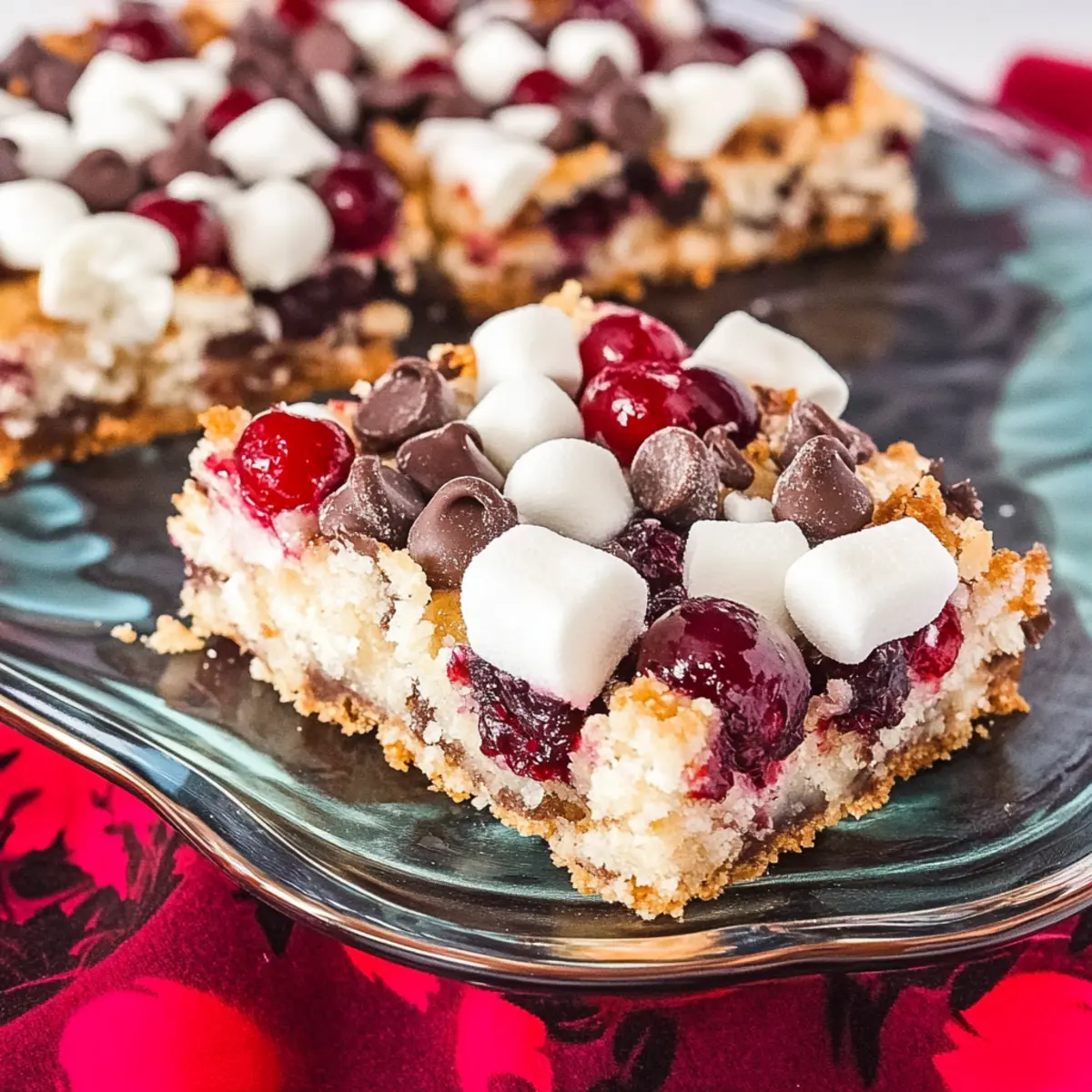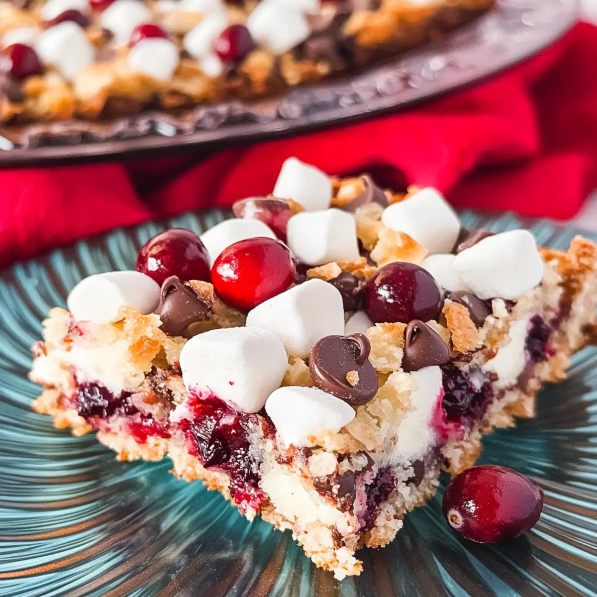 As I stood in my kitchen, the aroma of layered goodness wafted through the air, instantly transporting me to cozy holiday gatherings. These Holiday 7 Layer Cranberry Magic Bars are a delightful twist on traditional treats, combining the tartness of cranberries with rich, sweet chocolate and creamy coconut—all layered on a buttery graham cracker crust. Perfect for the busy season, this no-bake recipe takes minimal time to prepare, making it an easy crowd-pleaser for parties and bake sales alike. Plus, they make for thoughtful gifts that are sure to impress! Are you ready to discover how to create these festive bars that will become a family favorite? Why Are These Cranberry Magic Bars Amazing? Bursting with Flavor: Each layer of the Cranberry Magic Bars offers a delicious contrast—from the chewy cranberries to the creamy coconut, making every bite a festive delight. No-Bake Convenience: These bars are a breeze to make, requiring minimal fuss and no oven time, perfect for busy holiday schedules. Crowd-Pleasing Treat: Whether it’s a holiday party or a cozy gathering, these bars are an instant hit, appealing to both adults and kids alike. Endless Variations: Feel free to switch it up by adding nuts, flavored chocolate, or even a layer of caramel for a richer taste. Thoughtful Gifts: Wrapped neatly, they make for unique and delicious gifts, sure to be cherished by friends and family. You’ll love presenting your homemade treats alongside a warm mug of hot cocoa or with festive coffee to truly complete the experience! Cranberry Magic Bars Ingredients For the Crust • Graham Wafer Crumbs – This forms the base structure; try using digestive biscuits for a different flavor profile. • Butter (3/4 cup, melted) – Binds the crust and adds richness; substitute with coconut oil for a dairy-free option. For the Filling • Eagle Brand Condensed Milk (1 can, 300ml) – Adds moisture and sweetness to bind the layers; don’t substitute for similar texture. • Chocolate Chips (3/4 cup) – Use semi-sweet, dark, or a mix for added depth; perfectly complements the tartness of cranberries. • White Chocolate Chips (1/4 cup) – Adds extra sweetness and a color contrast; consider butterscotch chips as a substitution. • Dried Cranberries (1 cup) – Essential for tartness and texture; raisins or cherries can provide a different flavor note if needed. • Flaked Coconut (1 cup) – Offers a chewy texture and tropical flavor; you can substitute with almond flakes for a varied crunchy texture. • Mini Marshmallows (1 cup) – Adds lightness and sweetness for a gooey finish; omit for a less sweet treat. For the Topping • Chopped Pecans (1/2 cup) – Provides a lovely crunch; feel free to replace with walnuts for a richer nut flavor. Create these Cranberry Magic Bars to spread joy during the holidays, leaving your friends and family craving more of these delightful treats! Step‑by‑Step Instructions for Cranberry Magic Bars Step 1: Preheat and Prepare the Dish Start by preheating your oven to 350°F (175°C). While it’s heating, line a 9×13-inch baking dish with parchment paper, allowing some overhang for easy removal later. This will create a non-stick surface that ensures your beautiful Cranberry Magic Bars come out perfectly. Step 2: Make the Crust Mixture In a medium bowl, combine the melted butter with graham wafer crumbs, stirring until well mixed. The mixture should resemble wet sand. Once combined, pour this crumbly mixture into the prepared baking dish, spreading it evenly across the bottom. Press down firmly using the back of a measuring cup to create a solid, even crust. Step 3: Layer the Additional Ingredients Now, layer the chopped pecans evenly over the crust, followed by semi-sweet chocolate chips, white chocolate chips, dried cranberries, flaked coconut, and mini marshmallows. Distribute each layer generously, ensuring every corner is filled to maximize flavor in your Cranberry Magic Bars. Step 4: Add the Condensed Milk Pour the sweetened condensed milk over the layered ingredients, making sure to cover everything evenly. It will seep into the layers, binding them together as they bake. Ensure that the milk reaches all the way to the edges to create a beautifully cohesive bar. Step 5: Bake the Bars Place the baking dish in the preheated oven and bake for 25-30 minutes. Keep an eye on your bars as they bake; the edges should turn golden brown, and the center should be set but still soft. The aroma of the Cranberry Magic Bars will fill your kitchen, adding to the holiday spirit! Step 6: Cool and Slice Once baked, remove the dish from the oven and allow the bars to cool completely in the pan. This may take about an hour at room temperature. Once cooled, use the parchment paper overhang to lift the bars out and place them onto a cutting board. Cut into squares or rectangles for serving, enjoying the chewy and gooey texture of your perfect creation! What to Serve with Holiday 7 Layer Cranberry Magic Bars Elevate your festive gatherings with delightful pairings that complement the sweet, tart flavors of this irresistible treat. Hot Cocoa: A rich, creamy cup of cocoa enhances the chocolatey goodness of the bars while providing a cozy holiday touch. Spiced Apple Cider: The warm spices in this drink pair beautifully with the tartness of cranberries, creating a comforting experience for the senses. Vanilla Ice Cream: A scoop of smooth, vanilla ice cream provides a delightful contrast, balancing out the sweetness while adding an extra creamy delight. Ginger Snap Cookies: The spicy crunch of ginger snaps complements the chewy layers of the bars, creating an exciting flavor harmony on your dessert platter. Pecan Pie: Serve alongside slices of pecan pie for a double dose of holiday flavors. The nuttiness of both desserts creates a rich experience. Chai Tea: The fragrant spices of chai tea lift the bars to new heights, making each bite feel both festive and warming. Cheesecake Bites: Add 