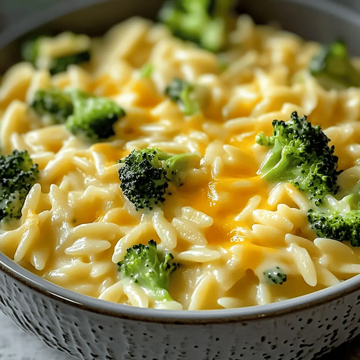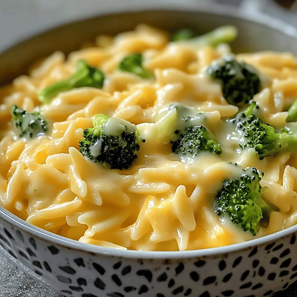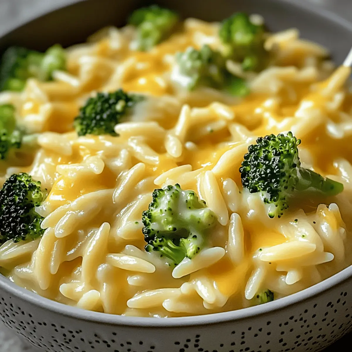 There’s a certain magic that happens when you combine creamy cheese and tender pasta in one pot—it’s like a warm hug on a plate. That’s exactly what you can expect from my Creamy One-Pot Broccoli Cheddar Orzo recipe. In just 25 minutes, this vibrant dish transforms simple ingredients into a comforting, satisfying meal that’s perfect for those busy weeknights. Not only is it a breeze to whip up, but it also offers endless possibilities; you can easily customize it with your favorite proteins or cheese swaps. Imagine sinking your fork into a bowl of rich, cheesy orzo, all while minimizing cleanup! Intrigued? Let’s dive into this creamy delight that’s sure to become a recurring favorite in your kitchen. Why Is This Orzo Recipe So Special? Creamy, Comforting Deliciousness: This dish brings together a luscious cheese sauce and al dente orzo, creating a mouthwatering meal you’ll crave. One-Pot Magic: With everything cooked in a single pot, you’ll save time on both prep and cleanup. Customizable Options: Whether you’re adding chicken for heartiness or trying different cheese varieties, the versatility is endless. Weeknight Friendly: Whip it up in just 25 minutes—perfect for those busy evenings when you need a quick and satisfying meal. Nutrient-Packed: With broccoli making a vibrant appearance, you’re not just indulging but also nourishing your body. Pair it with a side of Onion Broccoli Cheese for an extra veggie punch! Creamy One-Pot Broccoli Cheddar Orzo Ingredients • Gather everything you need for this delightful comfort food dish! For the Base Orzo – This tiny pasta serves as the heart of the dish, soaking up all the creamy goodness. Broccoli – Adds both nutrition and color; frozen broccoli works just as well! Vegetable Broth – Infuses flavor into the orzo, but feel free to use chicken broth for a non-vegetarian twist. For the Creamy Sauce Cheddar Cheese – Melts beautifully to create that rich, creamy texture; swap for gouda or mozzarella for a different kick. Heavy Cream – Ensures the dish stays luscious; half-and-half or milk can lighten it up if preferred. Butter – Elevates the flavors; olive oil can be a healthier substitute. For Seasoning Garlic – Adds aromatic depth; use fresh cloves for the best flavor. Salt & Pepper – Vital for bringing out all the wonderful flavors; adjust to your taste preference. Optional Add-Ins Protein – Consider adding cooked chicken or shrimp for an extra dose of heartiness. Herbs – Fresh herbs like parsley or thyme can brighten up the dish with a pop of freshness. Prepare this Creamy One-Pot Broccoli Cheddar Orzo and fall in love with its comforting flavors! Step‑by‑Step Instructions for Creamy One-Pot Broccoli Cheddar Orzo Step 1: Sauté the Garlic In a large pot, melt 2 tablespoons of butter over medium heat, allowing it to sizzle gently. Once the butter is fully melted and begins to foam, add 2 minced garlic cloves. Sauté for about 1-2 minutes, stirring frequently until the garlic becomes fragrant and lightly golden, releasing its aromatic essence. Step 2: Toast the Orzo Next, stir in 1 cup of orzo pasta and cook for another 2-3 minutes, stirring constantly to ensure even toasting. Watch as the orzo turns slightly translucent and begins to take on a light golden color—this step enhances the nutty flavor of the orzo for your Creamy One-Pot Broccoli Cheddar Orzo. Step 3: Combine Broth and Broccoli Pour in 4 cups of vegetable broth, scraping the bottom of the pot to release any flavorful bits stuck to the surface. Add in 2 cups of chopped broccoli florets, stirring everything together. Raise the heat until the mixture comes to a boil, then keep an eye on it as bubbles begin to form. Step 4: Simmer the Orzo Once boiling, reduce the heat to medium-low, allowing the mixture to simmer. Stir occasionally, cooking for about 15 minutes or until the orzo is tender and most of the liquid is absorbed. You’ll know it’s ready when the orzo expands and glistens, soaking up all the delicious broth. Step 5: Stir in Cheese for Creaminess Remove the pot from heat and add in 1-2 cups of shredded cheddar cheese. Stir vigorously until the cheese melts and creates a creamy, rich texture that envelops the orzo and broccoli. Take a moment to appreciate the delightful aroma, as it fills your kitchen with warmth. Step 6: Adjust Seasoning Finally, season your Creamy One-Pot Broccoli Cheddar Orzo with salt and pepper to taste. Give it a final stir, ensuring all the flavors meld together smoothly. The dish should be creamy and inviting, perfect for serving warm right away to everyone gathered around the table. How to Store and Freeze Creamy One-Pot Broccoli Cheddar Orzo Fridge: Store leftovers in an airtight container for up to 3 days. The orzo will continue to absorb liquid, so you may need to add a splash of broth or cream when reheating. Freezer: Freeze the Creamy One-Pot Broccoli Cheddar Orzo in a freezer-safe container for up to 2 months. Note that freezing may alter the texture, so it’s best enjoyed fresh. Reheating: To reheat, thaw overnight in the fridge and warm on the stovetop over low heat, stirring in a little extra broth to restore creaminess as needed. Make-Ahead: This dish can be prepared ahead of time and stored in the fridge, making it perfect for busy weeknight dinners! Just reheat and serve for a quick meal. Make Ahead Options These Creamy One-Pot Broccoli Cheddar Orzo can be a lifesaver for busy weeknights! You can prepare the orzo and broccoli mixture up to 24 hours in advance and refrigerate it in an airtight container. To maintain quality, avoid adding the cheese until you’re ready to serve—this helps keep the texture creamy. When it’s time to enjoy, simply reheat the mixture on the stovetop over medium heat, adding a splash of extra broth or water to loosen it up if necessary. Stir in the cheddar cheese until melted and creamy before serving for a delightful, comforting meal without the rush. Expe