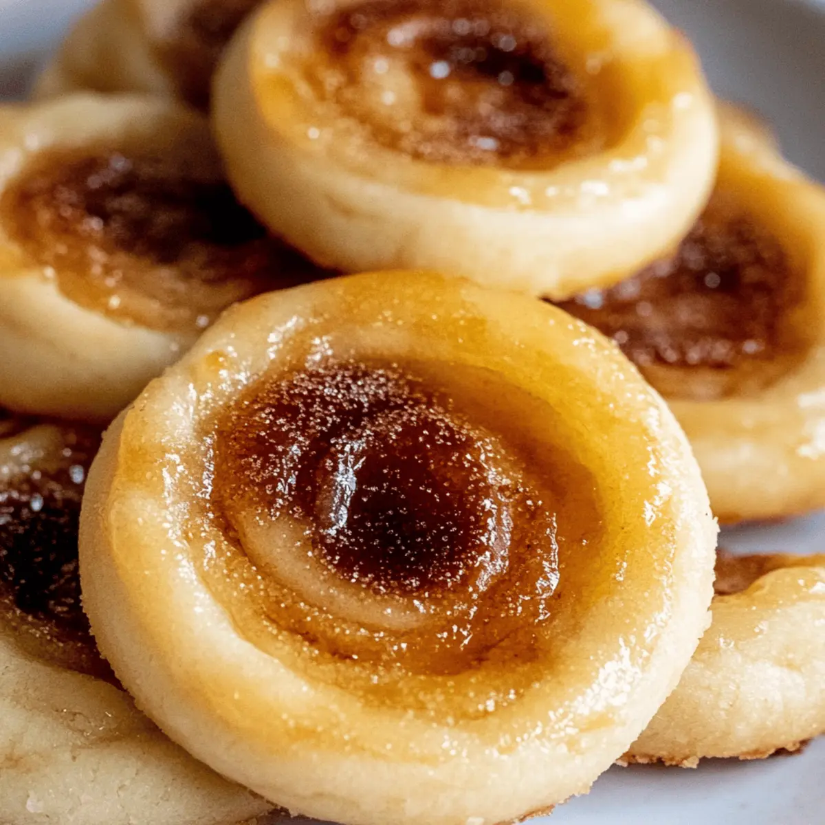 “Did you catch that sweet aroma wafting through the kitchen? That’s the magic of freshly baked Creme Brûlée Cookies, a delightful twist on the classic French dessert. These cookies blend the chewy warmth of sugar cookies with a silky vanilla pastry cream that’s just begging to be devoured. Not only are they a playful gourmet treat, but they also come together quickly, making them perfect for any home chef looking to impress. Plus, with their crispy caramelized sugar topping, these cookies capture that satisfying crunch we all crave. Are you ready to dive into a baking adventure that combines tradition with a modern twist? Let’s get started!” Why are you going to love these? Delectable flavor: The luxurious fusion of vanilla pastry cream and chewy cookie brings a flavor explosion that rivals any classic dessert. Quick preparation: With a streamlined process, these cookies can be made in just a few simple steps—perfect for busy home chefs eager for something special. Impressive presentation: The striking contrast of the golden caramelized top with the creamy filling makes them an eye-catching addition to any dessert spread. Versatile options: Feel free to customize your cookies! Add chocolate chips, nuts, or even experiment with different flavor extracts in the pastry cream for a unique twist. Crowd-pleaser: Whether it’s for family gatherings or a sweet treat after dinner, these Creme Brûlée Cookies will surely impress and delight everyone! Check out the equally indulgent Lava Brownie Cookies for another dessert that hits the spot perfectly. Creme Brûlée Cookies Ingredients For the Cookies • Sugar – Sweetness and structure; Can use brown sugar for a deeper flavor. • Butter – Adds richness and moisture; Substitute with margarine for a dairy-free option. • Flour – Provides the cookie’s base texture; Gluten-free flour can be used for a gluten-free alternative. • Eggs – Essential for binding ingredients and adding moisture; Flaxseed meal mixed with water works as a vegan substitute. • Vanilla Extract – Intensifies the flavor profile; Use vanilla bean paste for a more robust taste. For the Pastry Cream • Heavy Cream – Forms the creamy filling; Coconut cream can be used for a non-dairy version. • Granulated Sugar (for topping) – Creates the crispy caramelized layer; A mix of turbinado sugar can add extra crunch and flavor. Step‑by‑Step Instructions for Creme Brûlée Cookies Step 1: Prepare Cookie Dough Begin by creaming together 1 cup of softened butter and 3/4 cup granulated sugar in a large mixing bowl until light and fluffy, about 3-5 minutes. Beat in 2 large eggs and 2 teaspoons of vanilla extract. Gradually mix in 2 1/4 cups of all-purpose flour until just combined, ensuring not to overmix. The dough should be soft and slightly sticky. Step 2: Shape Cookies Using a cookie scoop or tablespoon, drop rounded balls of dough onto a baking sheet lined with parchment paper, spacing them about 2 inches apart. Refrigerate the dough balls for 30 minutes, allowing them to firm up slightly. This step is crucial for achieving a perfect chewy texture in your Creme Brûlée Cookies. Step 3: Bake Cookies Preheat your oven to 350°F (175°C). Once the dough has chilled, bake the cookies for 12-15 minutes, or until the edges are golden and the centers are set but still soft. Keep an eye on them to avoid overbaking. After baking, let them cool on the baking sheet for a few minutes before transferring to a wire rack. Step 4: Make Pastry Cream In a medium saucepan over low heat, combine 1 cup of heavy cream, 1/4 cup granulated sugar, and 4 egg yolks. Whisk continuously until the mixture thickens and coats the back of a spoon, about 5-7 minutes. Remove from heat, stir in 1 teaspoon of vanilla extract, and let it cool. This creamy filling will bring the essence of creme brûlée to your cookies. Step 5: Assemble Cookies Once your cookies have completely cooled, use a piping bag or a spoon to fill the centers of half the cookies with the chilled pastry cream. Carefully press the remaining cookies on top to create sandwiches. Ensure the filling is evenly distributed for a delightful bite of your Creme Brûlée Cookies. Step 6: Caramelize the Sugar Topping Sprinkle a thin, even layer of granulated sugar (about 1 tablespoon per cookie) over the filled cookies. Using a kitchen torch, caramelize the sugar until it melts and forms a golden-brown crust, watching closely to avoid burning. Alternatively, you can place them under the broiler for a few minutes, keeping the oven door ajar and watching carefully. Step 7: Serve and Enjoy Allow the assembled Creme Brûlée Cookies to sit for a few minutes after caramelizing to let the sugar topping harden slightly. These delectable cookies are best enjoyed when the topping is crisp, so serve them warm and share the delightful textures and flavors with family and friends! Creme Brûlée Cookies Variations Feel free to unleash your creativity and tailor these scrumptious cookies to your liking! Dairy-Free: Substitute dairy butter with margarine and heavy cream with coconut cream for a delicious non-dairy twist. They’ll still pack the same creamy goodness! Gluten-Free: Use a 1:1 gluten-free flour blend instead of all-purpose flour to make these cookies gluten-friendly. Your guests will never know the difference! Nutty Delight: Fold in chopped pecans or walnuts into the cookie dough for an added crunch and an earthy flavor that complements the creamy filling beautifully. Chocolate Lovers: Mix in semisweet or dark chocolate chips for a decadent addition. The combination of chocolate and creamy vanilla will drive chocolate enthusiasts wild. Citrus Zest: Enhance the pastry cream with a teaspoon of lemon or orange zest for a refreshing zing. It brightens each bite and elevates your flavor experience! Spicy Kick: Incorporate a pinch of cinnamon or a dash of cayenne pepper into the cookie dough for a subtle heat that contrasts wonde