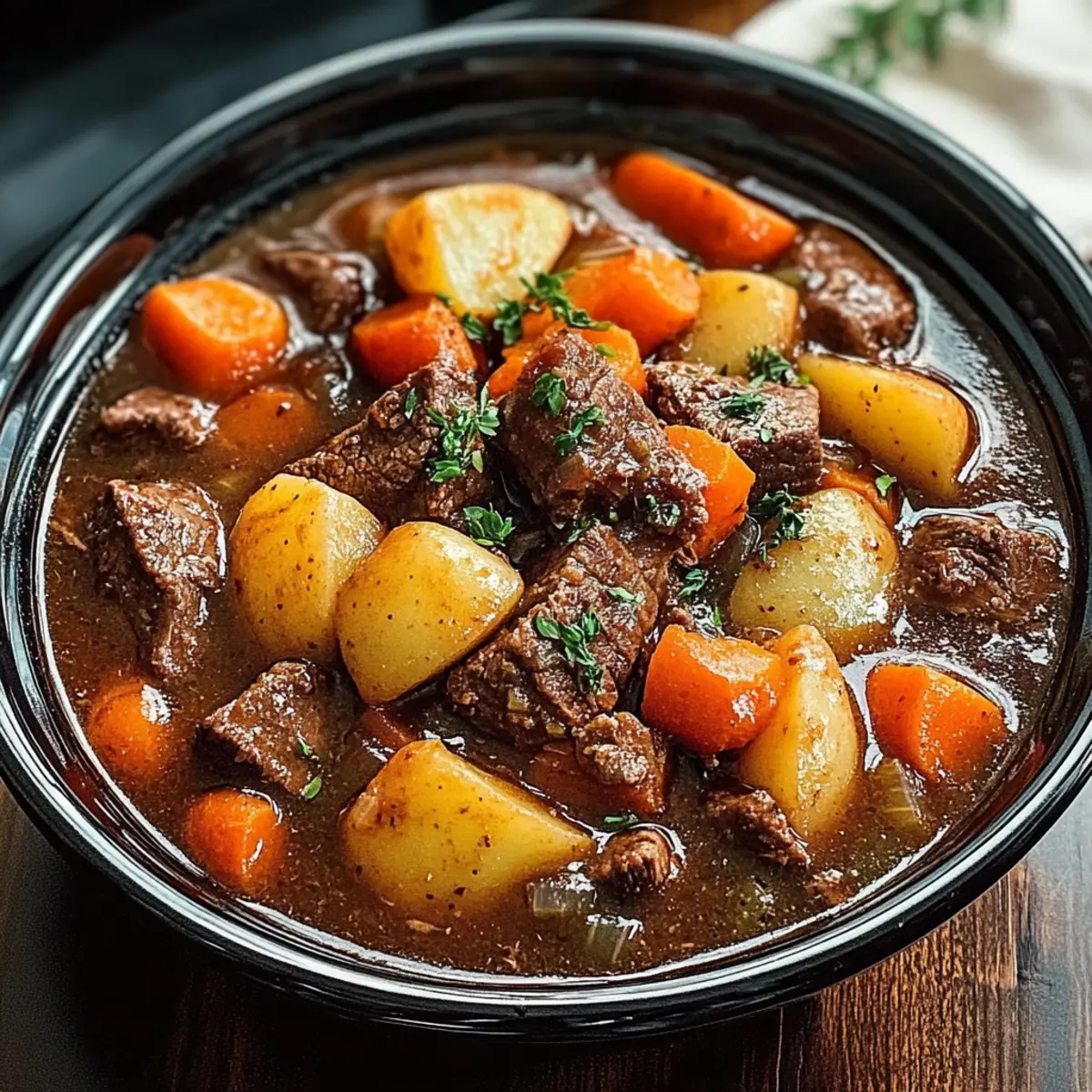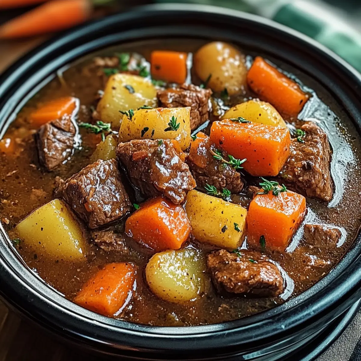As I stirred my bubbling pot, the enticing aroma of savory broth and tender beef wafted through the kitchen, instantly transporting me to cozy family dinners from years past. There’s something truly magical about an Easy Crock Pot Beef Stew; this dish combines the rich flavors of beef chuck, aromatic vegetables, and a blend of spices that come together effortlessly, making it a comforting meal for any day. With minimal prep and the hands-free magic of slow cooking, it’s the perfect solution for those chilly evenings when you crave warmth and satisfaction. Plus, there are gluten-free options available for those with dietary needs. Aren’t you curious about how this simple recipe can become a new family favorite? Why Is This Crock Pot Beef Stew Special? Effortless Preparation: With just a few minutes of hands-on time, you can set this dish and forget it, leaving you free to enjoy your day. Rich, Comforting Flavors: The slow cooking process allows the beef to become incredibly tender while the vegetables soak up all the savory goodness, creating a bowl full of soul-warming comfort. Versatile Substitutions: Whether you need a gluten-free option or want to switch up the veggies, this stew is easily customizable. Replace potatoes with sweet potatoes or add mushrooms for an earthy twist! Crowd-Pleasing Delight: This hearty dish is perfect for family gatherings or cozy dinners with friends; everyone will love diving into a bowl of this classic comfort food! Make-Ahead Magic: Prepare your stew a day in advance for richer flavors, and simply reheat before serving—a true lifesaver on busy weekdays. Check out my other favorite meals like Crockpot Mexican Comfort or Ground Beef Enchiladas for more easy solutions! Crock Pot Beef Stew Ingredients For the Beef Beef Chuck – Essential protein that becomes tender during slow cooking; feel free to substitute with stewing beef or well-marbled sirloin for a leaner alternative. Flour or Cornstarch – Used for thickening the stew; for gluten-free, opt for a cornstarch slurry which works perfectly. For the Broth Beef Broth – Provides a robust flavor base; swap for low-sodium broth plus a splash of Worcestershire or soy sauce for enhanced umami in your Crock Pot Beef Stew. Red Wine (optional) – Enhances flavor complexity; for a non-alcoholic option, simply increase the broth and add balsamic vinegar. For the Vegetables Carrots – Adds sweetness and color; consider swapping with parsnips for a unique earthy note. Potatoes – Offers a hearty texture; substitute with sweet potatoes for a subtle sweetness that seamlessly blends into the stew. Onion & Garlic – Crucial for building depth of flavor; if fresh garlic is unavailable, use 1 tsp of garlic powder for each clove. For the Sauce Tomato Paste – Contributes acidity and great depth; if you’re in a pinch, crushed tomatoes or ketchup can work in its absence. Herbs & Spices Thyme, Salt, and Pepper – Essential seasonings that elevate the overall flavor; don’t hesitate to adjust amounts according to your taste preferences! Feel free to explore these ingredient options to make this delicious Crock Pot Beef Stew perfect for your family’s tastes! Step‑by‑Step Instructions for Crock Pot Beef Stew Step 1: Prepare the Beef Begin by patting the beef chuck cubes dry with paper towels. This crucial step helps achieve a good sear. Season the beef generously with salt and pepper, and for extra flavor, toss it lightly in flour if desired. This will create a beautiful crust and thicken the stew later on. Step 2: Brown the Beef Heat 2 tablespoons of oil in a skillet over medium-high heat. Carefully add the seasoned beef cubes to the hot skillet, browning them for about 2-3 minutes per side until they are nicely caramelized. This step enhances the flavor of your Crock Pot Beef Stew, so don’t rush it! Once browned, transfer the beef to your slow cooker. Step 3: Layer the Vegetables In the same slow cooker, add chopped onions, minced garlic, diced carrots, and cubed potatoes, creating a colorful base for your stew. Layer these vegetables beneath the browned beef, allowing their natural sweetness to infuse the stew during cooking. This arrangement will ensure even cooking and flavor throughout. Step 4: Mix the Broth In a separate bowl, combine 4 cups of beef broth, optional red wine, tomato paste, a splash of Worcestershire sauce, thyme, and a sprinkle of salt and pepper. Stir well to integrate all flavors. Once mixed, pour this savory liquid over the layered vegetables and beef in the slow cooker, ensuring everything is covered. Step 5: Slow Cook the Stew Cover your slow cooker with its lid and set it to cook on LOW for 6-8 hours or on HIGH for 3-4 hours. When finished, the beef should be fork-tender, and the vegetables nicely softened. This long cooking time allows the flavors to meld beautifully, creating the ultimate comfort in your Crock Pot Beef Stew. Step 6: Thicken the Stew If you prefer a thicker stew, mix 2 tablespoons of cornstarch with 2 tablespoons of cold water in a small bowl to create a slurry. Stir this mixture into the stew and cook on HIGH for an additional 15-20 minutes, uncovered. This will achieve a perfect, hearty consistency without compromising flavor. Step 7: Final Touches Once your Crock Pot Beef Stew is finished cooking, taste and adjust the seasoning with extra salt and pepper if needed. Allow the stew to rest for about 10-15 minutes before serving. Garnishing with fresh parsley or thyme enhances its vibrant color and flavor. Now, you’re ready to enjoy this delightful dish! Make Ahead Options These Easy Crock Pot Beef Stew preparations are perfect for busy home cooks wanting to save time during hectic weekdays! You can chop the vegetables and even brown the beef up to 24 hours in advance. Simply refrigerate the prepared ingredients in separate airtight containers to maintain freshness. When you’re ready to serve, layer the vegetables in the slow cooker, add the browned be