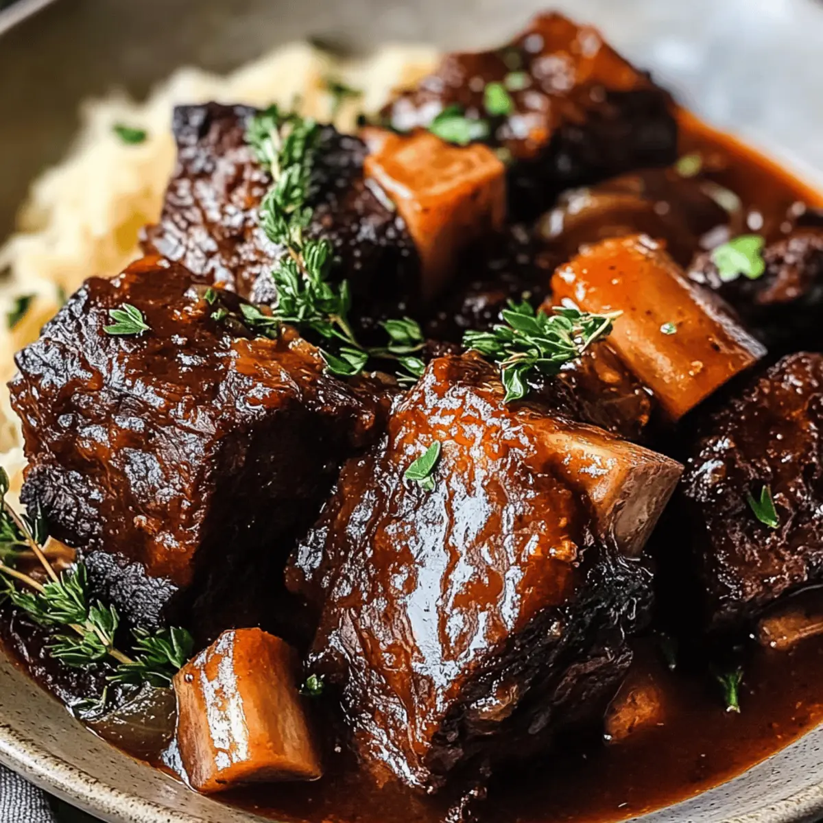 As I stood in my kitchen, the aroma of savory spices wafted through the air, instantly transporting me to comforting family dinners from my childhood. That’s the magic of these Super Tender Crockpot Beef Short Ribs—a dish that brings nostalgia and warmth back to the dinner table. With minimal prep and a slow-cooking method that allows the flavors to develop beautifully, this recipe is both stress-free and satisfying. The beauty of using a crockpot means you can enjoy delectable, fall-off-the-bone ribs without spending hours slaving over the stove. Whether it’s for a cozy weeknight meal or a gathering with friends, these ribs will please everyone. Curious about how to make your own mouthwatering short ribs? Let’s dive into the flavors that await! Why Are These Short Ribs So Special? Tender, fall-off-the-bone goodness: These crockpot beef short ribs become incredibly tender after hours of slow cooking, allowing the meat to practically melt in your mouth. Easy preparation: With just a few simple steps, you can enjoy a gourmet meal without spending all day in the kitchen. Rich and savory flavors: The delightful combination of red wine, tomato paste, and spices creates a mouthwatering sauce that elevates the dish. Versatile options: Substitute beef short ribs with brisket or chuck for a different twist, and pair with sides like mashed potatoes or Garlic Butter Beef for a satisfying feast. Perfect for gatherings: These short ribs are sure to impress guests, making them an ideal choice for dinner parties or family get-togethers. Make-ahead convenience: Cook your ribs in advance and reheat easily, ensuring you can spend more time with family and less time in the kitchen. Crockpot Beef Short Ribs Ingredients For the Ribs • Beef Short Ribs – Look for well-marbled ribs for optimal tenderness and flavor; you can substitute with beef chuck or brisket if needed. • Olive Oil – Perfect for searing the meat, enhancing the flavor; avocado or canola oil can be used as alternatives. For the Flavorful Sauce • Red Wine – Adds depth to the sauce; substitute with an extra cup of beef broth or grape juice for a non-alcoholic option. • Tomato Paste – Provides a rich essence to the sauce; crushed tomatoes work if you don’t have paste on hand. • Brown Sugar – Balances flavors between sweet and savory; honey or maple syrup are healthier alternatives. • Sliced Onion – Infuses sweetness and depth; if unavailable, garlic or shallot can serve as a tasty alternative. • Minced Garlic – Essential for a fragrant base; fresh garlic will yield the best results. For the Broth • Beef Broth – Adds moisture and flavor; feel free to substitute with vegetable broth if desired. • Soy Sauce & Worcestershire Sauce – Provide umami and saltiness; look for gluten-free alternatives if needed. For Seasoning • Smoked Paprika, Dried Thyme, Dried Rosemary – These herbs enhance the flavor profile; you can replace them with similar dried herbs if unavailable. • Bay Leaves – Infuse additional flavor during cooking; they’re optional but highly recommended. Step‑by‑Step Instructions for Crockpot Beef Short Ribs Step 1: Prep Ribs Season the beef short ribs generously with salt and pepper, ensuring all sides are coated for flavorful results. This simple seasoning step sets the foundation for the dish. Let the ribs sit for about 15 minutes to absorb the seasoning, allowing the meat to develop delicious flavors before cooking. Step 2: Sear Ribs In a skillet, heat 2 tablespoons of olive oil over medium-high heat. Once the oil is shimmering, add the seasoned ribs carefully, searing them for about 3-4 minutes on each side until richly browned. This browning helps create a depth of flavor in the final dish. Once done, transfer the seared ribs to the crockpot. Step 3: Sauté Onions Using the same skillet, add another tablespoon of olive oil if needed, then toss in the sliced onions. Sauté for about 3-4 minutes until they become translucent and slightly caramelized, stirring frequently. Add the minced garlic during the last 30 seconds of cooking, allowing it to become fragrant. This aromatic mixture will elevate your sauce. Step 4: Mix Sauce In the skillet with the onion and garlic mixture, pour in 1 cup of beef broth, 1 cup of red wine (if using), along with soy sauce, Worcestershire sauce, tomato paste, brown sugar, smoked paprika, thyme, and rosemary. Stir everything together and let it simmer for about 3-5 minutes, thickening slightly and allowing the flavors to meld beautifully. Step 5: Combine and Cook Pour the savory sauce mixture over the short ribs in the crockpot, ensuring they are well-coated. Add a few bay leaves for extra flavor and cover the crockpot. Set it to cook on low for 8-10 hours or on high for 4-6 hours. During this time, the ribs will become super tender and infused with rich flavors. Step 6: Prepare Sauce After the cooking time, carefully remove the ribs from the crockpot and place them on a serving platter. Skim any excess fat from the sauce remaining in the crockpot. If you prefer a thicker sauce, reduce it over medium heat on the stove for about 5-10 minutes until it reaches your desired consistency. Step 7: Serve Plate the tender crockpot beef short ribs with a generous spoonful of the luscious sauce drizzled over the top. For a complete meal, serve alongside creamy mashed potatoes, rice, or your favorite seasonal vegetables, allowing the delicious flavors to shine and delight your family or guests. Make Ahead Options These Super Tender Crockpot Beef Short Ribs are perfect for meal prep enthusiasts! You can season the ribs and sear them up to 24 hours in advance, storing them in the fridge until you’re ready to cook. Additionally, prepare the sauce mix (without the bay leaves) and refrigerate it for up to 3 days, allowing flavors to deepen. When you’re ready to enjoy, simply combine the seared ribs with the chilled sauce in the crockpot and cook on low for 8-10 hou
