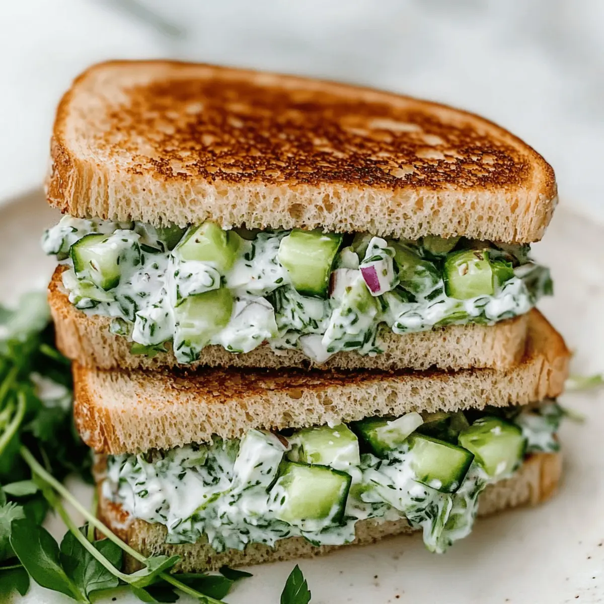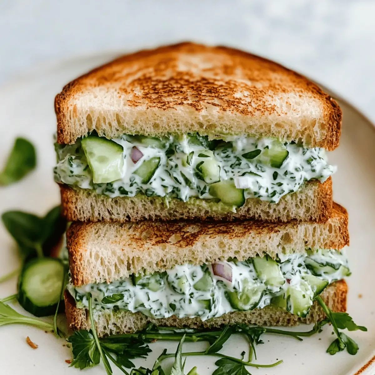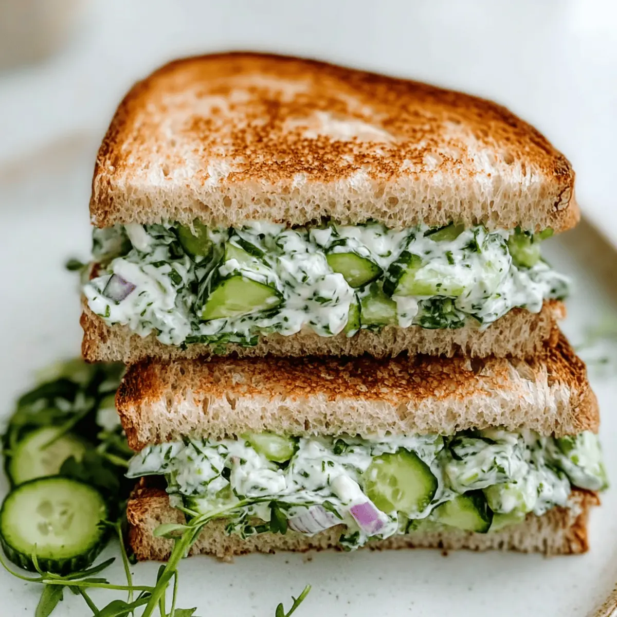 The delightful crunch of fresh cucumbers paired with creamy feta brings me back to sunlit picnics and lazy afternoons. These Easy Cucumber Salad Sandwiches are my go-to for a quick lunch that doesn’t skimp on flavor or satisfaction. They’re light, refreshing, and incredibly versatile—perfect for those moments when fast food just won’t do. You can easily customize the creamy filling with your favorite herbs and spreads, turning a simple lunchtime staple into a signature dish. Whether you’re enjoying them on your patio or packing them for work, these sandwiches are a delightful escape from the mundane. Ready to elevate your lunch game with this easy recipe? Let’s dive in! Why are Cucumber Salad Sandwiches so irresistible? Freshness, the star ingredient—crisp cucumbers—brings a delightful crunch and vibrant flavor to your lunch. Customizable with various herbs and spreads, these sandwiches can be tailored to suit any palate. Quick and easy, they come together in mere minutes, perfect for busy days. Light yet satisfying, they’ll keep you energized without that heavy feeling. For a complete meal, consider pairing with a side of Corn Pasta Salad or chilled gazpacho! Enjoy a refreshing twist on your lunch routine! Cucumber Salad Sandwiches Ingredients • Light and refreshing, just like the recipe! For the Sandwich Filling English Cucumbers – Mild and sweet, these reduce sogginess and add crunch; regular cucumbers can work if peeled and seeded. Salt – Essential for drawing out moisture from cucumbers, preventing sogginess. Yogurt (Greek or plain) – Serves as the creamy base of the filling, bringing a delightful tang. Feta Cheese – Adds a salty richness, making the filling more satisfying and flavorful. Fresh Herbs (e.g., dill, parsley) – Customize the flavor with your favorite herbs; they enhance freshness beautifully. Lemon Zest and Juice – Brightens the filling with acidity, balancing the creamy ingredients. Black Pepper – A simple seasoning to elevate the overall flavor. For the Sandwich Assembly Bread (e.g., whole grain, rye) – Holds the filling together; toasting enhances the crunch factor. Sprouts (optional) – Provides added crunch and nutrition; can adjust according to your liking. Onion slices (optional) – For an extra flavor punch; adjust according to your preference. These Cucumber Salad Sandwiches are a delightful way to enjoy a light and refreshing meal! Step‑by‑Step Instructions for Easy Cucumber Salad Sandwiches Step 1: Prepare Cucumbers Start by dicing the English cucumbers into small, uniform pieces. Place them in a colander set over a bowl and sprinkle generously with salt. Let the cucumbers sit for at least 15 minutes; this will draw out excess moisture, preventing your Cucumber Salad Sandwiches from becoming soggy. You’ll notice beads of water forming on the surface as they rest. Step 2: Mix Filling While the cucumbers are drawing out moisture, grab a large mixing bowl and combine yogurt, crumbled feta cheese, chopped fresh herbs, lemon zest, lemon juice, and a sprinkle of black pepper. Stir the mixture thoroughly until it becomes creamy and well incorporated. The vibrant colors in the bowl should look inviting, signaling a delicious filling for your sandwiches. Step 3: Drain & Dry Cucumbers After 15 minutes, take the cucumbers from the colander and allow any remaining liquid to drain away. Pat the cucumbers dry with a paper towel to ensure they’re not watery. This step is crucial for achieving the ideal texture in your Cucumber Salad Sandwiches, so they retain that delightful crunch! Step 4: Combine Filling Add the dried cucumbers to your yogurt and feta mixture, gently folding everything together until the cucumbers are thoroughly coated. The filling should have a nice balance of creaminess and crunch. This is the moment when the flavors meld beautifully, creating a refreshing mixture perfect for your sandwiches. Step 5: Assemble Sandwiches To build your sandwiches, start with two slices of toasted bread for that extra crunch. Layer a handful of sprouts on one slice, then generously spread the cucumber filling over the sprouts. If desired, top with onion slices for added flavor before placing the second slice of bread on top. The toast should be golden brown, adding an appealing texture. Step 6: Serve Carefully cut each sandwich in half to reveal the vibrant filling inside. Serve immediately for the best texture, enjoying the contrast of crisp cucumbers and creamy filling against the toasted bread. As you savor these Easy Cucumber Salad Sandwiches, you’ll appreciate the light and refreshing flavors they’ve brought to your lunch! How to Store and Freeze Cucumber Salad Sandwiches Fridge: Store assembled sandwiches in an airtight container for up to 2 hours. For longer freshness, keep the filling and bread separate until ready to serve. Cucumber Filling: The filling can be prepared in advance and stored in an airtight container in the fridge for up to 2 days. Just be sure to keep it away from the bread to prevent sogginess. Freezer: It’s best not to freeze assembled sandwiches since the texture will suffer upon thawing. However, you can freeze the cucumber filling in an airtight container for up to 1 month. Thaw in the fridge before using. Reheating: Cucumber Salad Sandwiches are best enjoyed cold, so avoid reheating if you want to maintain their refreshing texture. Enjoy these sandwiches fresh for the ultimate crispness! Expert Tips for Cucumber Salad Sandwiches Salting Essentials: Salting cucumbers is non-negotiable. It prevents sogginess—so don’t rush this step! Fresh Herbs Matter: Experiment with fresh herbs like dill or mint. They elevate the flavors of your Cucumber Salad Sandwiches beautifully. Toast the Bread: For maximum crunch, always toast your bread before assembling. It adds an extra layer of texture that enhances the experience. Assembly Timing: Assemble your sandwiches just before serving to keep the fillin