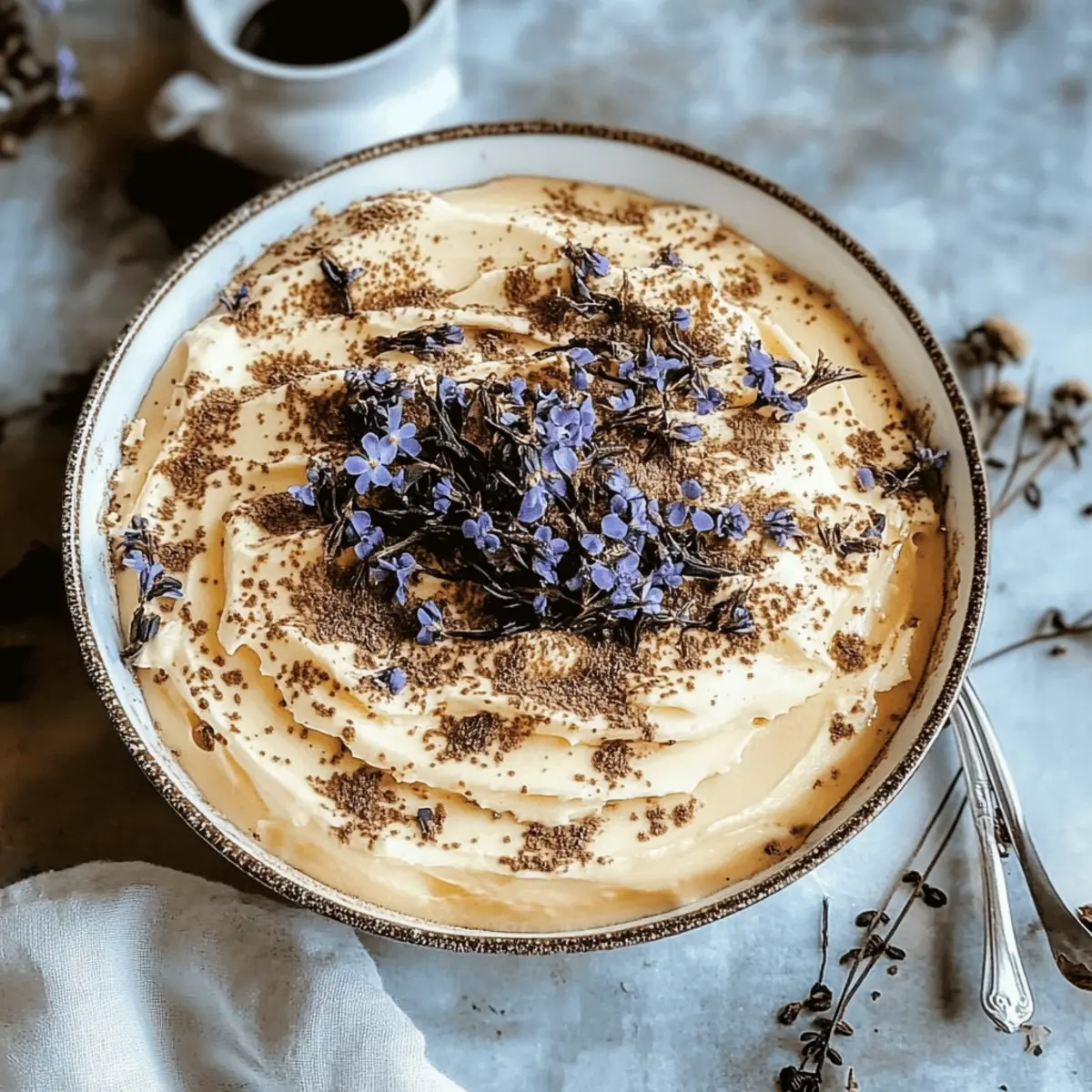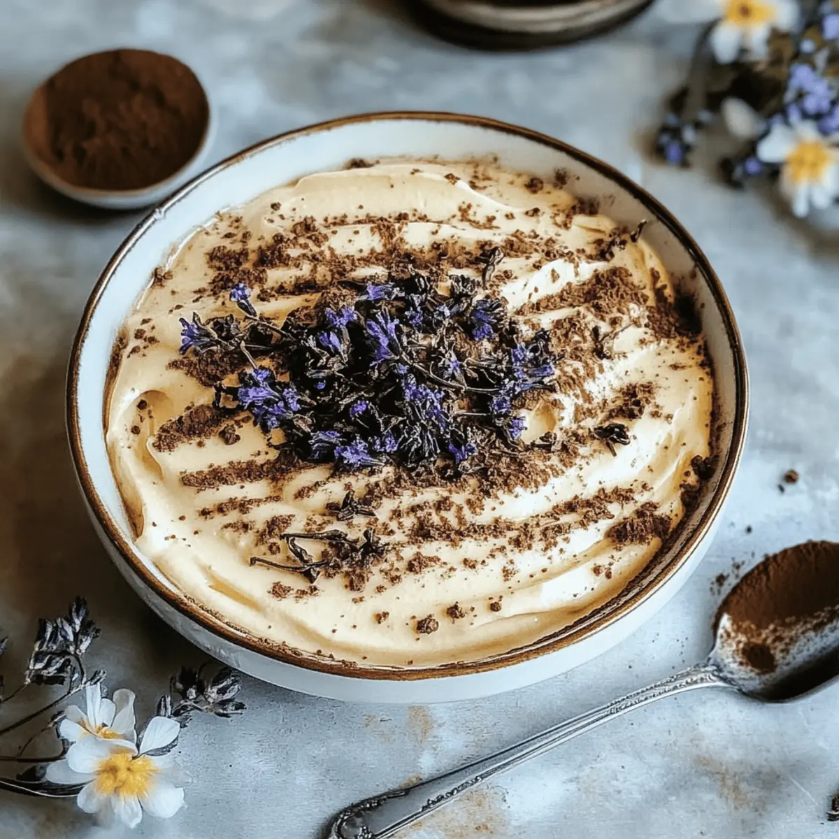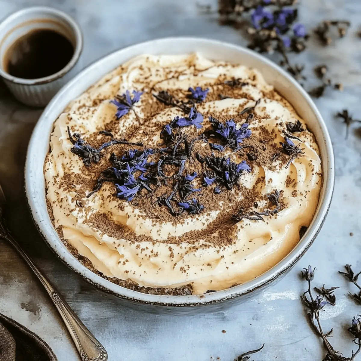 As I unwrapped a box of ladyfingers and steeped a fragrant cup of Earl Grey, a wave of nostalgia hit me—like a cozy afternoon spent at a quaint café. This Earl Grey Tiramisu recipe offers a sophisticated twist on the classic Italian dessert, infusing velvety mascarpone cream with the soft, floral notes of bergamot. Not only is this no-bake treat a delightful indulgence, but it also serves as a stunning centerpiece for any gathering, guaranteed to impress your guests. With minimal prep time and the ability to customize with different flavors, it’s a dream for any passionate home-chef looking to break away from the ordinary. Are you ready to elevate your dessert game with this elegant creation? Let’s dive into the sweet world of Earl Grey Tiramisu! Why is Earl Grey Tiramisu a must-try? Unforgettable Flavor Fusion: The elegant combination of Earl Grey tea with traditional tiramisu creates a sophisticated flavor profile that’s sure to tantalize your taste buds. No-Bake Delight: This recipe is a time-saver, allowing you to whip up a stunning dessert without the hassle of baking. Customizable Options: Easily tailor this recipe to your tastes; try different teas or flavors for a unique twist! Impressive Presentation: Serve individual portions for an extra touch of elegance that will wow your guests at any gathering. Perfect for All Occasions: Whether it’s a special celebration or a cozy night in, this Earl Grey Tiramisu is guaranteed to be a crowd favorite. Earl Grey Tiramisu Ingredients For the Cream Mixture • Mascarpone Cheese – Essential for a rich and creamy texture; you can use cream cheese for a tangy alternative. • Heavy Cream – Whipped to add lightness; consider non-dairy options for a lighter dessert. • Sugar – Sweetens the mascarpone blend; for a healthier choice, agave or honey can be utilized. For the Soaking Mixture • Earl Grey Tea – Infuses the dessert with floral notes; you can steep loose tea or use tea bags for convenience. • Coffee – Adds depth and balances sweetness; feel free to substitute with decaf coffee if you’re going caffeine-free. For the Tiramisu Structure • Ladyfingers – These absorb flavors beautifully; traditional savoiardi work best, though homemade options are great too. • Cocoa Powder – Dusts the top for visual appeal and adds a touch of bitterness; dark chocolate shavings are a delightful alternative. This Earl Grey Tiramisu is not just a dessert; it’s a culinary experience waiting to unfold! Step‑by‑Step Instructions for Earl Grey Tiramisu Step 1: Brew the Tea Begin by brewing a strong cup of Earl Grey tea using either loose leaves or tea bags. Boil water, steep the tea for about 5 minutes, then remove the tea bags or strain the leaves. Allow it to cool completely at room temperature, which will enhance its flavor as it combines with the coffee later in the Earl Grey Tiramisu. Step 2: Prepare the Cream Mixture In a mixing bowl, combine mascarpone cheese and sugar. Using an electric mixer, beat the mixture on medium speed until it’s smooth and creamy, about 2-3 minutes. This will create a luxurious base for your Earl Grey Tiramisu. Step 3: Whip the Cream In a separate bowl, whip the heavy cream until soft peaks form, which should take around 3-4 minutes. Be cautious not to over-whip it; you want a light and fluffy texture. Gently fold this whipped cream into the mascarpone mixture using a spatula until just combined, creating a dreamy cream layer. Step 4: Prepare the Coffee Mixture While the cream mixture is resting, brew a strong cup of coffee and allow it to cool slightly. Combine the cooled coffee with your prepared Earl Grey tea in a shallow dish. This dual infusion will provide depth to the ladyfingers as they soak, enhancing the overall flavor of the Earl Grey Tiramisu. Step 5: Soak the Ladyfingers Quickly dip each ladyfinger into the coffee-tea mixture, ensuring they’re coated but not soggy. A brief dip of 1-2 seconds should suffice. Be mindful, as over-soaking can lead to a mushy texture in your tiramisu. Lay the soaked ladyfingers in a single layer at the bottom of your serving dish. Step 6: Layer the Tiramisu Spread half of the mascarpone-cream mixture evenly over the layer of soaked ladyfingers. Use a spatula to smooth the surface, ensuring an even distribution. This layer adds a rich creaminess that perfectly complements the soaked cookies and is a key element in your Earl Grey Tiramisu. Step 7: Repeat the Layers Create another layer by repeating the soaking process with the remaining ladyfingers, then top it with the rest of the mascarpone-cream mixture. Smooth it out gently, ensuring a beautiful, even finish on top. This layering is essential for achieving the classic tiramisu structure. Step 8: Chill the Dessert Cover your assembled Earl Grey Tiramisu with plastic wrap and place it in the refrigerator for at least 4 hours, or overnight for optimal flavor melding. This chilling allows the flavors to develop beautifully and ensures the dessert holds its shape when served. Step 9: Serve with Cocoa Just before serving, dust the top of the tiramisu with cocoa powder for a rich finish. You can use a fine sieve for an even distribution. This final touch enhances the elegance of your dessert and adds a slight bitterness that balances the sweetness of the Earl Grey Tiramisu perfectly. Make Ahead Options These Earl Grey Tiramisu layers are perfect for meal prep! You can prepare the mascarpone mixture and soak the ladyfingers up to 24 hours in advance. To do this, create the cream mixture and layer soaked ladyfingers in your serving dish as instructed, then cover tightly with plastic wrap to prevent exposure to air. When ready to serve, simply dust the top with cocoa powder for that stunning finish. This not only saves you time on busy evenings but also allows flavors to meld beautifully, resulting in a dessert that is just as delicious as when freshly made! Expert Tips for Earl Grey Tiramisu Freshness Cou
