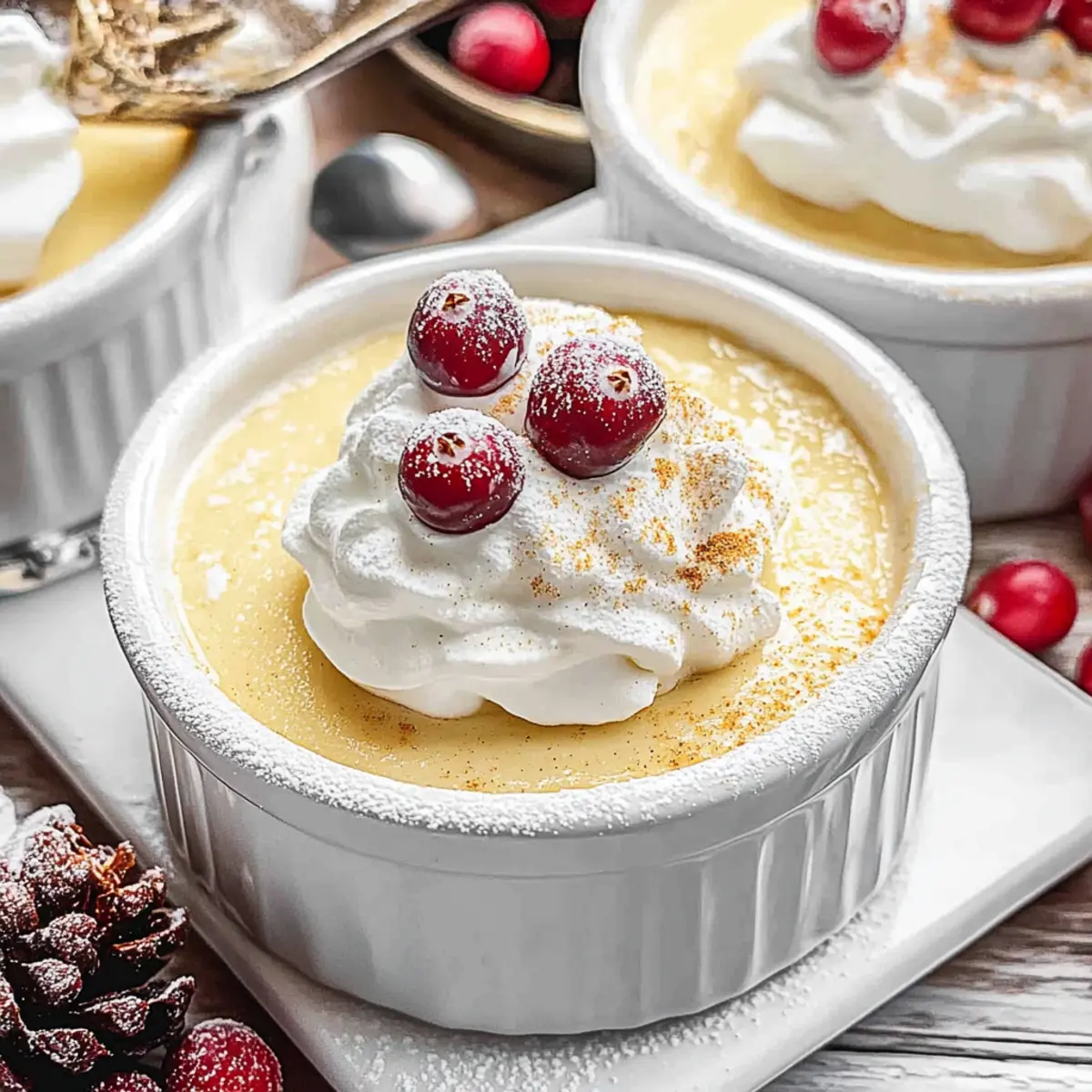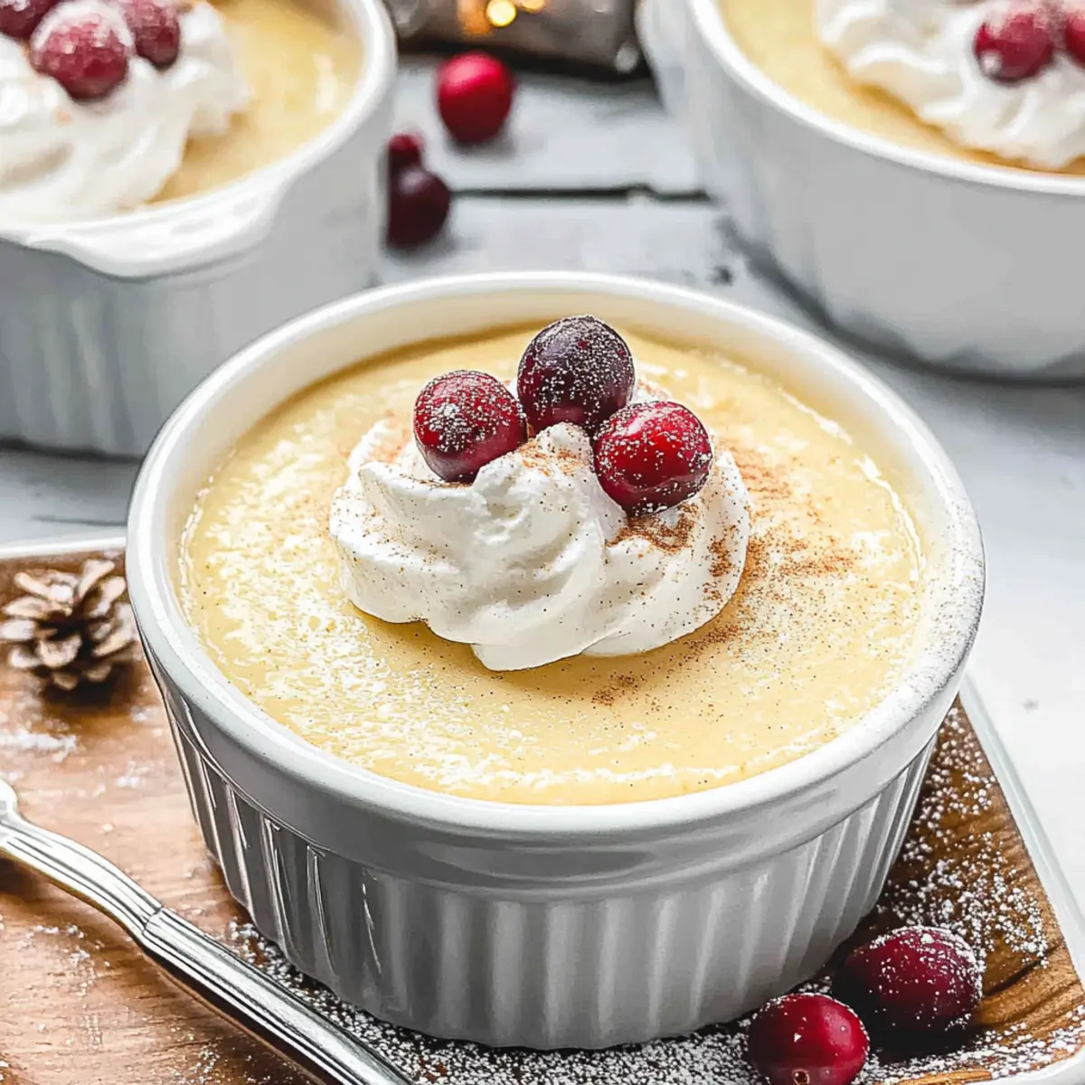 As the chill of winter sets in, there’s something magical about bringing a touch of warmth to our tables. Enter my creamy Homemade Eggnog Pudding, a delightful holiday dessert that transforms leftover eggnog into a sweet, comforting indulgence! With its silky texture and rich flavor, this pudding is not just easy to make—taking only 15 minutes of active prep time—but it also becomes a festive centerpiece when topped with fluffy whipped cream and dazzling sugared cranberries. Whether you’re hosting a gathering or simply craving a cozy night in, this eggnog pudding promises to satisfy and bring smiles to everyone. Are you ready to celebrate the season with a dessert that’s sure to impress? Why is Eggnog Pudding so Special? Indulgent, Creamy Texture: This eggnog pudding boasts a luxurious, silky smoothness that melts in your mouth, making it a standout dessert during the holiday season. Quick and Easy: With only 15 minutes of prep time, you can whip up this festive treat without any fuss, perfect for busy holiday schedules. Festive Presentation: Garnished with whipped cream and sugared cranberries, this pudding not only tastes delightful but also looks stunning on your table. Versatile Delights: Experiment with flavors by swapping out eggnog for other milk beverages, or change the toppings for a unique twist every time. Crowd-Pleasing Joy: Whether it’s a holiday gathering or a simple family meal, this dessert is sure to impress and bring smiles to all your guests. Pair it with some holiday classics, and you’re set for festive cheer! Eggnog Pudding Ingredients Indulge in this creamy eggnog pudding with these simple ingredients! For the Pudding Eggnog – Provides the primary flavor and creaminess; feel free to use store-bought or homemade eggnog. Heavy Whipping Cream – Adds richness for a creamier texture; substitute with whole milk for a lighter option. Granulated Sugar – Sweetens the pudding; swap with brown sugar for a deeper flavor if desired. Cornstarch – Essential for thickening the pudding to achieve the perfect consistency—no substitutes! Salt – Enhances the overall flavor; consider using sea salt for a gourmet touch. Ground Nutmeg – Adds warmth and spice that captures the essence of eggnog; freshly grated nutmeg is best! Egg Yolks – Provides richness and structure; ensure this key ingredient is kept for optimal flavor. Rum Extract – Offers a traditional eggnog flavor; optional, but can be replaced with vanilla extract for a non-alcoholic version. Unsalted Butter – Gives a silky finish; you can substitute with coconut oil for a dairy-free option. For the Topping Whipped Cream – Lightens and sweetens the dessert; use either store-bought or homemade for convenience. Grated Nutmeg & Sugared Cranberries – Enhance the visual appeal; make sugared cranberries by rolling them in sugar after coating with simple syrup. This eggnog pudding recipe is an easy way to enjoy a festive dessert that everyone will love! Step‑by‑Step Instructions for Eggnog Pudding Step 1: Combine Liquid Ingredients In a measuring cup, measure out the eggnog and heavy whipping cream, and gently whisk them together until fully combined. Set this mixture aside, as it will form the base of your creamy eggnog pudding. This preparation ensures a rich, consistent flavor throughout the pudding. Step 2: Whisk Dry Ingredients In a medium saucepan, whisk together granulated sugar, cornstarch, salt, and ground nutmeg until the mixture is smooth and well blended. This step is crucial for eliminating clumps and evenly distributing the flavors, ensuring that your eggnog pudding achieves the perfect festive taste. Step 3: Incorporate Egg Yolks Add the egg yolks to the dry ingredients in the saucepan and whisk vigorously until the mixture is completely smooth. This should take about a minute—look for a glossy, uniform texture. The egg yolks will give the pudding richness and help to thicken it as it cooks. Step 4: Mix in Eggnog Mixture Gradually pour the eggnog and cream mixture into the saucepan while constantly whisking to combine. This slow incorporation helps to temper the egg yolks, preventing them from curdling. Continue whisking until everything is thoroughly mixed, creating a creamy base for your eggnog pudding. Step 5: Cook the Mixture Place the saucepan over medium heat, and cook the mixture while stirring constantly for 8-10 minutes. You will notice the pudding thicken and begin to bubble gently. Look for a consistency that coats the back of a spoon—this indicates that your eggnog pudding is ready to move to the next step. Step 6: Add Flavorings Once thickened, remove the saucepan from the heat and stir in the rum extract and unsalted butter until fully melted and smooth. This enhances the rich flavors and finishes off the pudding with a silky texture. The aroma will be warm and inviting, perfect for the holiday season. Step 7: Strain and Chill To ensure a velvety texture, strain the pudding into a bowl using a fine-mesh sieve, discarding any lumps that may have formed. Cover the surface of the pudding with plastic wrap, ensuring it touches the surface to prevent a skin from forming. Let it cool for a few minutes before transferring to the refrigerator. Step 8: Refrigerate and Set Chill the eggnog pudding in the refrigerator for at least 4 hours, but preferably overnight. This allows the flavors to meld beautifully and the pudding to fully set, resulting in a delightful dessert that is rich and creamy, ready to impress during your holiday gatherings. Step 9: Serve and Garnish When ready to serve, scoop the chilled eggnog pudding into individual bowls or glasses. Top generously with whipped cream, a sprinkle of grated nutmeg, and a few sugared cranberries for a festive touch. The visual appeal and mouthwatering flavor will surely make this eggnog pudding the star of your holiday dessert table. Make Ahead Options Homemade Eggnog Pudding is perfect for meal prep, allowing you to savor