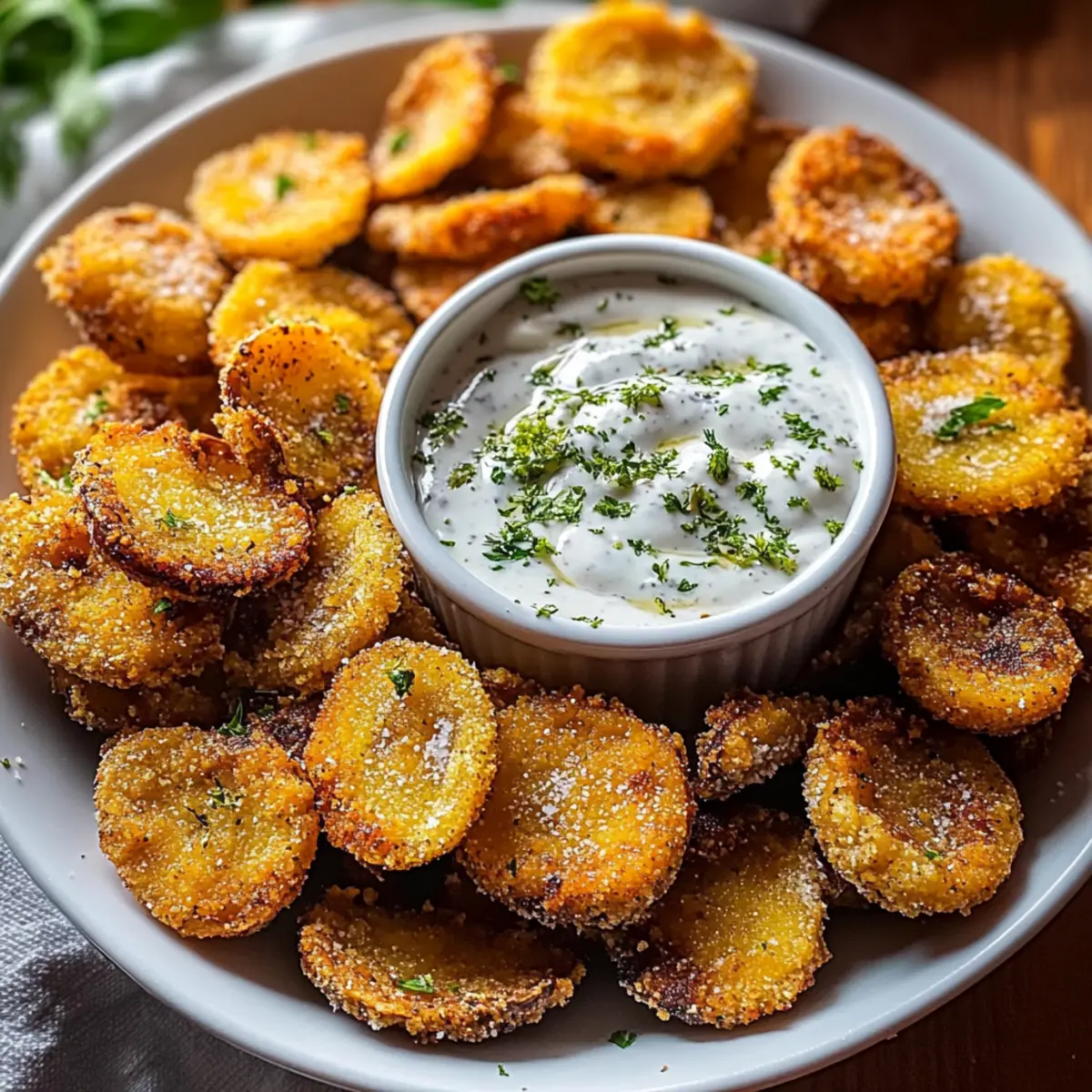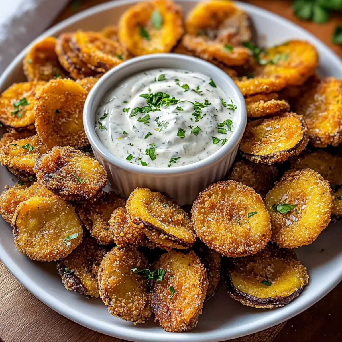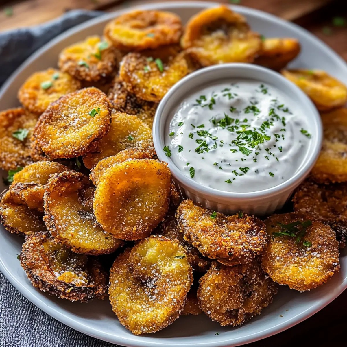 As I stood in my kitchen, the tantalizing scent of sizzling oil mingled with the earthy aroma of mushrooms, transporting me to memories of warm, inviting gatherings. Today, I’m excited to share my Crispy Fried Mushrooms with Zesty Ranch Dip, a delightful treat that transforms ordinary mushrooms into a golden, crunchy indulgence! Not only is this dish prepped in just 15 minutes—making it perfect for busy weeknights—it’s also a crowd-pleaser that everyone will love at parties. Plus, with a gluten-free option for those who need it, this recipe caters to various dietary preferences. Imagine serving these delicious morsels alongside that creamy ranch dip, turning any snack into a feast. Ready to elevate your appetizer game? Let’s dive into this simple, mouthwatering recipe! Why Are These Fried Mushrooms Irresistible? Crispy, Crunchy Texture: Each bite boasts a delightful crunch that perfectly encapsulates the tender mushroom inside. Quick Preparation: With just 15 minutes from prep to table, it’s an ideal snack for busy evenings or unexpected guests. Crowd-Pleasing Appetizer: Perfect for game nights or casual gatherings, everyone loves the combination of mushrooms and creamy ranch. Customizable Flavor: Experiment with different herbs and spices, or switch up the ranch dip to keep things exciting! Gluten-Free Friendly: Easily make this recipe suitable for gluten-sensitive diners by using gluten-free flour. Elevates Ordinary: Transform basic ingredients into an extraordinary treat that feels indulgent without the effort. Get ready to impress your friends and family with this delightful dish—it’s snack time like never before! Fried Sliced Mushrooms with Ranch Ingredients For the Mushrooms • Button or Cremini Mushrooms – Offer a delightful earthy flavor and meaty texture; shiitake or portobello make great substitutes for varied taste. • Buttermilk – Acts as a tenderizer, helping the coating stick to the mushrooms for that perfect crunch. For the Coating • All-Purpose Flour – Forms the foundation of the crispy coating; consider gluten-free flour as a substitute for a gluten-free option. • Cornstarch – Ensures an extra crispy texture that enhances the outer crunch of your fried mushrooms. • Garlic Powder – Adds a savory depth that complements the mushrooms beautifully. • Onion Powder – Introduces an aromatic quality that brings out the umami essence. • Paprika – Gives a mild smokiness and a vibrant hue to your fried bites. • Salt – Perfectly balances flavors while aiding in the crisping process. • Black Pepper – Provides a sharp bite, elevating the mushrooms’ earthiness. • Cayenne Pepper (optional) – Adds a spicy kick; adjust the amount to match your heat preferences. For Frying • Vegetable Oil – Choose oil with a high smoke point to ensure perfect frying results. For Dipping • Ranch Dressing – The classic tangy and creamy dip that pairs deliciously with fried mushrooms, enhancing their flavor. Step‑by‑Step Instructions for Fried Sliced Mushrooms with Ranch Step 1: Prepare the Mushrooms Begin by cleaning the button or cremini mushrooms with a damp cloth to remove any dirt, being gentle to avoid bruising. Once clean, slice each mushroom evenly into about ½-inch thick pieces, ensuring that they’re ready for frying. Placing all slices in a bowl helps to keep things organized as you move on to the next steps. Step 2: Mix the Coating In a medium bowl, whisk together all-purpose flour, cornstarch, garlic powder, onion powder, paprika, salt, black pepper, and optional cayenne pepper. This seasoned mixture will create a deliciously crispy coating when fried. Make sure all ingredients are well combined to evenly distribute the flavors, which will enhance your Fried Sliced Mushrooms with Ranch. Step 3: Prepare the Buttermilk Dip Pour buttermilk into a separate shallow dish. This will act as the binding agent for the mushroom slices, ensuring that the coating adheres well. Take each mushroom slice and dip it thoroughly into the buttermilk, allowing any excess to drip off. This step is crucial for achieving that perfect crunch around each piece. Step 4: Coat the Mushroom Slices Transfer the dipped mushroom slices into the seasoned flour mixture, tossing gently to ensure each piece is evenly coated. Use your hands or a fork to help cover them entirely with the seasoning. The mixture should cling well, as this contributes to that inviting crispy exterior you desire for your Fried Sliced Mushrooms with Ranch. Step 5: Heat the Oil In a large skillet, add enough vegetable oil to cover the bottom by about ½ inch and heat it over medium-high heat until it reaches 350°F (175°C). Use a thermometer to check the temperature for optimal frying. You’ll know the oil is ready when it shimmers and a tiny drop of flour added sizzles upon contact. Step 6: Fry the Mushrooms Carefully place the coated mushroom slices in the hot oil, making sure not to overcrowd the pan. Fry them in small batches for about 3-4 minutes, flipping halfway through with tongs for even cooking. When they turn a beautiful golden brown, they’re ready to be removed. This frying method promises that satisfying crunch all around. Step 7: Drain Excess Oil Once fried, use a slotted spoon to remove the crispy mushroom slices from the skillet and place them on a plate lined with paper towels. This will help to absorb any excess oil, keeping your Fried Sliced Mushrooms with Ranch nice and crisp. Leave them to drain while you finish frying any remaining batches. Step 8: Serve with Ranch Once all the mushrooms are cooked and drained, arrange them on a serving platter and serve hot with a side of creamy ranch dressing. This zesty dip perfectly complements the earthy flavors of the mushrooms, making your appetizer truly delightful. Gather your friends and family—it’s time to indulge in this delicious treat! Make Ahead Options These Crispy Fried Sliced Mushrooms with Zesty Ranch Dip ar