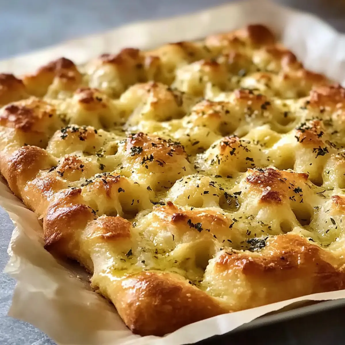 Make this Garlic Butter Focaccia, a rich and buttery bread perfect for weeknight dinners or gatherings, ready in under an hour.