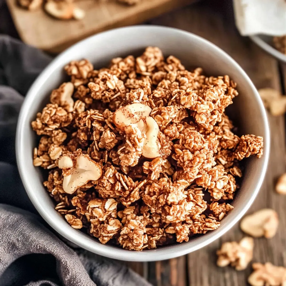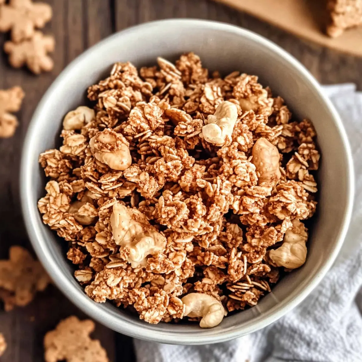 As I poured the crunchy clusters of my latest creation into a jar, the sweet, spicy aroma of Gingerbread Granola filled my kitchen, instantly transporting me to cozy holiday mornings. This delightful treat combines rolled oats, nuts, and warm spices like cinnamon and ginger for a festive snack that’s perfect any time of year. Best of all, this gluten-free and dairy-free recipe ensures that everyone can enjoy it, whether sprinkled over yogurt or enjoyed straight from the jar. With quick prep and a wholesome twist on traditional gingerbread flavors, it’s a guilt-free way to embrace the holiday spirit. Ready to bring some cheer and crunch into your day? Let’s dive into this easy-to-make recipe! Why is this Gingerbread Granola a Must-Try? Holiday Cheer: This Gingerbread Granola captures the essence of festive flavors while being completely gluten-free and dairy-free, ensuring everyone can enjoy it. Easy to Make: With minimal prep and basic ingredients, you’ll whip up a batch in no time—perfect for last-minute snacks or gifts! Versatile Treat: Whether paired with yogurt, as a topping on smoothie bowls, or enjoyed straight from the jar, this granola satisfies cravings anytime. Deliciously Nutritious: Infused with spices like cinnamon and ginger, it’s a wholesome alternative to store-bought snacks. Check out more on how to customize your granola to suit your taste! Gifting Friendly: Package it as a homemade gift for friends and family; everyone loves a jar of crunchy, festive goodness! Gingerbread Granola Ingredients • Discover how easy it is to create this delightful Gingerbread Granola at home! For the Granola Base Rolled Oats – Provides the structure and essential texture; opt for certified gluten-free for a perfect batch! Walnuts – Adds a rich source of healthy fats and crunch; feel free to substitute pecans or almonds if desired. For the Spice Blend Cinnamon – Imparts warm, comforting flavors that define gingerbread; use Ceylon cinnamon for a sweeter taste. Ginger – Brings a zesty warmth that complements the granola beautifully; fresh ginger adds even more zing if you have it. Nutmeg – Adds depth and a subtle earthiness; just a pinch goes a long way! Allspice – Contributes a complex flavor that resonates with holiday treats; a great addition if you have it on hand. For the Binding Coconut Oil – Binds the ingredients and aids in crisping; replace it with any neutral oil or butter as desired. Maple Syrup – Acting as a natural sweetener, it enhances the overall flavor; honey works as a fantastic alternative while adjusting sweetness is key. Molasses – Deepens the flavor profile and enriches the holiday taste; consider increasing the amount for a more robust flavor. Vanilla – Elevates the flavor profile and smooths out the spices; pure vanilla extract will yield the best results. Get ready to whip up something that will fill your home with holiday spirit and warmth! Step‑by‑Step Instructions for Gingerbread Granola Step 1: Preheat and Prepare Begin by preheating your oven to 300°F (150°C) to ensure it’s hot and ready. Line a large baking pan with parchment paper for easy cleanup later. This step will help your Gingerbread Granola bake evenly and prevent sticking, setting the stage for a deliciously crunchy treat. Step 2: Combine Dry Ingredients In a spacious mixing bowl, combine the rolled oats, chopped walnuts, and your chosen spices—cinnamon, ginger, nutmeg, and allspice. Stir well to ensure the oats and walnuts are generously coated with the aromatic spices. This blend provides the distinctive flavor that makes your Gingerbread Granola festive and warm. Step 3: Melt and Mix Wet Ingredients Next, melt the coconut oil in a microwave-safe bowl for about 30 seconds, ensuring it’s fully liquefied. Add in the maple syrup and molasses, stirring until smooth and heated through. This mixture will not only bind your granola but also infuse it with that rich gingerbread flavor, making every bite delectable. Step 4: Combine Wet and Dry Mixtures Pour the hot wet ingredients over the dry mixture and toss them together until everything is evenly coated. Make sure no oats are left dry, as this ensures a uniform flavor throughout your Gingerbread Granola. The warmth from the mix helps the ingredients meld beautifully, setting you up for crunchy granola goodness. Step 5: Spread and Bake Spread the combined mixture evenly on the prepared baking pan, creating an even layer. Bake in the preheated oven for 25 to 30 minutes, stirring halfway through to promote even browning. Watch for the edges to turn golden brown, indicating that your granola is developing that perfect crispy texture we all love. Step 6: Cool and Break Apart Once baked, remove the pan from the oven and allow the granola to cool completely in the pan. This is crucial for achieving that irresistible crunch! As it cools, the granola will harden, bringing out the delightful clusters. Patience here pays off as you await the transformation. Step 7: Store or Enjoy Break the cooled gingerbread granola into clusters of your desired size and transfer it to an airtight container for storage. This crunchy treat keeps well for several weeks, allowing you to enjoy its festive flavors anytime. Serve as a snack, a topping for yogurt, or simply enjoy straight from the jar! Expert Tips for Gingerbread Granola Cool Completely: Allow your granola to cool fully in the pan to achieve that perfect crunch. If you break it apart too soon, it may be chewy instead of crispy. Use Fresh Spices: Opt for high-quality, fresh spices. This elevates the flavor of your Gingerbread Granola and provides that warm, inviting aroma that fills your kitchen during baking. Mix Well: Ensure the wet and dry ingredients are well combined to prevent clumping. Uneven mixing can lead to patches of dry oats, which detracts from the overall taste. Adjust Sweetness: If you find the granola too sweet, consider reducing the maple syrup or adding more oa