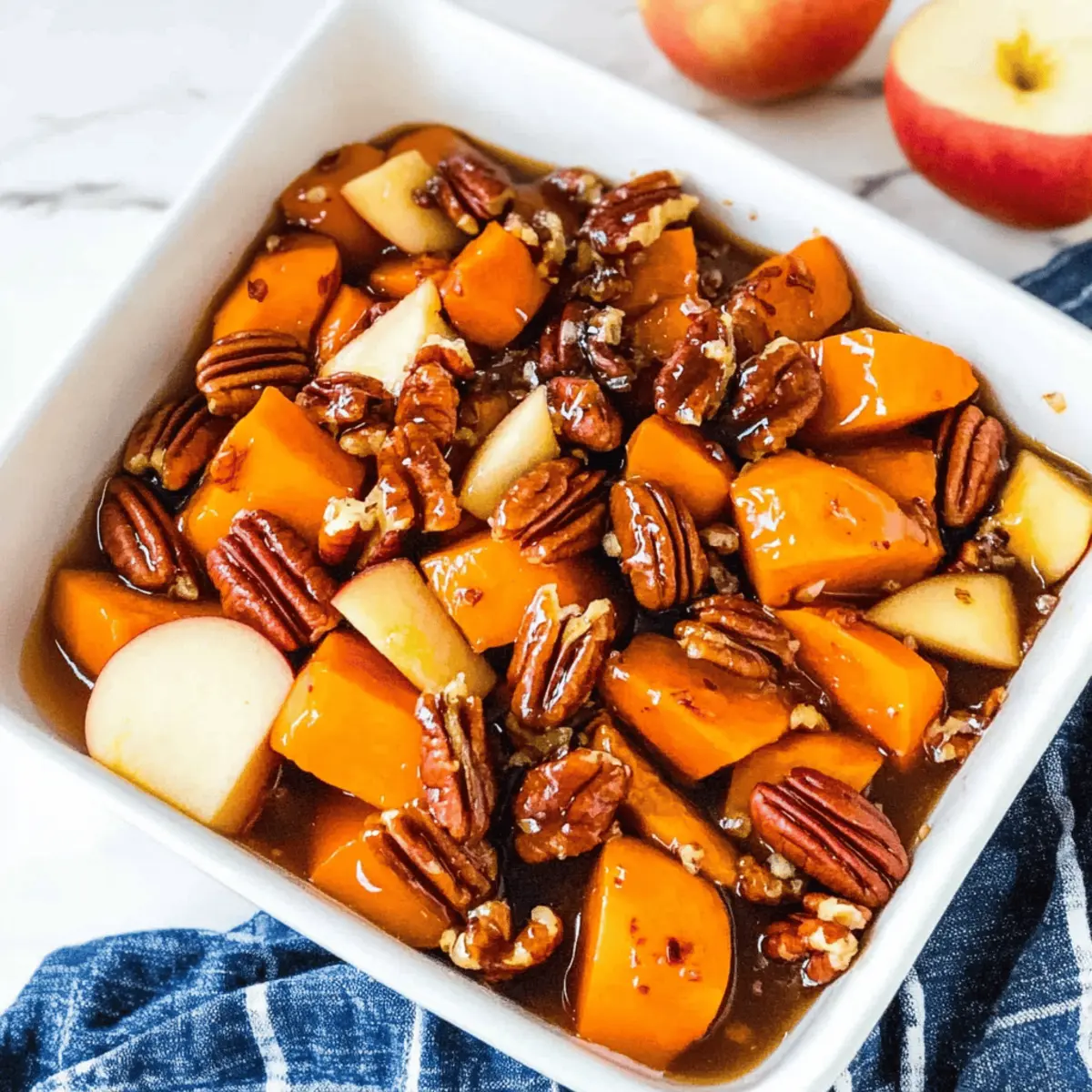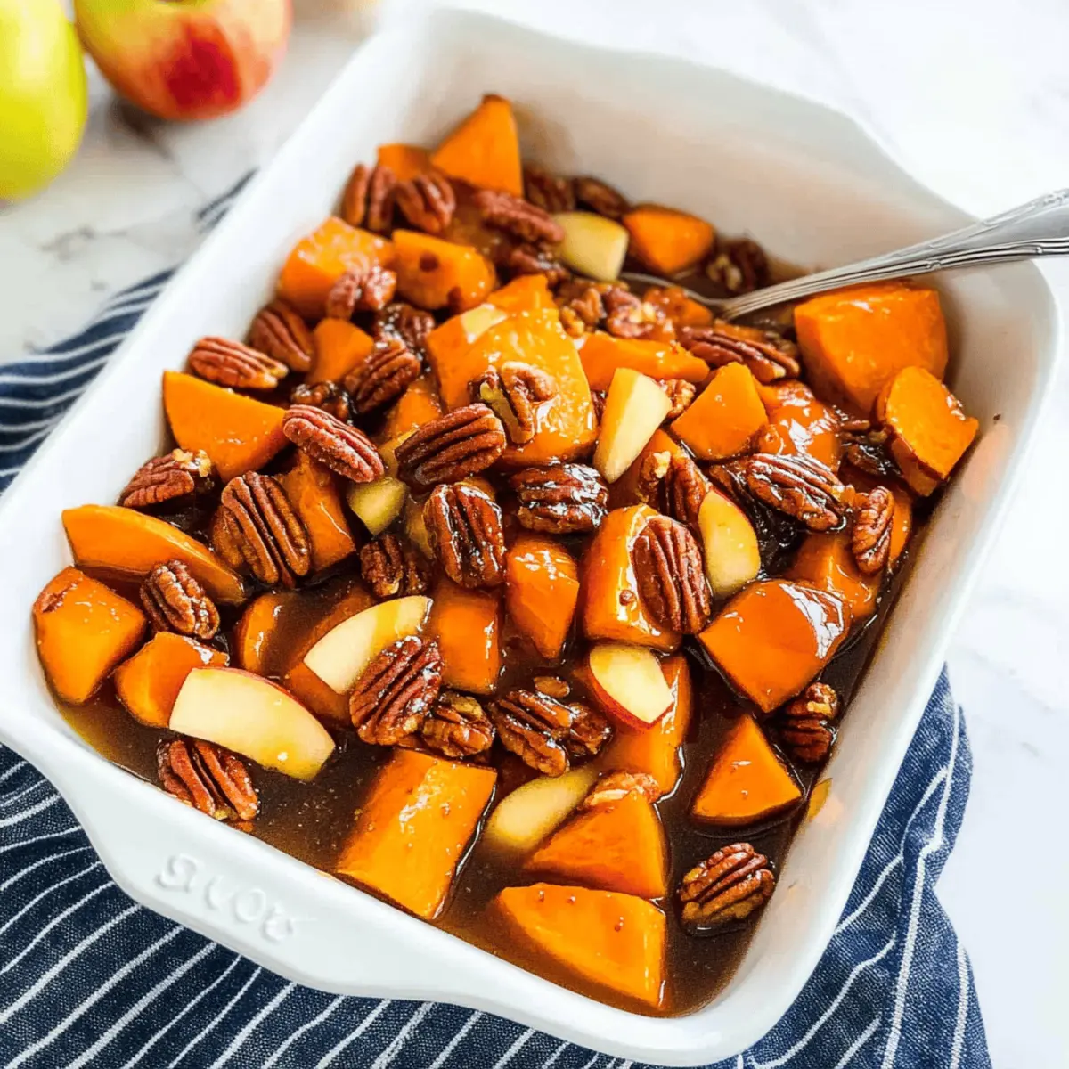 Sprinkle 1 cup of chopped pecans evenly over the sweet potato and apple mixture. Return the dish to the oven without the foil and bake for an additional 30 minutes. This time allows the pecans to toast and the glaze to caramelize beautifully, creating that perfect mouthwatering finish.