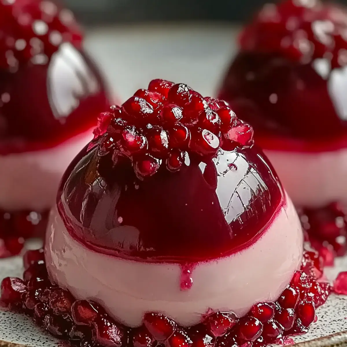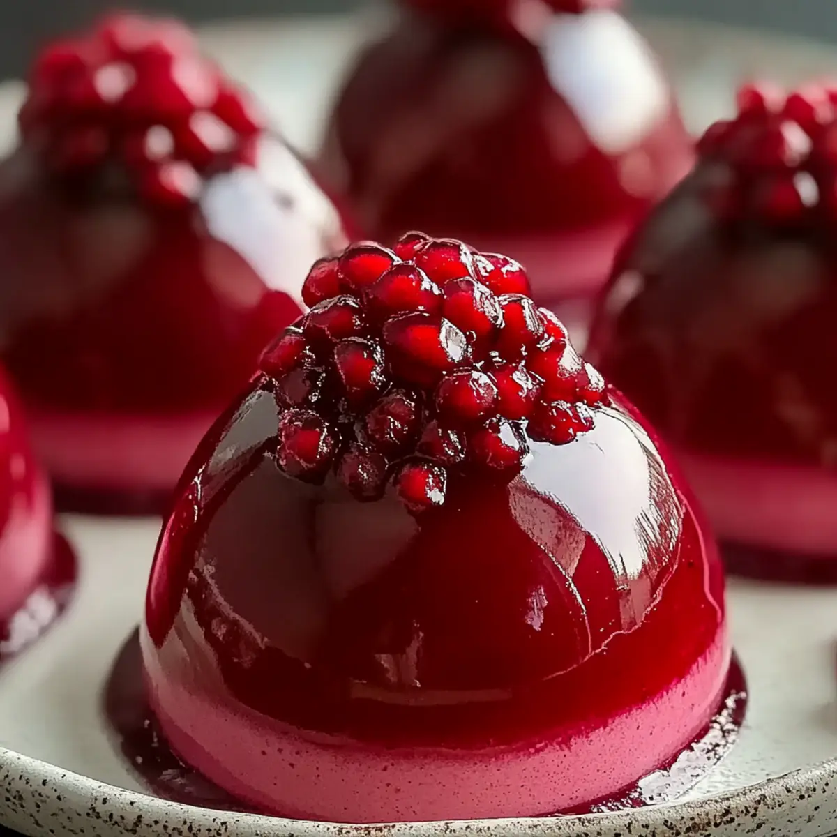 As I stood in the kitchen, the holiday lights twinkling around me, an idea struck: what if I could transform a simple dessert into something truly dazzling? That’s when I decided to whip up my Glossy Pomegranate Mousse Domes. This elegant dessert marries a light sponge cake with a luscious pomegranate mousse, all encased in a glossy mirror glaze that captures the eye and delights the senses. Perfect for holiday gatherings, these show-stopping domes not only elevate your dessert game but also make preparation a breeze—ideal for those busy festive evenings. Ready to impress your guests and leave them speechless with every velvety bite? Let’s dive into this sophisticated treat that’s just as fun to make as it is to eat! Why are Glossy Pomegranate Mousse Domes irresistible? Elegance in Every Bite: These domes are the epitome of elegance, making them an impressive centerpiece for any holiday dessert table. Effortlessly Sophisticated: Despite their fancy appearance, the preparation is simple, allowing even novice bakers to create a show-stopper. Decadent Flavor: The combination of rich pomegranate and creamy mousse captures the essence of festive indulgence, leaving your guests craving more. Versatile Occasions: Perfect for everything from holiday dinners to elegant soirées, these domes are as versatile as they are delicious. Time-Saving Delight: Make-ahead options let you prepare these beauties in advance, making entertaining effortless. Visual Feast: With their stunning glossy finish, these domes are sure to spark conversation and admiration at your next gathering. Glossy Pomegranate Mousse Domes Ingredients For the Mousse • Pomegranate Juice – Provides the primary flavor and a vibrant hue; both fresh and bottled work well. • Sugar – Balances acidity while enhancing sweetness in your delightful mousse. • Gelatin Powder – Acts as a stabilizer, ensuring that your mousse sets beautifully. • Heavy Cream – Whipped to soft peaks adds volume and creaminess, creating a luxurious texture. For the Sponge Cake • Flour – Forms the structure, allowing the cake to rise and hold the mousse. • Eggs – Provide richness and leavening, contributing to the cake’s delightful texture. • Melted Butter – Adds moisture and a rich flavor to the sponge base. • Vanilla Extract – Enhances the overall flavor profile, making it truly irresistible. For the Mirror Glaze • White Chocolate – Contributes sweetness and is essential for that glossy finish; can substitute with milk chocolate for a different twist. • Corn Syrup or Glucose – Ensures a smooth glaze texture and prevents crystallization for that perfect shine. Note: This elegant dessert is perfect for holiday gatherings and special occasions where you want to impress with style. Step‑by‑Step Instructions for Glossy Pomegranate Mousse Domes Step 1: Prepare Pomegranate Mousse In a medium saucepan, combine 1 cup of pomegranate juice and 1/2 cup of sugar over medium heat. Stir continuously until the sugar fully dissolves, then sprinkle 1 tablespoon of gelatin powder over the mixture and stir until dissolved. Remove from heat and allow it to cool slightly. Gently fold in 1 1/2 cups of whipped heavy cream until just combined, creating a fluffy mousse. Step 2: Make Sponge Cake Preheat your oven to 350°F (175°C). In a large mixing bowl, whisk together 3 eggs and 1/3 cup of sugar until pale and fluffy, about 5 minutes. Slowly fold in 1/4 cup of melted butter and 1 teaspoon of vanilla extract. Sift in 1 cup of flour and gently combine until no flour streaks remain. Pour the batter into a lined dome mold and bake for 20 minutes or until golden and a toothpick inserted comes out clean. Let cool completely. Step 3: Assemble Domes Once the sponge cake is cool, carefully cut out the cake domes and place them into the same dome mold. Pour the pomegranate mousse evenly over each sponge base, filling to the top. Cover the mold with plastic wrap and place it in the freezer for at least 4 hours, or until the mousse is firm and set. Step 4: Create Mirror Glaze In a saucepan, combine 1/2 cup of pomegranate juice, 1/3 cup of sugar, 1 tablespoon of gelatin, and 1/4 cup of corn syrup over medium heat. Stir until the gelatin and sugar dissolve completely. Remove from heat and mix in 4 ounces of chopped white chocolate until smooth. Allow the glaze to cool to 90–95°F (32–35°C) before pouring over the frozen mousse domes. Step 5: Glaze Domes Remove the frozen mousse domes carefully from the mold, placing them on a wire rack. Slowly pour the cooled mirror glaze over each dome, ensuring they are evenly coated. Allow the glaze to set for about 30 minutes at room temperature before transferring them to the refrigerator to chill until serving. Step 6: Serve and Enjoy Keeping the domes chilled, carefully transfer them to a serving platter. For an added touch, garnish with fresh pomegranate seeds and a dollop of whipped cream. The Glossy Pomegranate Mousse Domes are now ready to impress your guests and steal the show at your holiday gathering! Make Ahead Options These Glossy Pomegranate Mousse Domes are perfect for meal prep enthusiasts! You can prepare the mousse and sponge cake up to 24 hours in advance, allowing the flavors to meld beautifully while saving you time on the day of your gathering. Simply make the pomegranate mousse and let it chill in the fridge, and bake the sponge cake, allowing it to cool completely. Once both components are ready, assemble the domes and freeze them for up to 2 weeks before glazing. To maintain their quality, wrap the domes tightly in plastic wrap and place them in an airtight container. When you’re ready to serve, simply create the mirror glaze and pour it over the frozen domes—your dessert will be just as delicious and impressive as if you had made it all at once! Expert Tips for Glossy Pomegranate Mousse Domes Freeze First: Ensure the mousse domes are completely frozen before glazing; this guarante
