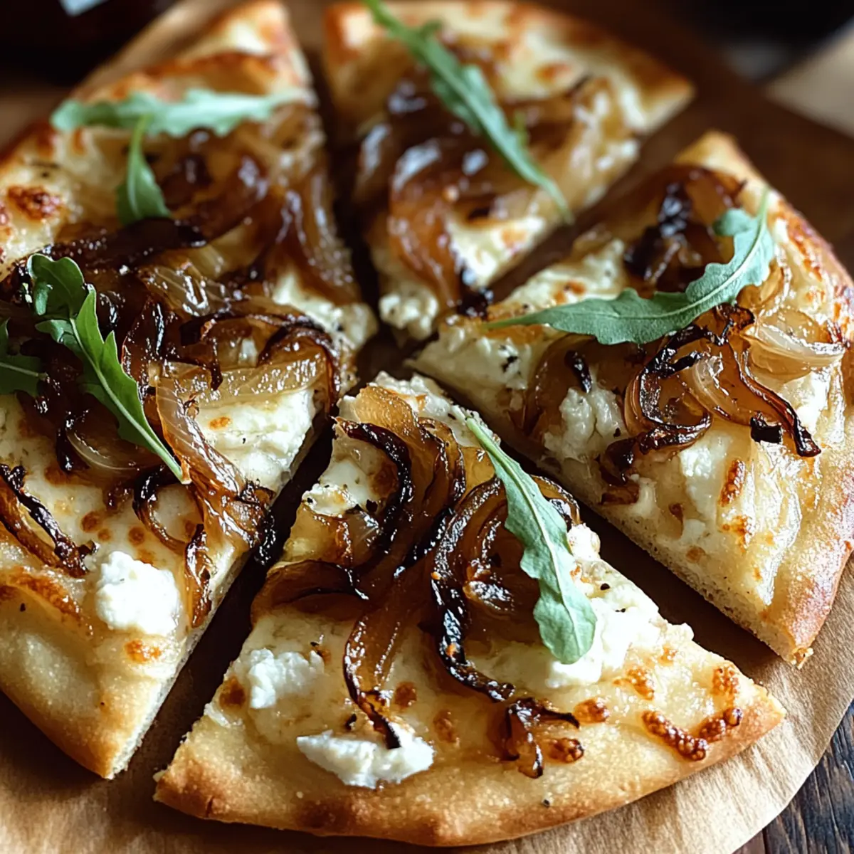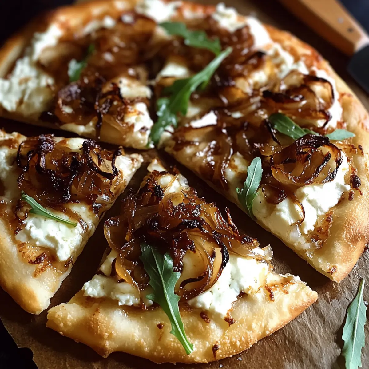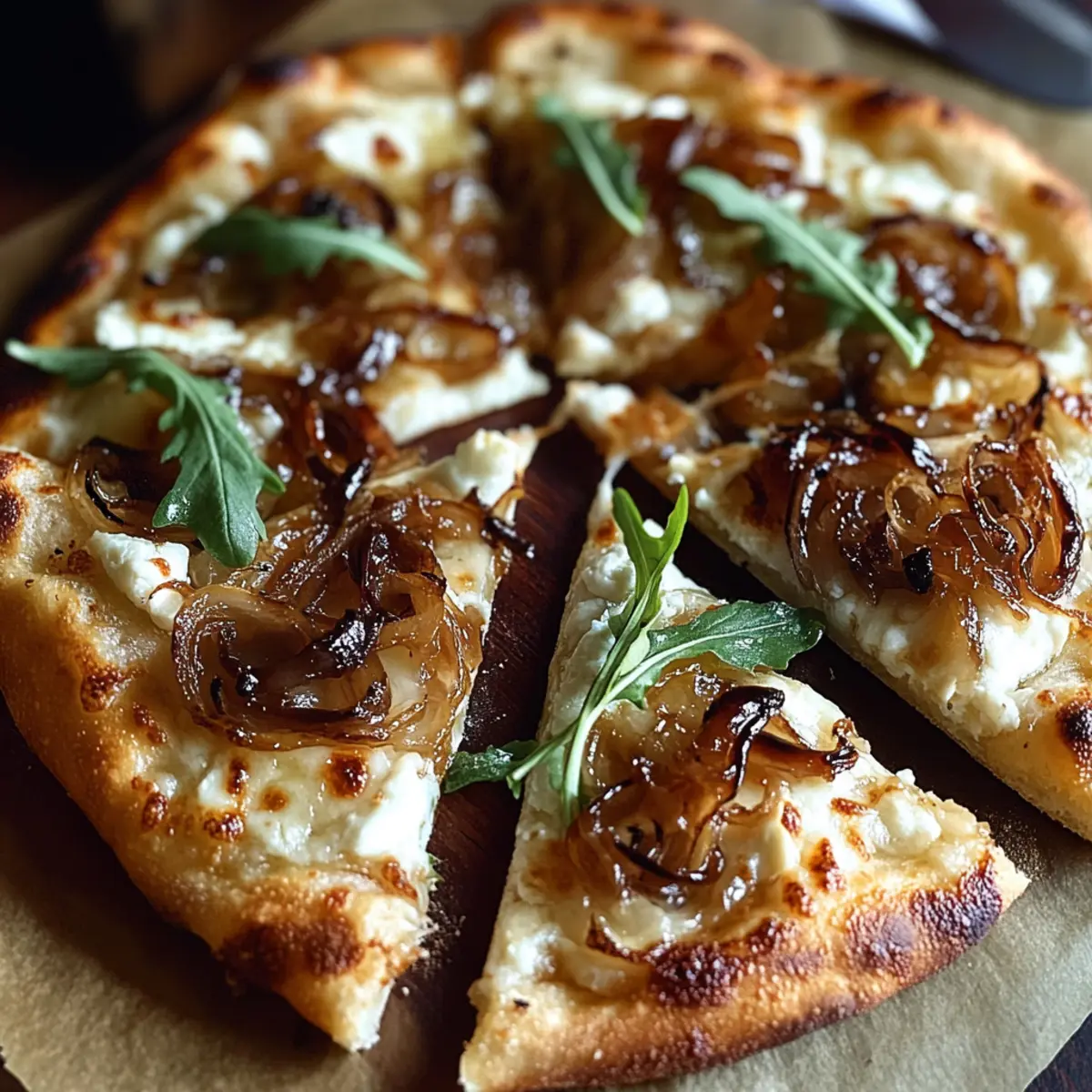 As the aroma of sweet onions caramelizing fills the air, an unexpected moment of delight strikes. My latest creation, Goat Cheese and Caramelized Onion Pizza, marries rich flavors that dance on the palate—perfectly crispy crust, tangy goat cheese, and the fragrant touch of fresh thyme. This vegetarian masterpiece is not only quick to whip up but is also a gourmet experience that your friends and family will rave about. The addition of peppery arugula offers a fresh crunch, giving every bite a vibrant lift. Whether you’re elevating a weeknight dinner or impressing guests at a gathering, this pizza beautifully balances indulgence with a touch of health. Ready to discover how to create this delightful dish that will have everyone asking for seconds? Why is this pizza a must-try? Irresistible Flavor Fusion: Combining sweet caramelized onions with tangy goat cheese creates a depth of flavor that will have you craving every bite. Quick and Easy: Using store-bought pizza dough speeds up prep time, allowing you to enjoy gourmet pizza without the fuss. Versatile Toppings: Feel free to customize each pizza with your favorite veggies; think roasted mushrooms or fresh spinach for added taste. Crowd-Pleasing Delight: This dish caters to both vegetarians and gourmet lovers, making it ideal for gatherings. Pair with a crisp white wine for a delightful experience! Healthy Indulgence: Packed with nutrients from arugula and healthy fats, you can savor every mouthful without guilt. If you’re looking for more quick and flavorful recipes, check out my favorite Egg Cheese Toasts. Goat Cheese and Caramelized Onion Pizza Ingredients For the Pizza Base • Pizza Dough – Use homemade or store-bought for a convenient option. For the Caramelized Onions • Olive Oil – This adds richness and aids in cooking. Substitute with avocado oil if preferred. • Onion – Yellow onions are best for sweetness when caramelized. • Sugar – Enhances the caramelization process; omit if you prefer less sweetness. • Salt – Essential for balancing flavors and aiding caramelization. For the Toppings • Goat Cheese – Provides a creamy and tangy flavor; feta can be used as a substitute. • Fresh Mozzarella – Adds a delightful stretch; use sliced or shredded and drained mozzarella. • Fresh Thyme Leaves – Offers a herbal touch to elevate the flavor; oregano can be an alternative. • Balsamic Vinegar – Adds a balance of acidity to complement the sweetness of the onions. • Honey (optional) – Can enhance sweetness; agave syrup is a good substitute if omitted. • Freshly Cracked Black Pepper – Perfect for seasoning; adjust according to your taste. • Fresh Arugula – A peppery and nutritious topping that elevates your pizza’s freshness. • Olive Oil (for drizzling) – Enhances the overall richness and flavor when served. This Goat Cheese and Caramelized Onion Pizza will become your go-to recipe for impressing guests and satisfying your gourmet cravings! Step‑by‑Step Instructions for Goat Cheese and Caramelized Onion Pizza Step 1: Preheat the Oven Start by preheating your oven to 475°F (245°C). If you have a pizza stone, place it in the oven to heat as well, which will help achieve a crispy crust. This step is crucial for making a delicious Goat Cheese and Caramelized Onion Pizza, ensuring that the pizza cooks evenly and the crust turns golden. Step 2: Caramelize the Onions In a skillet, heat a tablespoon of olive oil over medium heat. Add the sliced yellow onions, a pinch of salt, and a teaspoon of sugar. Cook for 20-25 minutes, stirring often, until the onions are soft, golden, and beautifully caramelized. This process adds a rich sweetness that perfectly complements the tangy goat cheese. Step 3: Prepare the Pizza Dough On a lightly floured surface, roll out your pizza dough into a round shape, about 12 inches in diameter. Transfer the dough onto a lightly greased baking sheet or a preheated pizza stone. Make sure the dough is smooth and even to ensure a well-cooked base for your Goat Cheese and Caramelized Onion Pizza. Step 4: Add Olive Oil to the Base Brush a thin layer of olive oil over the entire surface of the pizza dough. This enhances the flavor and helps crisp the crust while baking. The olive oil serves as a flavorful base that brings together all the toppings, making your pizza even more delectable. Step 5: Layer the Caramelized Onions Spread the caramelized onions evenly over the oiled pizza dough, ensuring they cover the base generously. This layer of sweetness provides the perfect foundation for your remaining toppings and brings a comforting depth to the Goat Cheese and Caramelized Onion Pizza. Step 6: Top with Cheeses and Herbs Crumble the goat cheese over the onions, followed by a sprinkle of shredded fresh mozzarella. Finally, add the fresh thyme leaves, distributing them evenly across the pizza. This combination of cheeses creates a melty, creamy texture that enhances the gourmet experience of your pizza. Step 7: Drizzle with Balsamic and Honey Drizzle balsamic vinegar and optional honey across the toppings for a touch of acidity and additional sweetness. This step elevates the flavors even further, marrying the richness of the cheeses with the caramelized onions in your Goat Cheese and Caramelized Onion Pizza. Step 8: Bake to Perfection Carefully place the pizza in the oven and bake for 12-15 minutes, or until the crust is golden and the cheese is bubbly and slightly browned. Keep an eye on it during this time; the contrast between the crispy crust and gooey cheese is what makes this pizza truly delightful. Step 9: Finish with Arugula and Oil Once baked, remove the pizza from the oven and top it with fresh arugula for a peppery crunch. Drizzle a bit of olive oil over the arugula to enhance its vibrant flavor. Allow the pizza to cool for a minute before slicing, ensuring all those beautiful layers stay in place. Step 10: Slice and Serve Slice your Goat Cheese and Caramelize