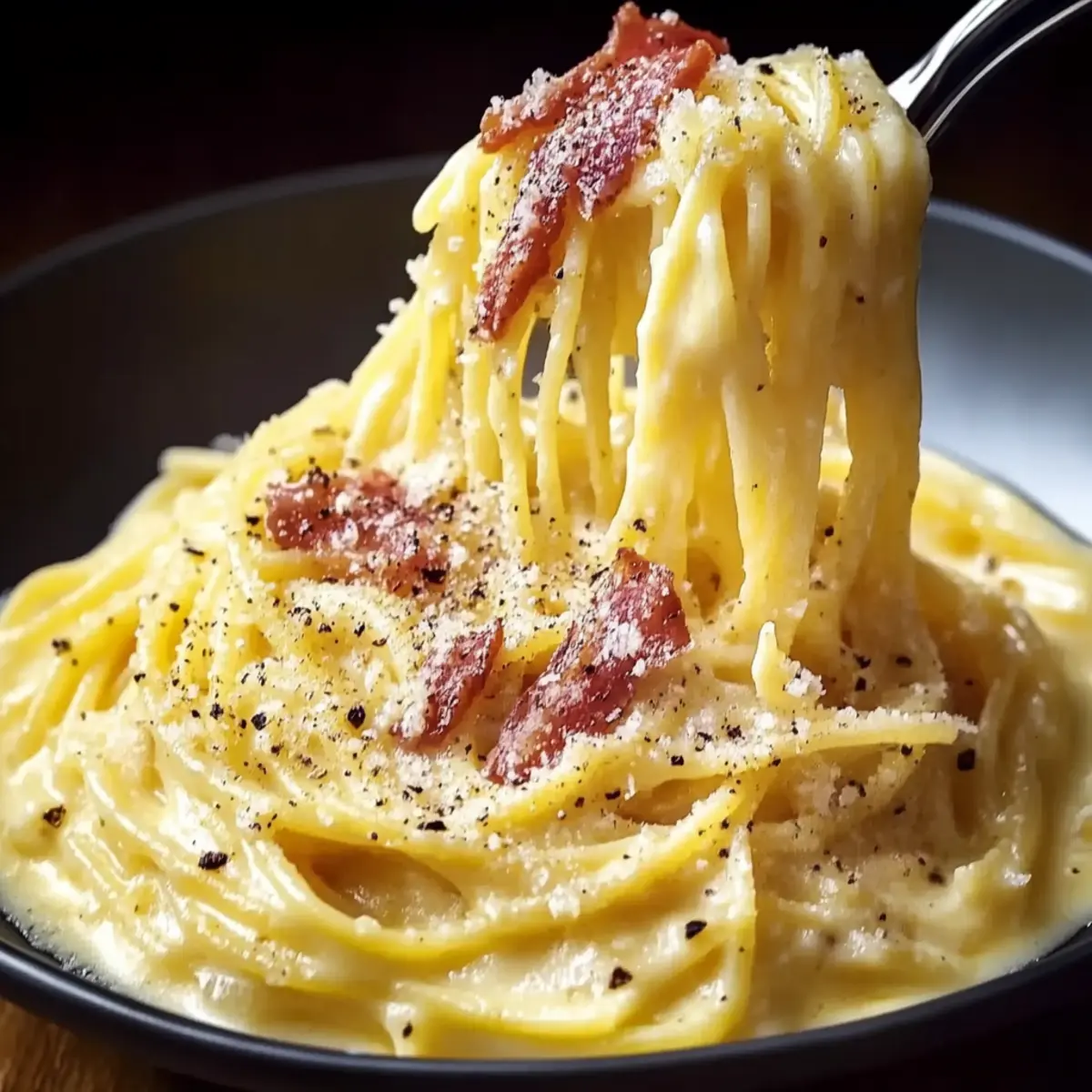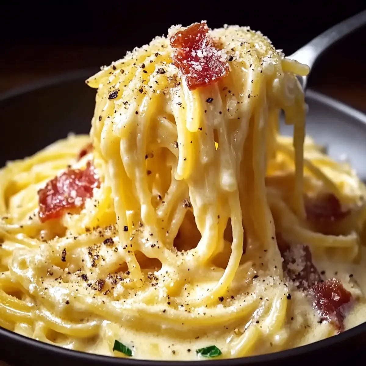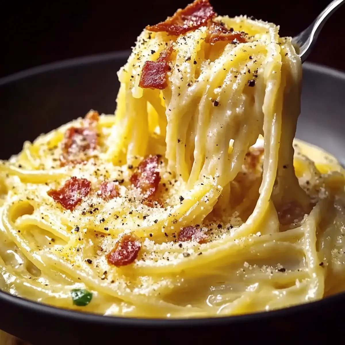 As I pulled the lid off the pot, a wave of savory aromas filled my kitchen, instantly transporting me to a bustling trattoria in Rome. Gordon Ramsay’s authentic Carbonara combines simple yet luxurious ingredients to create a dish that speaks to the heart of Italian comfort food. With its quick prep time of under 35 minutes, this traditional recipe relies on no cream, allowing the rich flavors of egg, cheese, and crispy guanciale to shine through. It’s perfect for those busy weeknights or when you crave something extraordinary without too much fuss. So, are you ready to whip up a plate of this mouthwatering comfort? Let’s dive into the details! Why Choose Gordon Ramsay Carbonara? Quick and Easy: This recipe takes under 35 minutes to prepare, making it perfect for busy weeknights. Rich, Authentic Flavor: Experience the depth of traditional Italian taste with just a handful of quality ingredients—no cream required! Comforting Satisfaction: The combination of creamy egg, cheese, and crispy guanciale creates a dish that warms your soul. Versatile Option: You can easily swap out guanciale for pancetta or a veggie option, accommodating any dietary preference. Crowd-Pleaser: Impress family and friends with a restaurant-quality meal that feels indulgent but is simple enough for daily cooking. If you’re eager to elevate your pasta game, give this authentic Italian dish a try tonight! Gordon Ramsay Carbonara Ingredients • Note: Gather these staples to create your authentic Gordon Ramsay Carbonara! For the Pasta Spaghetti – The traditional choice for Carbonara, providing the perfect base for the rich sauce. For the Sauce Guanciale – This key ingredient adds depth and richness; if unavailable, pancetta or thick-cut bacon is a great substitute. Eggs – The secret to achieving that creamy texture; always use large, fresh eggs for the best results. Pecorino Romano Cheese – Essential for authentic flavor; it provides a salty tang that elevates the dish. Parmesan Cheese – Adds an extra layer of creaminess; optional but enhances the overall richness. Black Pepper – Freshly ground pepper is essential for that signature warmth and depth of flavor. Optional Additions Garlic – Sauté it for added aromatic depth; optional if you’re leaning toward a traditional flavor profile. Olive Oil – Use only if necessary to sauté garlic or for extra richness. Salt – Keep it minimal as guanciale and cheeses provide enough natural saltiness. With these ingredients, you’re well on your way to whipping up an unforgettable Gordon Ramsay Carbonara! Step‑by‑Step Instructions for Gordon Ramsay Carbonara Step 1: Prepare Guanciale Start by dicing the guanciale into ¼-inch pieces. Place them in a cold skillet and heat over medium-low. Cook for about 10–15 minutes, stirring occasionally, until the guanciale is crispy and golden brown. You’ll know it’s done when it releases its flavorful fat and emits a savory aroma—this is the foundation for your Gordon Ramsay Carbonara! Step 2: Remove Fat Once the guanciale is beautifully crisp, carefully transfer it to a paper towel-lined plate to drain excess fat. Keep the rendered fat in the skillet, as it will serve as the flavorful base for your sauce. This step is crucial for achieving that rich, comforting flavor signature to Gordon Ramsay’s Carbonara. Step 3: Optional Garlic Sauté If you prefer a hint of garlic in your Carbonara, now’s the time to add minced garlic to the skillet with any remaining guanciale fat. Sauté for just a minute until fragrant but not browned, then immediately remove the skillet from the heat. This will infuse your dish with aromatic depth without overwhelming the traditional taste of Carbonara. Step 4: Egg Mixture In a large mixing bowl, whisk together the eggs, grated Pecorino Romano, grated Parmesan, and freshly ground black pepper until smooth and creamy. Aim for a fluffy consistency in the egg mixture, as this will create the luscious sauce for your Gordon Ramsay Carbonara. Set aside as you prepare the pasta. Step 5: Cook Pasta Bring a large pot of salted water to a boil, and cook the spaghetti according to package instructions until al dente, typically around 8–10 minutes. Make sure to taste it as it cooks for that perfect bite! Once done, quickly reserve about 1 cup of the pasta water and then drain the spaghetti. Step 6: Drain & Reserve Water After draining the spaghetti, add it directly to the skillet with the rendered guanciale fat, ensuring the pasta is still hot. Give it a quick toss to coat the spaghetti with the flavorful fat. The heat from the pasta is vital in the next step to help create the silky sauce for your Gordon Ramsay Carbonara. Step 7: Assemble Carbonara Remove the skillet from heat to prevent scrambling the eggs. Pour the egg and cheese mixture over the hot spaghetti, tossing vigorously to coat every strand. The eggs will gently cook with the residual heat, creating a creamy sauce without any cream. Do this quickly to achieve that signature creamy consistency! Step 8: Adjust Sauce If the sauce appears too thick, slowly add reserved pasta water a little at a time, stirring until you reach your desired creaminess. This step is crucial for perfecting the texture of your Gordon Ramsay Carbonara, ensuring that the sauce clings beautifully to the pasta. Step 9: Combine Ingredients Toss the crispy guanciale back into the pasta, mixing thoroughly to incorporate all flavors. Reserve a bit of guanciale for garnish if desired. This addition gives your dish that satisfying crunch against the creamy pasta, enhancing the overall experience of your Carbonara. Step 10: Season & Serve Before serving, taste and adjust with more salt and black pepper if needed. Serve your Gordon Ramsay Carbonara immediately, garnished with additional cheese and freshly cracked pepper for an irresistible finish. The comforting aroma will surely draw everyone to the table! Make Ahead Options Gordon Ramsay’s Carbonara is pe