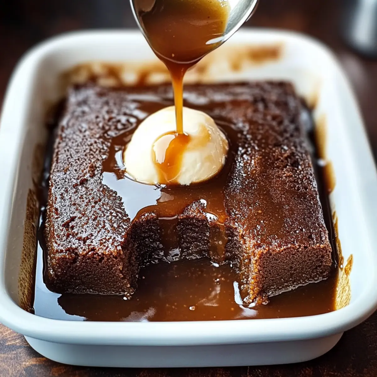 As I stood in my kitchen, the sweet aroma of caramel began to fill the air, instantly transporting me to memories of cozy evenings spent with loved ones. That’s the magic of Gordon Ramsay’s Sticky Toffee Pudding—an indulgent dessert that delivers both warmth and comfort. This delightful recipe is not only vegetarian-friendly but also incredibly quick to prepare, making it a go-to for those spontaneous dinner parties or family gatherings. Imagine impressing everyone with a dish that tastes like it came straight from a high-end restaurant—and yet, it’s so simple to make. The layers of rich dates and luscious toffee sauce come together to create a dessert that feels like a sunny hug on a winter evening. Are you ready to dive into this decadent world of Sticky Toffee Pudding? Let’s get started! Why Is This Pudding So Irresistible? Indulgent Comfort: Each bite of Gordon Ramsay Sticky Toffee Pudding envelops you in a warm, sweet embrace, making it the perfect dessert for any occasion. Quick & Easy: This recipe is surprisingly simple, allowing even novice bakers to create an impressive dish without hours in the kitchen. Vegetarian Delight: Enjoy a rich dessert that caters to everyone, making it a crowd-pleaser at your next gathering. Versatile Twists: Feel free to swap dates for alternative fruits like figs—get creative and customize this classic to your taste! Make-Ahead Magic: Prepare it in advance and simply warm it up for an effortless serving that doesn’t compromise on flavor. Venture into the world of homemade indulgence with this recipe, and turn any meal into a memorable feast. Gordon Ramsay Sticky Toffee Pudding Ingredients For the Pudding Chopped Dates – Natural sweetness and moisture; ensure they are pitted for a smooth texture. Baking Soda – Softens the dates when combined with boiling water; essential for achieving the right consistency. Unsalted Butter – Provides richness and moisture; can be substituted with margarine for a dairy-free option. Light Brown Sugar – Adds sweetness and a deep caramel flavor; Demerara sugar can be used for a more robust taste. Egg – Acts as a binder for the pudding; ensure it’s at room temperature for better incorporation. All-Purpose Flour – Gives structure to the pudding; can substitute with gluten-free flour if needed. Baking Powder – Helps the pudding rise; important for a light and fluffy texture. For the Toffee Sauce Heavy Cream – Contributes to the luscious texture of the sauce; switch to coconut cream for a non-dairy option. Milk – Adds creaminess; can be replaced with almond milk if desired. Corn Syrup – Helps achieve that glossy finish in the sauce; honey can be a substitute for a different flavor profile. Bourbon – Uniquely enriches the sauce; replace with vanilla extract for a non-alcoholic version. Salt – Enhances sweetness and flavor balance; a pinch goes a long way! Step‑by‑Step Instructions for Gordon Ramsay Sticky Toffee Pudding Step 1: Preheat the Oven Begin by preheating your oven to 350°F (175°C). This temperature is crucial for ensuring your Gordon Ramsay Sticky Toffee Pudding bakes evenly. As the oven warms up, prepare your baking dish by greasing it lightly with unsalted butter or oil, which will help prevent the pudding from sticking during the baking process. Step 2: Prepare the Dates Take your chopped dates and place them in a medium bowl. Add baking soda and pour over boiling water, allowing them to soak for about 10 minutes. This step softens the dates, making them easier to blend into the pudding mixture. You’ll know they’re ready when they appear plump and fully absorbed. Step 3: Cream Butter and Sugar In a large mixing bowl, combine unsalted butter and light brown sugar. Using an electric mixer, beat the mixture on medium speed for 3-5 minutes until it turns light and fluffy. The consistency should be smooth and creamy, indicating the sugar is well incorporated and ready to take on the other ingredients in your Gordon Ramsay Sticky Toffee Pudding. Step 4: Combine Wet Mixtures Once your butter and sugar are fluffy, add the egg to the mixture, mixing until just combined. Next, gently fold in the prepared date mixture with a spatula until everything is well blended. Be careful not to overmix; your goal is to maintain a light texture while ensuring all the flavors meld beautifully together. Step 5: Mix the Dry Ingredients In a separate bowl, sift together the all-purpose flour and baking powder. This helps combine the dry ingredients thoroughly and adds air, ensuring a light and fluffy pudding. You’ll want to ensure there are no lumps, so use a whisk to mix them well before adding to the wet ingredients. Step 6: Incorporate Dry Ingredients Gently fold the dry ingredients into the wet mixture with a spatula until just combined. It’s important not to overwork the batter, as this can lead to a dense texture. The mixture should be slightly lumpy, which is perfectly fine for your Gordon Ramsay Sticky Toffee Pudding. Step 7: Bake the Pudding Pour the batter into your prepared baking dish, smoothing the top for even cooking. Place the dish in the preheated oven and bake for 30-35 minutes. The pudding is done when it springs back to the touch and a toothpick inserted into the center comes out clean, indicating a moist but set texture. Step 8: Make the Toffee Sauce While the pudding bakes, create your luscious toffee sauce. In a saucepan over medium heat, melt butter, brown sugar, milk, heavy cream, corn syrup, and a pinch of salt. Stir continuously until the mixture is smooth and gently bubbling, about 5-7 minutes. This heavenly sauce will drizzle perfectly over the warm pudding. Step 9: Serve the Pudding Once your pudding is baked and the toffee sauce is ready, remove the pudding from the oven and let it cool slightly before serving. Drizzle the warm toffee sauce generously over each portion of the pudding. For a delightful twist, serve it alongside a scoop of vanilla ice cream