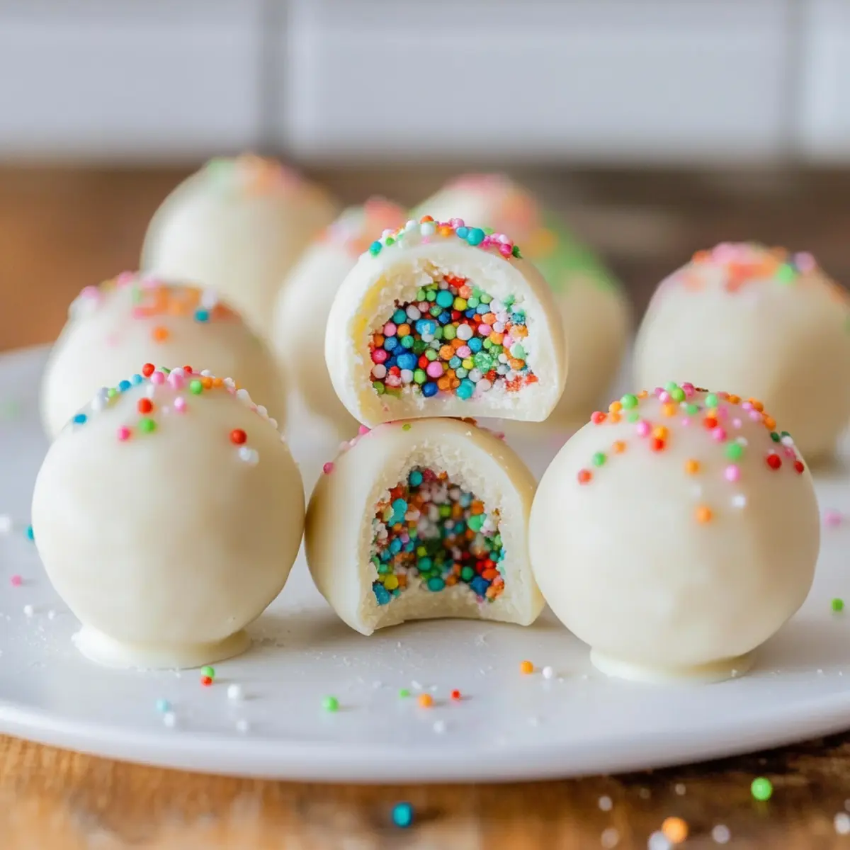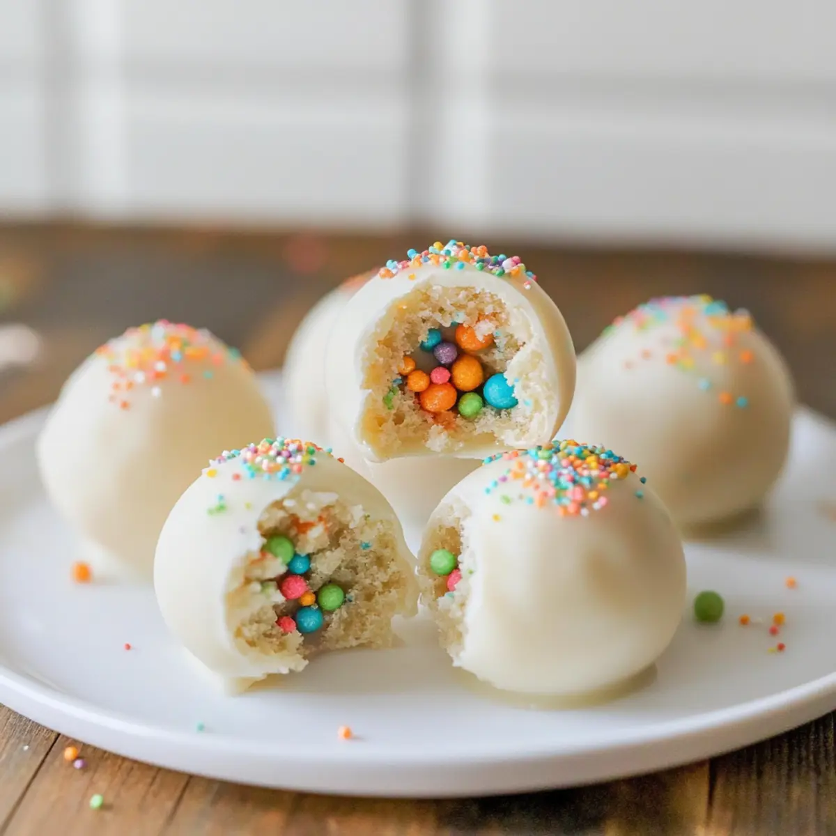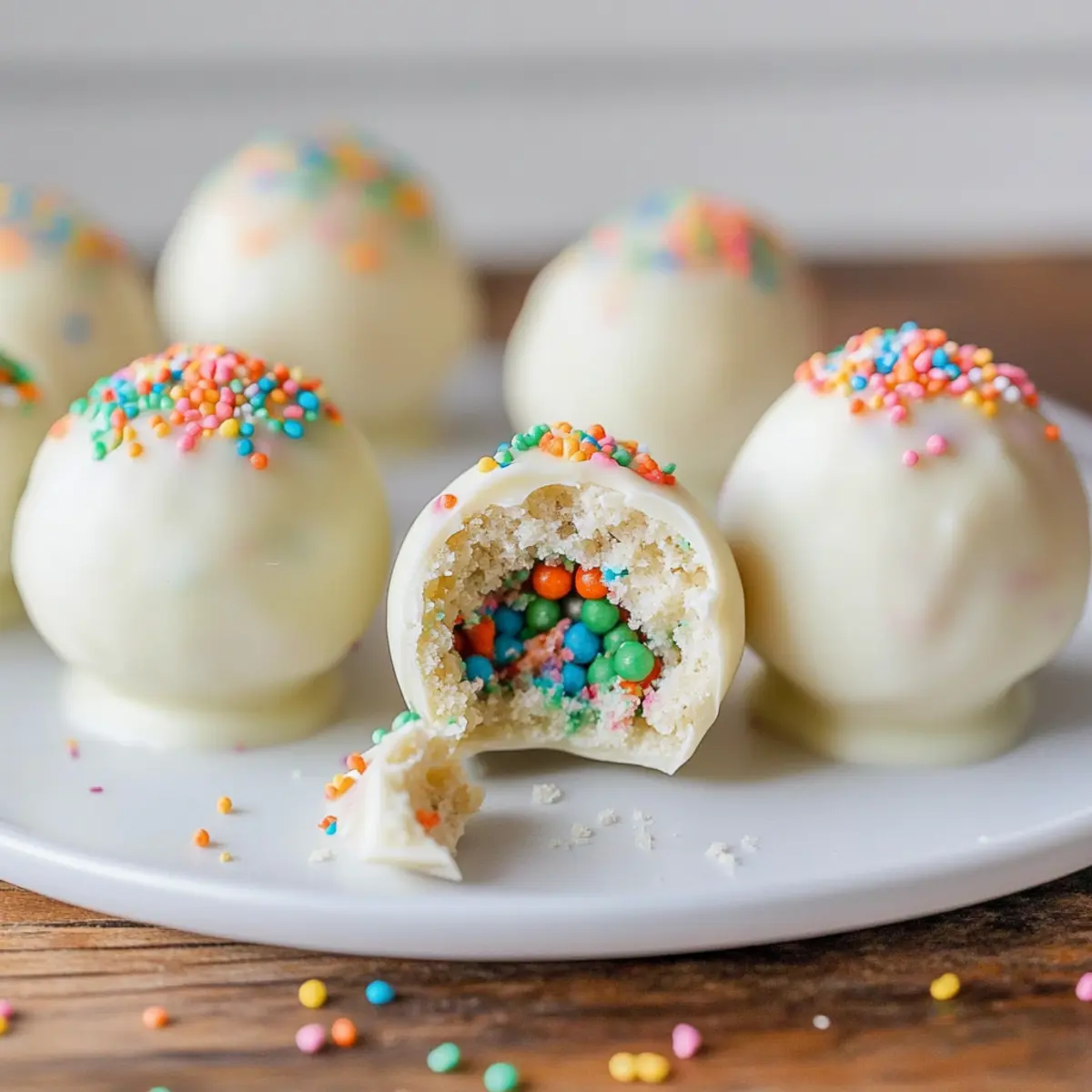 Carefully dip each cake ball in the melted white chocolate, ensuring it’s fully coated. Allow any excess chocolate to drip off before placing the bon bons on a parchment-lined baking sheet. As a fun finishing touch, sprinkle a few extra Pop Rocks over the tops while the chocolate is still wet, adding an extra layer of magic.