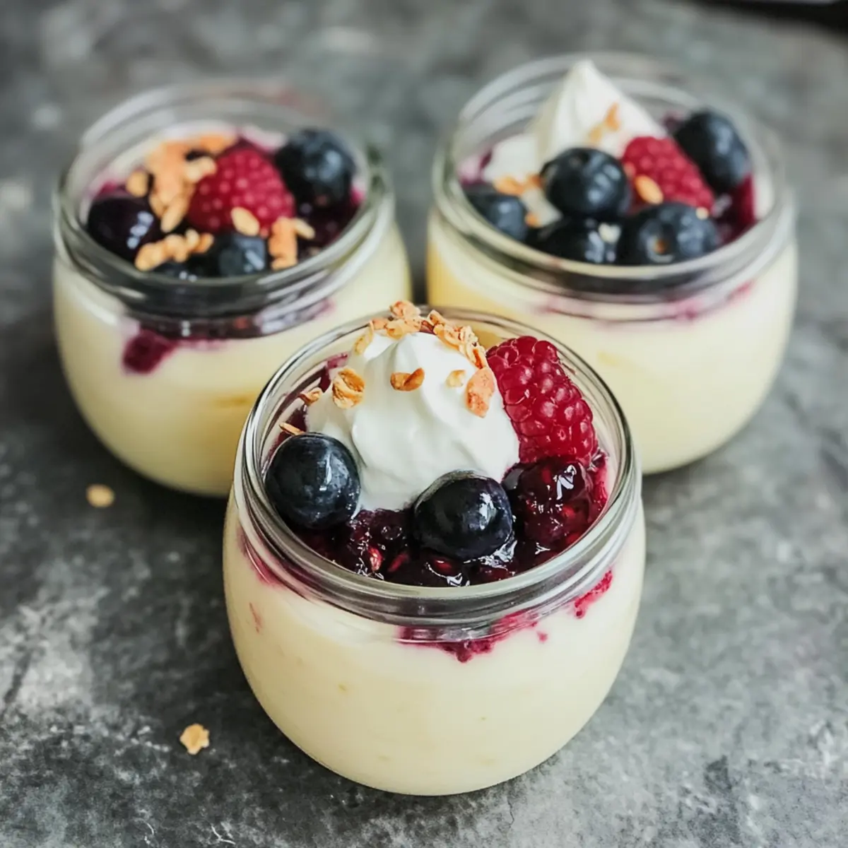 As I stood in my kitchen, the clock ticking away on a busy evening, I craved something sweet yet nourishing. That’s when the idea for my High Protein Vanilla Pudding sparked to life—a delightful treat that’s not just quick to whip up but also a protein powerhouse! In just 5 minutes, this creamy concoction becomes your go-to snack or dessert, bringing over 16 grams of protein to the table, ensuring you can indulge without the guilt. Plus, its customizable nature lets you switch up toppings or tweak ingredients to suit your taste, making it perfect for the whimsical home-chef in all of us. Ready to transform your sweet desires into something truly wholesome? Let’s dive into the delicious world of high protein vanilla pudding! Why is this pudding a must-try? Simplicity, a delightful dish ready in just 5 minutes, making it perfect for busy schedules. Customization is key—mix and match toppings to suit any craving, whether you prefer berries, nuts, or a drizzle of chocolate. Nutrition is paramount as it packs over 16 grams of protein per serving, bolstering your healthy snacking goals. Texture variety keeps things interesting, from creamy bases to crunchy toppings. Whether as a midday pick-me-up or a light dessert, this High Protein Vanilla Pudding is sure to please everyone—just like my Breakfast Protein Biscuits or Vanilla Bean Brown to complement your protein-packed meal plan! High Protein Vanilla Pudding Ingredients Transform your snacking with this High Protein Vanilla Pudding! For the Pudding Base Vanilla Greek Yogurt – The creamy base of your pudding; swap for high-protein plant-based yogurt if desired. Instant Vanilla Pudding Mix – Acts as a thickening agent while enhancing that delightful vanilla flavor. Vanilla Protein Powder – Boosts the protein content; feel free to choose a flavored or unflavored version based on your preference. Water or Milk – Adjust the pudding’s consistency; it’s optional for a lighter texture. Vanilla Extract – A simple yet powerful addition to enrich the overall flavor profile. For Toppings Frozen Mixed Berries – Adds freshness and a sweet-tart balance to your pudding; try warming them for enhanced flavor. Whipped Cream – For a delightful finishing touch; opt for light or dairy-free versions based on your diet preferences. Nuts – Provides a crunchy contrast—choose your favorite, such as almonds or walnuts, for added texture. Mini Chocolate Chips – A sweet treat that adds a lovely hint of chocolate to every spoonful! Elevate your dessert game with these simple yet effective ingredients, all coming together to create a deliciously indulgent yet healthy treat! Step‑by‑Step Instructions for High Protein Vanilla Pudding Step 1: Mix the Base Ingredients In a mixing bowl, combine 1 cup of vanilla Greek yogurt, 1 scoop of vanilla protein powder, and 1 packet of instant vanilla pudding mix. If you’d like a richer flavor, add a splash of vanilla extract. Optionally, pour in ¼ cup of water or milk to adjust the consistency. Use a whisk to blend everything together until the mixture is smooth, creamy, and free of lumps, which should take about 1-2 minutes. Step 2: Distribute into Servings Once your pudding base is thoroughly mixed, take out 4 mini cups or 2 larger serving bowls. Carefully spoon the creamy high protein vanilla pudding into each cup, ensuring an even distribution. As you fill them, let the delightful mixture flow gently, creating a beautiful layered effect if desired. This process should take another 2-3 minutes, depending on how quickly you work. Step 3: Add Your Favorite Toppings After distributing the pudding, it’s time to add your favorite toppings to create a personalized treat! Consider using thawed frozen mixed berries for a pop of color and flavor, a dollop of whipped cream for added indulgence, or a sprinkle of nuts for crunch. Take about 1-2 minutes to choose and arrange your toppings for aesthetic appeal, enhancing the overall experience of your High Protein Vanilla Pudding. Step 4: Chill Before Serving To ensure your pudding is nice and refreshing, cover the cups with plastic wrap or lids and place them in the refrigerator. Let them chill for about 30 minutes, allowing the flavors to meld together and achieving the perfect cool temperature. This step is essential for enhancing the taste and enjoying your luscious high protein vanilla pudding at its best! Step 5: Enjoy and Store Once chilled, your High Protein Vanilla Pudding is ready to serve! Enjoy it cold as a satisfying snack or light dessert. If you have leftovers, store the pudding in an airtight container in the refrigerator for up to 5 days. This way, you can indulge in this creamy, protein-packed treat whenever the sweet cravings strike! Expert Tips for High Protein Vanilla Pudding Perfect Consistency: Start with chilled ingredients to achieve a smoother mix; warm dairy can create a lumpy texture. Balance Sweetness: Use instant vanilla pudding mix as a base, but taste before adding more sweeteners; too much can overwhelm the flavors. Blend Well: Whisk thoroughly until no lumps remain; a smooth texture is crucial for the creaminess of your high protein vanilla pudding. Timing Matters: For the best taste, let the pudding chill before serving; this allows the flavors to meld beautifully. Storage Secrets: Keep in an airtight container for up to 5 days to maintain freshness and prevent the pudding from becoming watery. How to Store and Freeze High Protein Vanilla Pudding Fridge: Store your pudding in an airtight container in the refrigerator for up to 5 days to keep it fresh and creamy. Freezer: It’s best not to freeze this high protein vanilla pudding, as freezing can alter the texture and lead to a grainy consistency upon thawing. Reheating: If you’ve added frozen toppings, lightly warm them in the microwave for a few seconds to enhance their flavor and texture before serving. Make Ahead: Feel free to prepare the pudding in advance for mea