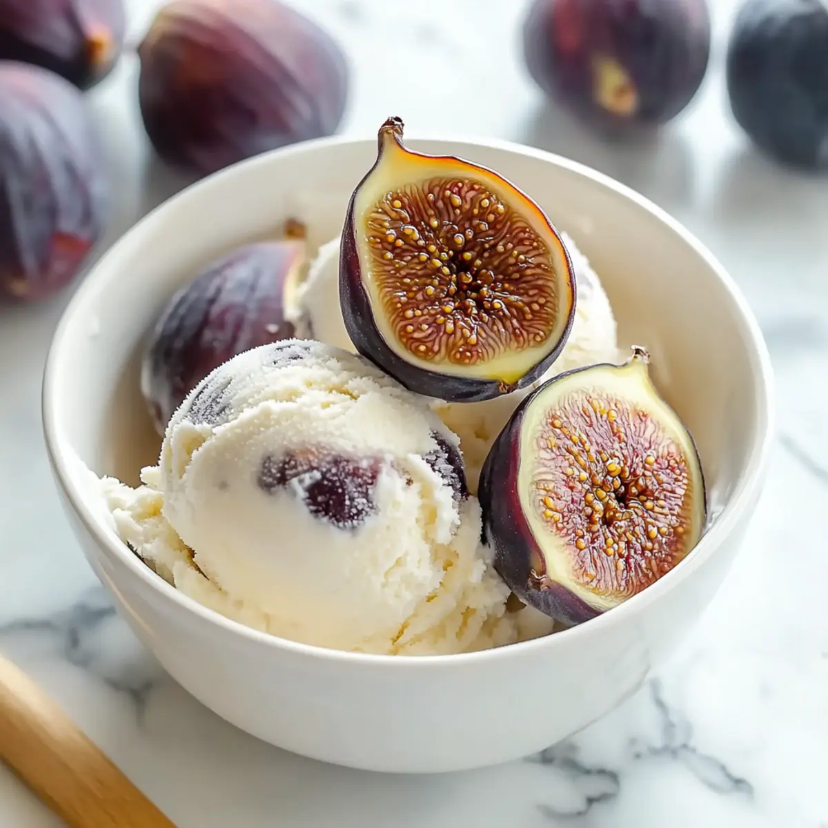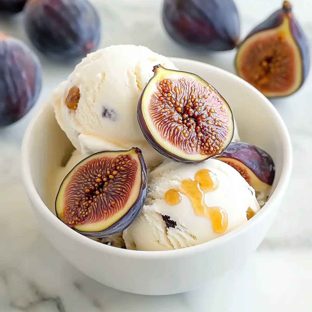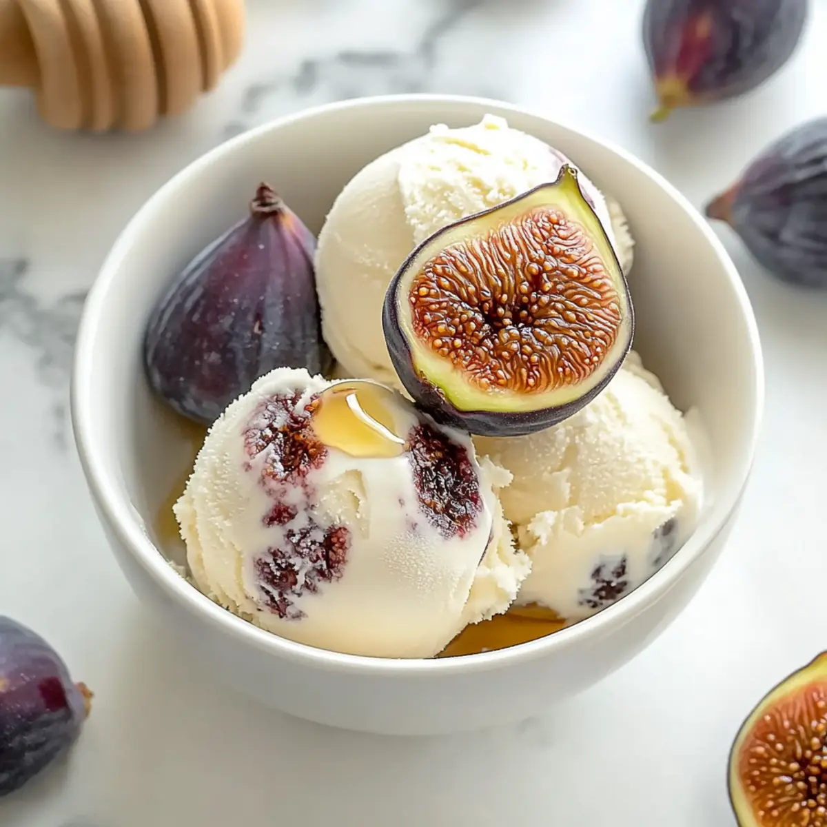 Summer evenings call for something special, don’t you think? This Honey-Drizzled Fig and Ricotta Ice Cream is my secret weapon for impressing guests while keeping things effortlessly relaxed. With just a few simple ingredients, you’ll float between layers of sweet, roasted figs and creamy ricotta for a refreshing no-bake dessert that shines on any dinner table. The best part? It’s surprisingly easy to whip up, making it a perfect choice for those lazy, sun-soaked afternoons or spontaneous gatherings. As you savor the luscious, unique flavor, I promise you’ll hear the delightful “wow!” chorus from your friends. Ready to bring a taste of summer to your home? Let’s dive in! Why is this dessert a summer essential? Unique Flavor Combination: The blend of sweet figs and creamy ricotta creates a taste that is both refreshing and indulgent—perfect for hot summer days. Effortless Elegance: With minimal ingredients and no baking required, this recipe allows you to impress effortlessly, ensuring that your dessert makes a statement at any gathering. Versatile Serving Options: Serve it on toasted pound cake or sandwich it between ginger cookies for an unexpected twist that tantalizes the taste buds. Cool Treat for Lazy Days: This ice cream feels luxurious while being incredibly easy to whip up, making it ideal for relaxed afternoons. Crowd-Pleasing Appeal: Everyone will be reaching for seconds, as this unique dessert is sure to leave your guests raving about it long after the last scoop. Honey-Drizzled Fig and Ricotta Ice Cream Ingredients • Elevate your summer desserts with this unique ice cream! For the Roasted Figs Fresh Figs – Select sweet Mission figs for the best flavor; if unavailable, use rehydrated dried figs. Unsalted Butter – Adds a rich depth to the figs; coconut oil serves as a great dairy-free alternative. Honey – This sweetener complements the figs; consider experimenting with different varieties for added flavor. Sea Salt – A pinch is all that’s needed to enhance the overall sweetness of the figs. For the Ice Cream Base Ricotta Cheese – Creamy and delicious, but make sure it’s well-strained for a silky texture. Heavy Cream – Use cold heavy cream for a richer, creamier ice cream experience. Honey – Incorporating honey in the base gives the ice cream a luscious sweetness; feel free to adjust to taste. With these ingredients, your Honey-Drizzled Fig and Ricotta Ice Cream will be the star of your summer dessert lineup! Step‑by‑Step Instructions for Honey-Drizzled Fig and Ricotta Ice Cream Step 1: Prepare the Figs Preheat your oven to 450°F (232°C) to create a caramelized flavor. Clean the fresh figs by rinsing them gently and trimming the stems. Carefully halve the figs while keeping the bases intact for a beautiful presentation, then arrange them upright in a skillet. Melt the unsalted butter and honey together with a pinch of sea salt; drizzle this mixture generously over the figs before placing them in the oven for about 10 minutes, until they become tender and start to caramelize. Step 2: Prepare the Ice Cream Base While the figs are roasting, focus on making the ice cream base for the Honey-Drizzled Fig and Ricotta Ice Cream. Strain the ricotta cheese through a fine-mesh sieve into a large bowl, ensuring it’s smooth and free of lumps. Then, whisk in the heavy cream and honey until fully combined and silky. Cover the bowl with plastic wrap and chill the mixture in the refrigerator for at least 4 hours or overnight for the best flavor and texture. Step 3: Churn the Ice Cream Once your ice cream base has chilled, it’s time to churn! Pour the well-blended mixture into your ice cream maker, ensuring that it’s set according to the manufacturer’s instructions. Churn until the consistency becomes creamy and thick, usually about 20-30 minutes. Keep an eye on it; once it resembles soft-serve ice cream, it’s ready to be transferred to storage. Step 4: Freeze To ensure your Honey-Drizzled Fig and Ricotta Ice Cream retains its creamy texture, transfer the churned ice cream into an airtight container. Press a layer of plastic wrap directly onto the surface to prevent ice crystals from forming. Seal the container tightly and freeze for at least 4 hours to solidify, but it can be stored for up to 2 months, ready for your next summer gathering. Make Ahead Options These Honey-Drizzled Fig and Ricotta Ice Cream treats are perfect for meal prep, allowing you to enjoy a refreshing dessert with minimal last-minute effort! You can roast the figs and prepare the ice cream base up to 24 hours in advance, giving the flavors ample time to meld. Simply roast the figs, cool them, and then store them in an airtight container in the refrigerator. For the ice cream base, whisk together the strained ricotta, heavy cream, and honey, then refrigerate the mixture overnight to ensure a silky texture. When you’re ready to serve, churn the mixture in the ice cream maker as usual. By prepping ahead, you’ll have a luscious dessert waiting in your freezer, offering an easy way to indulge on a busy day! What to Serve with Honey-Drizzled Fig and Ricotta Ice Cream Indulging in creamy, honey-drizzled fig and ricotta ice cream opens the door to a delightful summer spread that tantalizes the taste buds. Toasted Pound Cake: The subtle sweetness and texture of pound cake provide a delightful base for this luscious ice cream, enhancing its flavors. Ginger Cookies: These spicy cookies offer a warm contrast to the cool, creamy dessert and add a lovely crunch that complements each bite. Fresh Berries: A mix of raspberries or strawberries brings a tart contrast to the sweet figs, creating a refreshing touch for your palette. Mint Leaves: Garnishing with fresh mint adds a burst of color and a refreshing aroma that enhances the overall experience. Chopped Pistachios: The nutty crunch balances the silky texture of the ice cream, while their vibrant color adds visual appeal to each serv