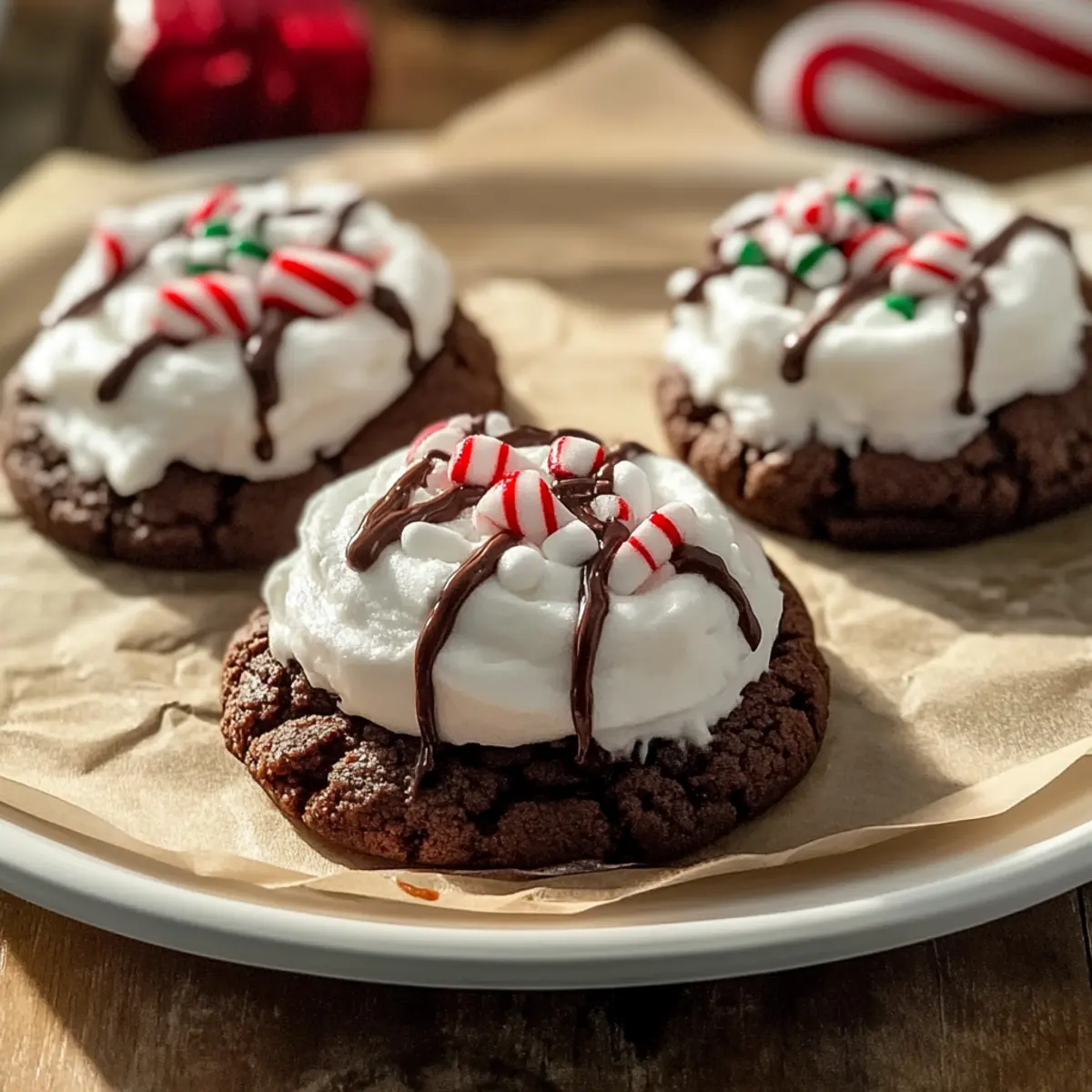 Every holiday season brings the comforting scent of baking, doesn’t it? The joy of creating something warm and delightful in the kitchen is truly unmatched. This year, I’m thrilled to share my recipe for Hot Cocoa Cookies with Marshmallow Frosting, a sweet nod to winter’s favorite drink. These cookies are not only a quick and easy treat to whip up, but they also provide a nostalgic moment with each soft, chewy bite, making them perfect for gatherings or cozy nights in. The rich chocolate flavor paired with a dreamy marshmallow frosting will have your loved ones craving seconds! Whether you’re looking to spread some cheer or just indulge a little, these cookies are sure to warm your heart. Are you ready to dive into this delightful baking adventure? Why are Hot Cocoa Cookies Irresistible? Irresistible, Comforting Flavor: Each bite delivers the warmth of hot cocoa, making them a winter favorite. Quick and Easy: You’ll love how these cookies come together in no time, perfect for last-minute gatherings or cozy nights. Visually Stunning: Topped with fluffy marshmallow frosting, they’re as beautiful as they are delicious—ideal for sharing or gifting! Customizable Delight: Feel free to personalize them, whether it’s adding your favorite chocolate chips or experimenting with homemade frosting. Enjoy with a warm cup of hot chocolate or alongside other festive treats, like Vanilla Waffle Cookies! Family-Friendly Fun: Baking these cookies is a fantastic way to gather the loved ones, creating sweet memories in the kitchen. Hot Cocoa Cookies Ingredients • The magic begins with these essential ingredients! For the Cookies Unsalted Butter (1 cup / 2 sticks) – Adds richness and moisture; can be substituted with margarine or dairy-free butter for a suitable alternative. Brown Sugar (1 cup, packed) – Provides sweetness and a deep caramel flavor; coconut sugar can be used for a milder sweetness. Granulated Sugar (½ cup) – Balances sweetness with texture; reduce if using sweetened cocoa. Large Eggs (2) – Essential for binding and moisture; opt for flax eggs for a vegan-friendly version. Pure Vanilla Extract (2 teaspoons) – Enhances flavor; feel free to use any extract that strikes your fancy. All-purpose Flour (1 ¾ cups) – Provides structure to the cookies; use a gluten-free blend for a gluten-free option. Unsweetened Cocoa Powder (¾ cup, Dutch-processed preferred) – This is the key flavor ingredient; using natural cocoa may alter the taste slightly. Baking Soda (1 teaspoon) – A leavening agent that ensures softness; make sure it’s fresh for the best results. Salt (½ teaspoon) – Balances sweetness and enhances all flavors in the cookies. Semi-sweet Chocolate Chips (1 cup) – Adds delightful pockets of melted chocolate; swap for dark chocolate for an even richer bite. Mini Marshmallows (½ cup, optional) – Mix them into the dough for added texture; regular-sized marshmallows can be used as well. For the Marshmallow Frosting Unsalted Butter (½ cup) – Serves as the base for frosting; substitute with dairy-free butter if desired. Marshmallow Creme or Fluff (1 jar, 7 oz) – Gives the frosting its signature marshmallow flavor and fluffiness; homemade variations add a special touch. Powdered Sugar (1 cup) – Sweetens and thickens the frosting; reduce for a less sweet outcome. Pure Vanilla Extract (1 teaspoon) – Enhances taste; flavored extracts can also be a fun twist. Heavy Cream (1 tablespoon, optional) – Adjusts the frosting’s consistency; non-dairy milk works too if needed. These Hot Cocoa Cookies with Marshmallow Frosting are a true winter delight, bursting with flavor and oh-so-fun to make! Step‑by‑Step Instructions for Hot Cocoa Cookies with Marshmallow Frosting Step 1: Preheat and Prepare Begin by preheating your oven to 350°F (175°C) and line two baking sheets with parchment paper. This step ensures an even baking surface, preventing cookies from sticking. While the oven warms, set up your mixing area with a large mixing bowl and an electric mixer ready for whisking together the butter and sugars. Step 2: Cream the Butters and Sugars In your large bowl, combine 1 cup of softened unsalted butter, 1 cup of packed brown sugar, and ½ cup of granulated sugar. Beat these ingredients together on medium speed for about 2-3 minutes until the mixture is light, fluffy, and creamy. This aeration step is crucial for achieving the delightful texture of your Hot Cocoa Cookies. Step 3: Incorporate the Eggs and Vanilla Next, add 2 large eggs to the creamed mixture, one at a time, ensuring each is fully incorporated before adding the next. Follow with 2 teaspoons of pure vanilla extract, mixing until fully combined. This blend of ingredients adds structure and flavor, setting the base for your cookies. Step 4: Mix the Dry Ingredients In a separate bowl, whisk together 1 ¾ cups of all-purpose flour, ¾ cup of unsweetened cocoa powder, 1 teaspoon of baking soda, and ½ teaspoon of salt. This dry mixture is key for the perfect chewy texture. The cocoa powder will contribute to the rich chocolate flavor of your Hot Cocoa Cookies. Step 5: Combine Wet and Dry Ingredients Gradually add the dry ingredients to the wet mixture, mixing on low speed until just combined. Be careful not to overmix, as this can lead to tougher cookies. Once incorporated, gently fold in 1 cup of semi-sweet chocolate chips and, if you’d like, ½ cup of mini marshmallows for extra texture and flavor. Step 6: Scoop and Chill the Dough Using a cookie scoop or measuring spoon, drop 1 ½-tablespoon portions of dough onto your prepared baking sheets, leaving space between each scoop. For thicker cookies, you can chill the dough in the refrigerator for 30 minutes. This step helps prevent excessive spreading during baking, ensuring a nice shape. Step 7: Bake the Cookies Place the baking sheets in your preheated oven and bake for 9-10 minutes. You want the edges to be set while the centers remain sli