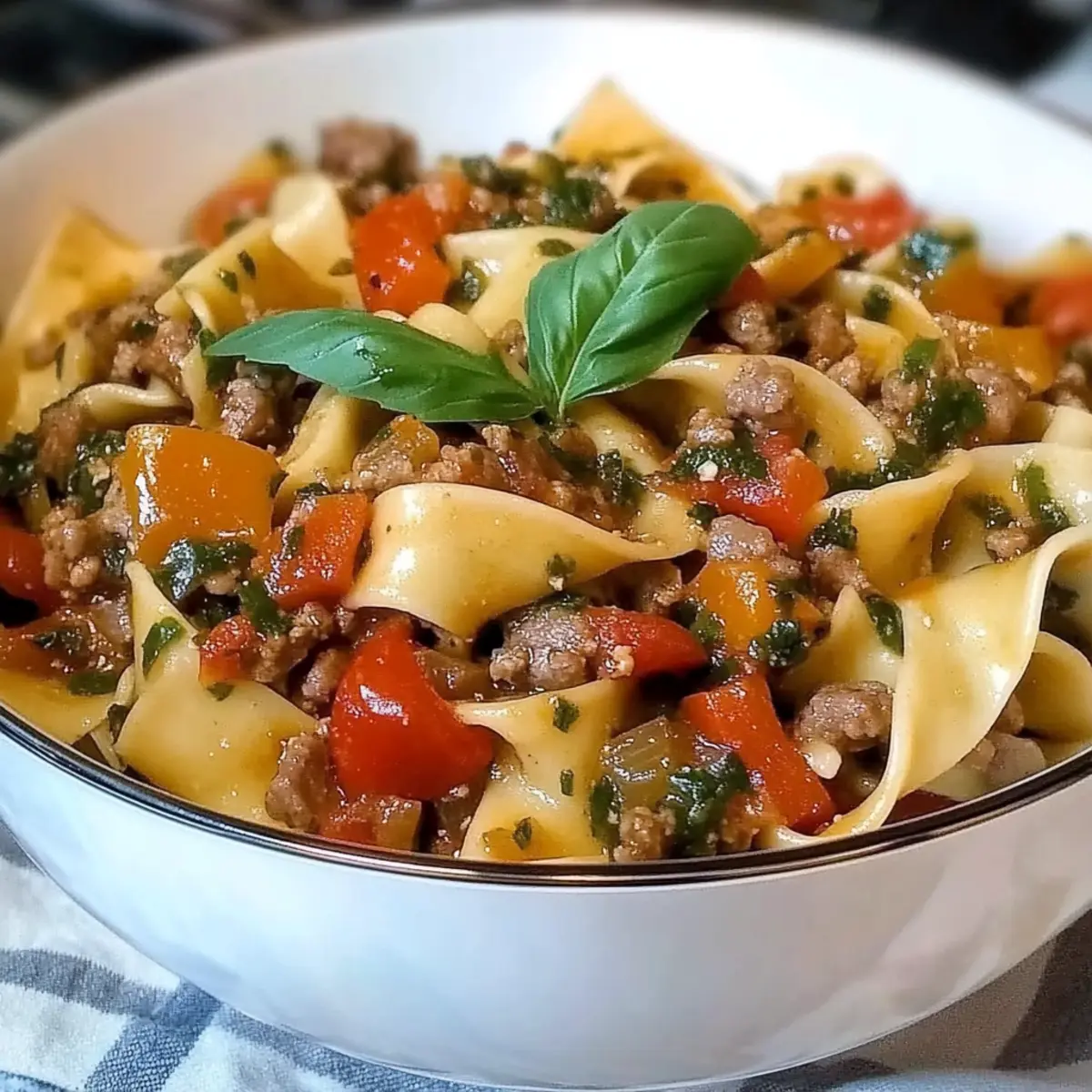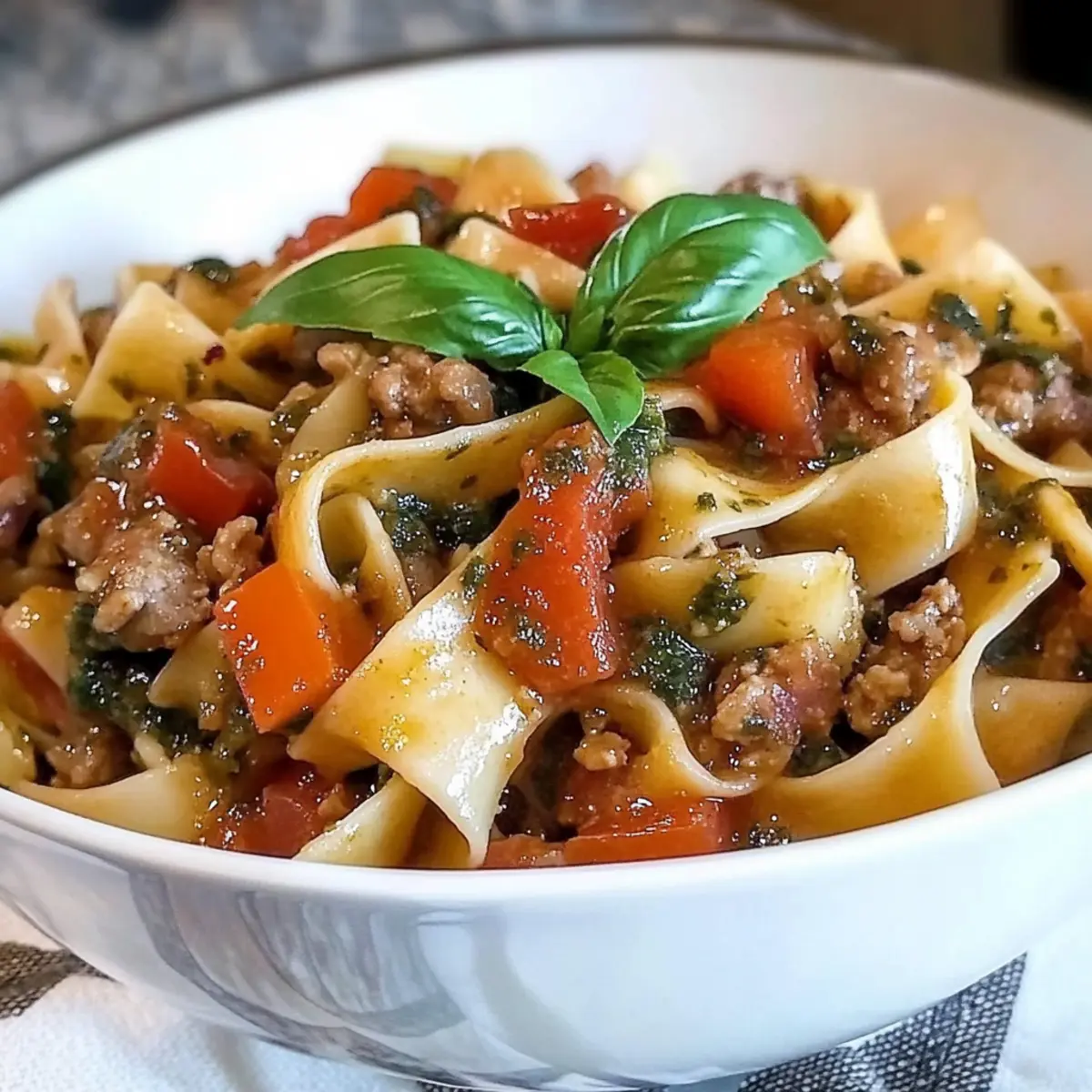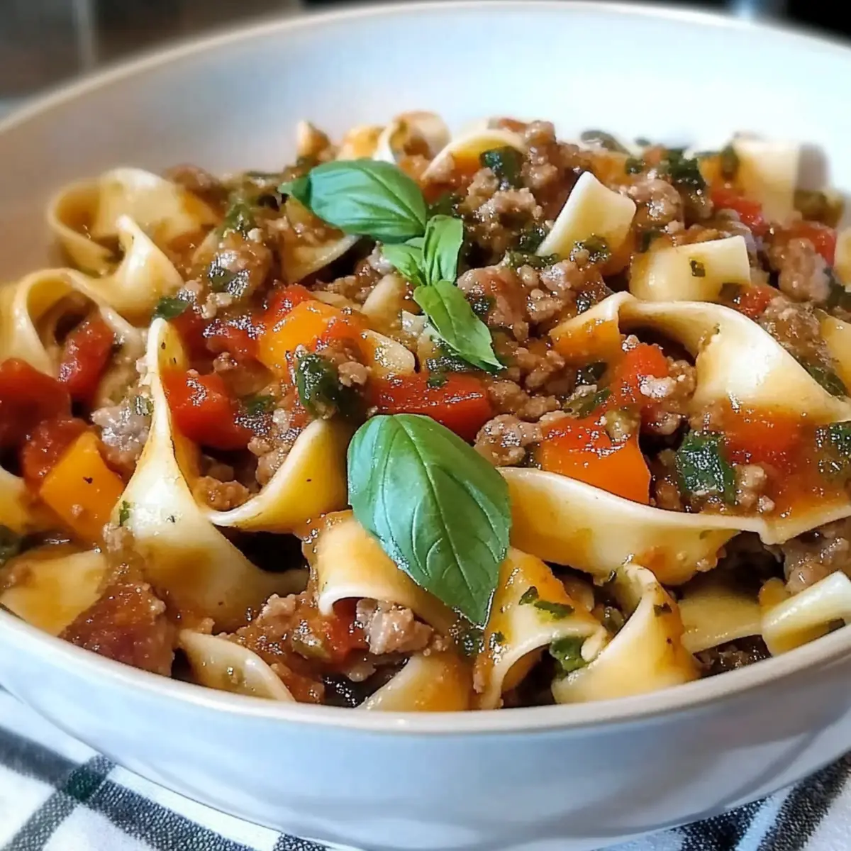 Did you know that sometimes the most delightful dishes come from unexpected pairings? Enter my Italian Drunken Noodles – a bold and spicy pasta recipe that takes you on a culinary adventure from Italy to Thailand. This dish features hearty Italian sausage, vibrant bell peppers, and wide pappardelle noodles, all wrapped up in a distinctive sauce infused with garlic and fresh herbs. Not only is it a comforting and satisfying meal for those busy weeknights, but it’s also easily customizable to suit your favorite proteins or vegetables. If you’re tired of the same old takeout routine, this recipe invites you to explore the best of both culinary worlds right from your kitchen. Curious about how to whip up this flavor-packed fusion dish? Let’s dive in! Why Are These Noodles So Irresistible? Bold flavor: Each bite of Italian Drunken Noodles is packed with a delicious punch of herbs and spices that takes your taste buds on a thrilling journey. Quick and easy: Whip up this stunning dish in just 30 minutes, making it perfect for those hectic weeknights. Customizable options: You can easily switch up proteins, like using Butter Chicken or vegetarian sausage, to fit your dietary needs. Comforting yet unique: It’s the ideal marriage of traditional Italian pasta and lively Thai cuisine, offering the best of both worlds. Crowd-pleaser: With its colorful presentation, this dish is sure to impress family and friends at your next dinner gathering. So, if you’re craving a dish that defies convention and excites the palate, Italian Drunken Noodles are the ultimate choice! Italian Drunken Noodles Ingredients • Get ready to create a meal that’s bursting with flavor! For the Pasta Pappardelle or Fettuccine – Choose wide noodles for a satisfying texture; you can use gluten-free pasta if needed. For the Protein Italian Turkey Sausage – This adds richness and protein; feel free to swap it for pork, chicken, or a plant-based sausage. For the Base Olive Oil – Essential for sautéing, it enhances the overall flavor; use less for a lighter option. Onion – A flavor foundation; yellow onions work best, but red onions can be a great alternative. Garlic – For aromatic depth; freshly minced garlic will elevate the taste. For the Veggies Bell Peppers (Red, Yellow, Orange) – They add a sweet crunch; zucchini can be a colorful replacement. Diced Tomatoes (Canned) – They add acidity and body to the sauce; fresh tomatoes are great if in season. For the Sauce White Grape Juice (or Dry White Wine) – It deglazes the pan and adds a hint of sweetness; chicken broth can substitute for a non-alcoholic option. Low-Sodium Chicken Broth – Enhances the sauce’s flavor without extra salt; vegetable broth is ideal for a vegetarian version. Red Pepper Flakes – A mild kick to the dish; adjust according to your spice preference. Italian Seasoning – Infuses the dish with authentic Italian flavors; use fresh herbs if available for even more taste. Salt & Black Pepper – Essential for seasoning; adjust to your liking. For the Finish Fresh Basil – Adds a burst of freshness; dried basil is a fine alternative if needed. Grated Parmesan Cheese – For that creamy, umami finish; nutritional yeast can be substituted for a dairy-free version. These Italian Drunken Noodles will take your taste buds on an exciting journey—let’s start cooking! Step‑by‑Step Instructions for Italian Drunken Noodles Bold & Spicy Pasta Recipe Step 1: Boil the Pasta Start by bringing a large pot of salted water to a rolling boil over high heat. Add your wide pappardelle or fettuccine noodles, cooking until al dente—about 8–10 minutes. Reserve ½ cup of the starchy pasta water, then drain the noodles and set aside. This step is crucial for achieving the perfect texture in your Italian Drunken Noodles. Step 2: Cook the Sausage In a large skillet, heat 2 tablespoons of olive oil over medium-high heat until shimmering. Add the Italian turkey sausage, breaking it into bite-sized pieces as it cooks. Sauté for about 6–8 minutes or until the sausage is beautifully browned and cooked through. Remove the sausage from the skillet and set it aside, leaving the flavorful drippings in the pan. Step 3: Sauté Vegetables In the same skillet, add the sliced yellow onion and bell peppers, stirring frequently for 5–6 minutes until they soften and become fragrant. Next, toss in 3 minced garlic cloves and a pinch of red pepper flakes, cooking for an additional 30 seconds. The vegetables should be vibrant and tender, forming the colorful base for your Italian Drunken Noodles. Step 4: Deglaze and Build Sauce Pour in ½ cup of white grape juice or dry white wine, scraping up any browned bits from the skillet for added flavor. Let it simmer for 2–3 minutes, allowing the alcohol to evaporate, then stir in 1 cup of low-sodium chicken broth, 1 can of diced tomatoes, and the Italian seasoning. Bring the sauce to a gentle boil, seasoning with salt and black pepper to taste. Step 5: Combine Sauce and Noodles Return the cooked sausage to the skillet, letting it mingle with the sauce. Reduce the heat to low and let everything simmer for about 8–10 minutes—this allows the flavors to meld beautifully. Add the drained noodles to the pan, tossing everything together while incorporating a bit of the reserved pasta water if the sauce needs thinning. Step 6: Finish and Serve Once the pasta is well-coated and heated through, stir in a handful of fresh basil to brighten the dish. Serve your Italian Drunken Noodles hot, garnished generously with grated Parmesan cheese for a creamy finish. This dish embodies the delightful fusion of flavors that promises to be a crowd-pleaser. What to Serve with Italian Drunken Noodles Bring your mealtime to life with delicious sides that perfectly complement this vibrant dish. Garlic Bread: Toasty and buttery, it’s the ideal vessel for scooping up any remaining sauce, enhancing your dining experience. Caprese Salad: Fre