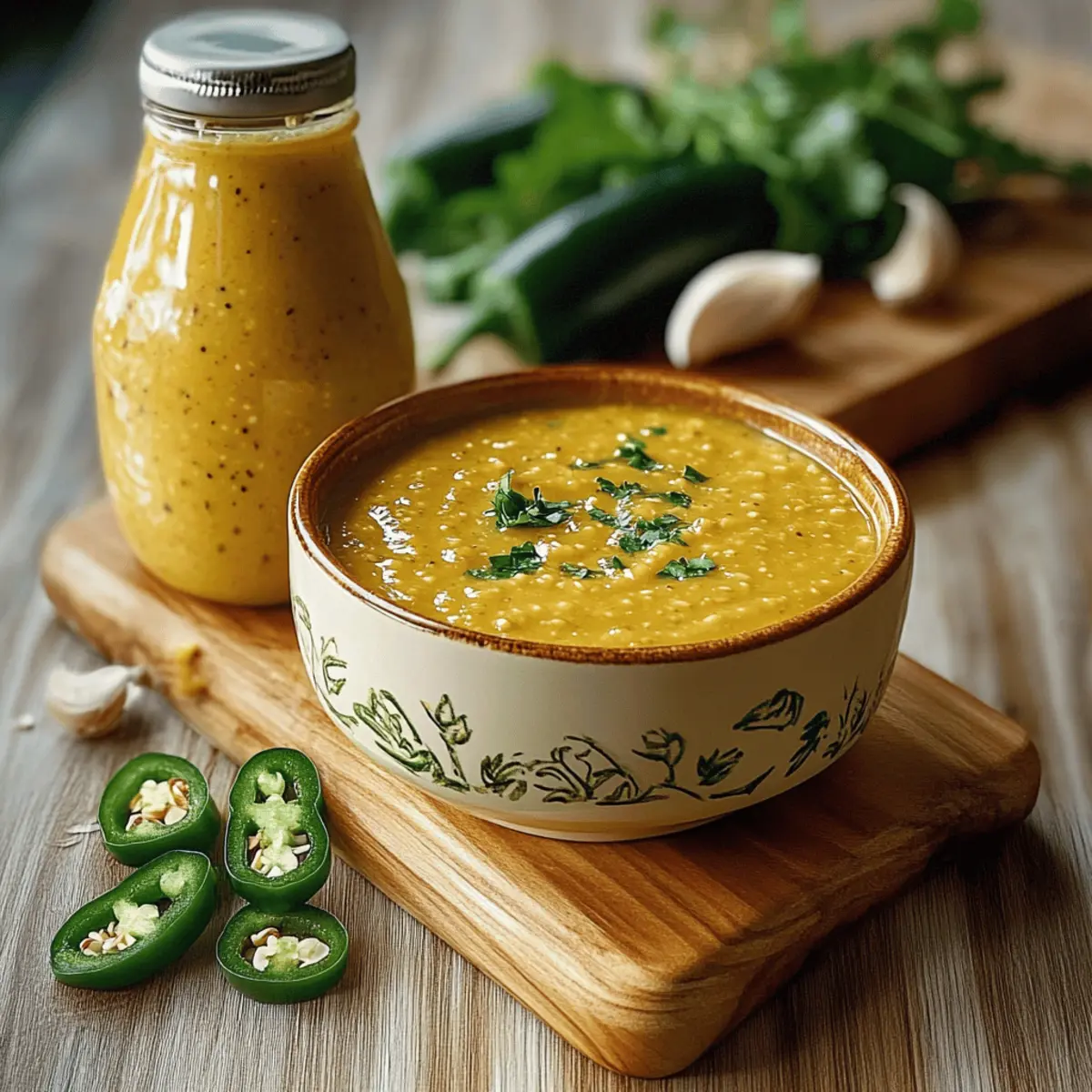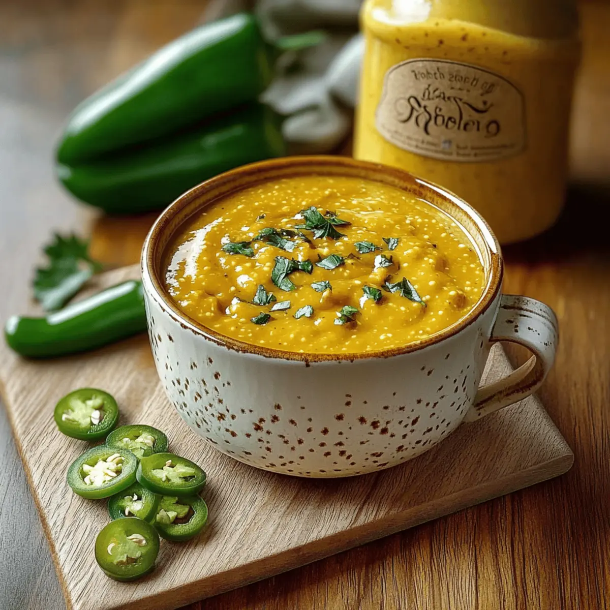 As I opened the fridge, a jar of Dijon mustard caught my eye, sparking a craving for something bold yet sweet. That’s when I thought about creating a Jalapeno Honey Mustard Sauce—a tantalizing blend that’s as versatile as it is delicious. This sauce brings the best of both worlds: the comforting sweetness of honey perfectly balanced with the spicy kick of jalapenos, making it an ideal companion for dipping, glazing, or dressing up your favorite dishes. It’s incredibly easy to whip up, and you can tweak the heat levels to suit your taste, ensuring every bite is just right. Ready to transform your meals with this delightful condiment? Let’s dive in and explore how to bring this flavor explosion to your kitchen! Why is Jalapeno Honey Mustard Sauce Amazing? Versatility at Its Finest: This sauce is not just an accompaniment; it’s a game-changer! Use it for dipping chicken tenders or as a glaze for grilled meats; it elevates any dish. Customize Your Heat: Whether you crave a mild flavor or a spicy kick, you control the heat with adjustable jalapeno amounts. Quick and Simple: With just a few ingredients, you can whip up this flavorful sauce in minutes—perfect for quick weeknight dinners or weekend gatherings. Natural Ingredients Only: Made without artificial preservatives, you can feel good about what you’re serving. If you enjoy experimenting with flavors, add herbs like dill for a fresh twist! For another delicious side, check out my Honey Butter Cornbread for something equally satisfying. Jalapeno Honey Mustard Sauce Ingredients For the Base • Mayonnaise – Provides creaminess and a subtle base flavor; substitute with vegan mayonnaise for a plant-based option. • Dijon Mustard – Adds tanginess and depth of flavor; using yellow mustard offers a milder taste. • Honey – Sweetens the sauce and balances the heat; local honey is preferred for flavor, or swap with maple syrup for a vegan alternative. For the Heat • Jalapenos – Introduces heat and flavor depth; use 1-2 jalapenos, adjusting the seeds for desired spiciness. • Smoked Paprika – Offers a smoky depth; regular paprika can be used for a milder flavor. • Cayenne Pepper (optional) – Increases heat level; omit for a milder version if preferred. For Flavor Balance • Apple Cider Vinegar – Provides acidity to enhance flavor balance; can substitute with white vinegar or lemon juice. • Garlic Powder – Adds savory flavor; fresh minced garlic is a great alternative for an extra kick. • Onion Powder – Enhances overall flavor profile; consider fresh onion if you want a bolder taste, though it will alter texture. • Salt and Black Pepper – Season to taste for complete flavor enhancement; adjust according to your meal. This Jalapeno Honey Mustard Sauce is not just a condiment; it’s an experience in a bottle! Enjoy it different ways to uplift your meals. Step‑by‑Step Instructions for Jalapeno Honey Mustard Sauce Step 1: Combine Base Ingredients In a medium mixing bowl, add 1 cup of mayonnaise, 2 tablespoons of Dijon mustard, and 2 tablespoons of honey. Using a spatula or whisk, blend these ingredients together until they form a creamy and smooth mixture, about 1-2 minutes. Step 2: Add Heat Components Finely chop 1-2 jalapenos, removing seeds for less heat if desired, then fold them into the mayo mixture along with 1 tablespoon of apple cider vinegar and 1 teaspoon of smoked paprika. Stir vigorously for another minute, ensuring the jalapenos are well distributed and the sauce takes on a vibrant yellow-green hue. Step 3: Introduce Flavor Enhancers Sprinkle in ½ teaspoon each of garlic powder and onion powder, along with a pinch of cayenne pepper if you want an extra kick. Mix these spices into the sauce for about 1 minute, tasting as you go to adjust flavors based on your preference for sweetness or spiciness. Step 4: Final Seasoning Adjustment Once mixed, take a moment to taste your Jalapeno Honey Mustard Sauce. Adjust the seasoning by adding salt and black pepper to your liking. If you want more heat, incorporate additional minced jalapenos, and mix until evenly blended; this step enhances your sauce’s flavor depth with each bite. Step 5: Chill for Flavor Development Transfer your sauce into an airtight container, sealing it tightly. Refrigerate for at least 30 minutes, allowing the flavors to meld and deepen. The sauce will also thicken slightly, creating an irresistible dipping or glazing condiment perfect for various dishes. Step 6: Serve and Enjoy After chilling, remove the Jalapeno Honey Mustard Sauce from the fridge and give it a good stir. Serve it alongside chicken tenders, fries, or use it as a glaze for grilled meats, enhancing your meals with its sweet and spicy flavors. What to Serve with Jalapeno Honey Mustard Sauce Delighting your senses is easy when you pair this vibrant sauce with the perfect accompaniments that enhance its sweet and spicy character. Crispy Chicken Tenders: The juicy, tender chicken paired with this sauce creates a mouthwatering contrast between crunch and creamy sweetness. Grilled Veggies: Add color and health to your plate! Charred bell peppers and zucchini provide a delightful texture, making each bite refreshing. Sweet Potato Fries: Their natural sweetness complements the spicy kick of the sauce, creating a satisfying balance of flavors that is irresistible. Grilled Sausages: Whether spicy or mild, sausages benefit from the sauce’s punchy flavors, elevating your barbecue game and satisfying savory cravings. Salad Dressing: Transform your garden salad by drizzling this sauce over fresh greens, adding a sweet-spicy zing that brings the dish to life. Dive into a flavorful morning with a Breakfast Burrito, drizzling this sauce over eggs and potatoes for that perfect kickstart to your day. Accompany your meal with a Cold Beer or sparkling Lemonade. Their refreshing qualities contrast delightfully with the sauce’s rich flavors, making every bite and sip memora